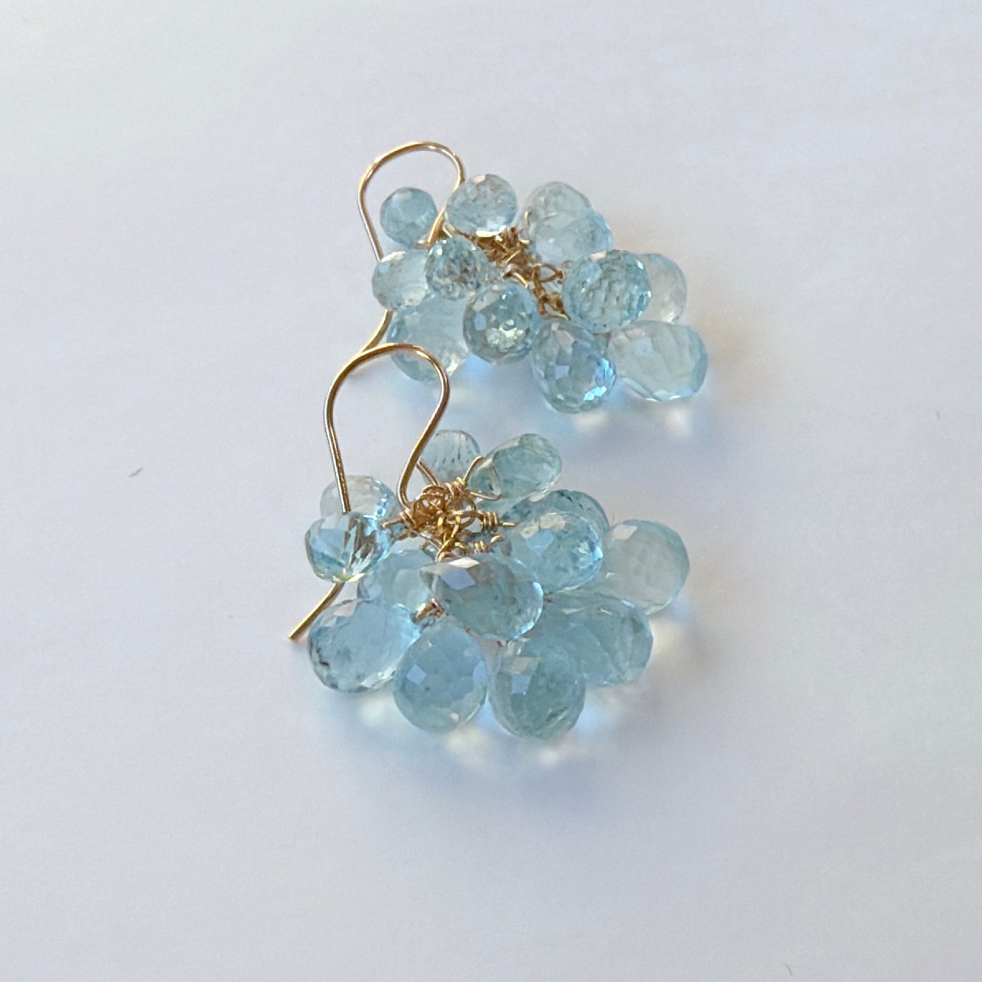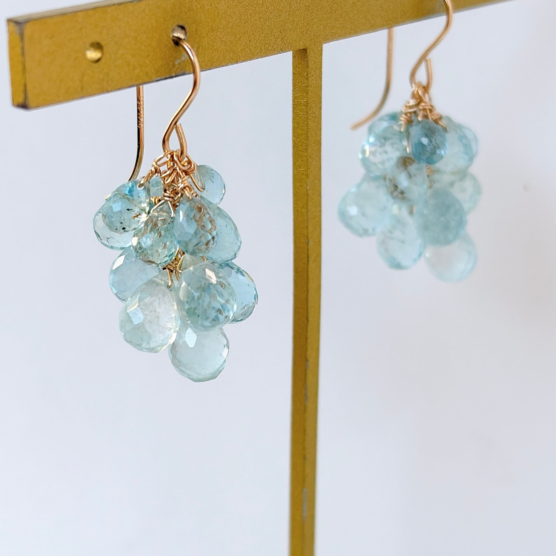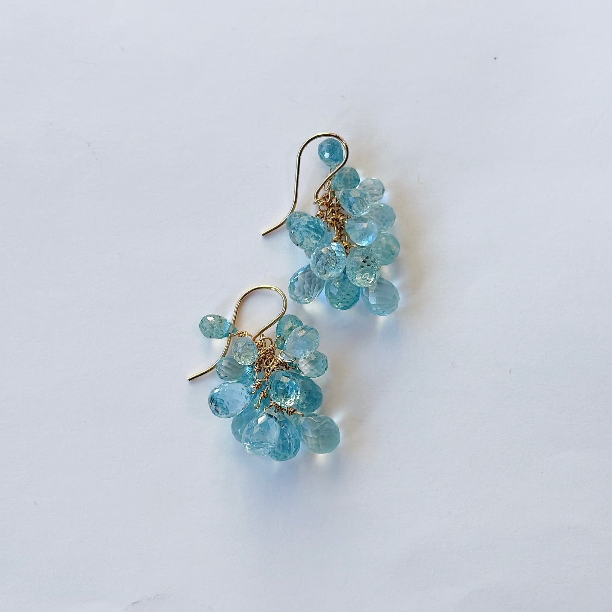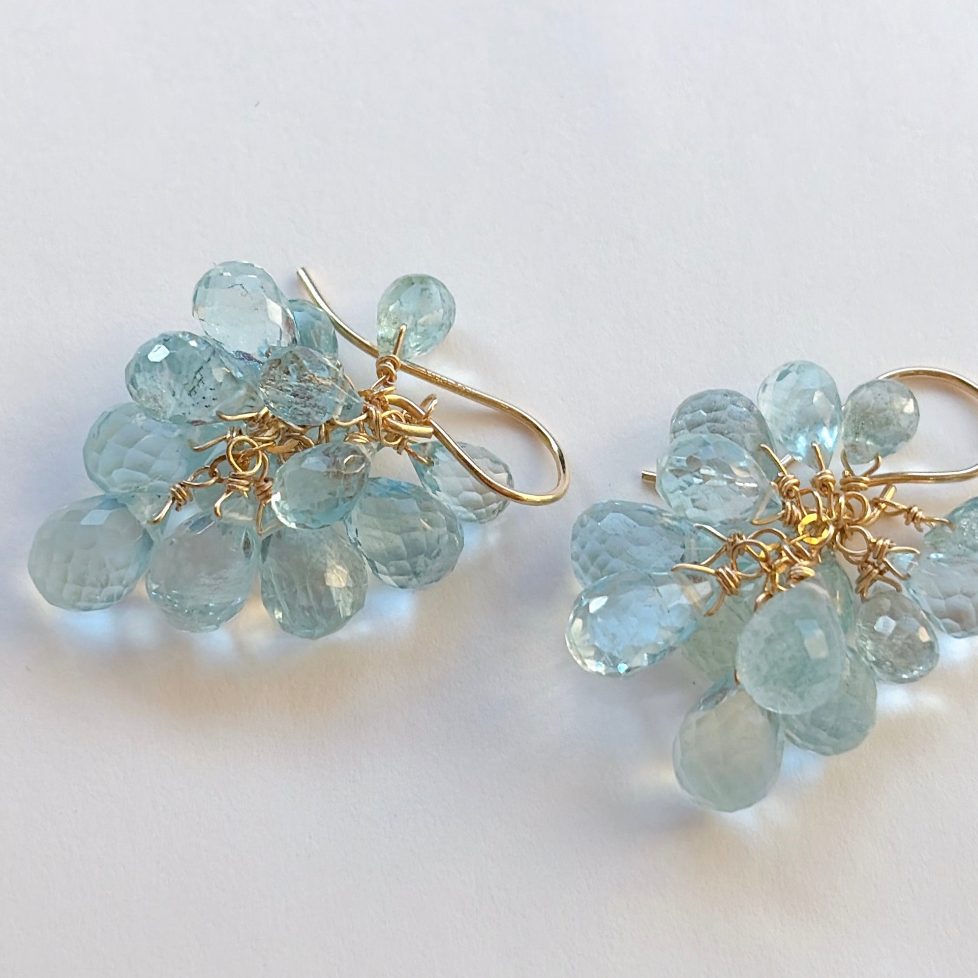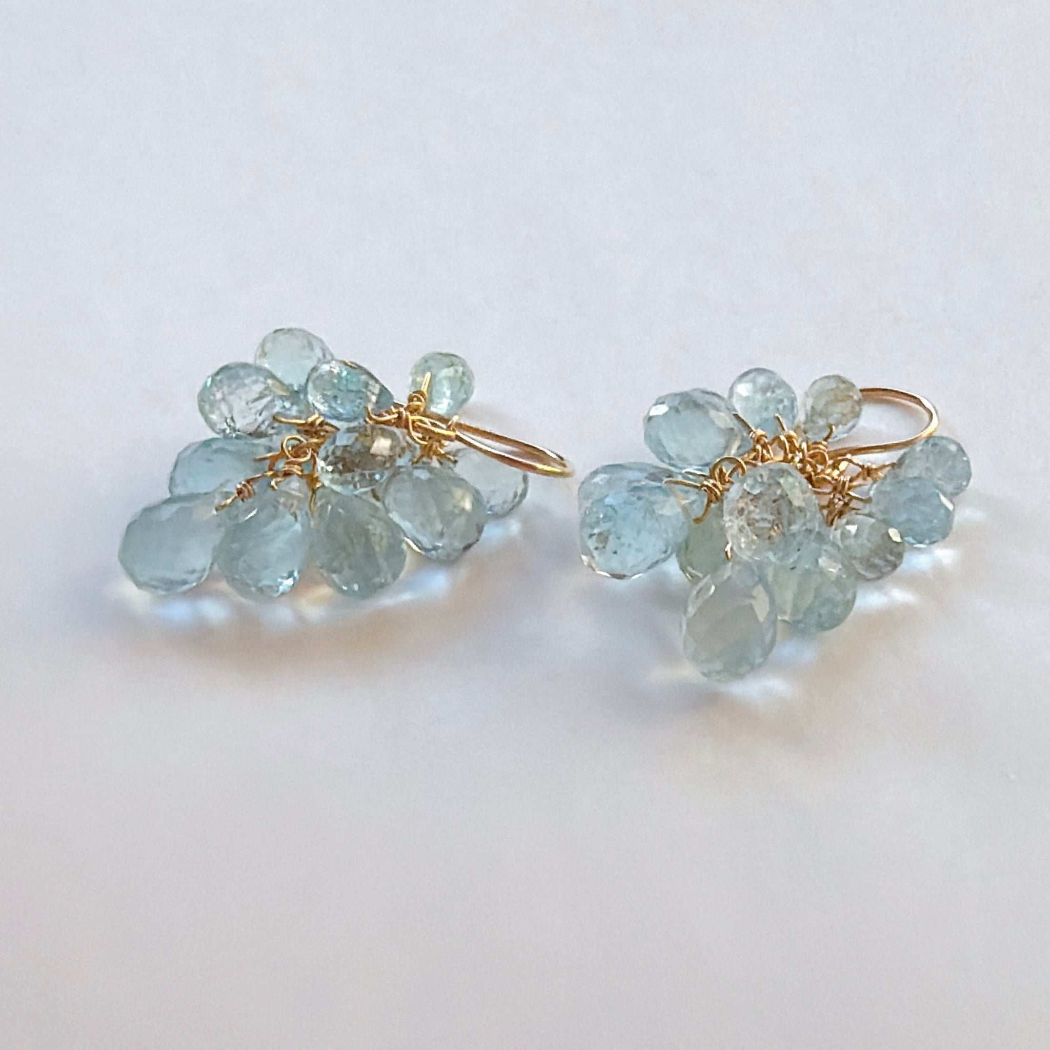 大小さまざまなアクアマリンを束ねた、立体感のあるデザインです。