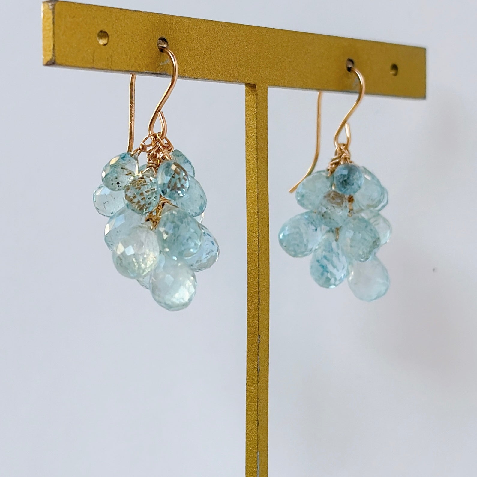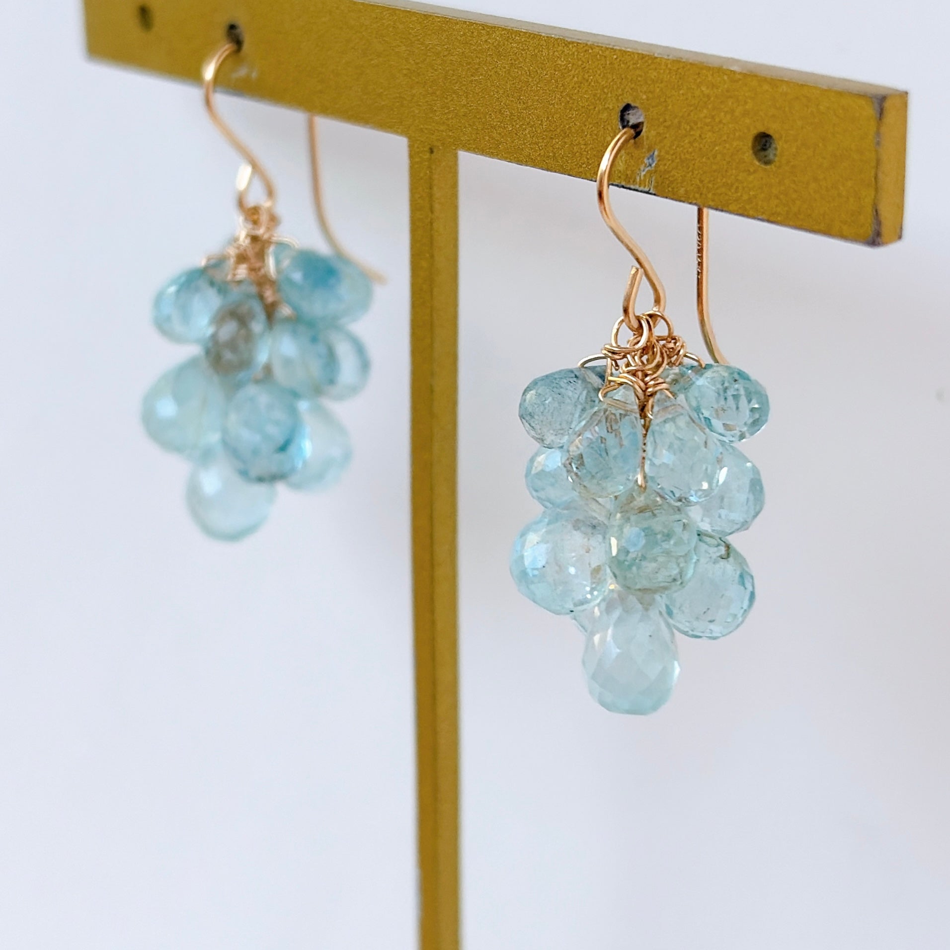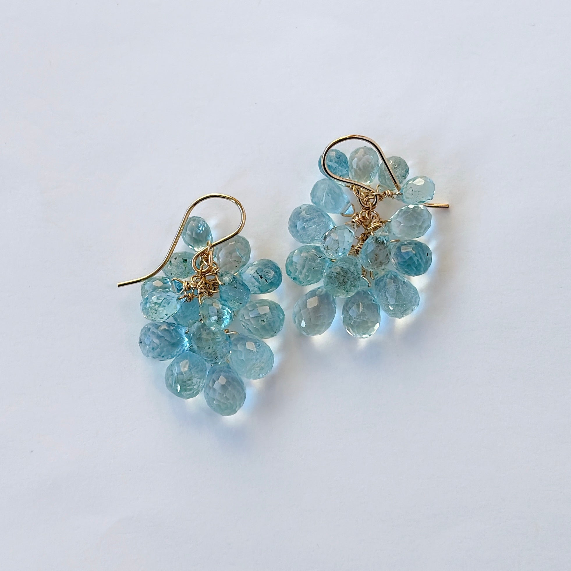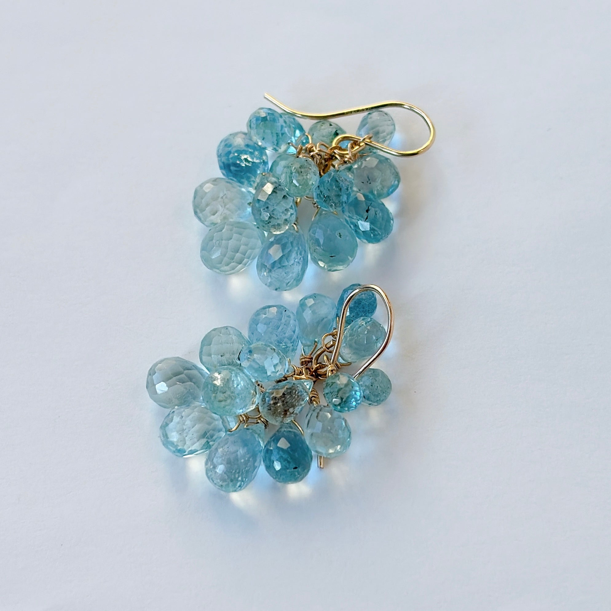 大小さまざまなアクアマリンを束ねた、立体感のあるデザインです。