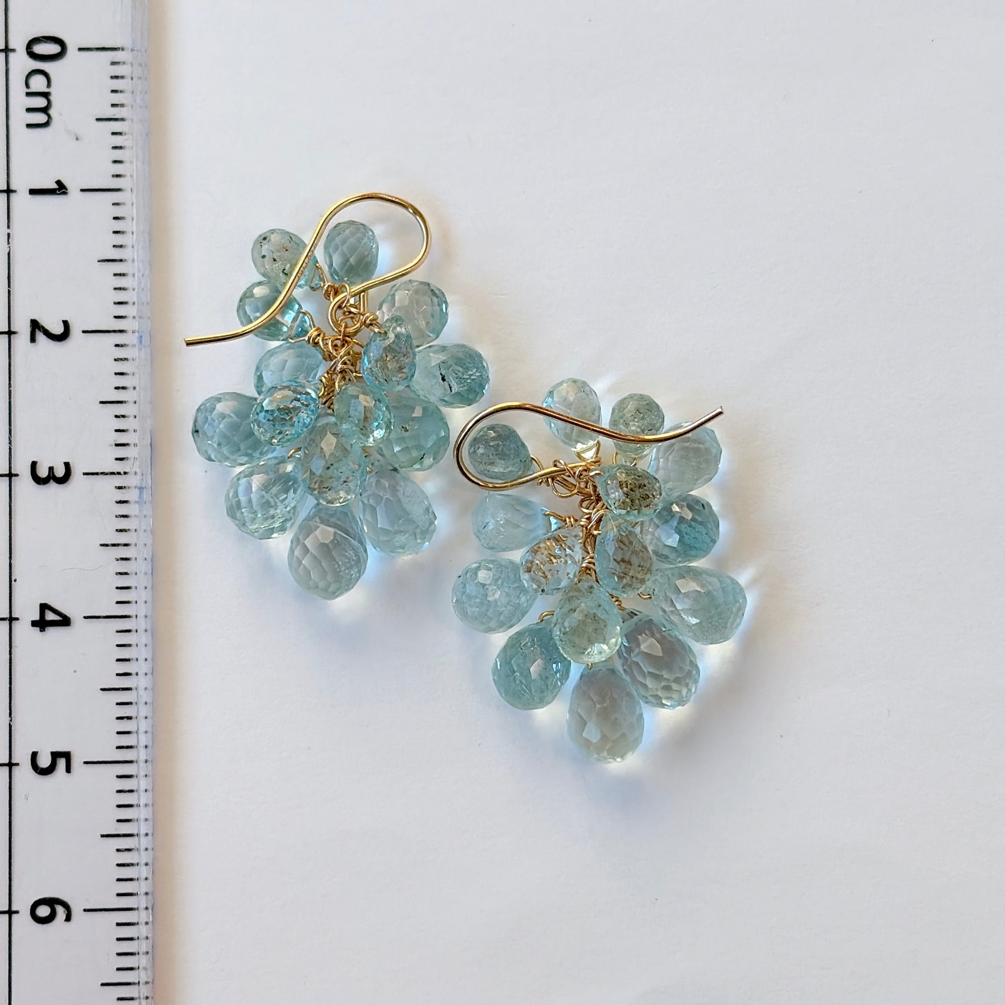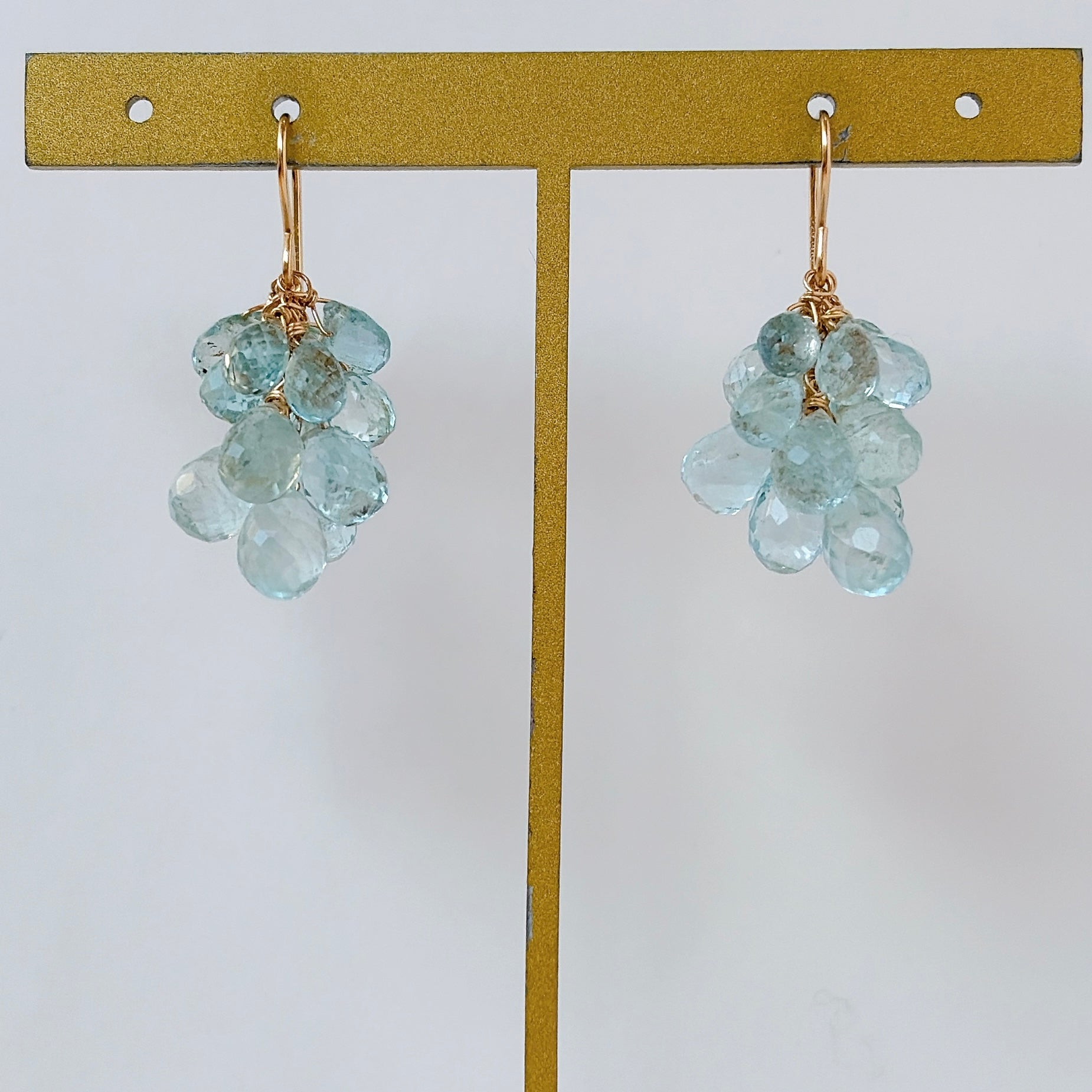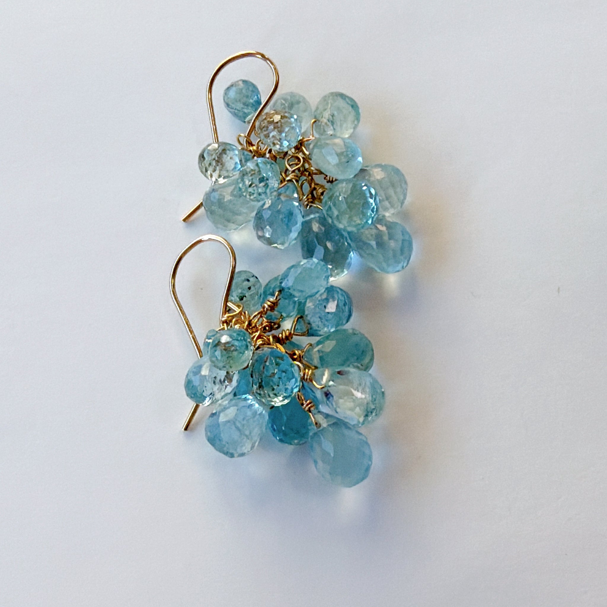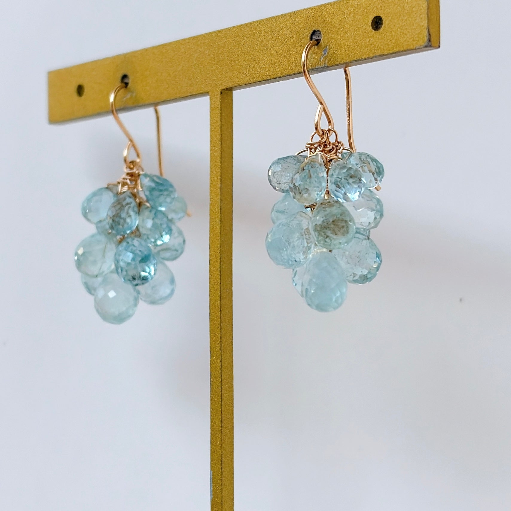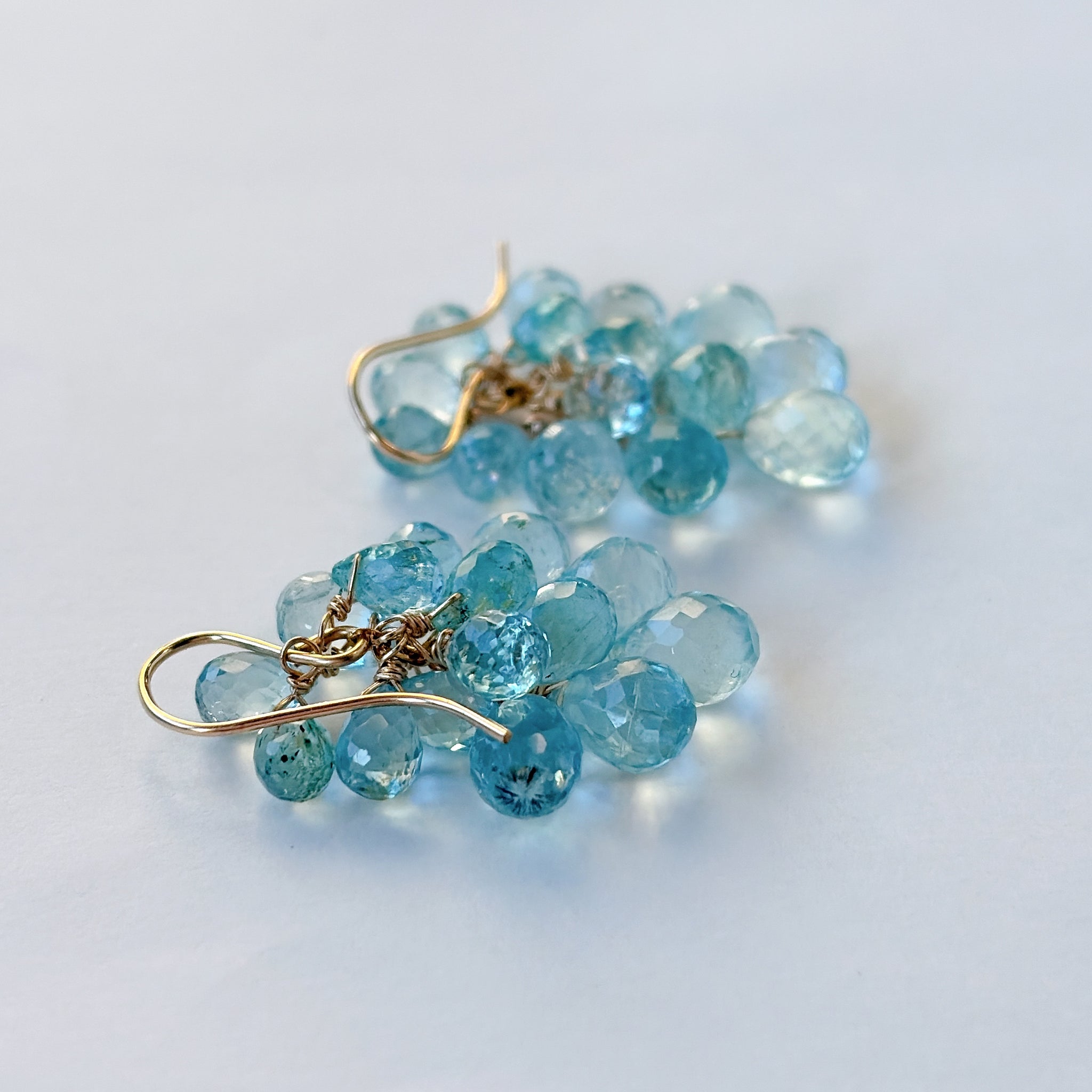 大小さまざまなアクアマリンを束ねた、立体感のあるデザインです。
