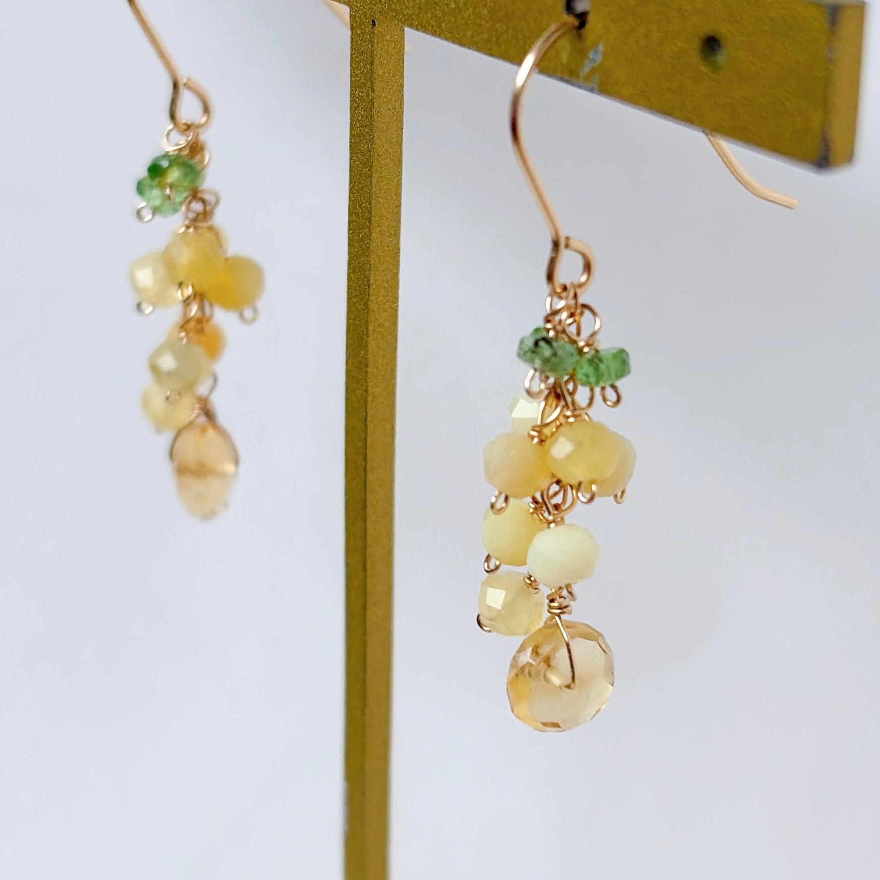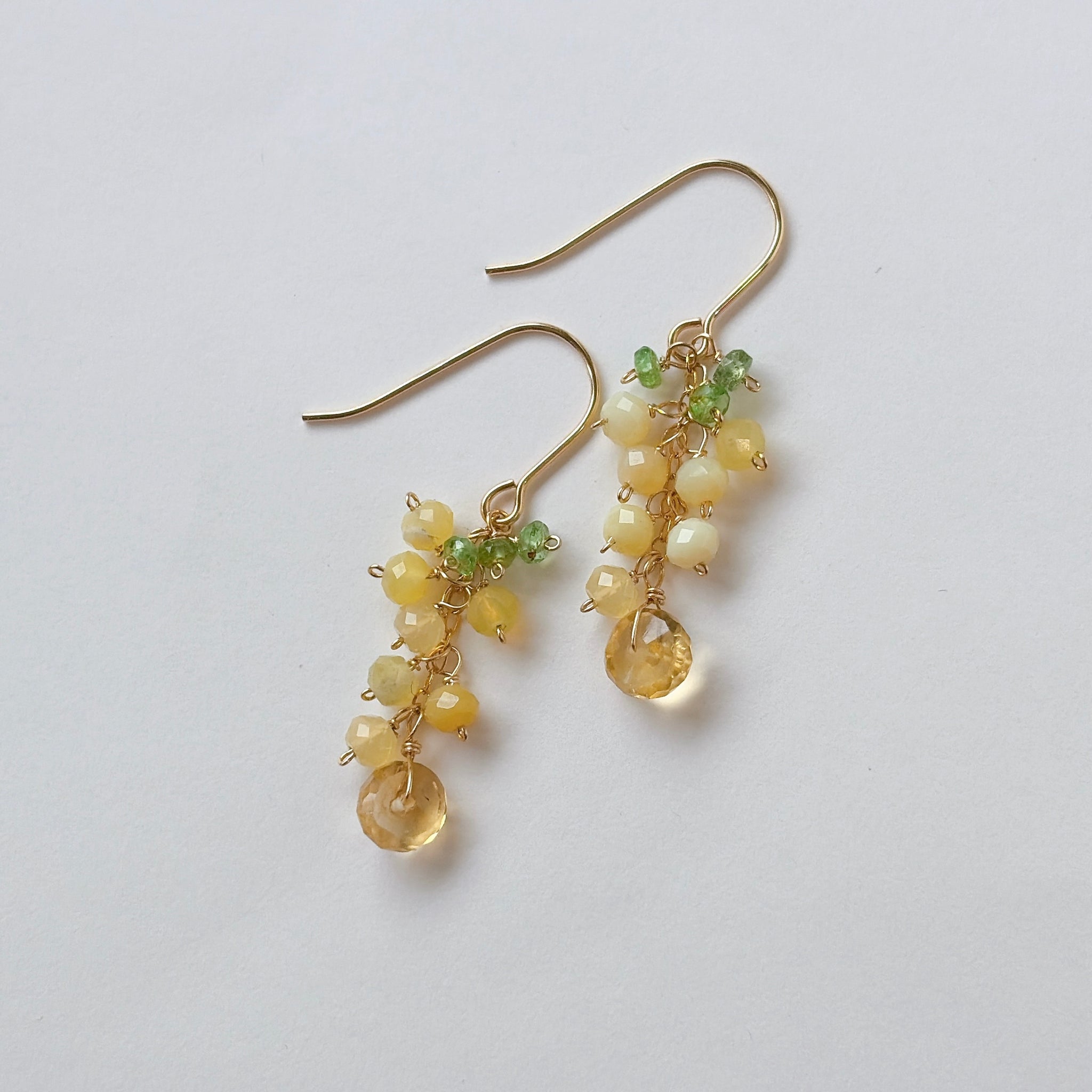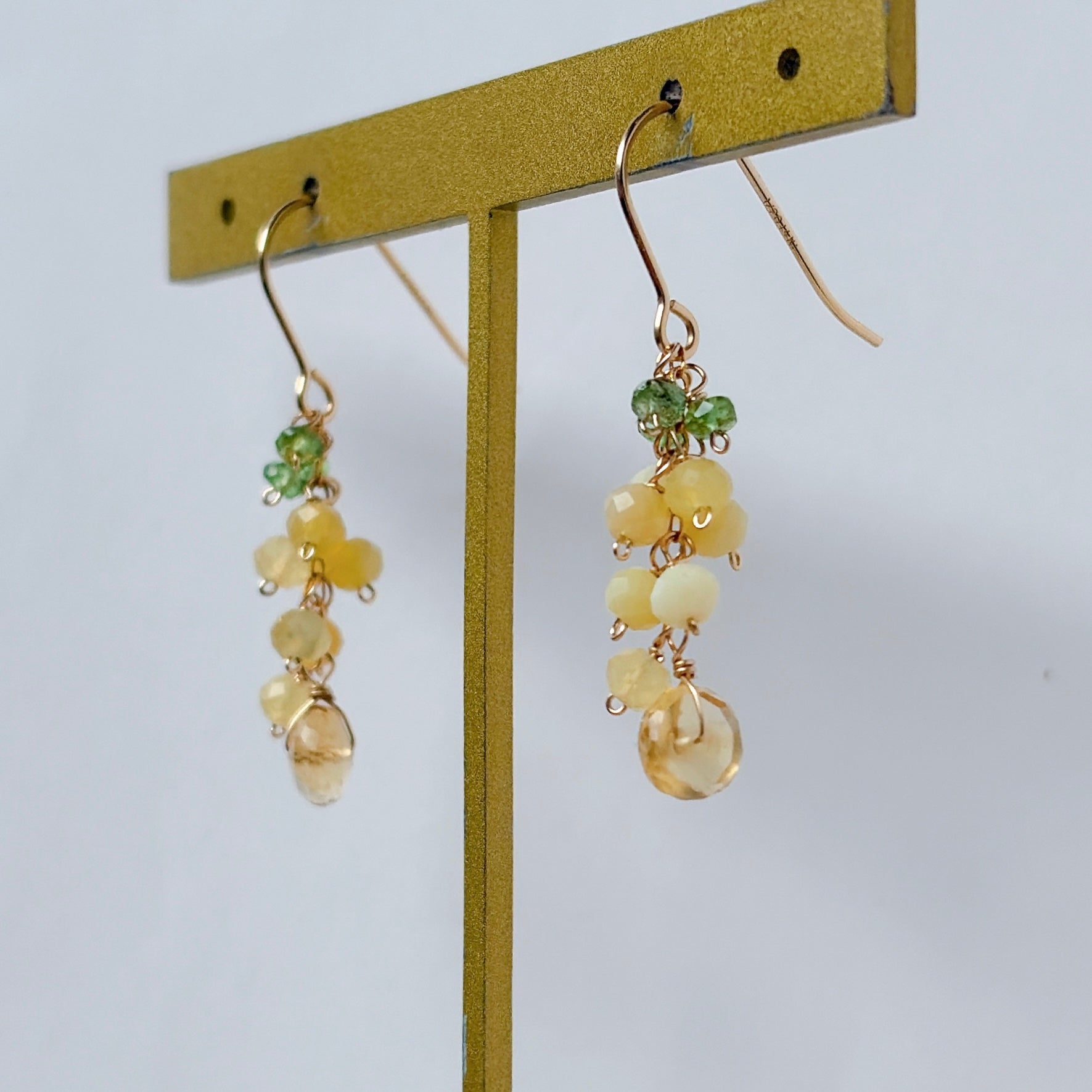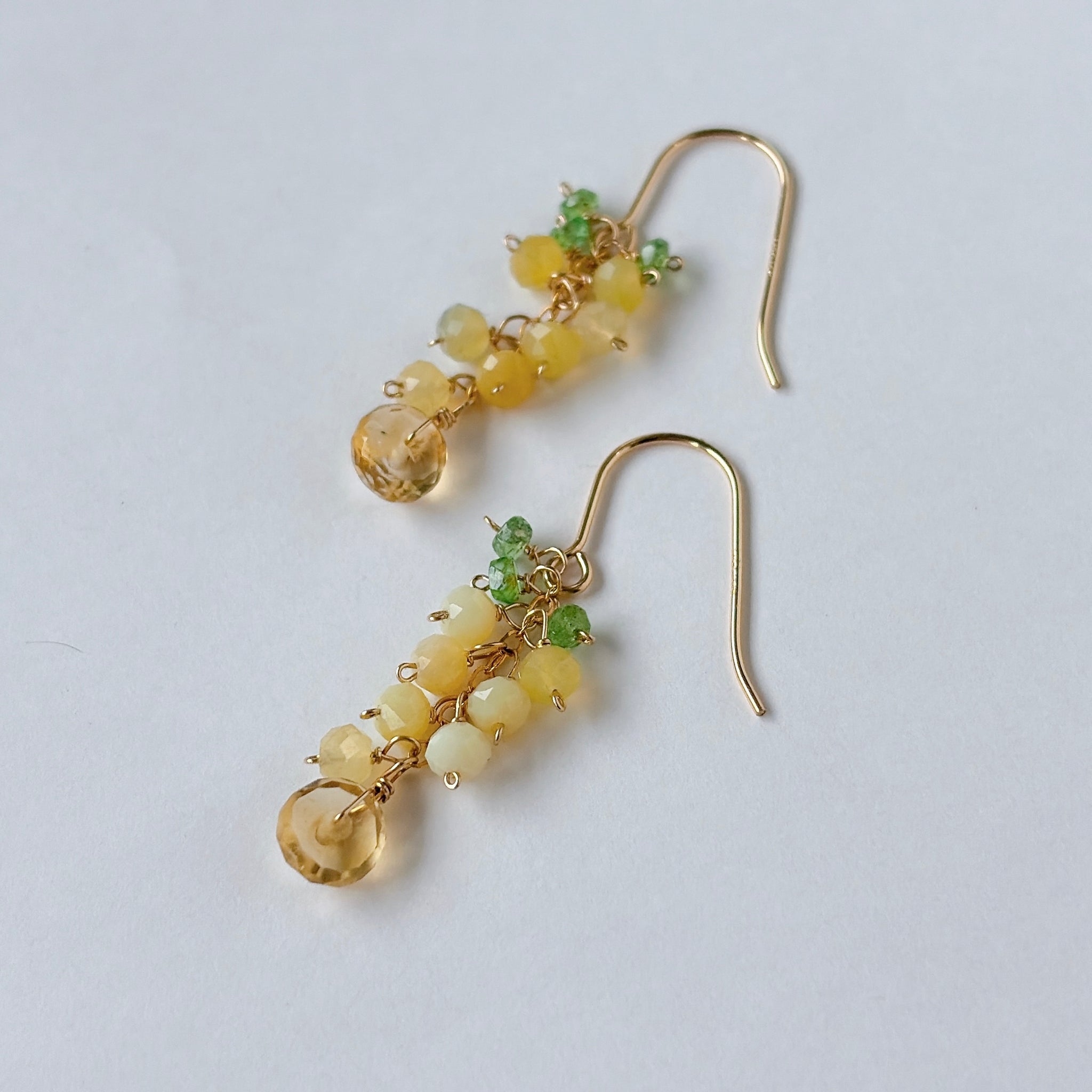 イエローオパールとシトリンとツァボライトのミニミモザピアス