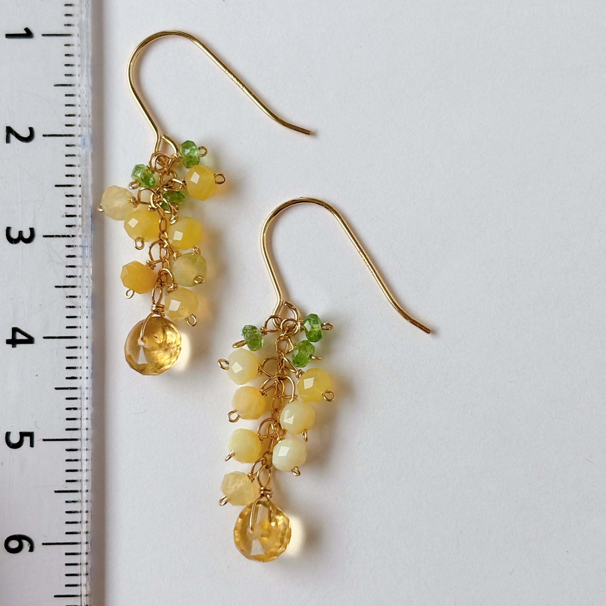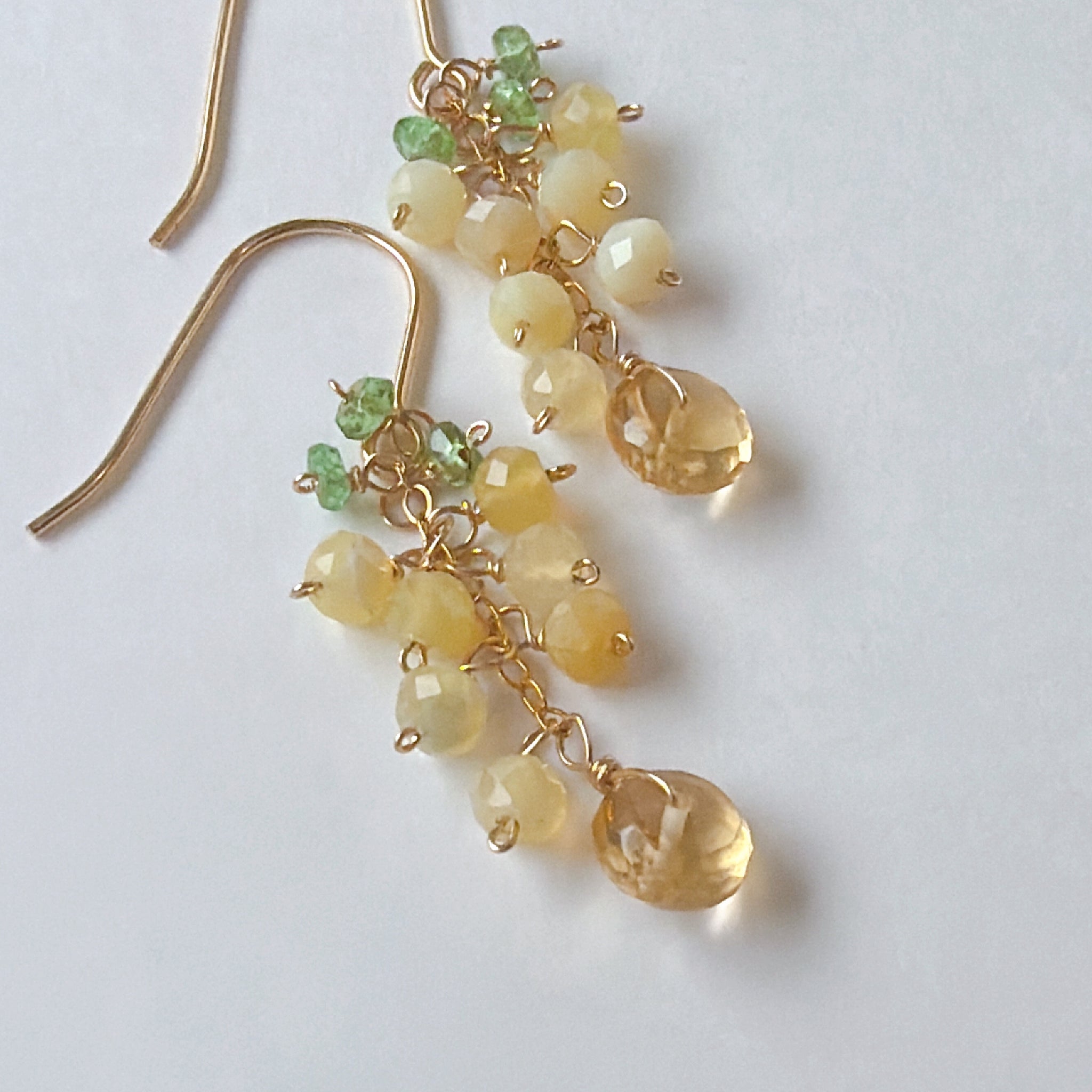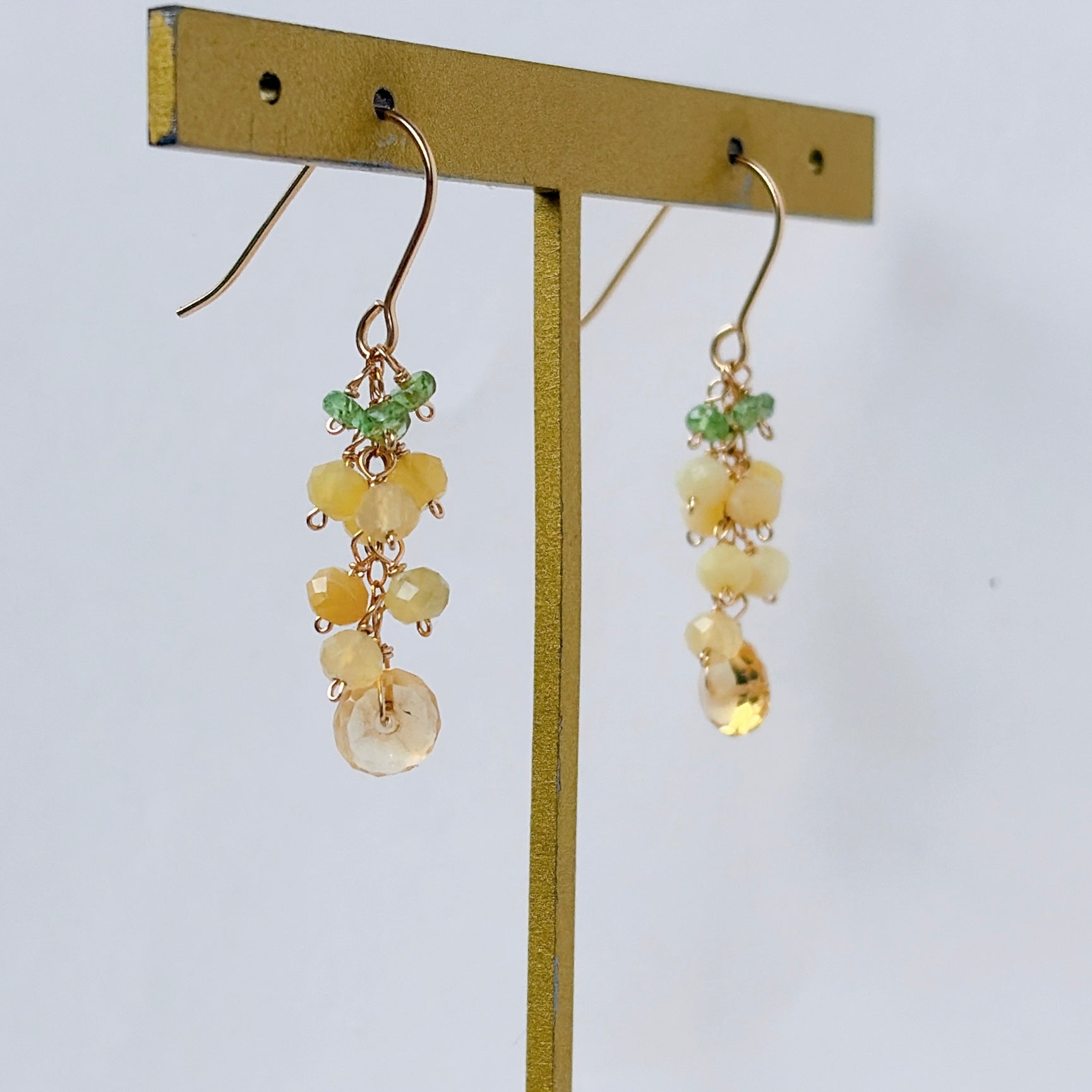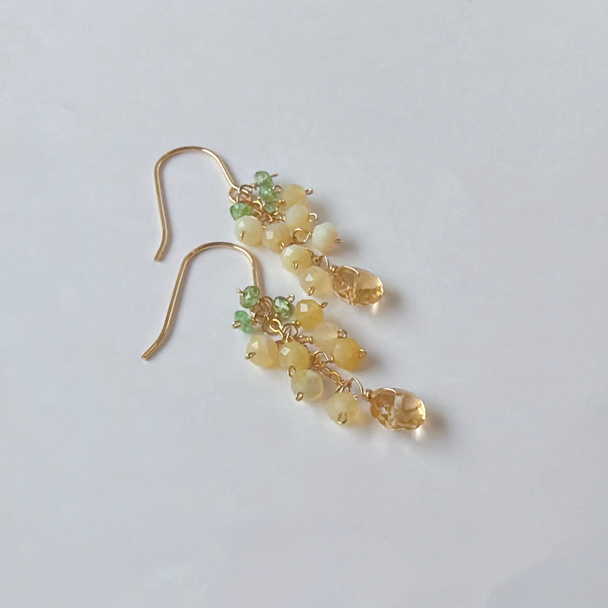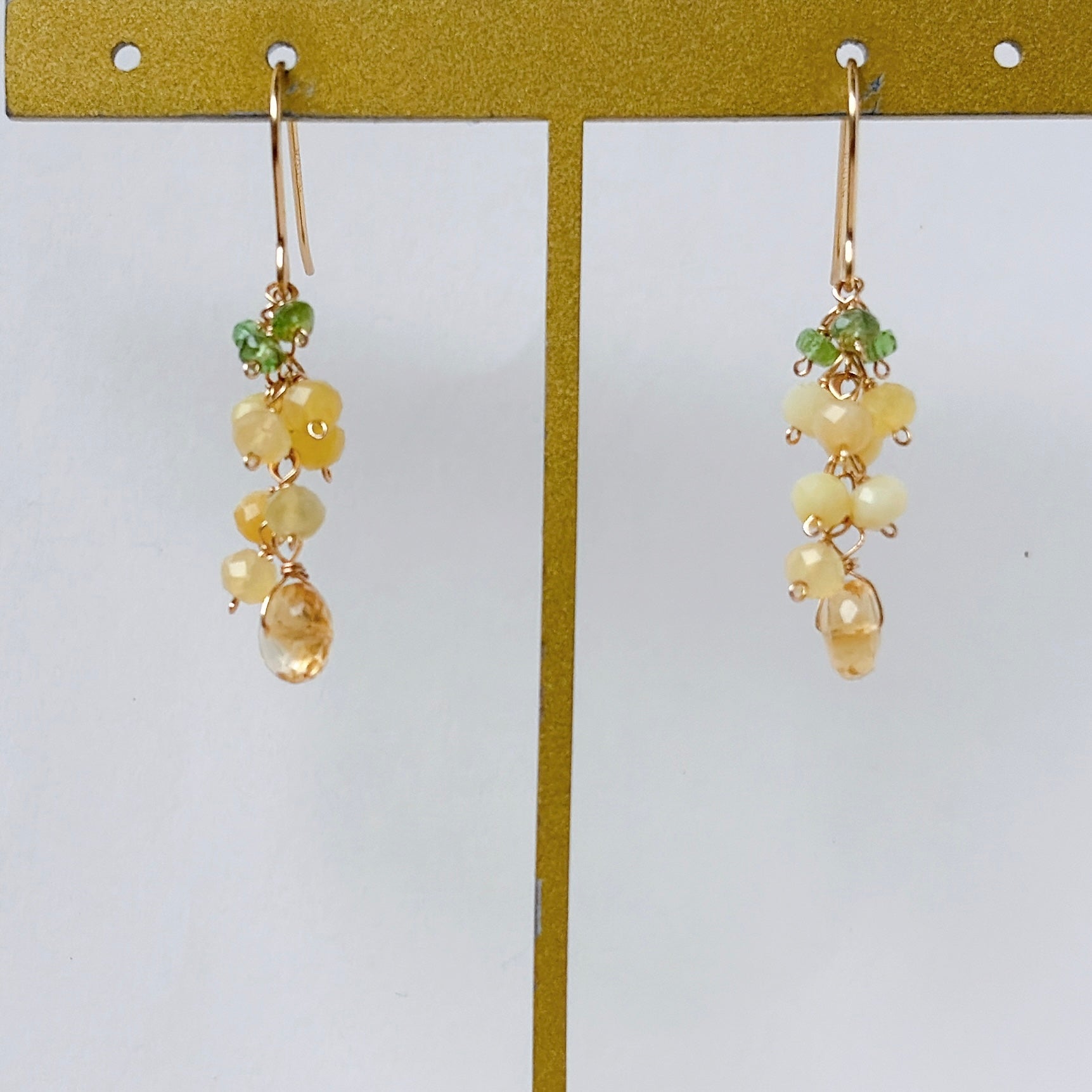 イエローオパールとシトリンとツァボライトのミニミモザピアス