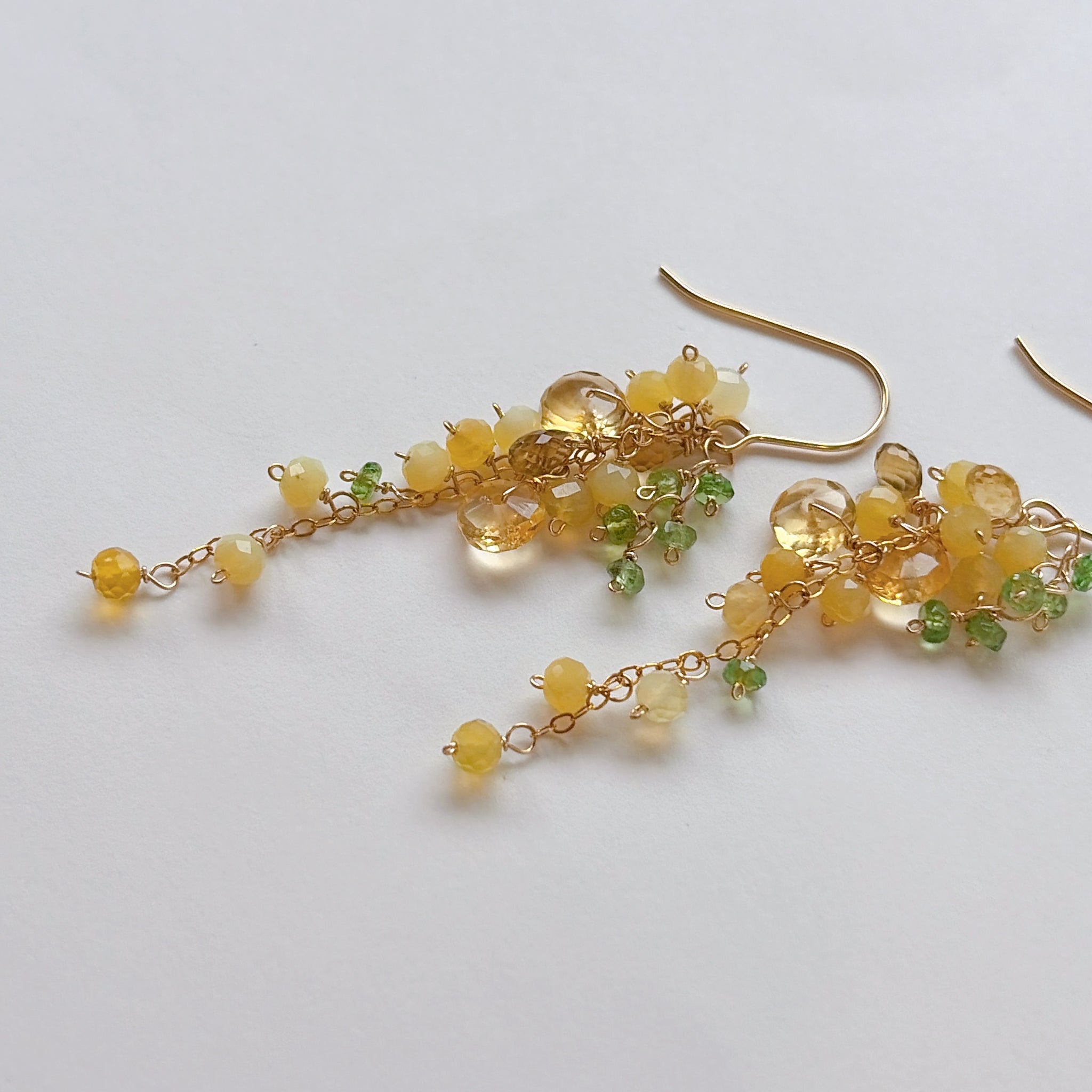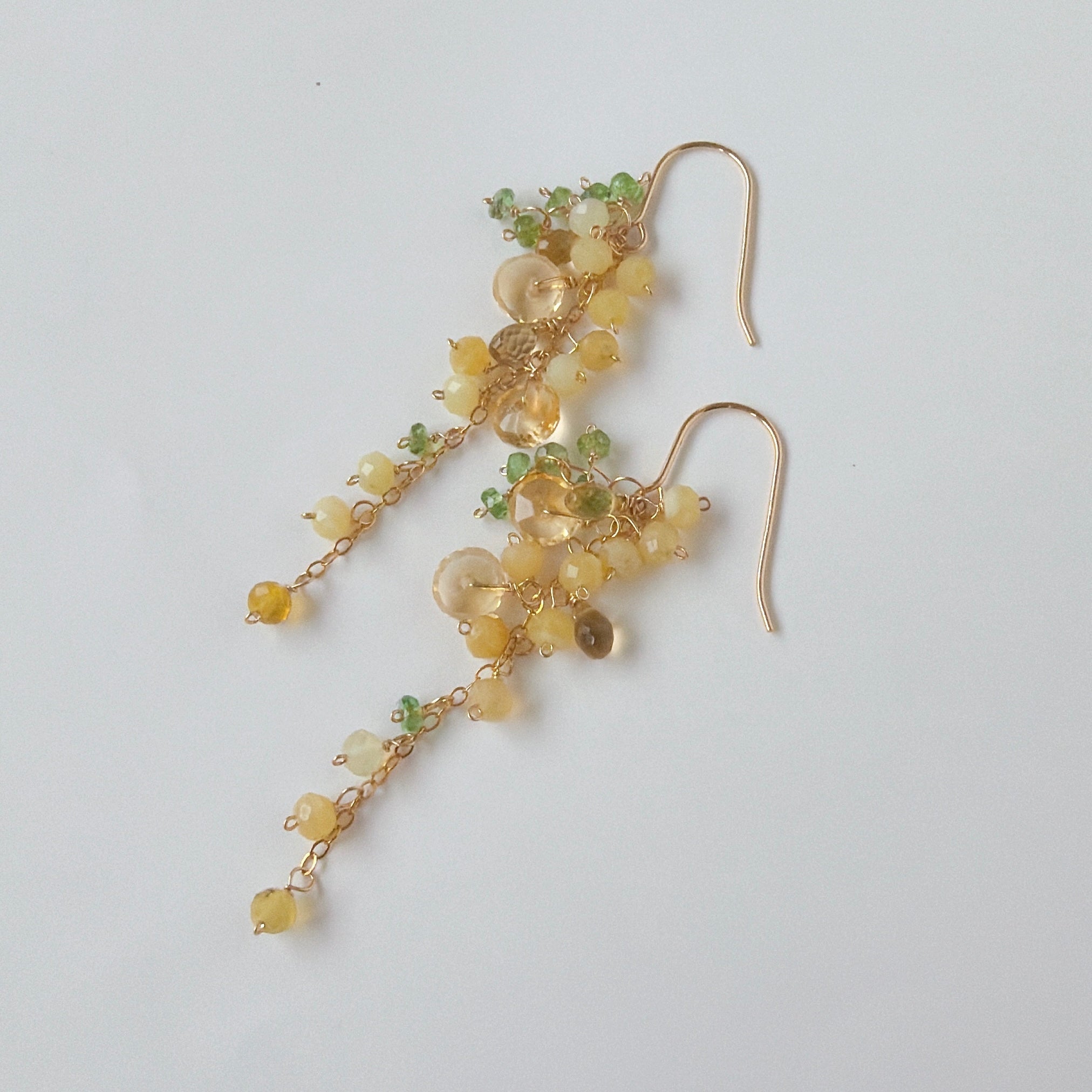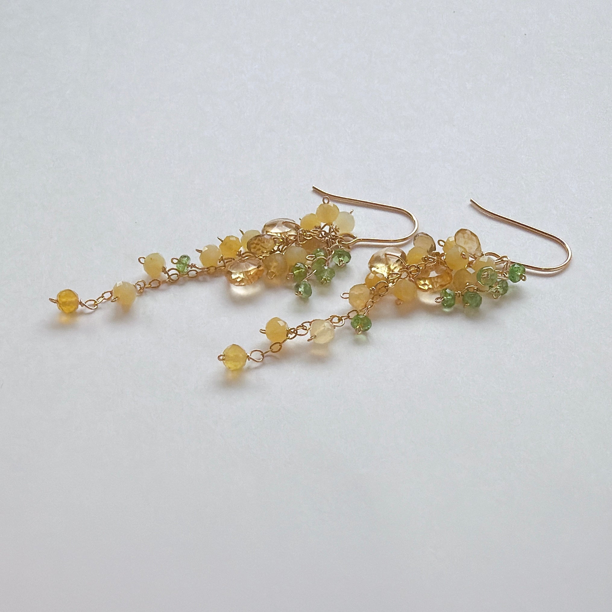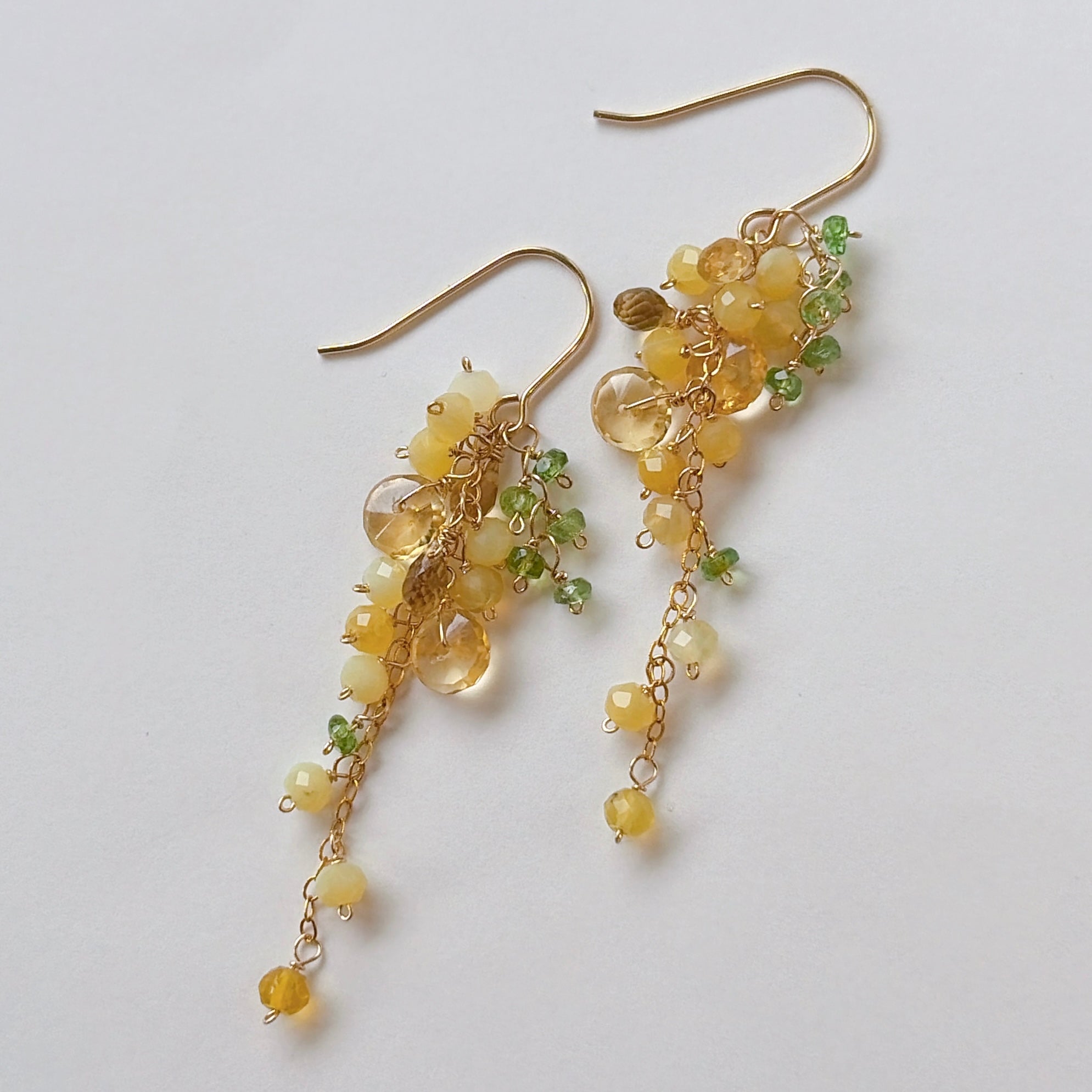 イエローオパールとシトリンとビアクォーツ、ツァボライトのミモザピアス