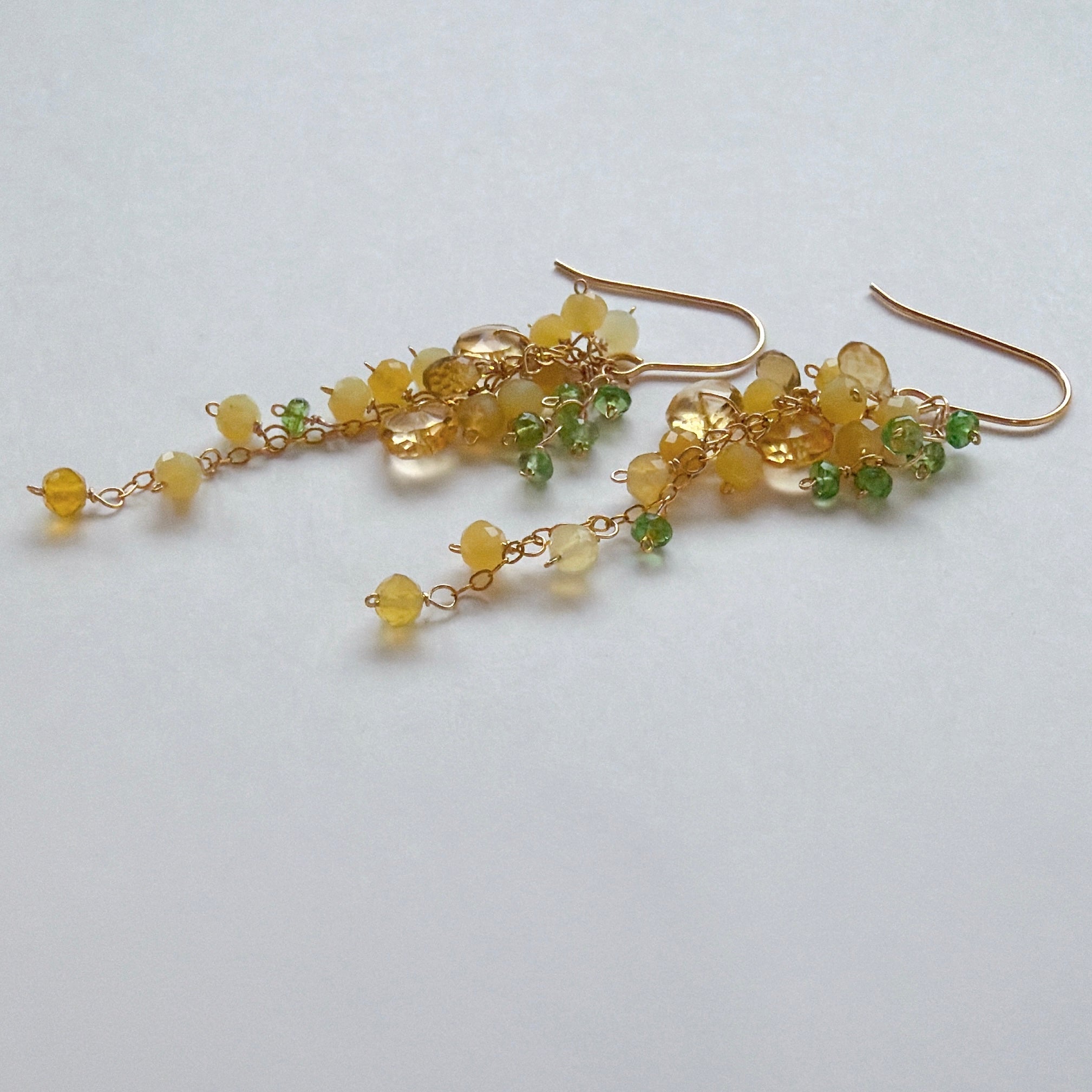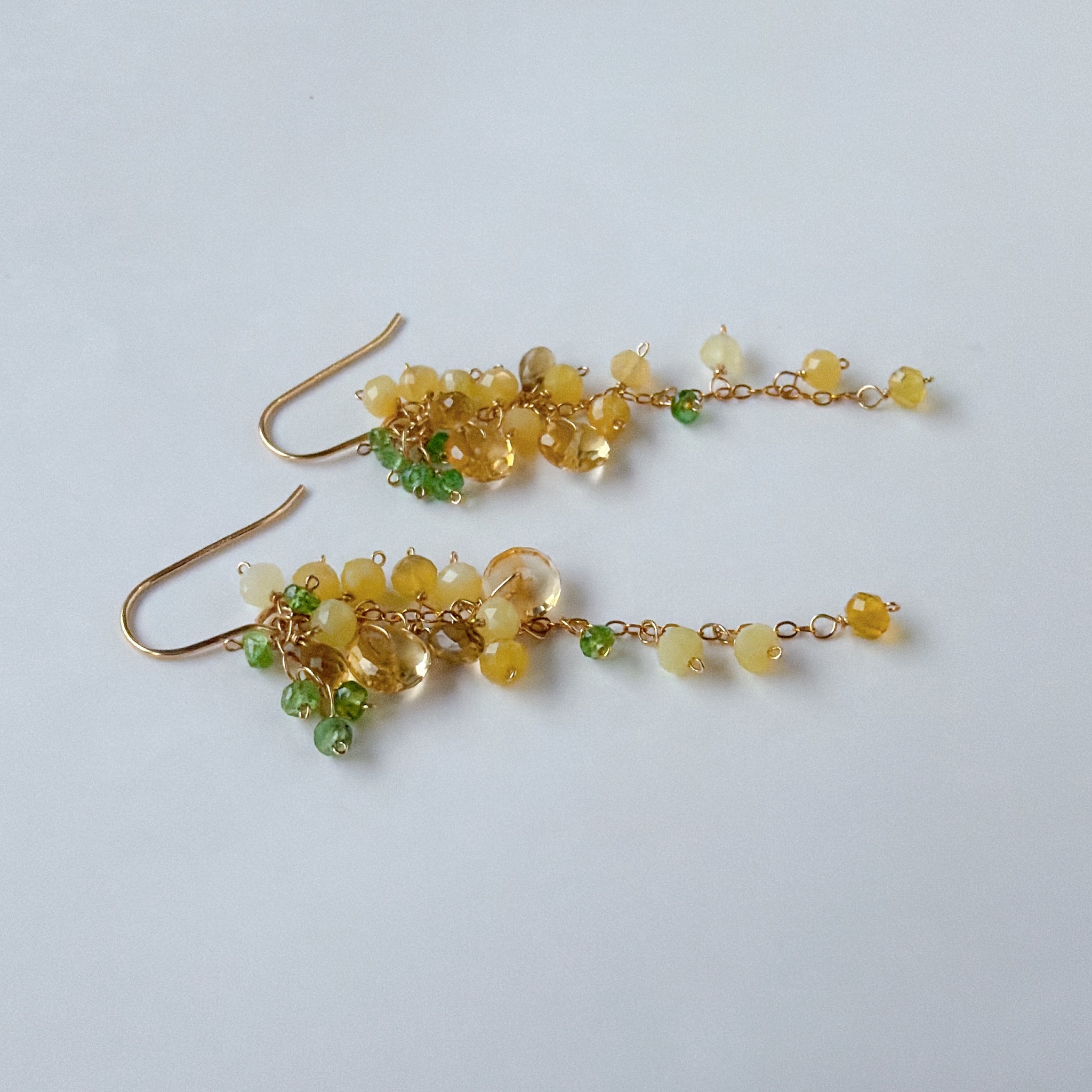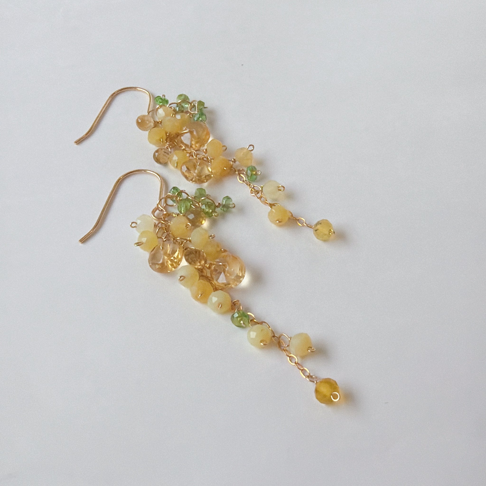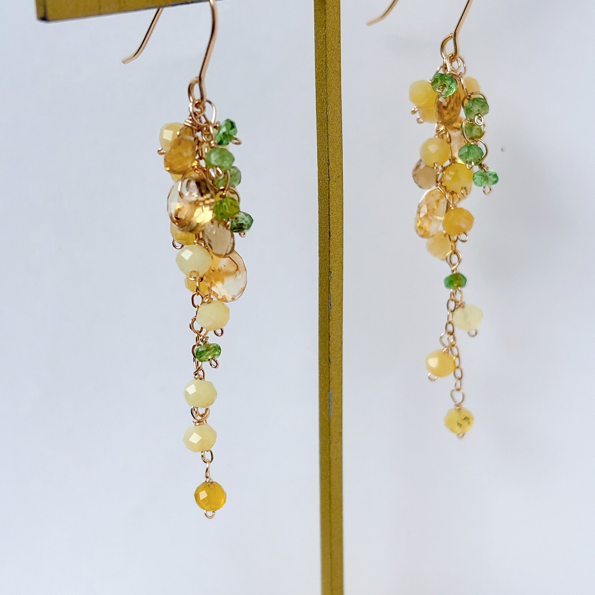 イエローオパールとシトリンとビアクォーツ、ツァボライトのミモザピアス