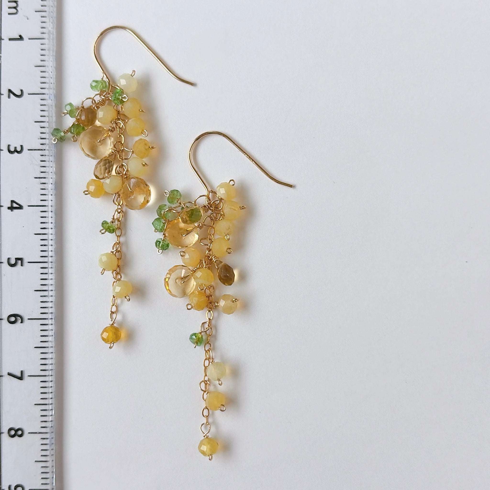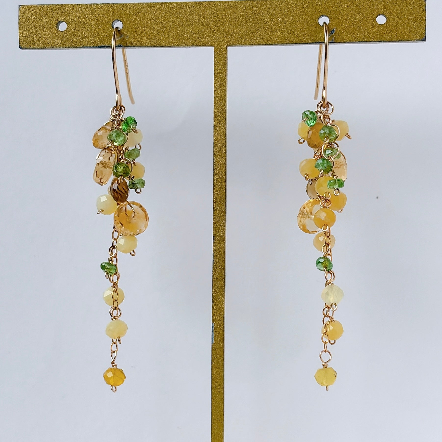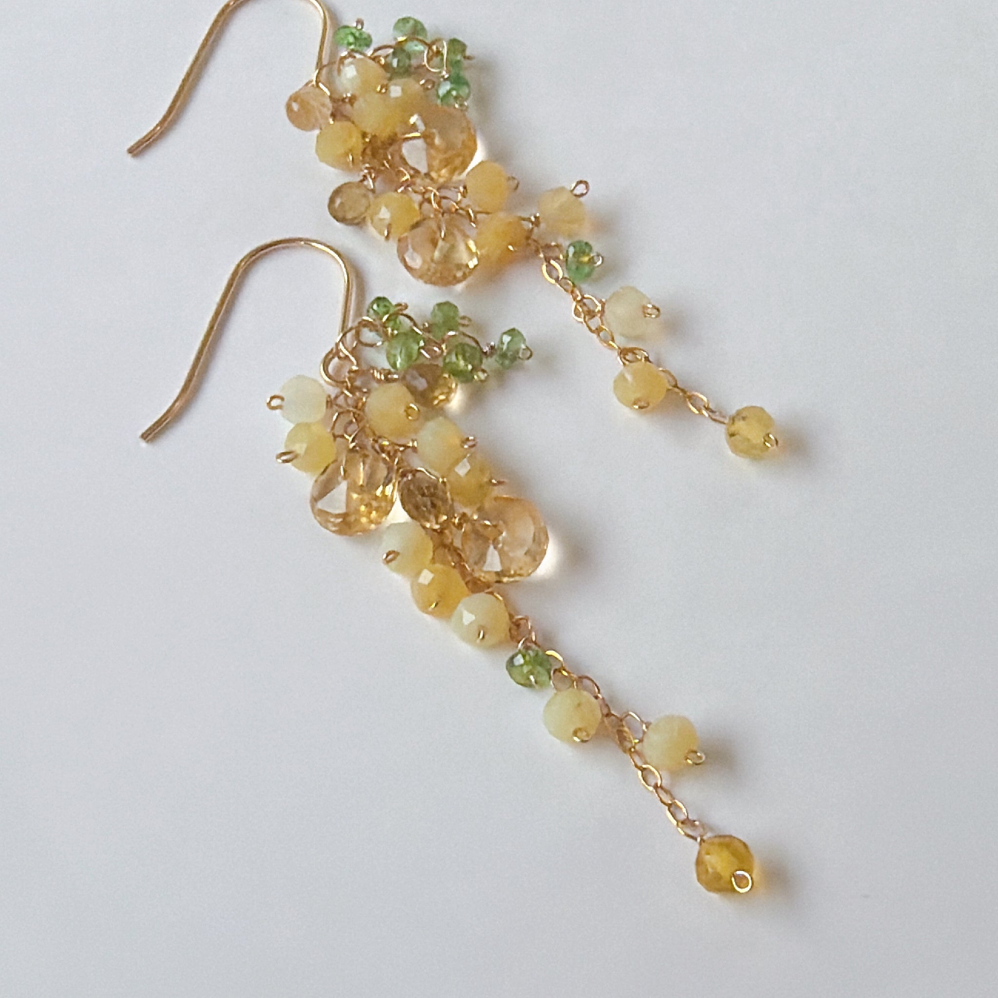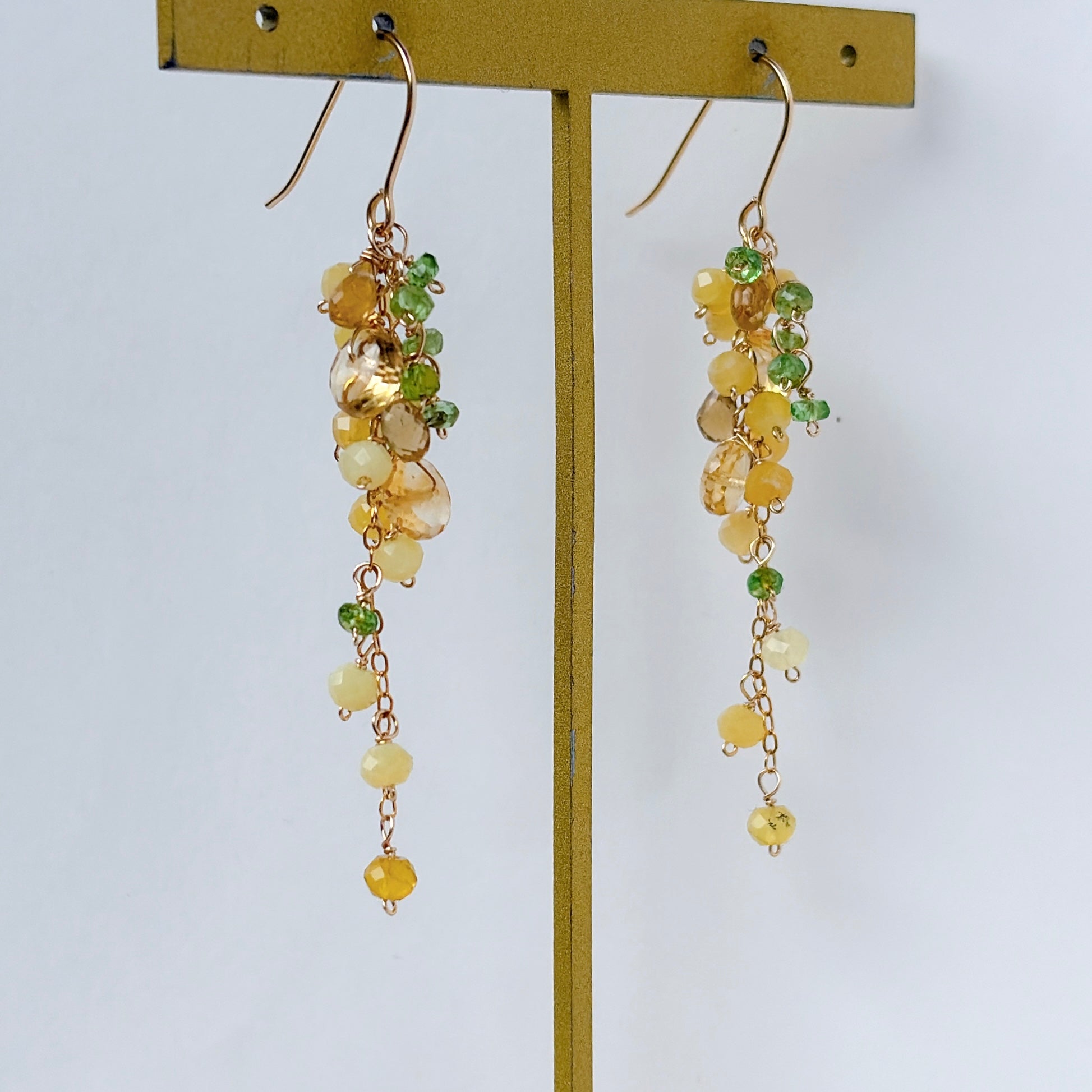 イエローオパールとシトリンとビアクォーツ、ツァボライトのミモザピアス