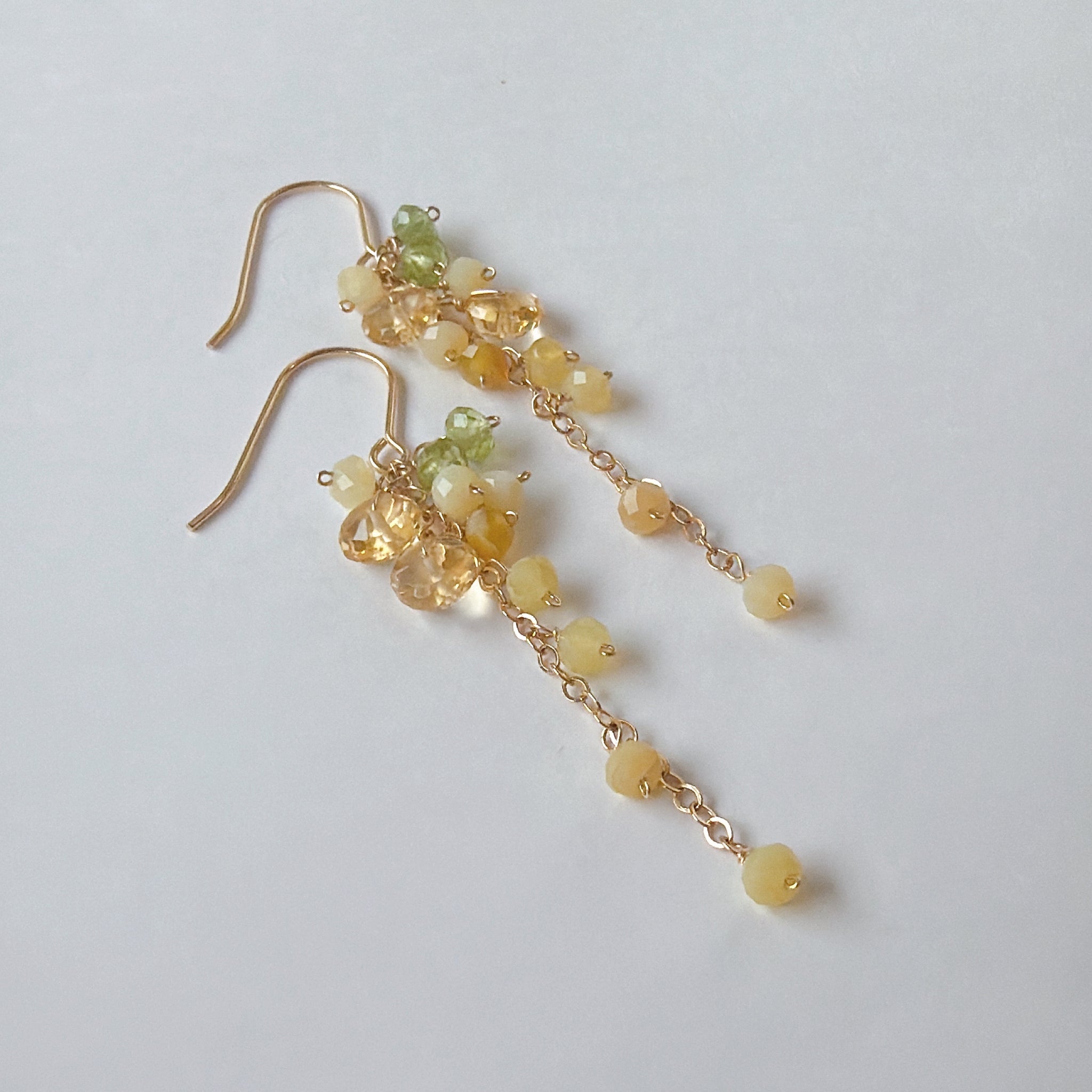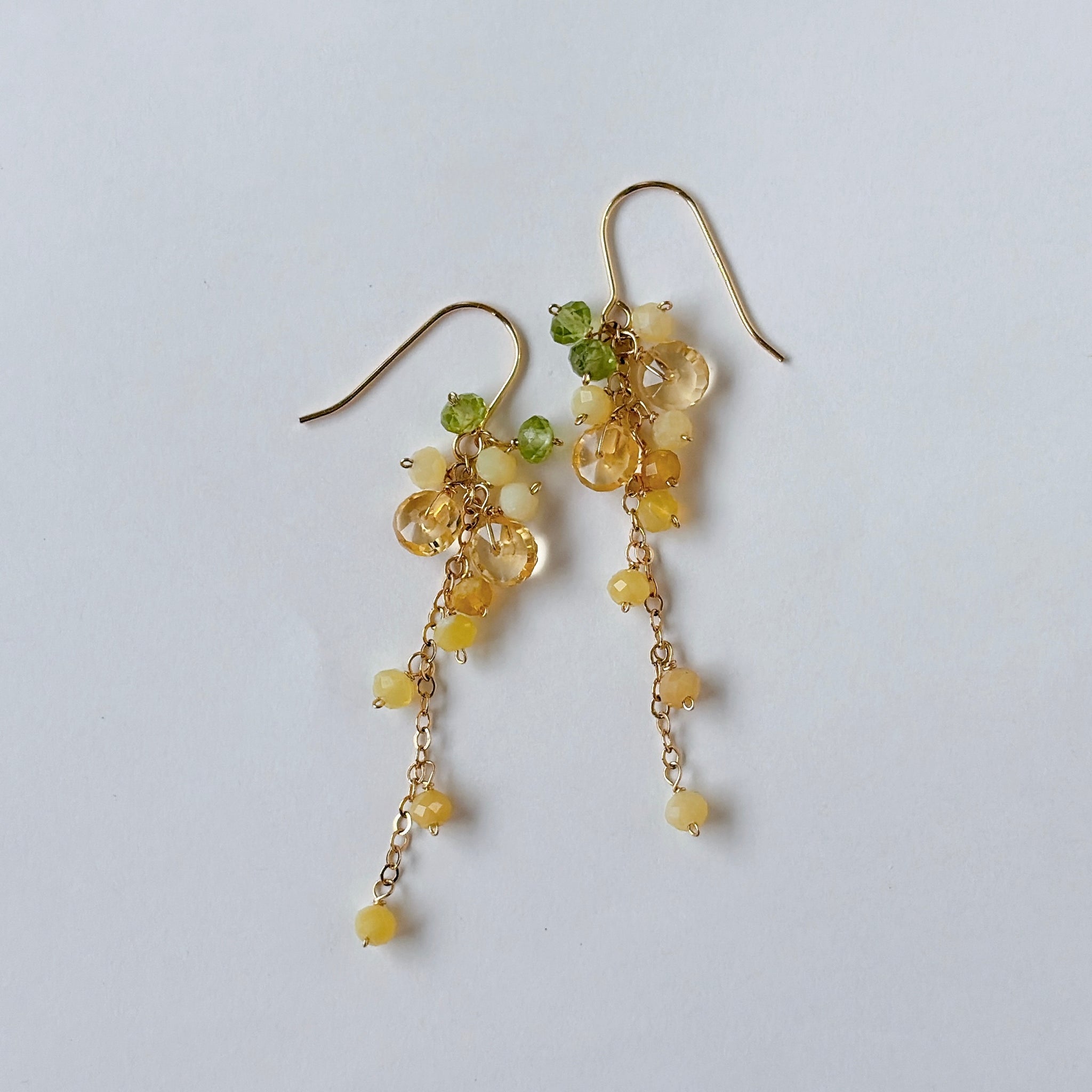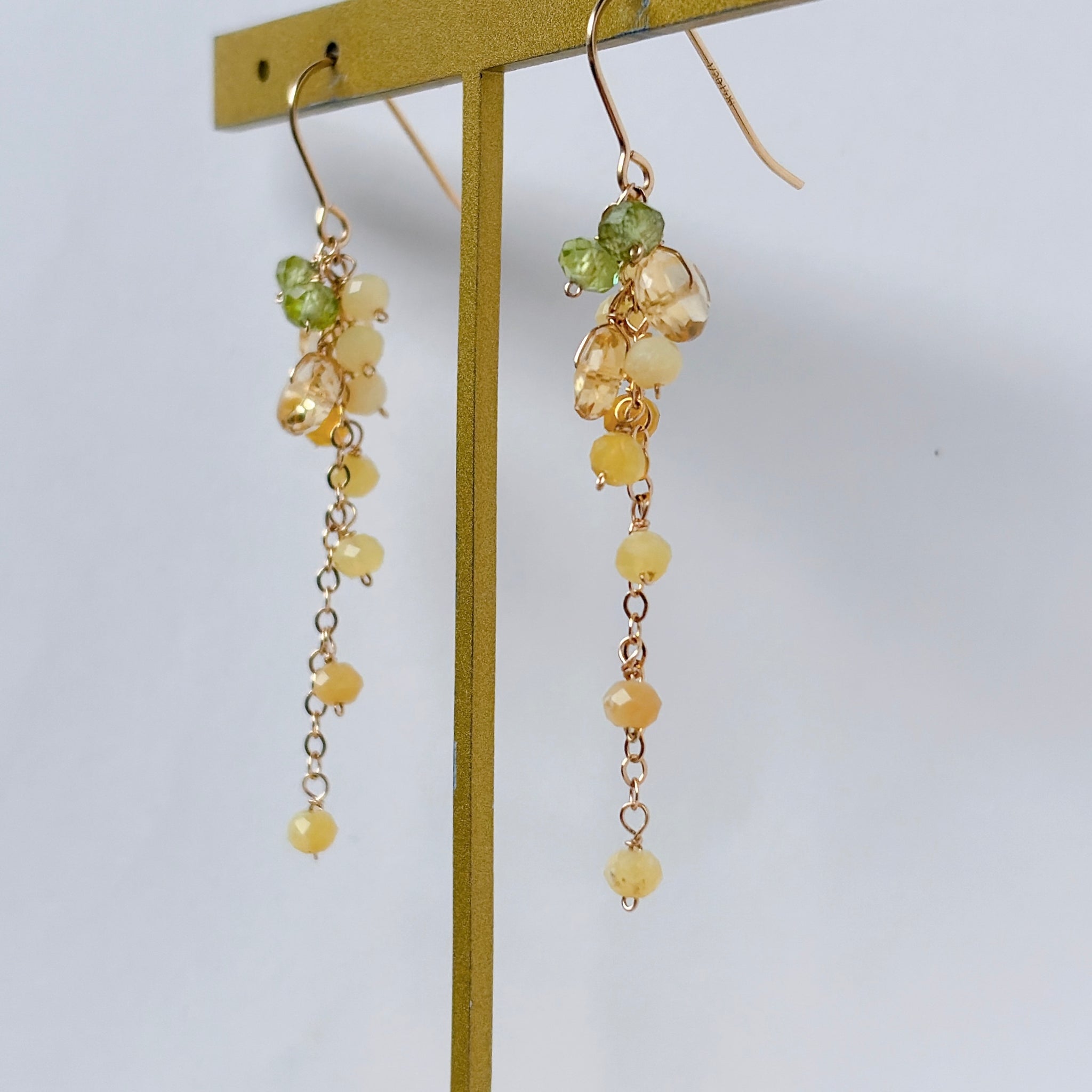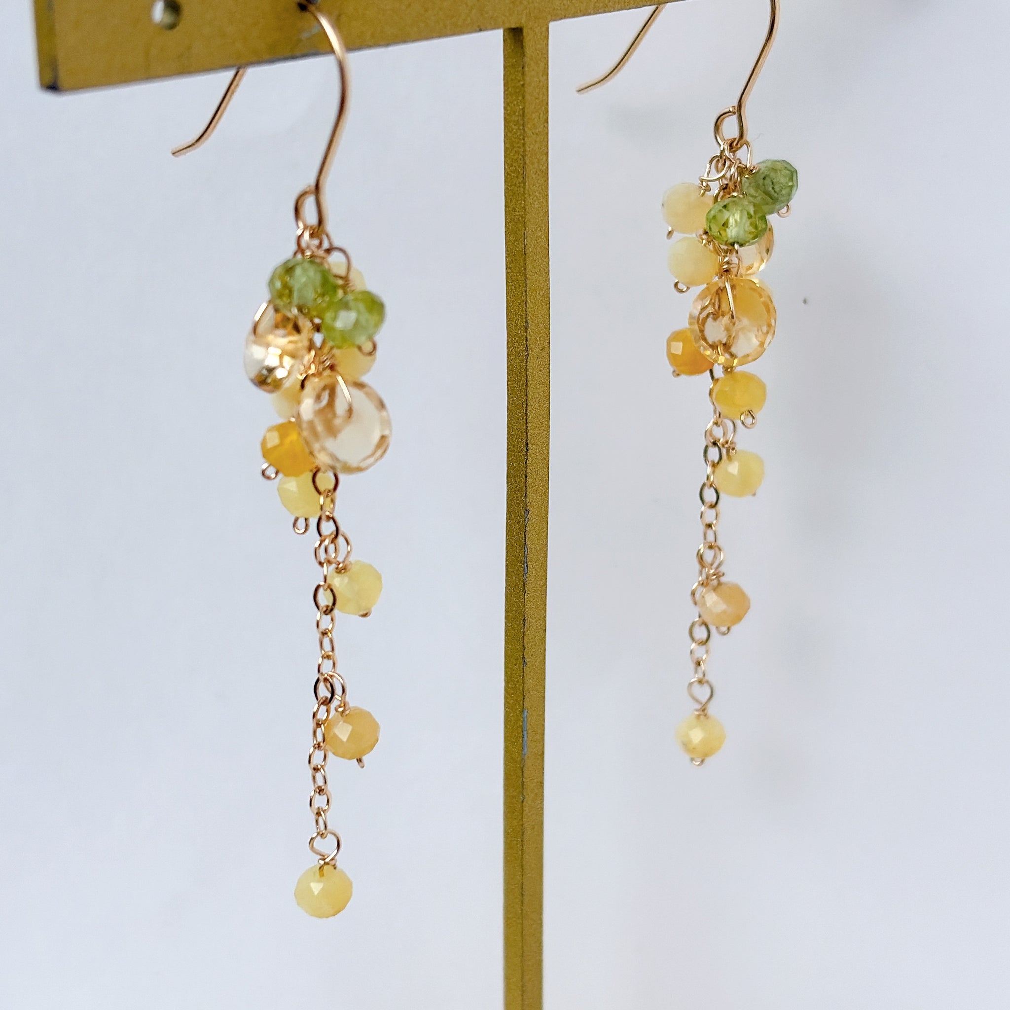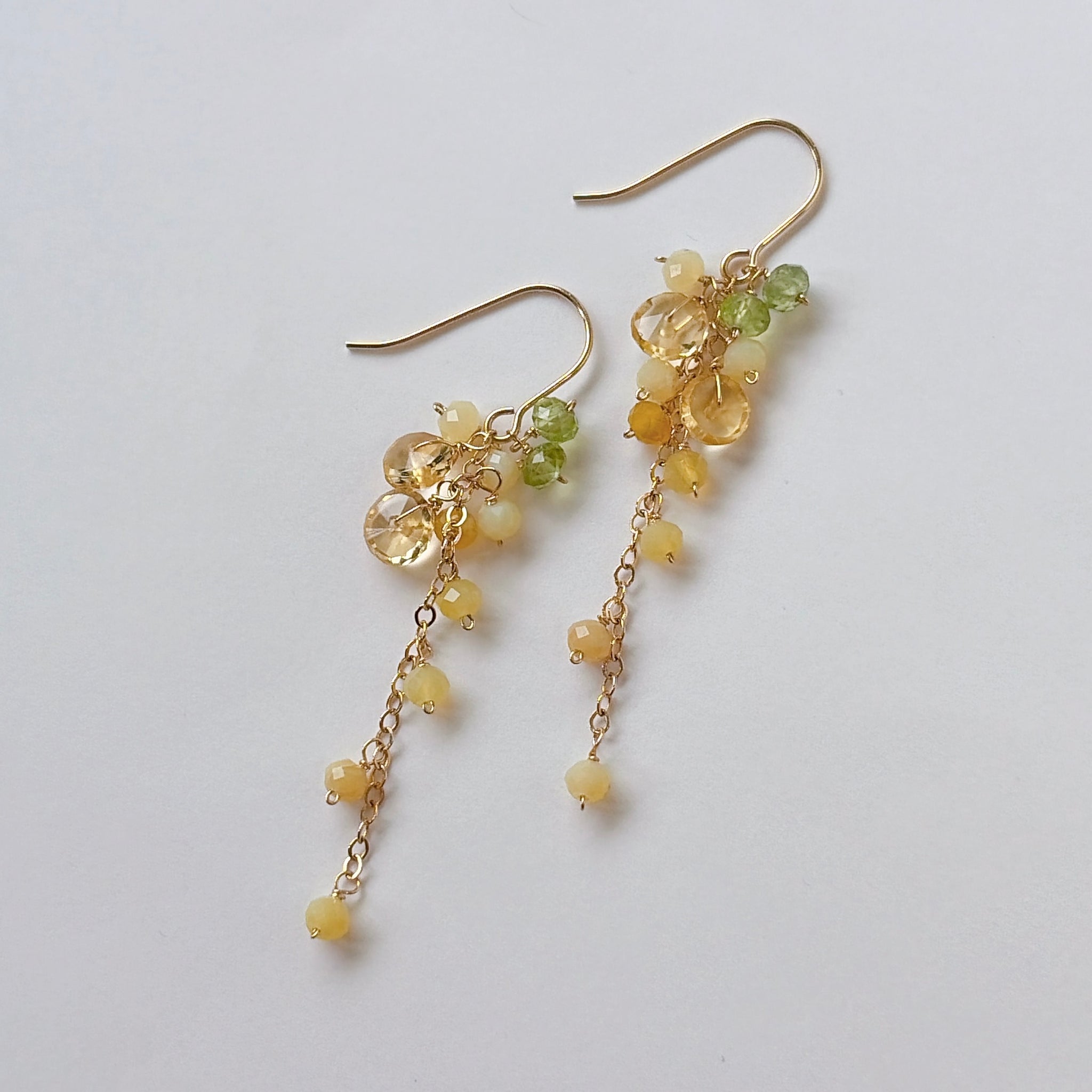 イエローオパールとシトリンとペリドットのミモザピアス