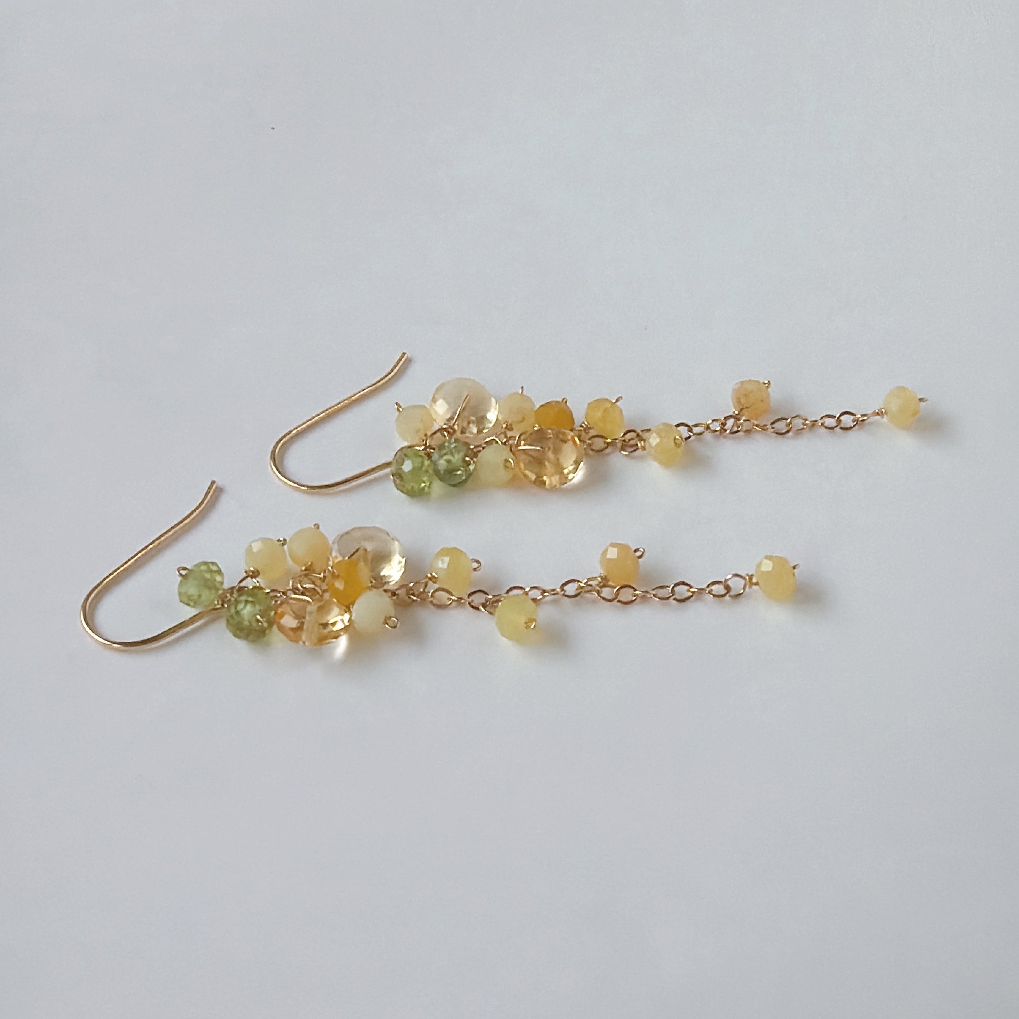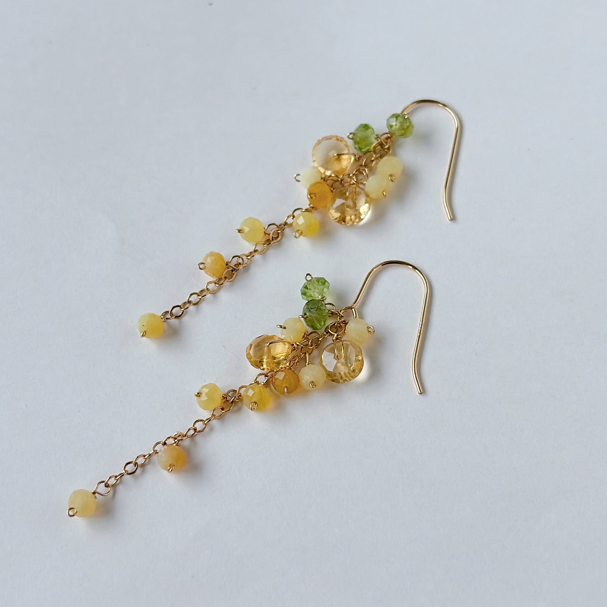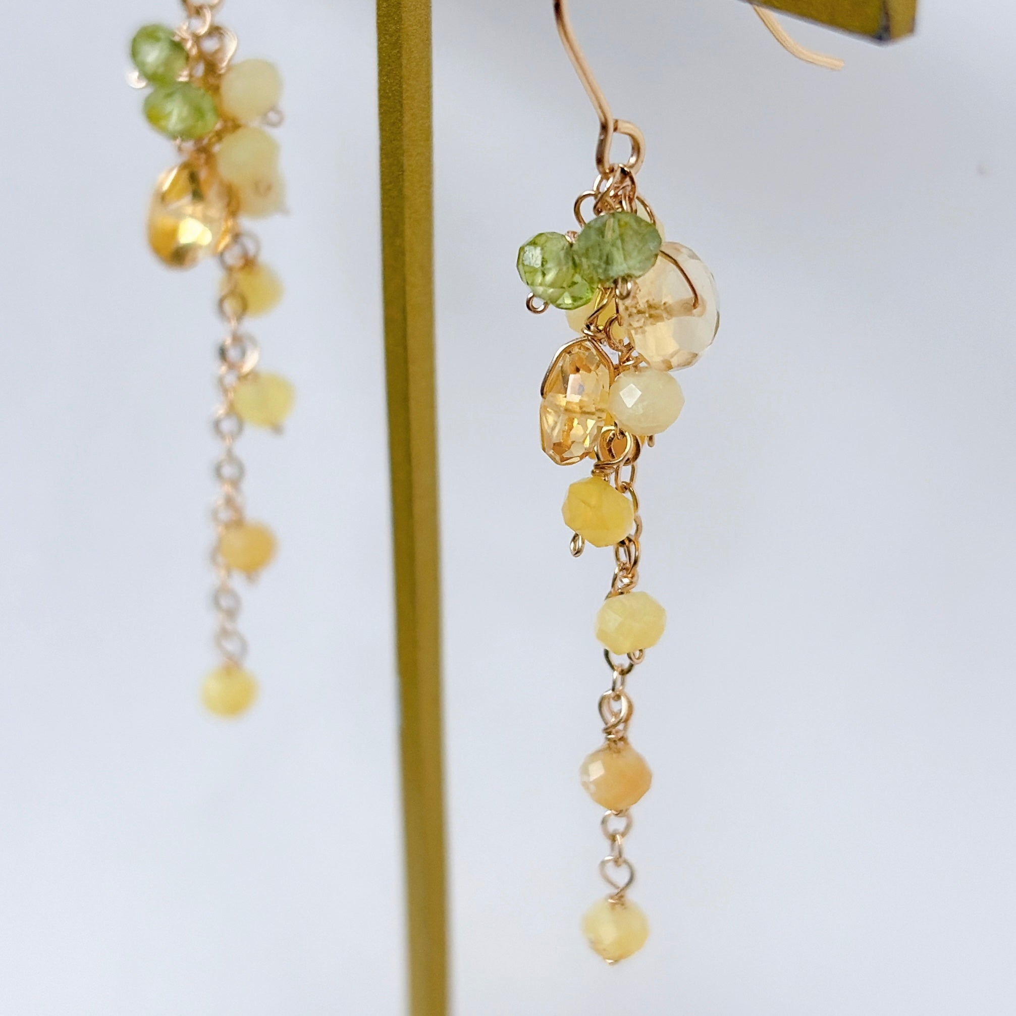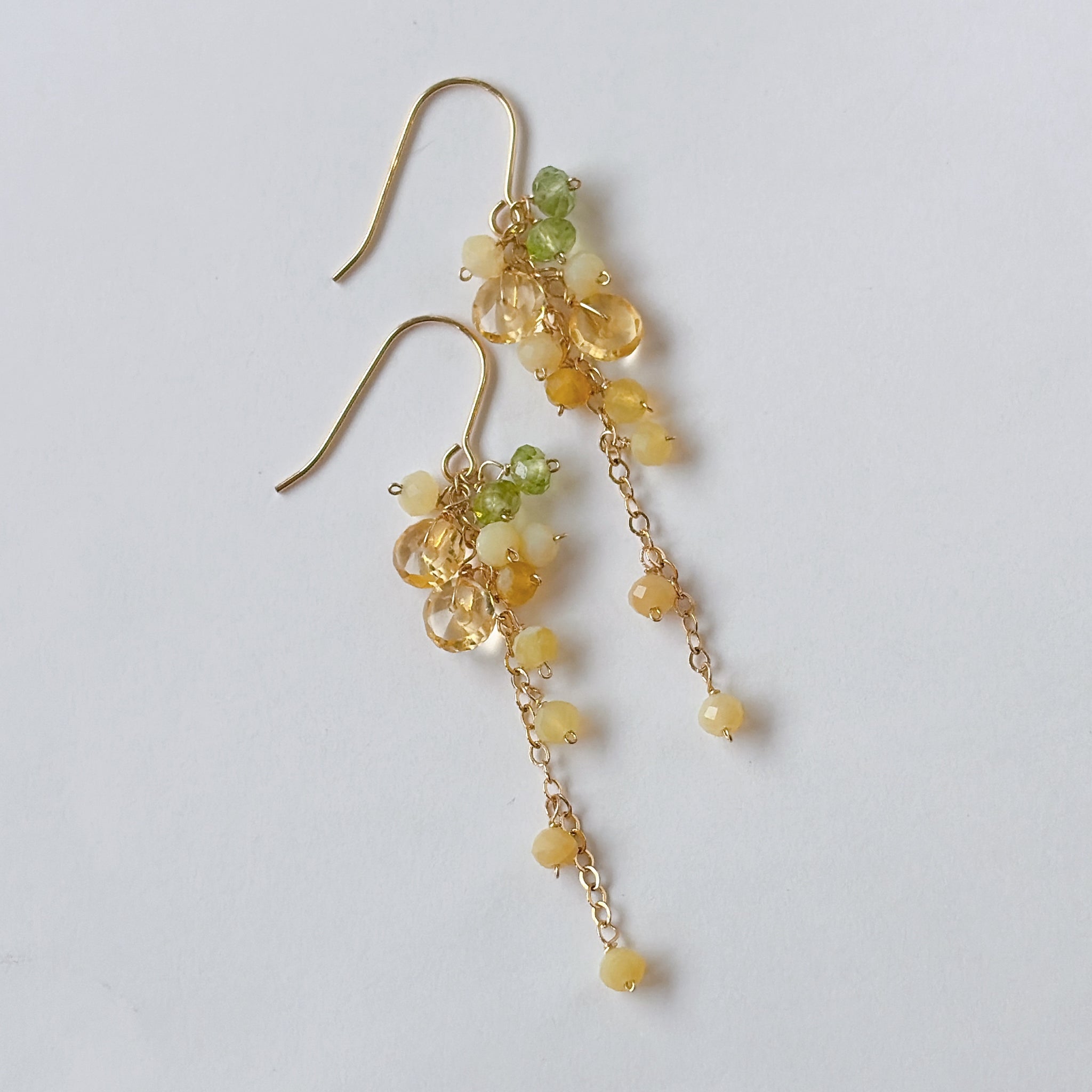 イエローオパールとシトリンとペリドットのミモザピアス