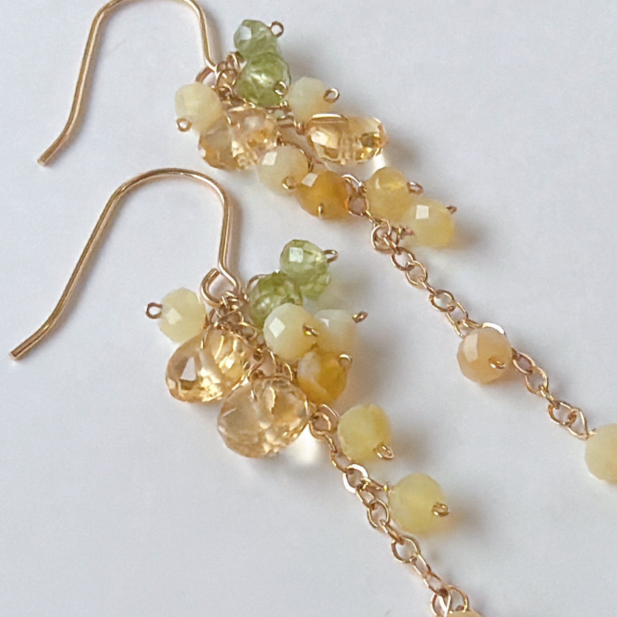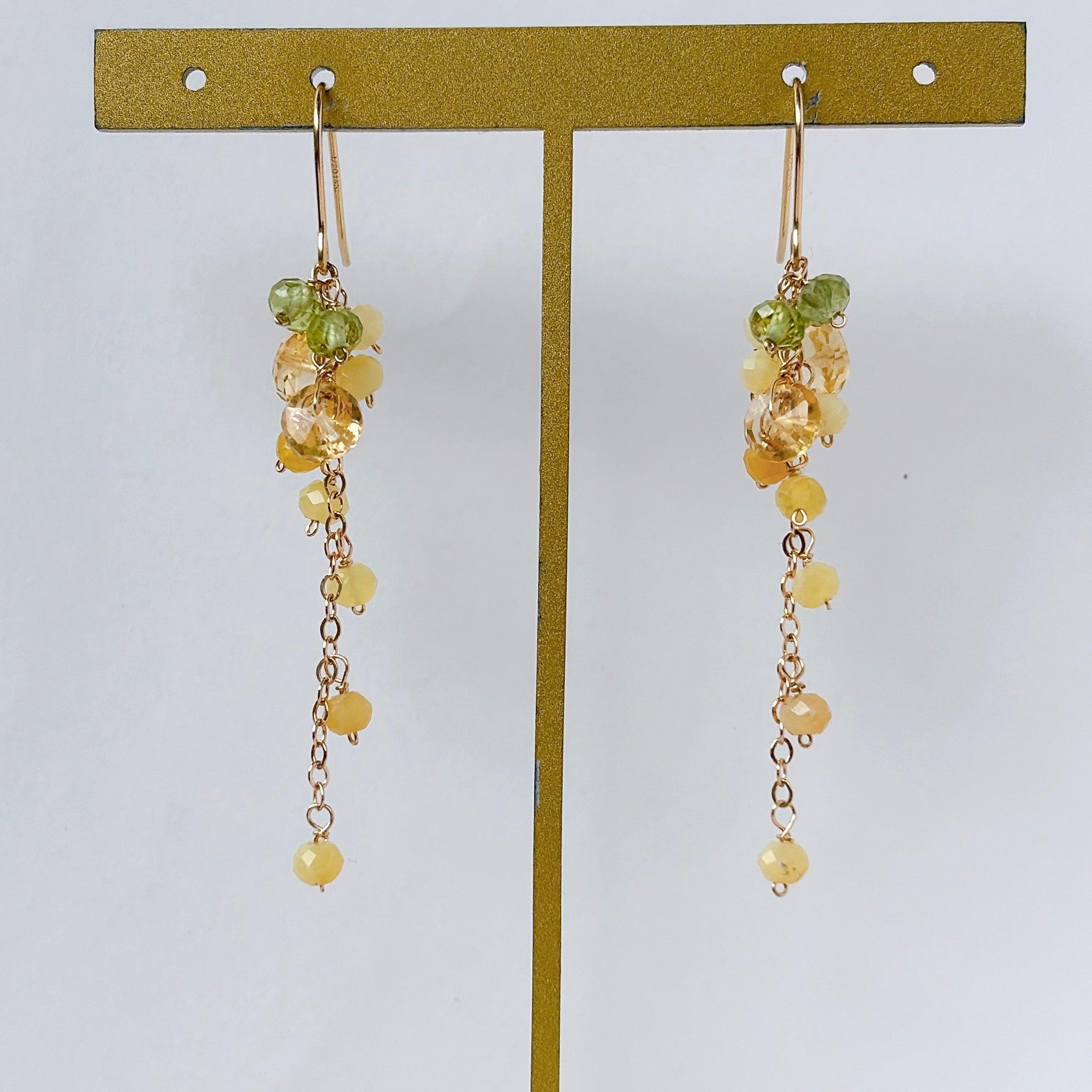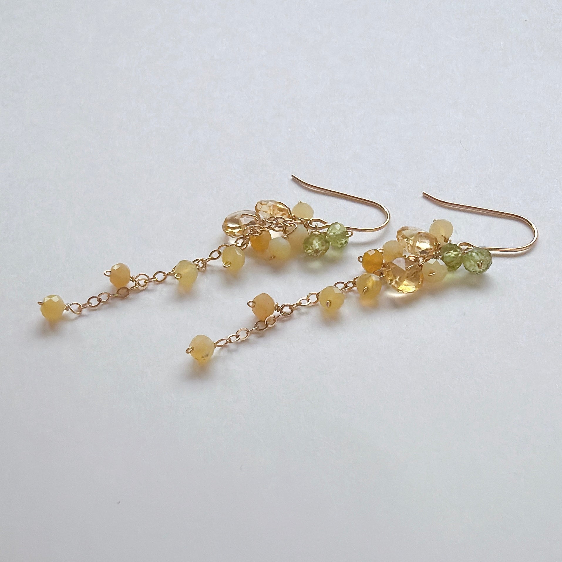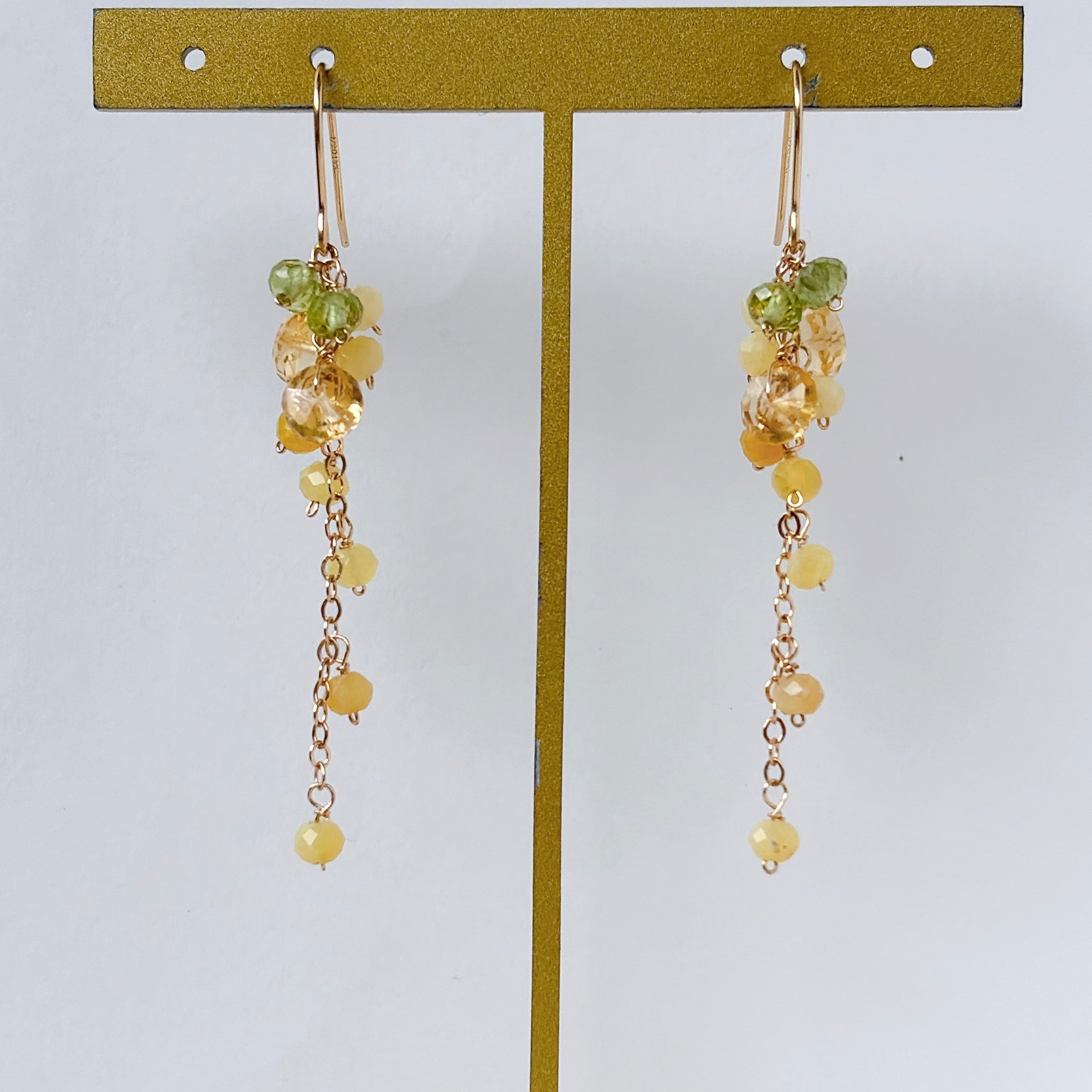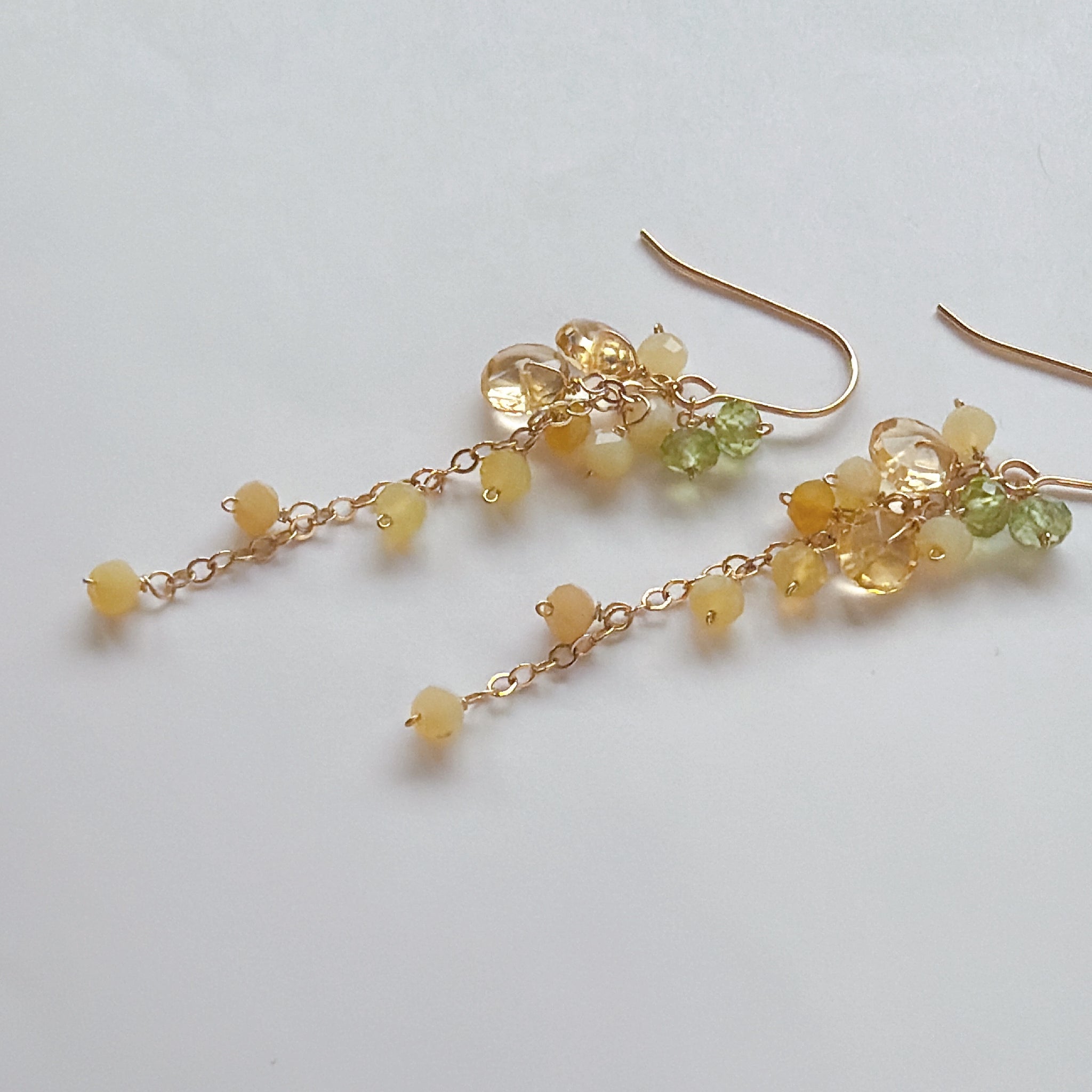 イエローオパールとシトリンとペリドットのミモザピアス