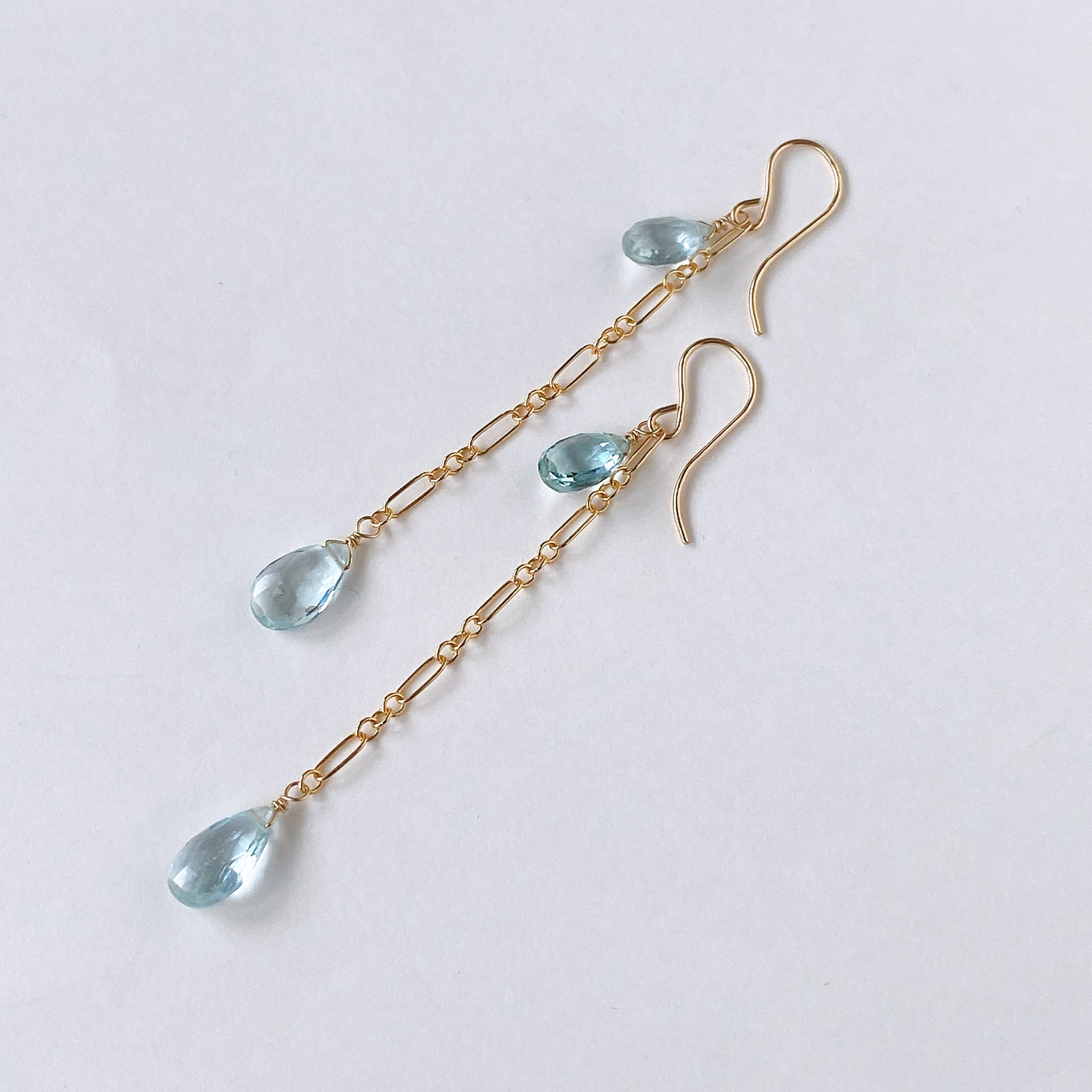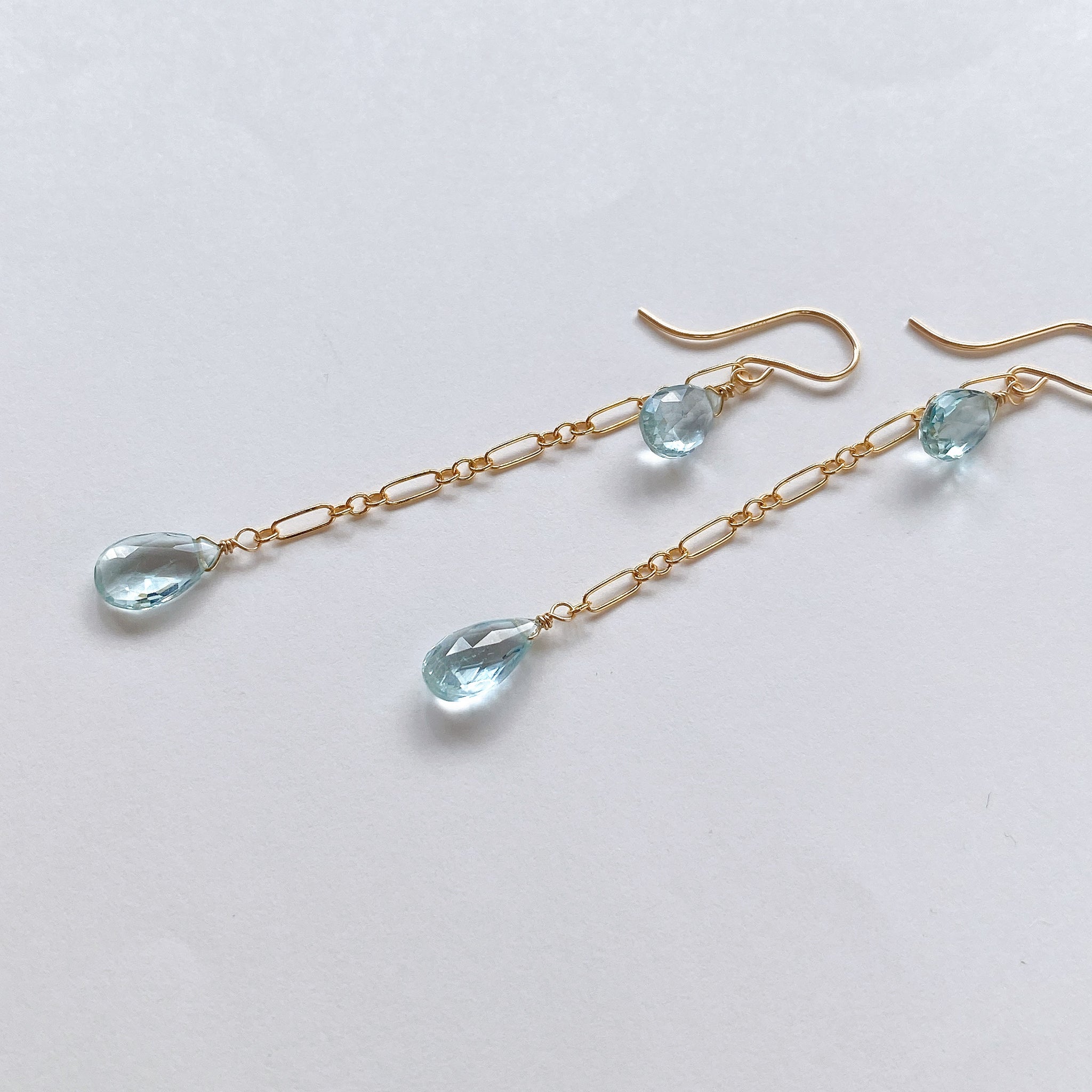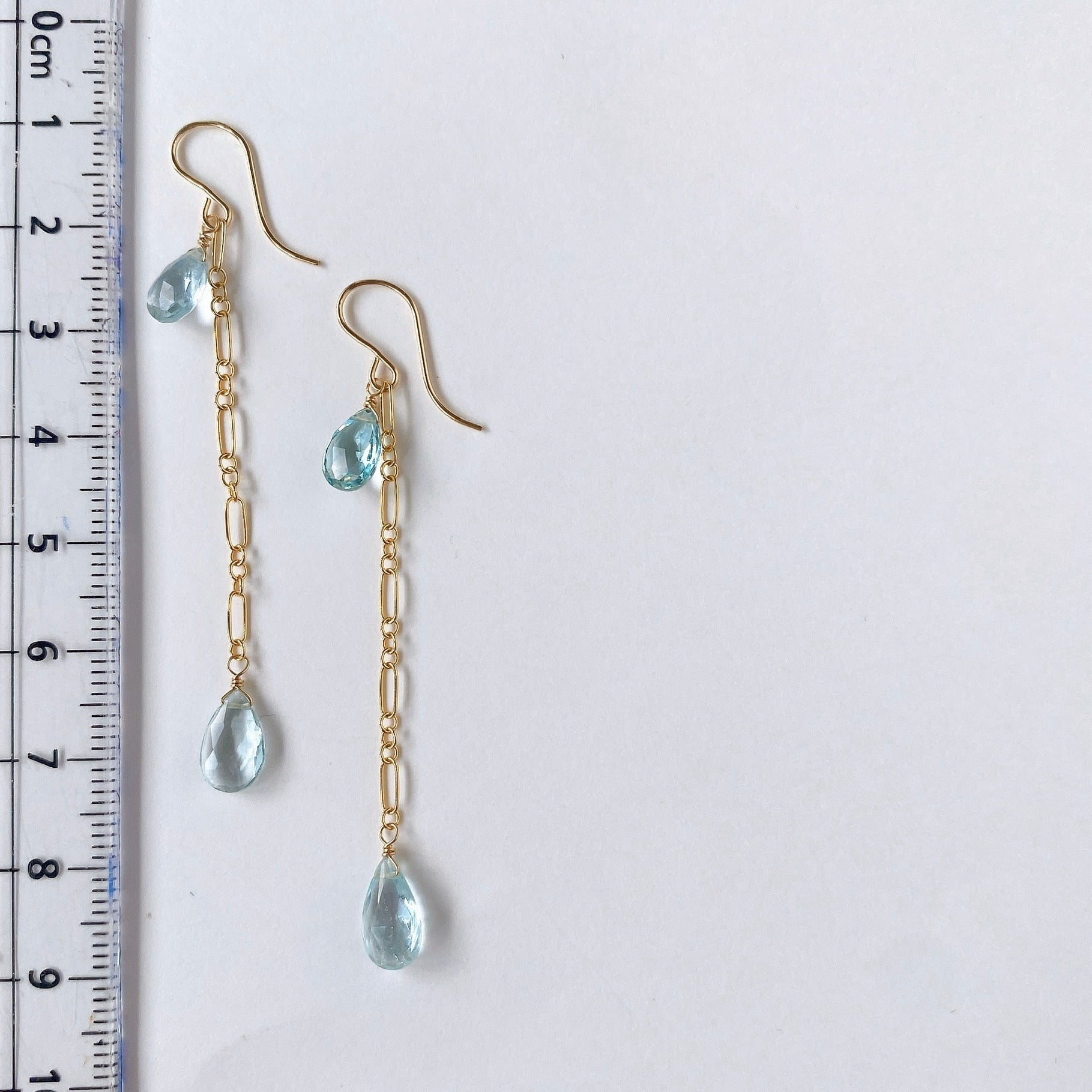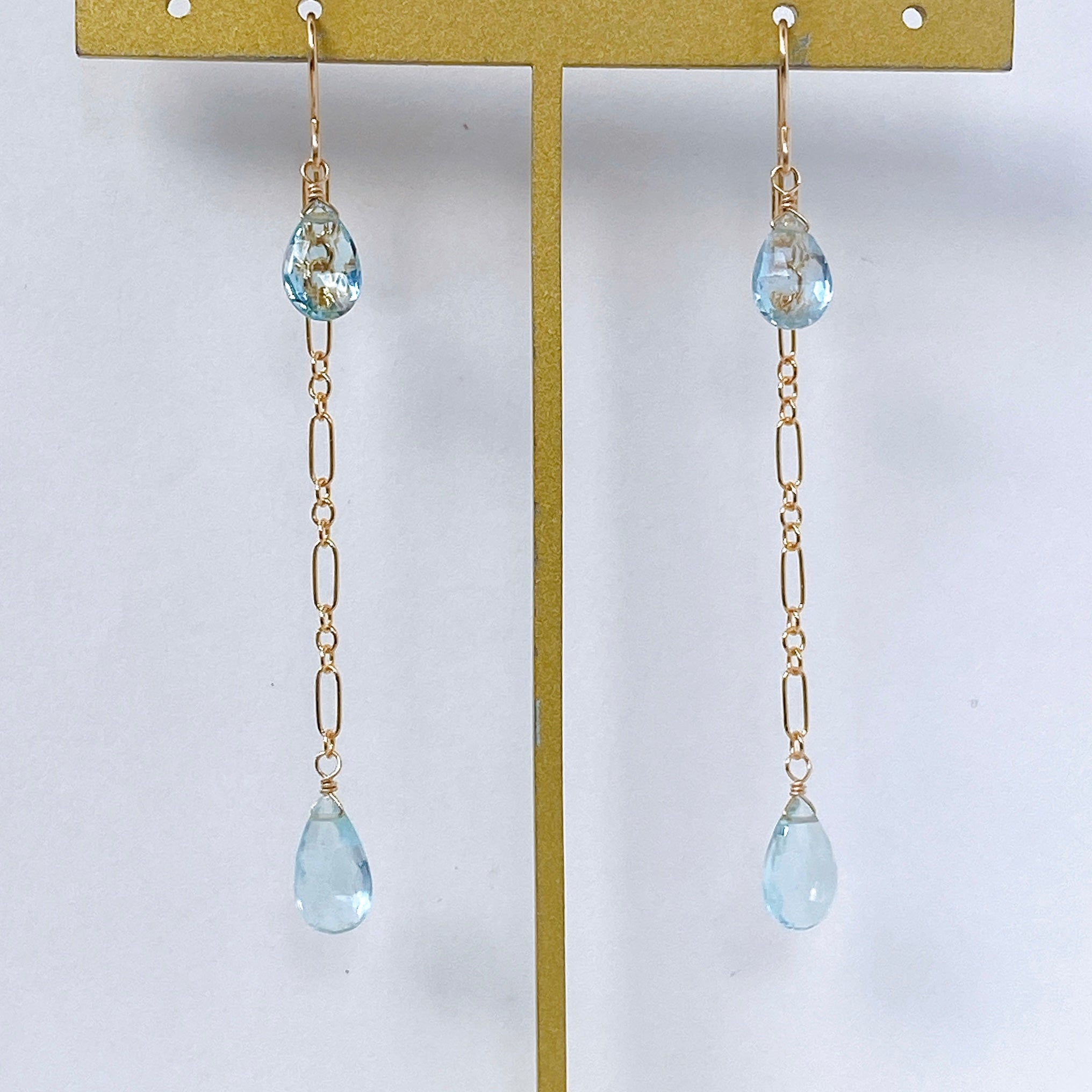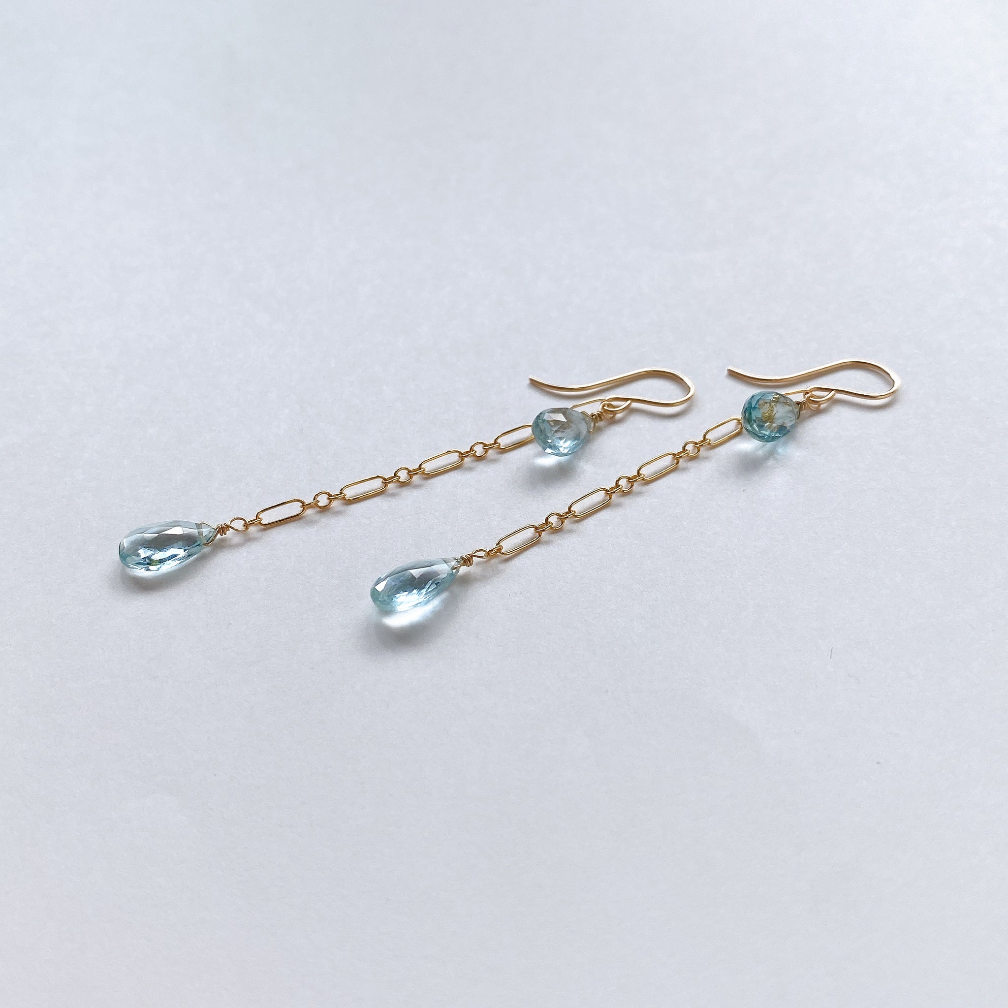 ペアシェイプカットのアクアマリンを使ってデザインした耳飾りです。