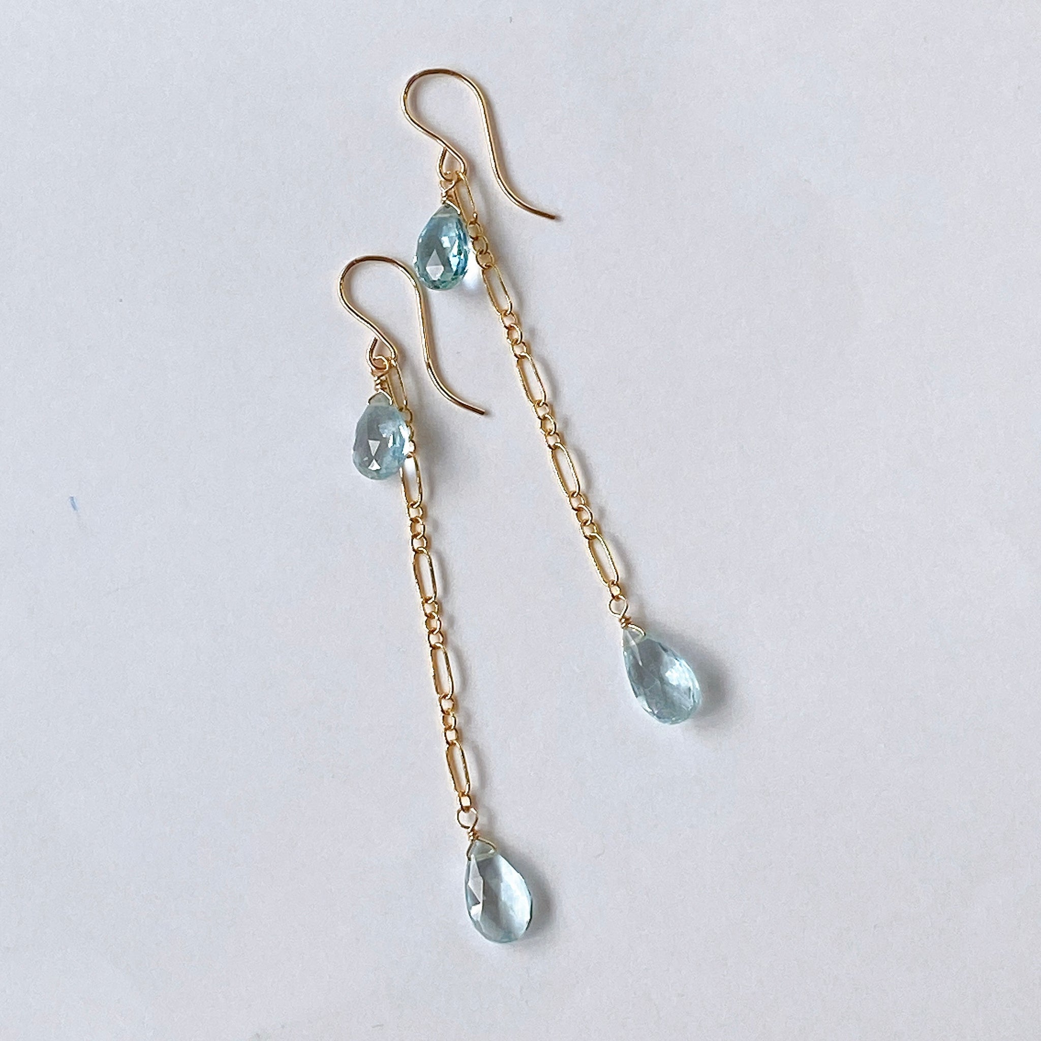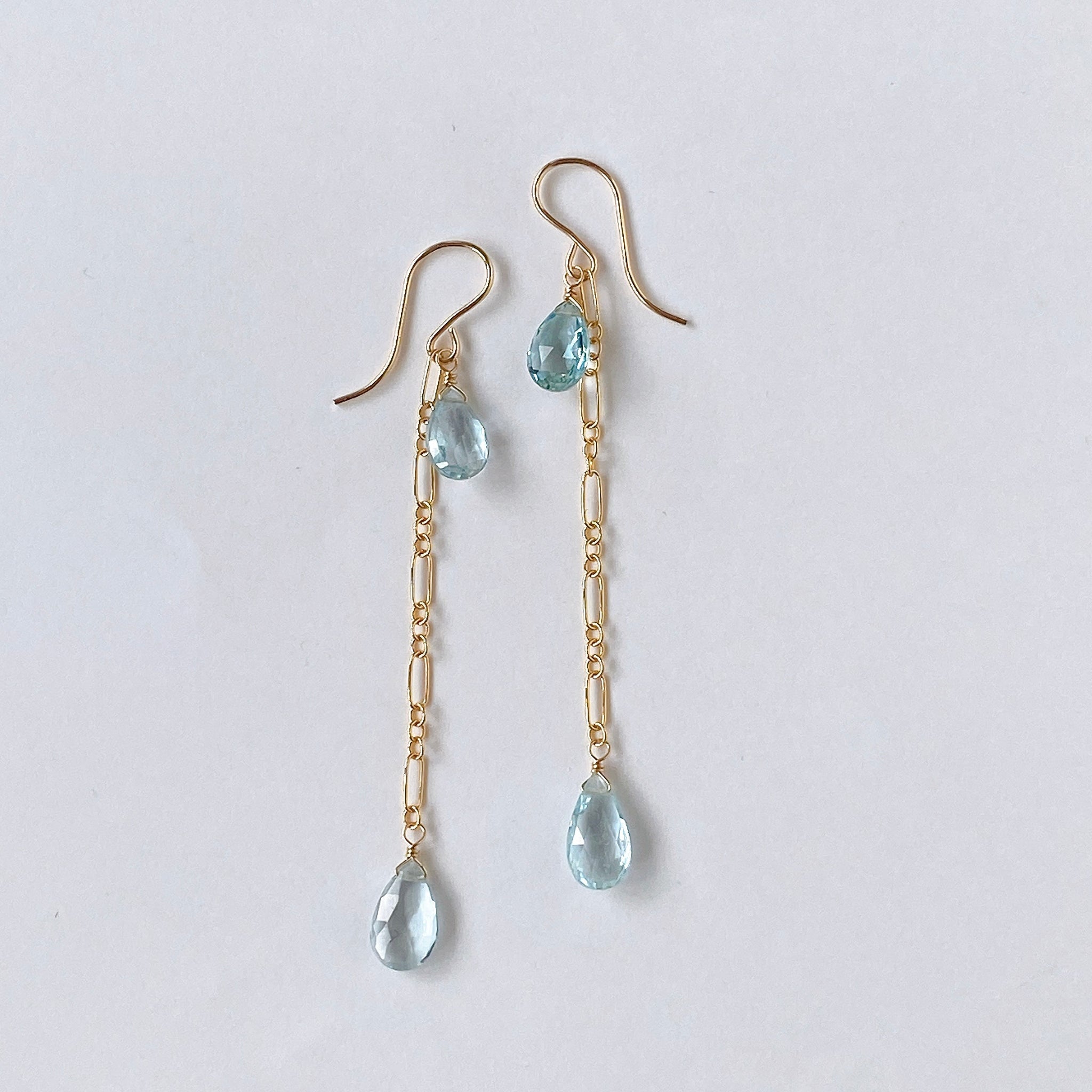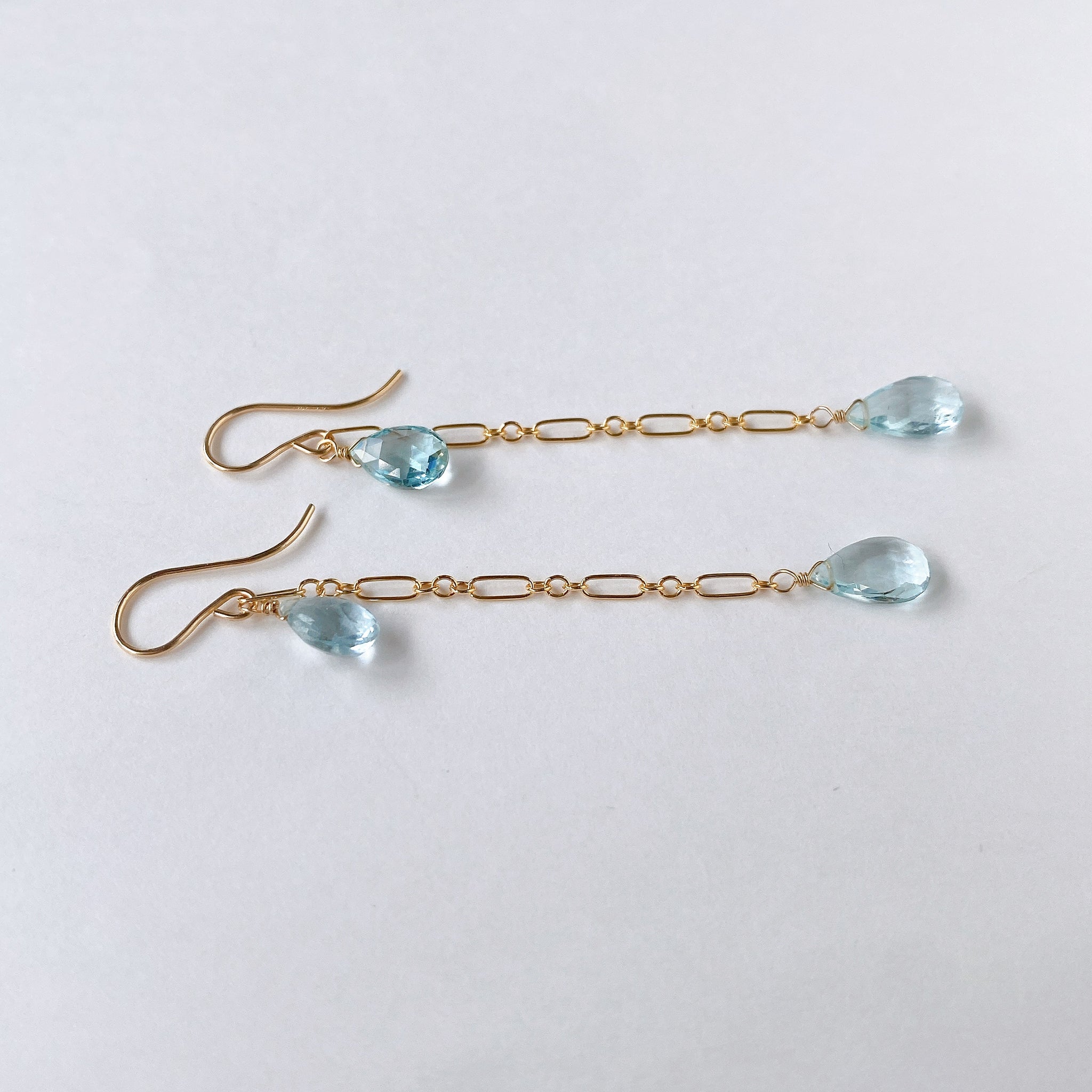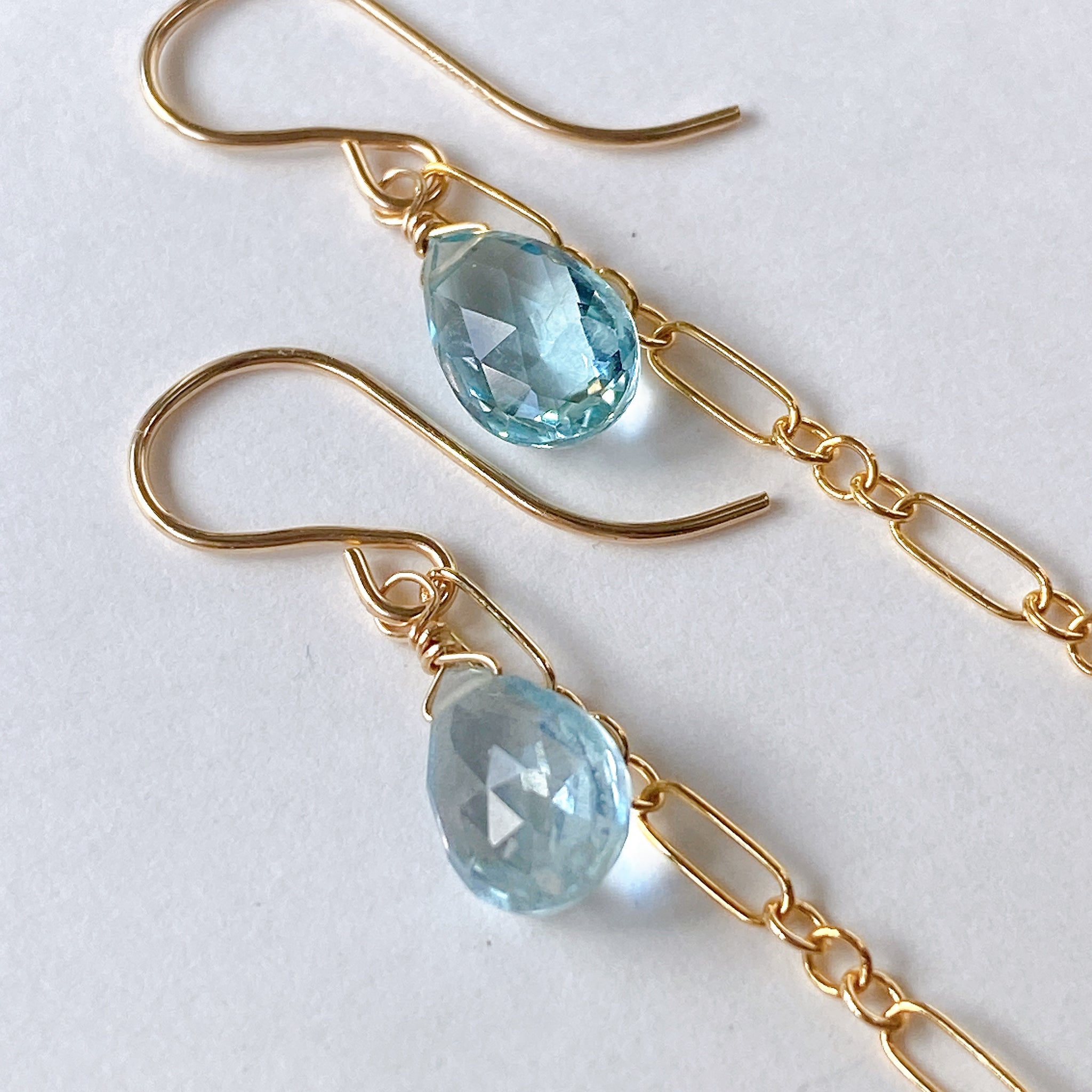 ペアシェイプカットのアクアマリンを使ってデザインした耳飾りです。