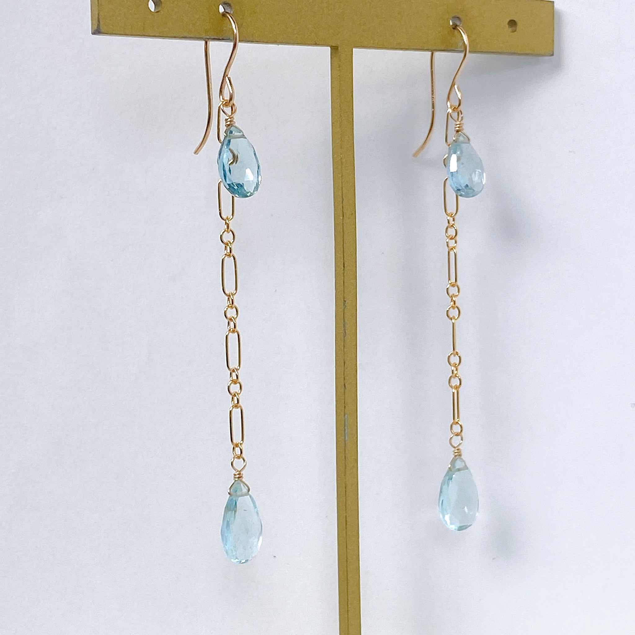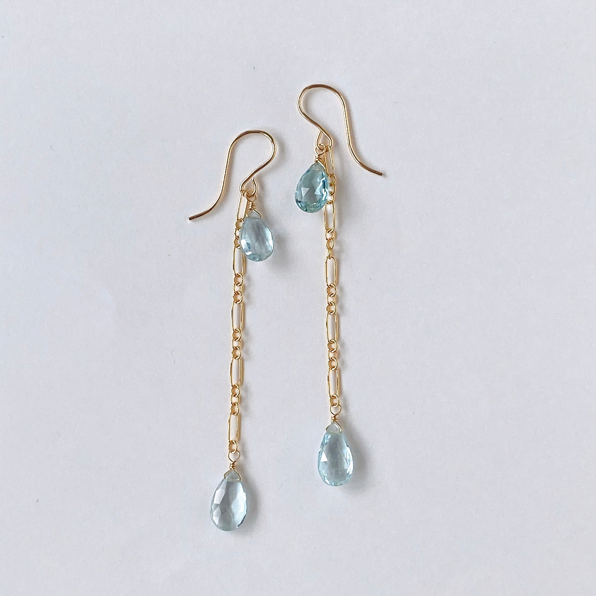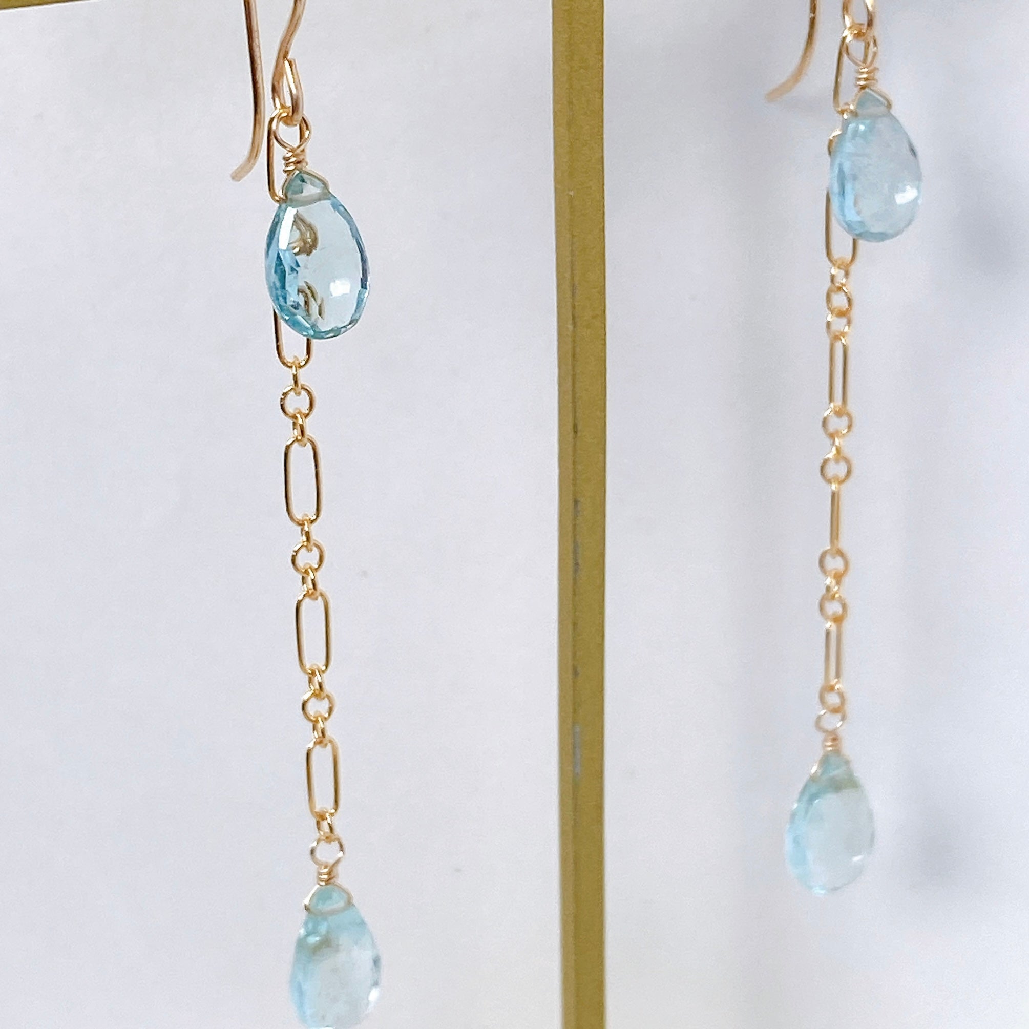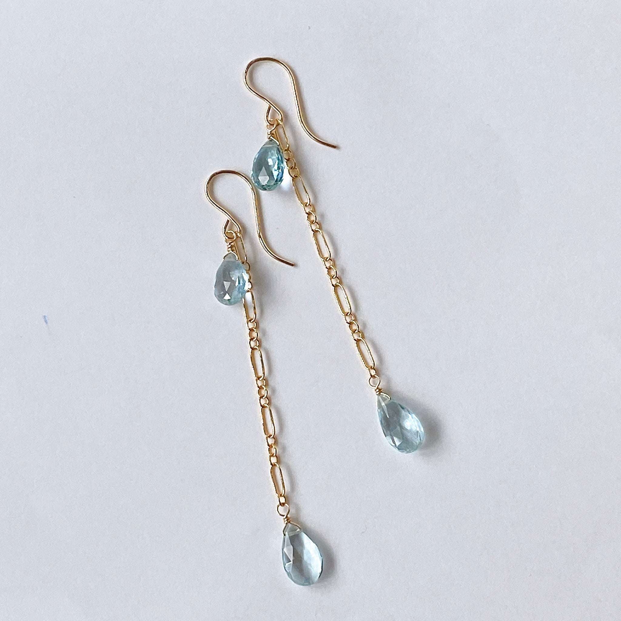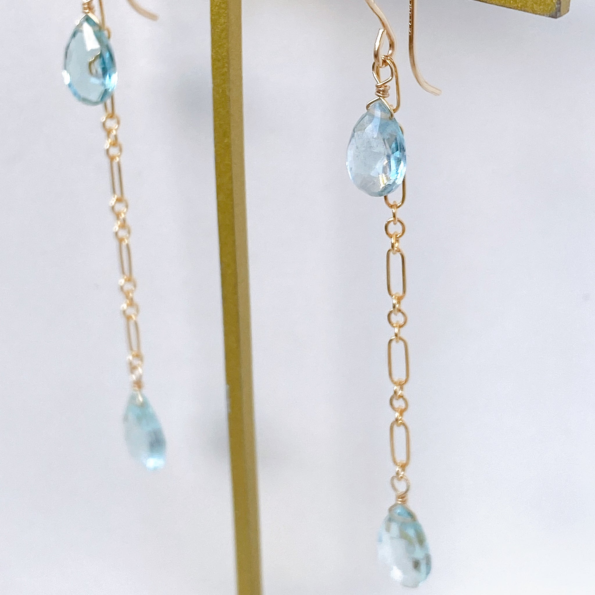 ペアシェイプカットのアクアマリンを使ってデザインした耳飾りです。