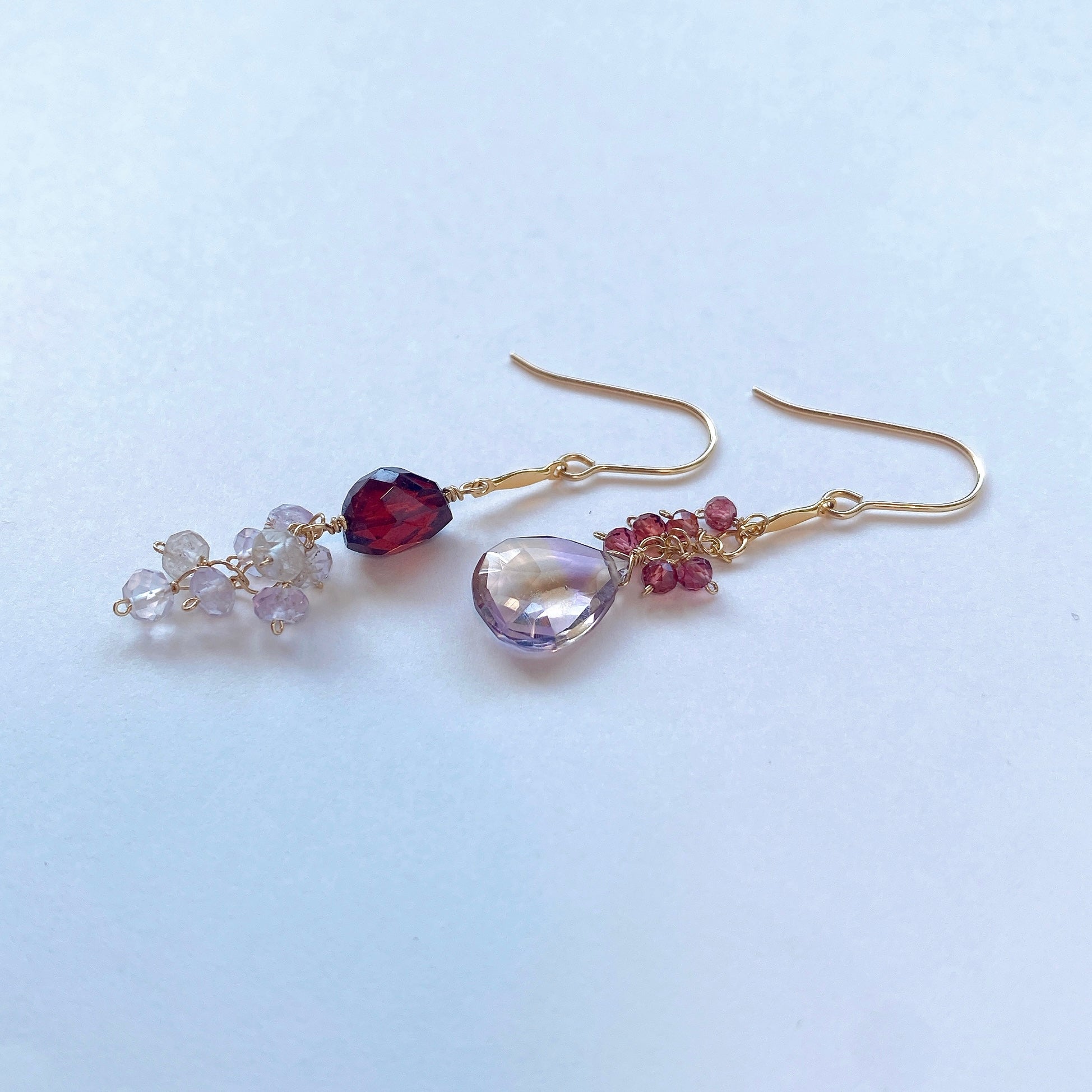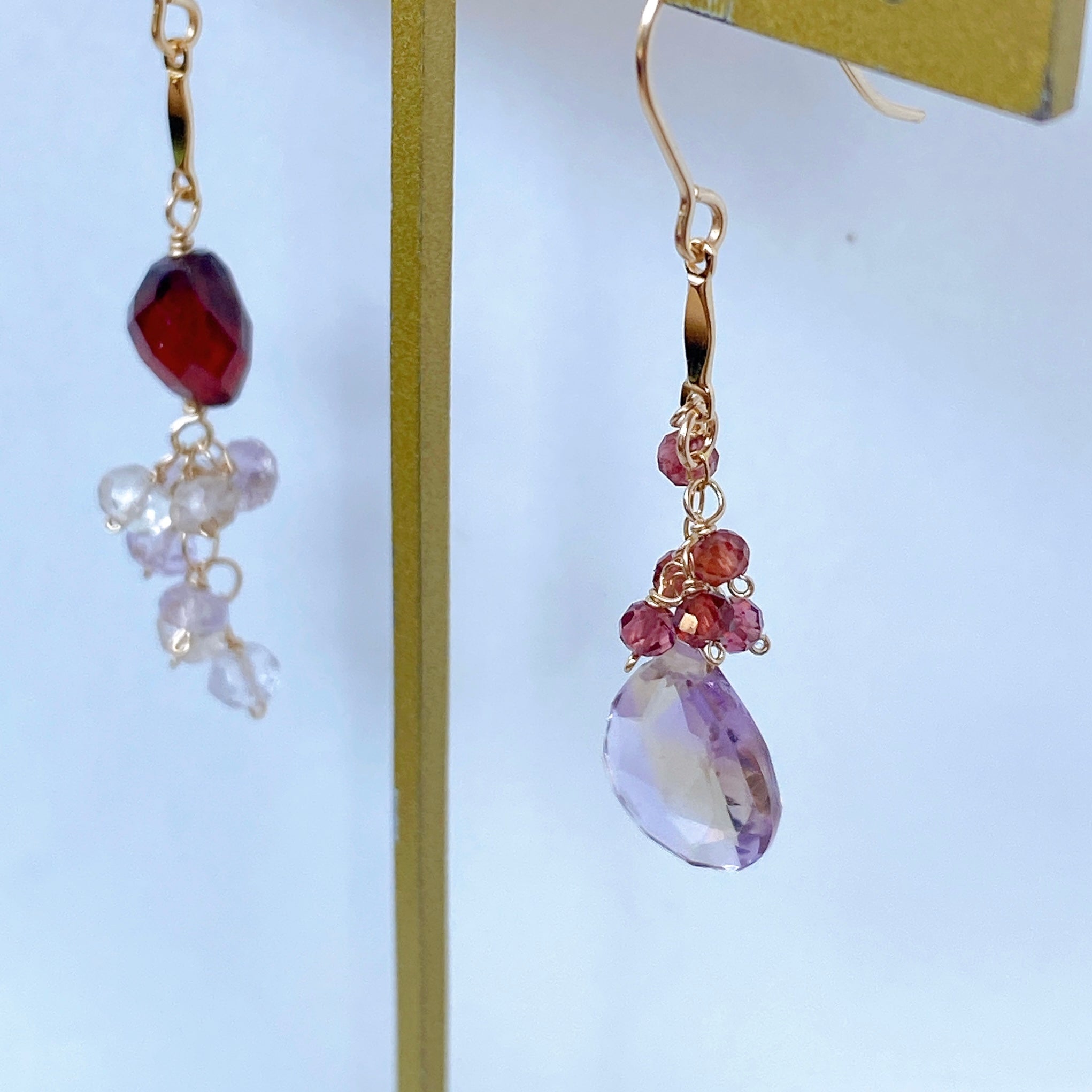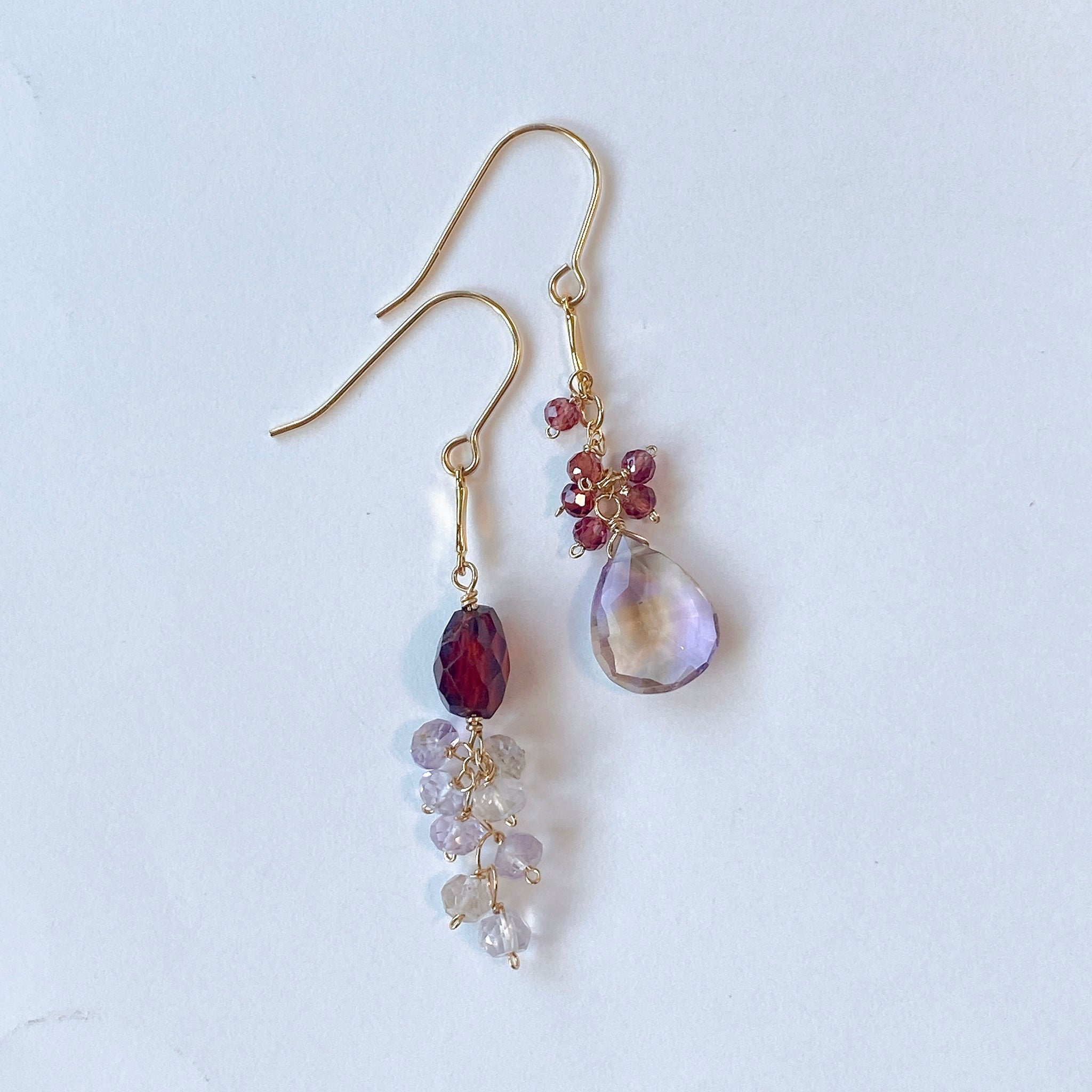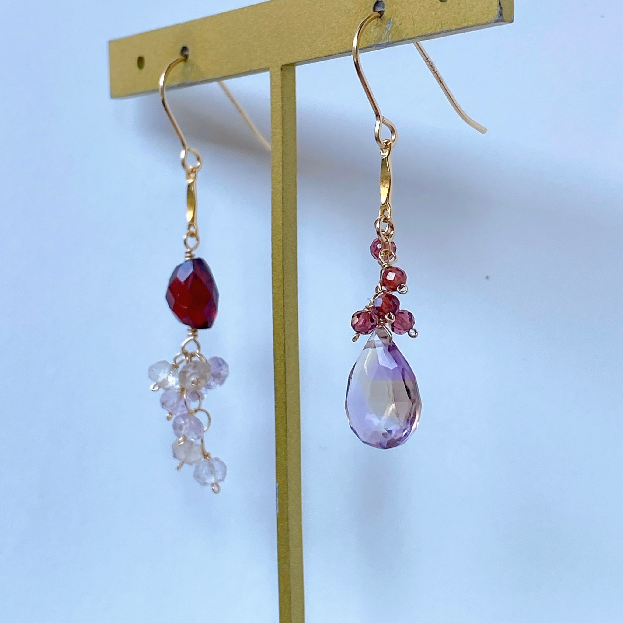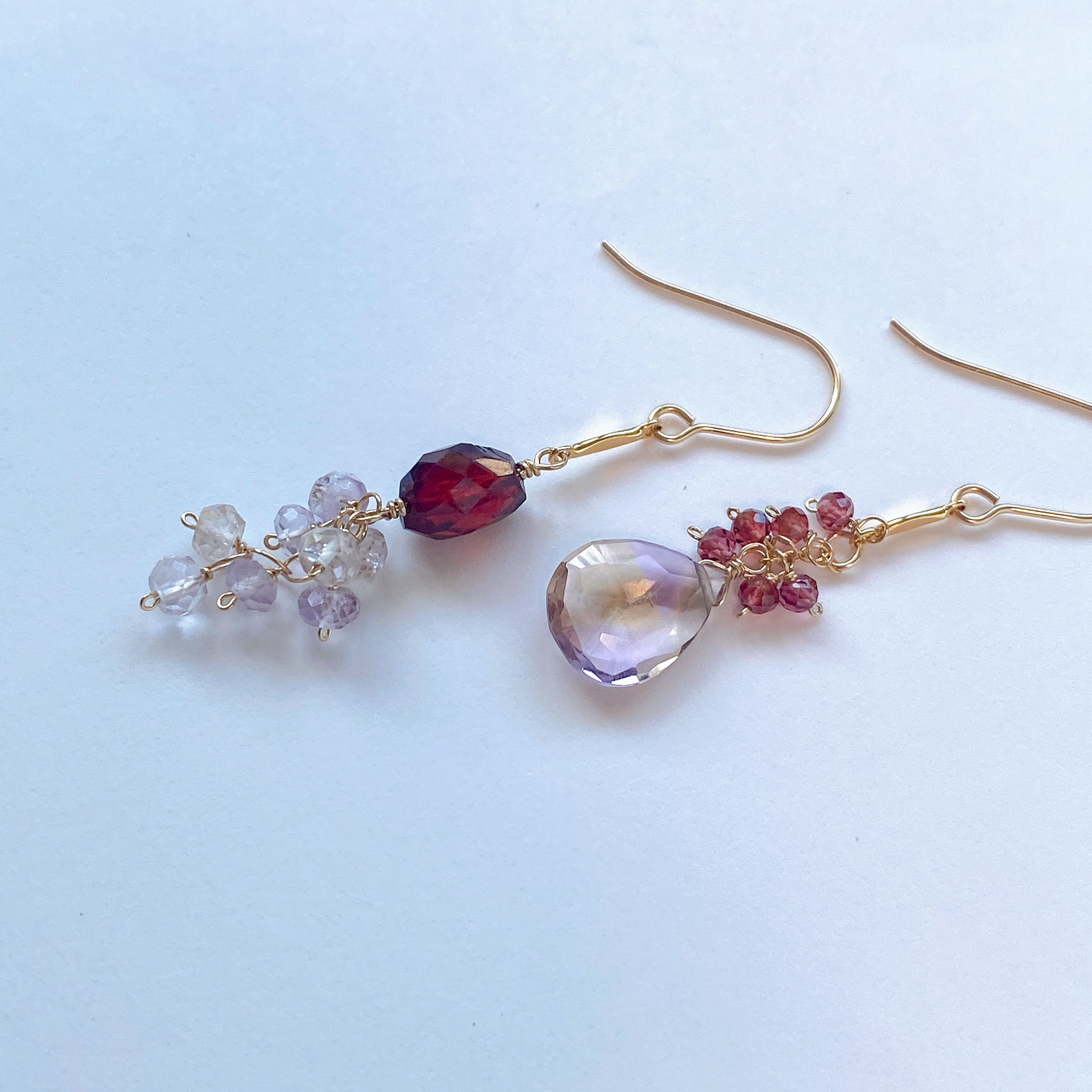 アメトリンとガーネットのアシンメトリーピアス