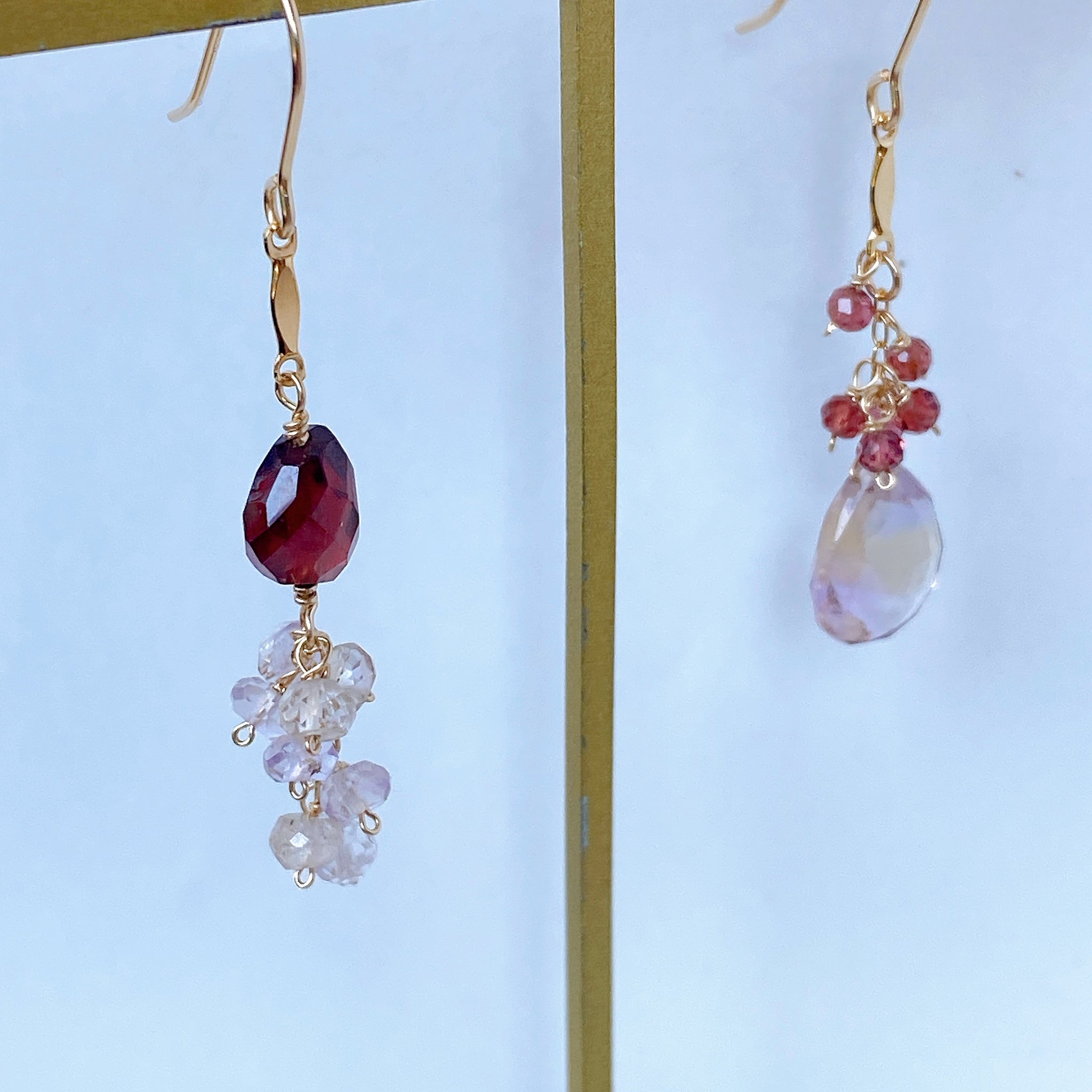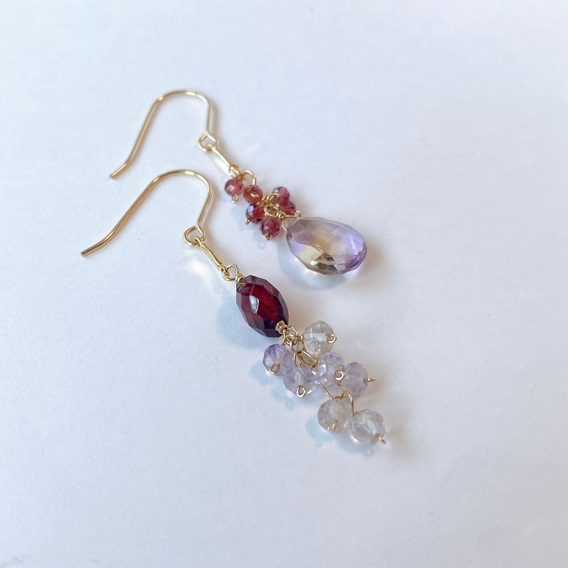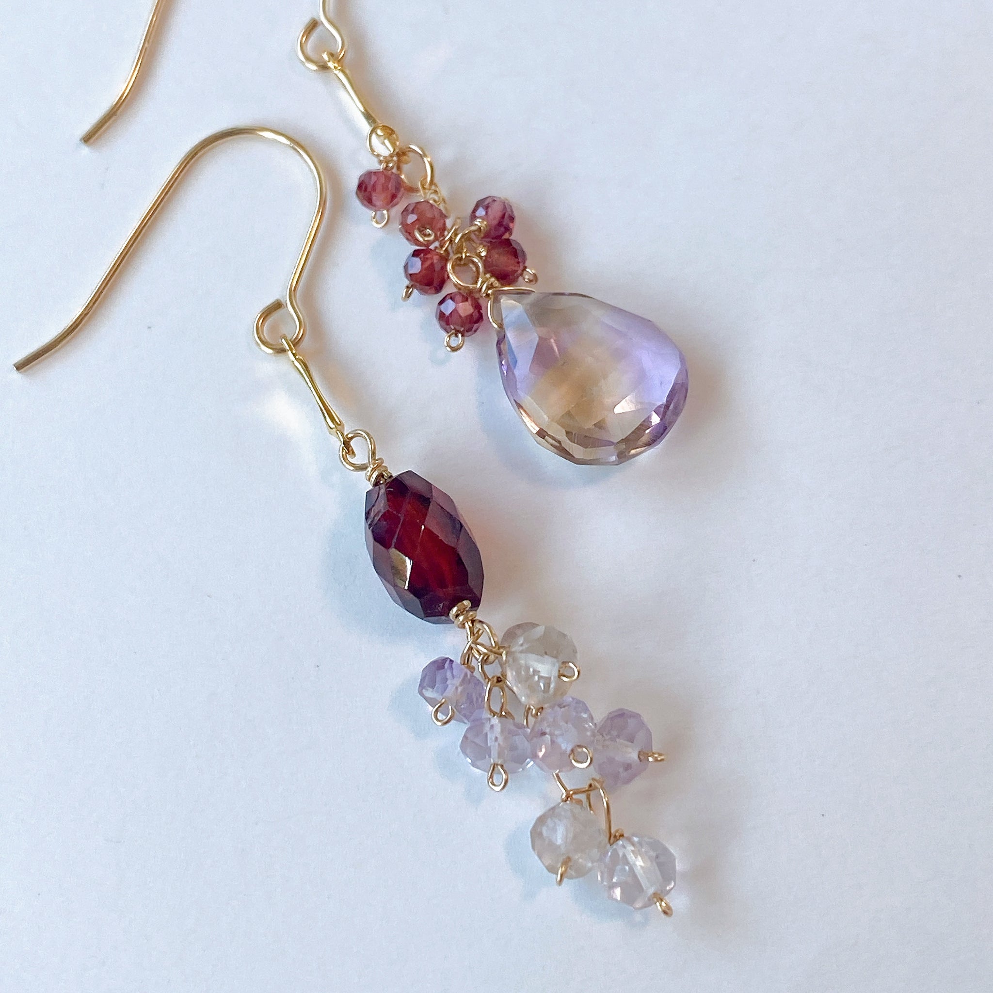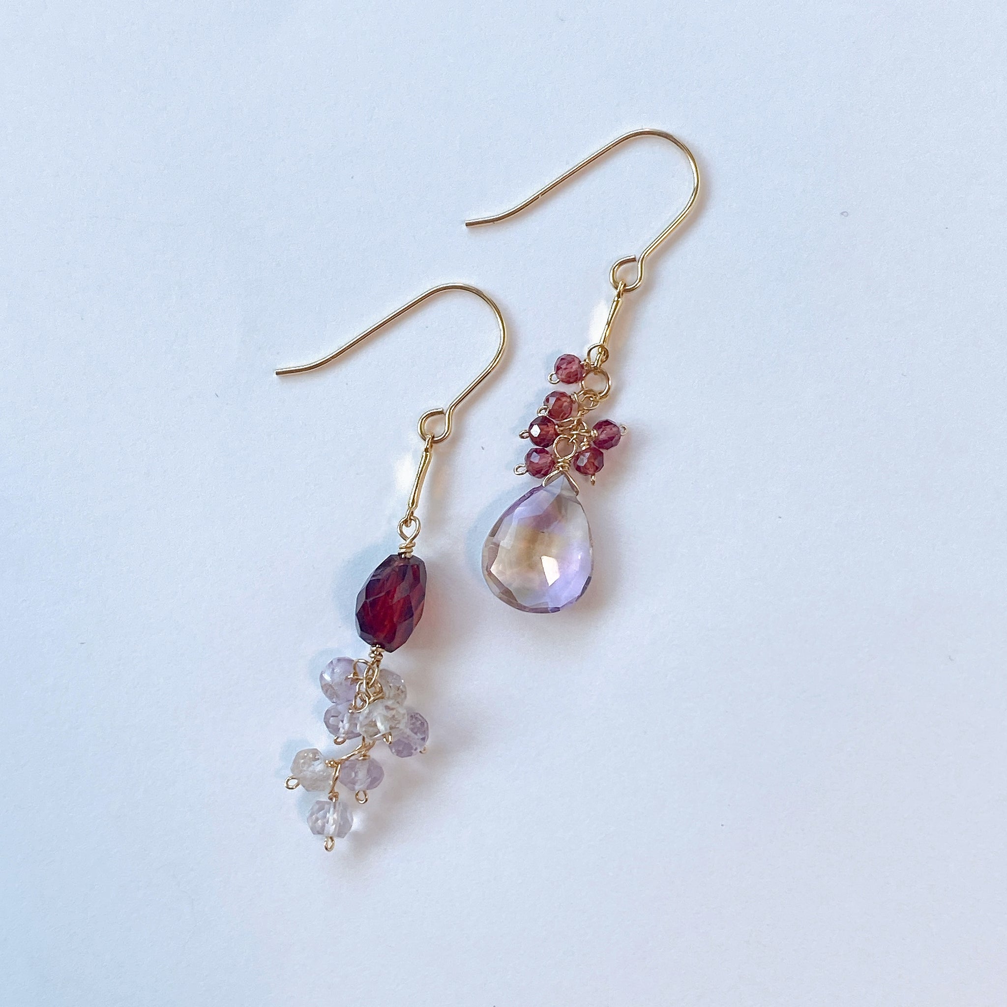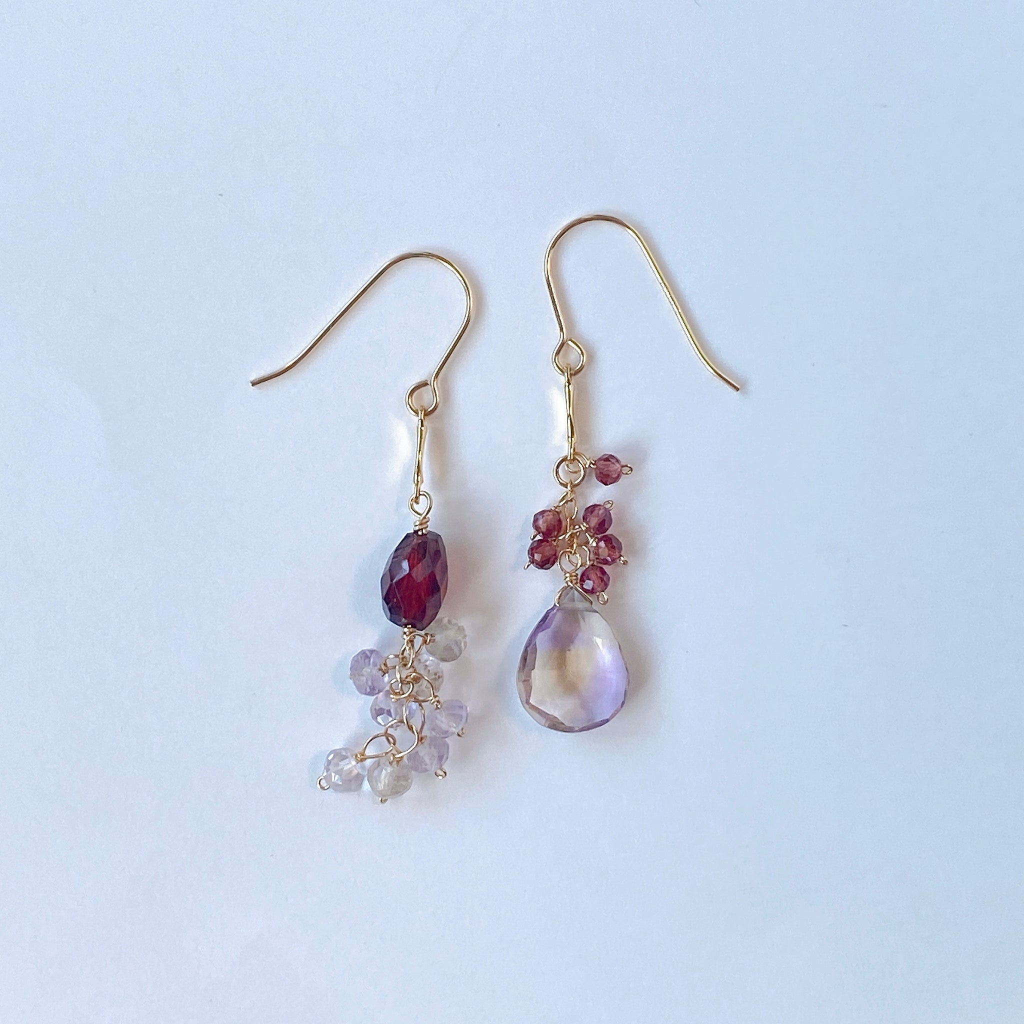 アメトリンとガーネットのアシンメトリーピアス