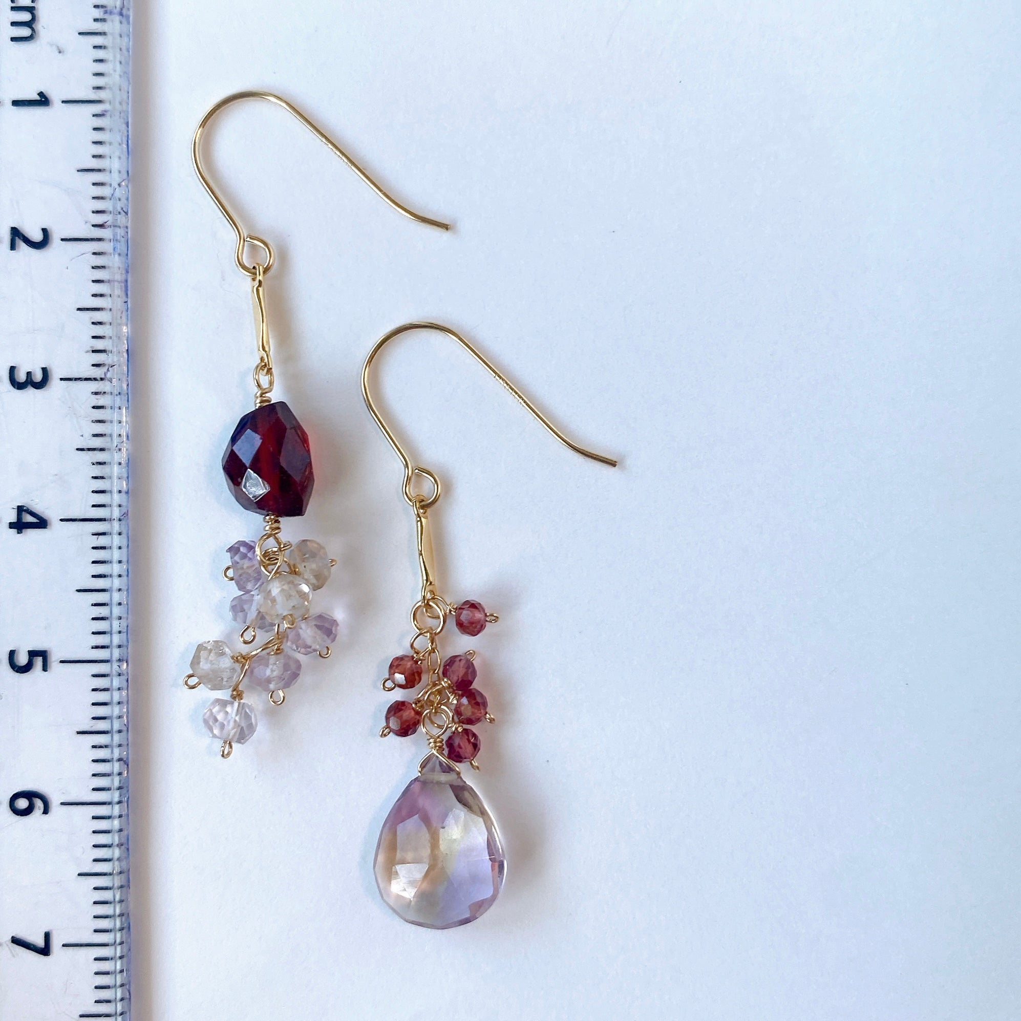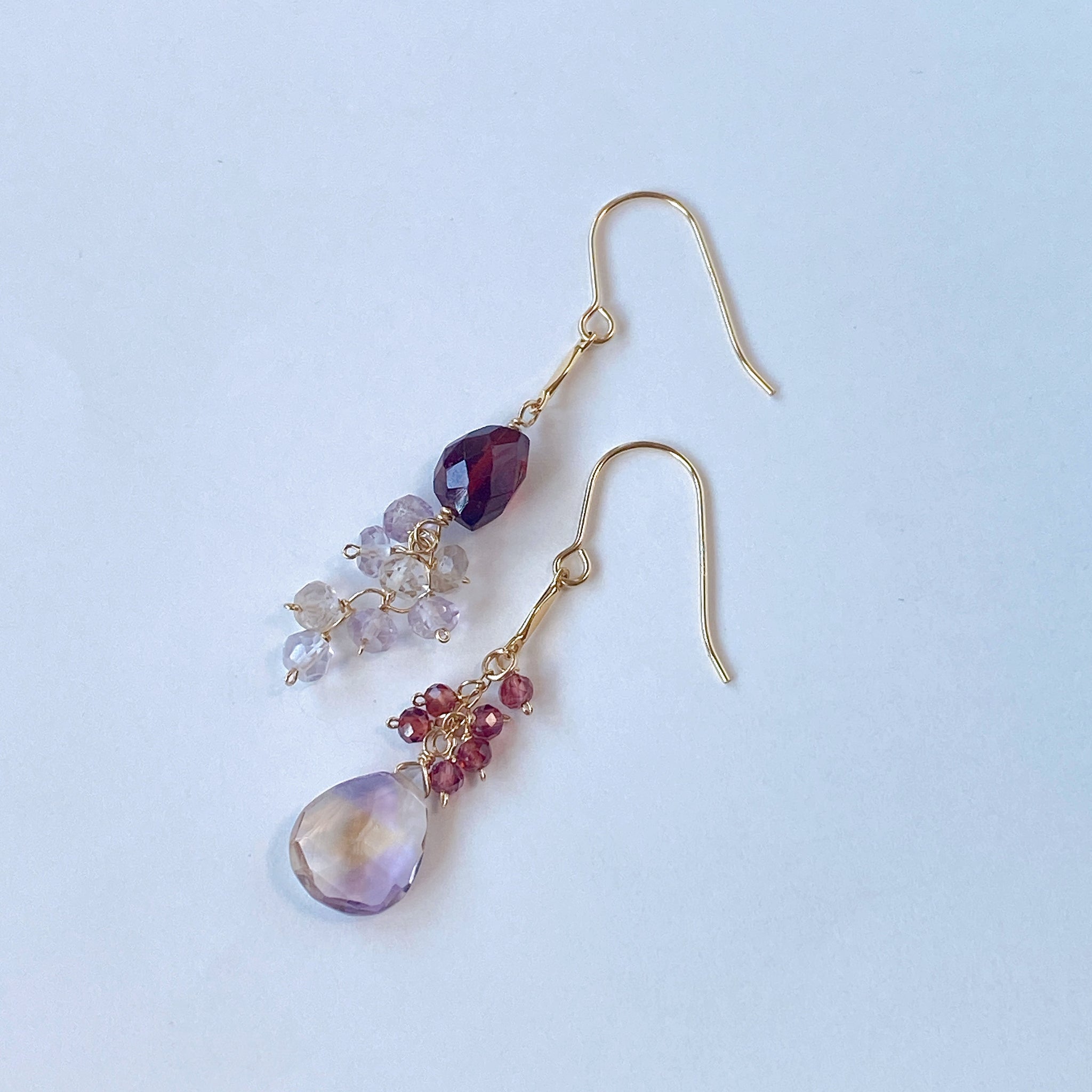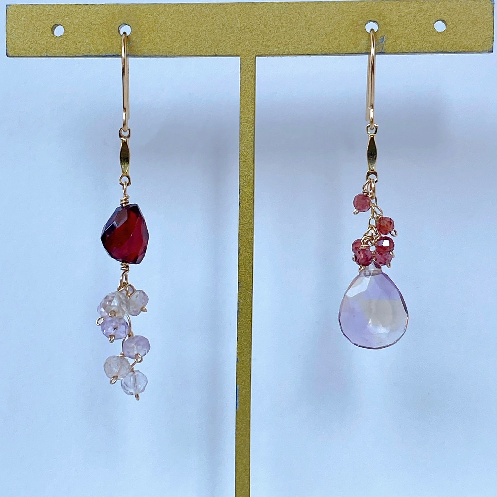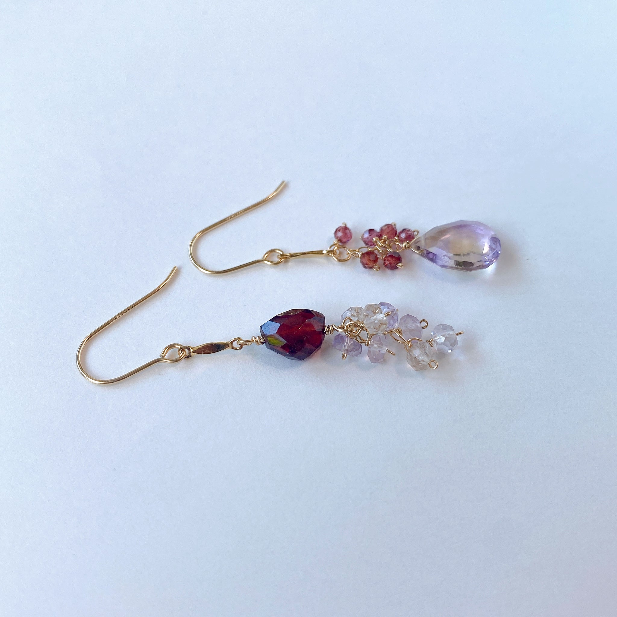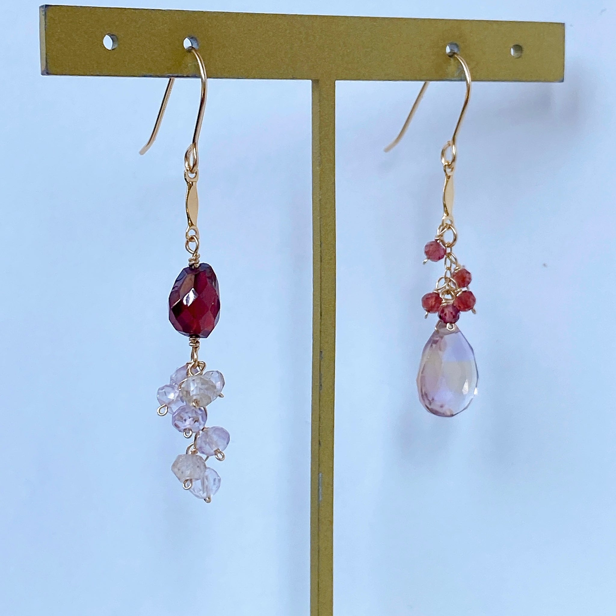 アメトリンとガーネットのアシンメトリーピアス