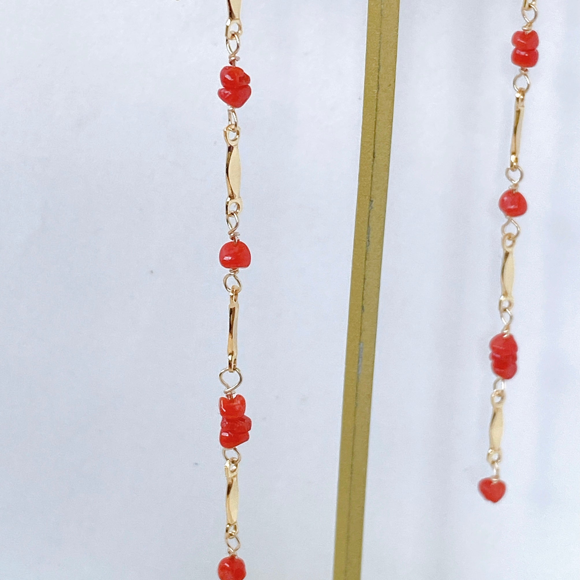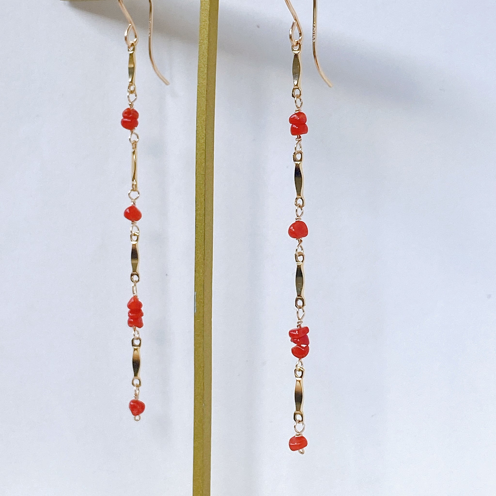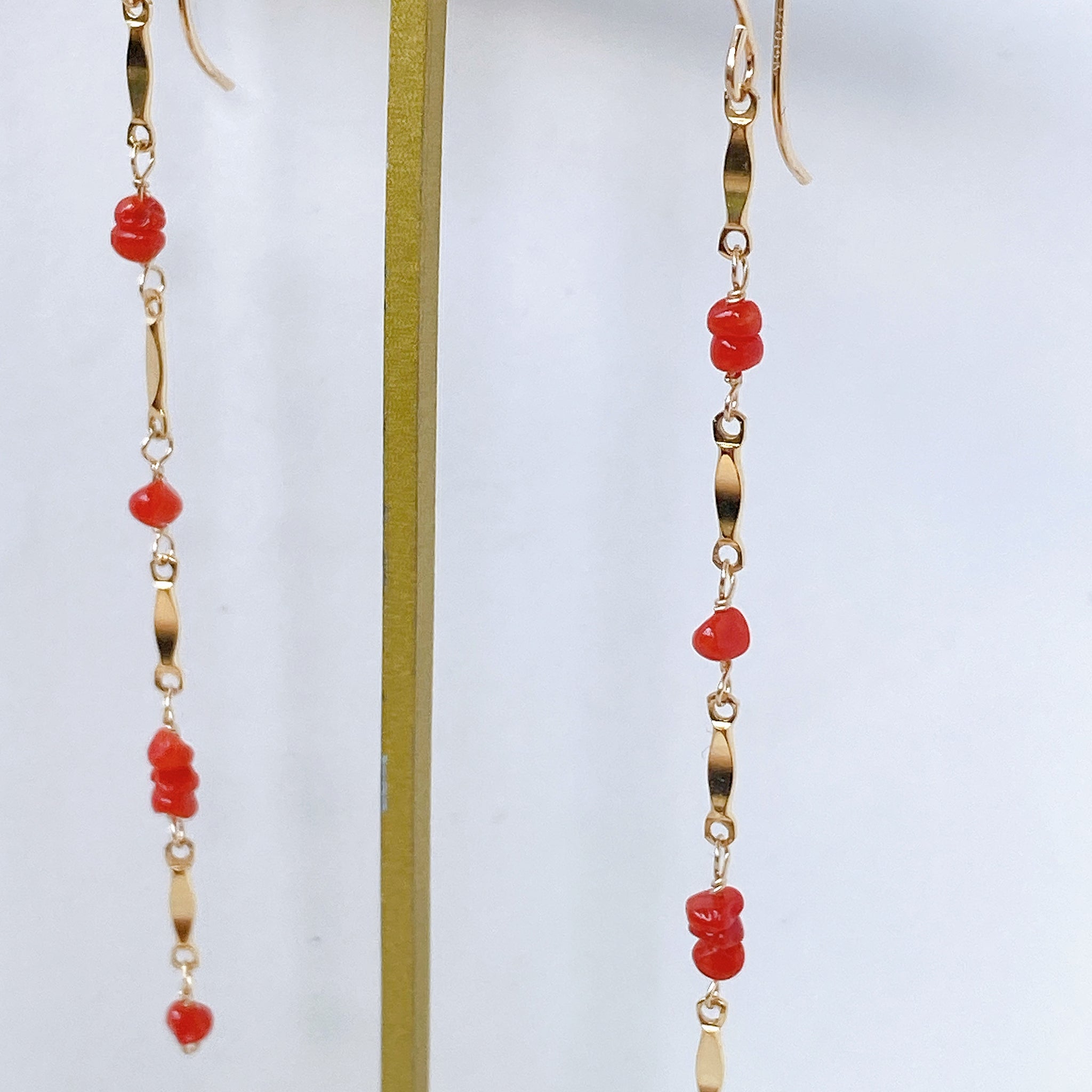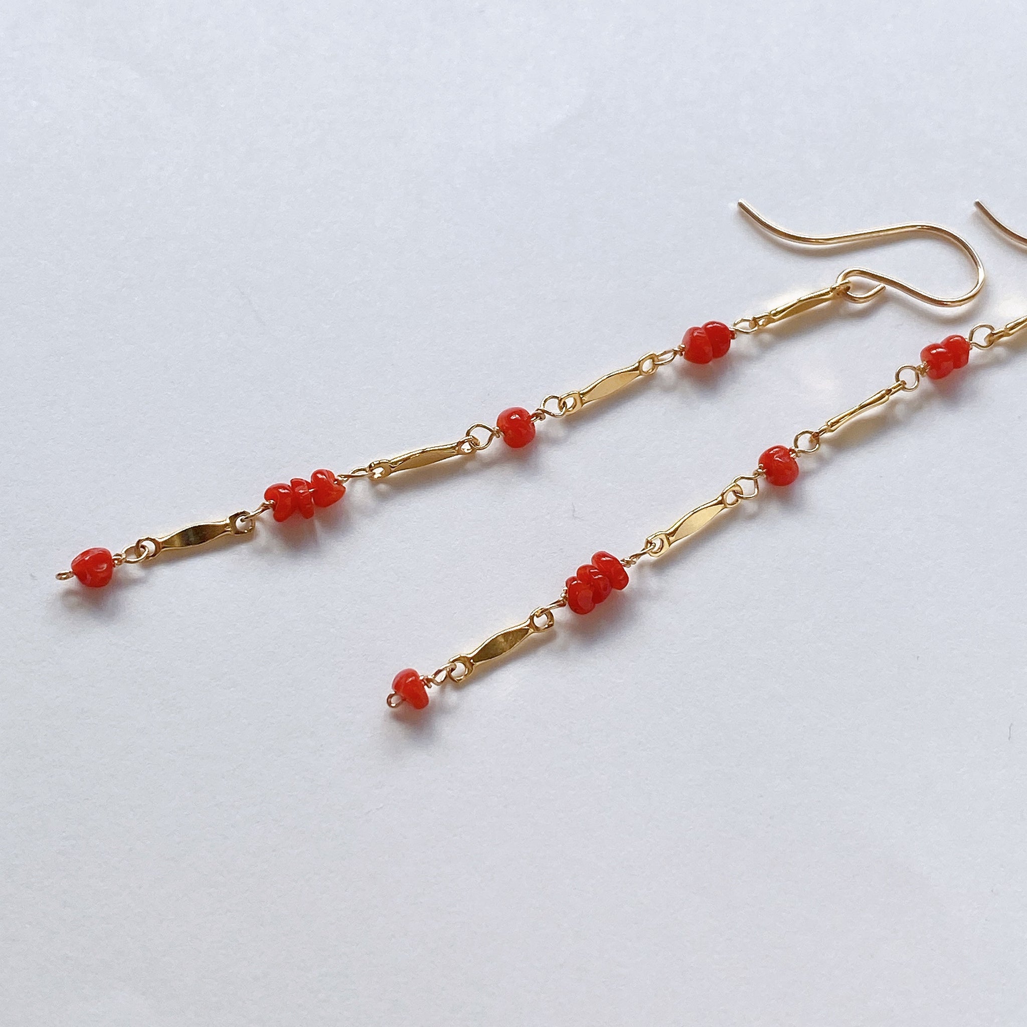 イタリア産天然赤珊瑚赤サンゴの極小粒を使ってデザインした耳飾りです。