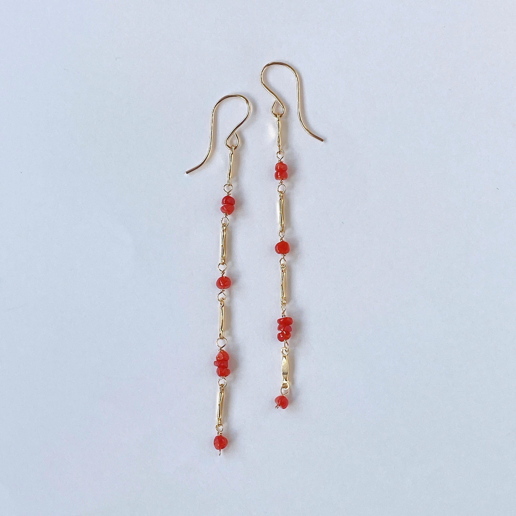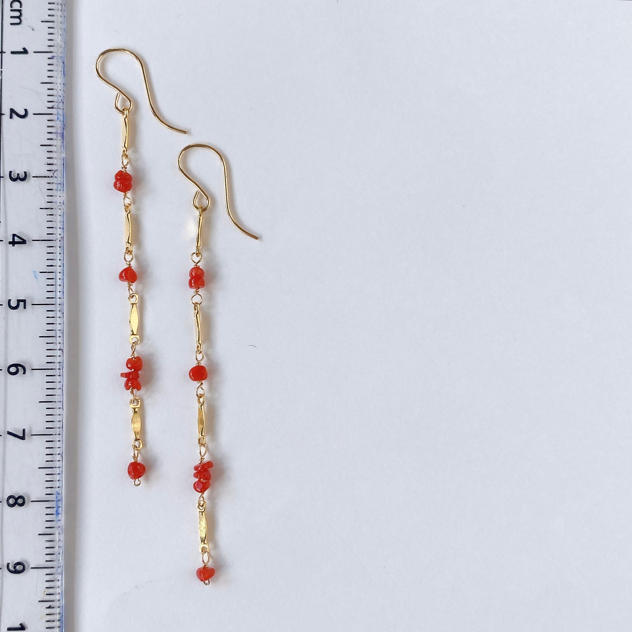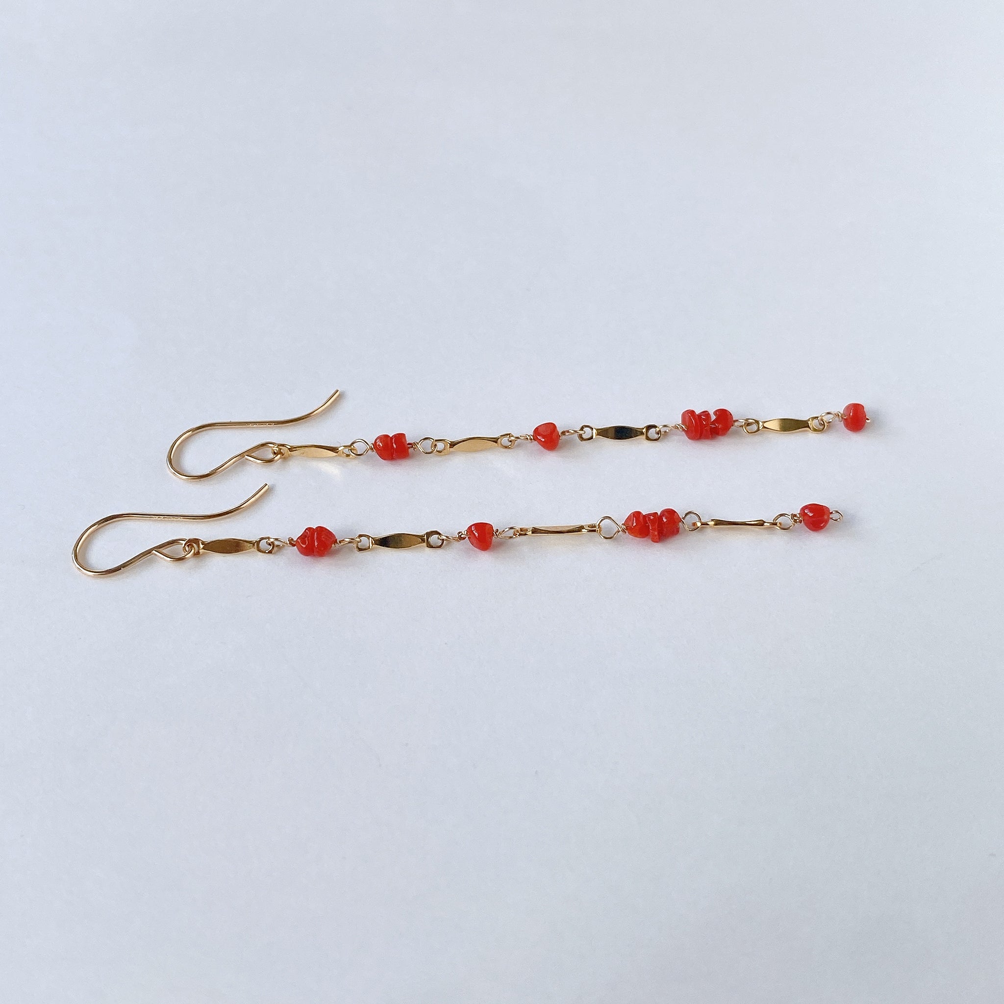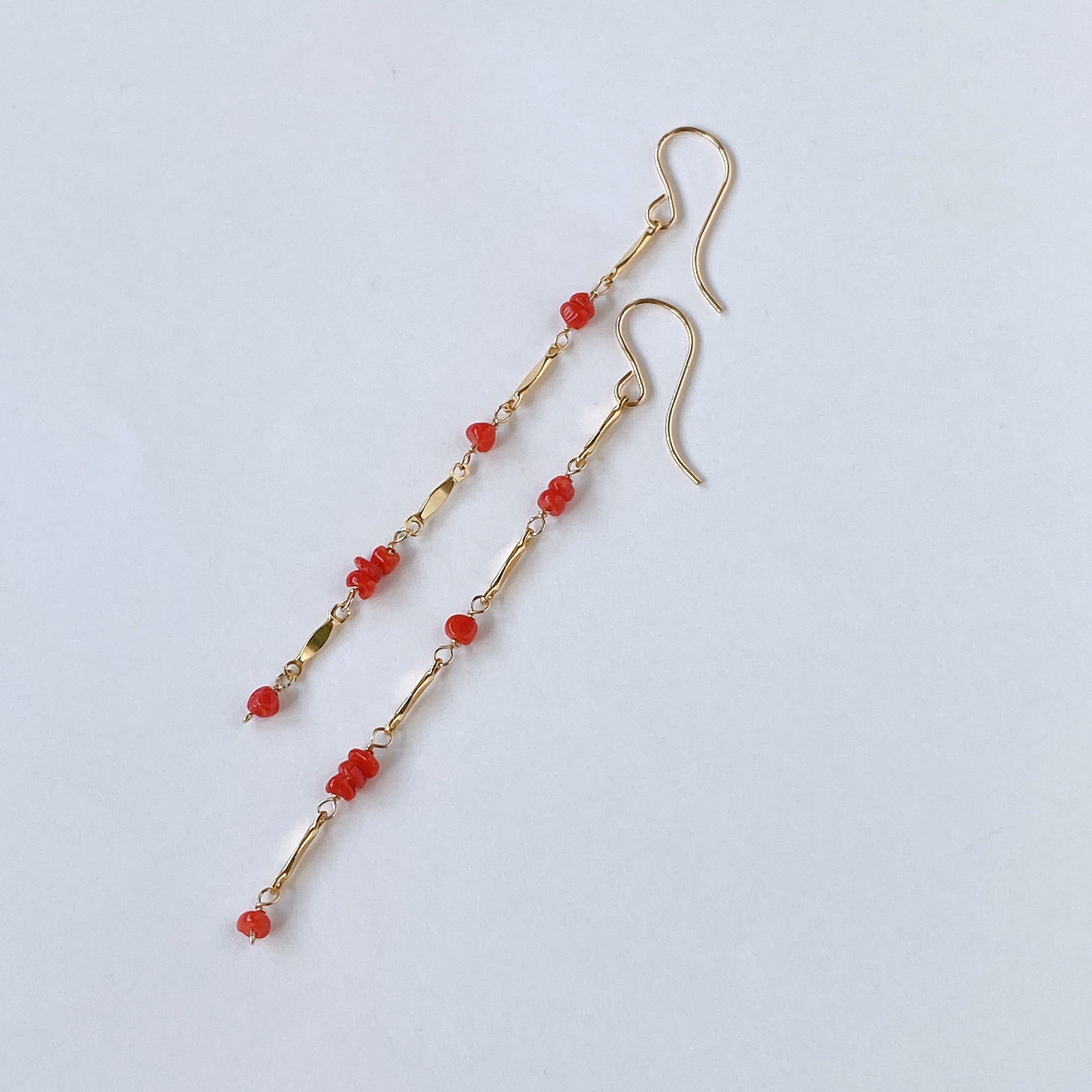 イタリア産天然赤珊瑚赤サンゴの極小粒を使ってデザインした耳飾りです。