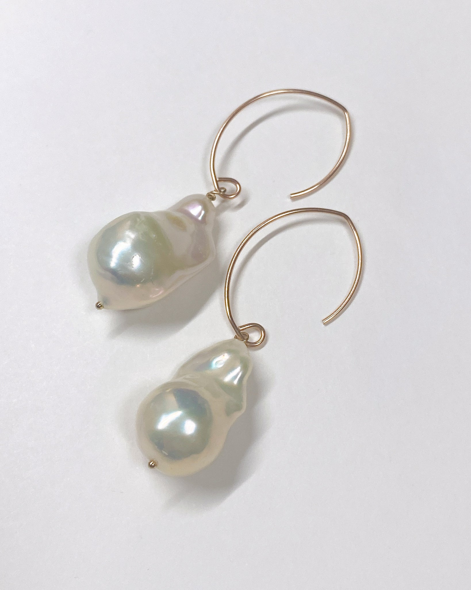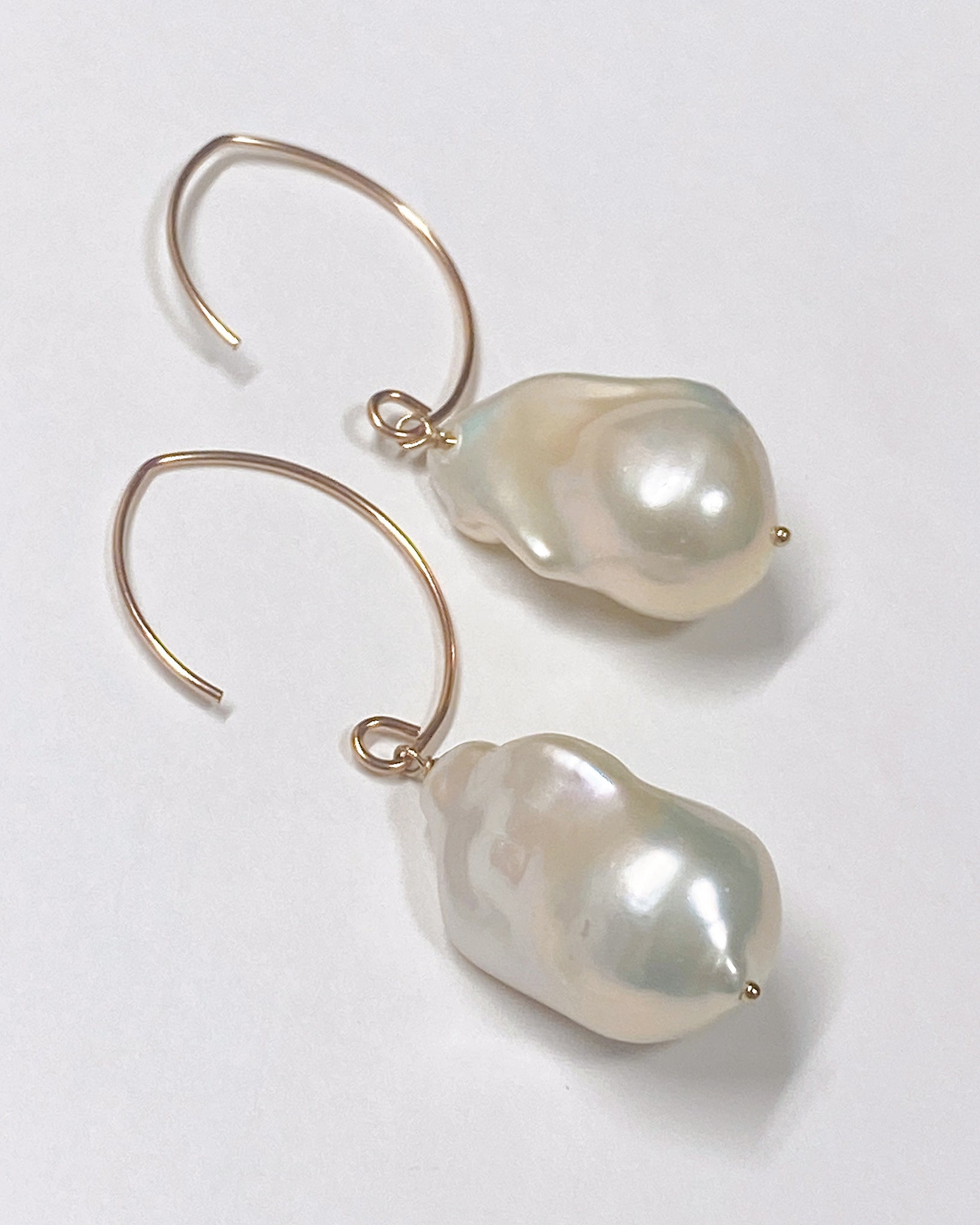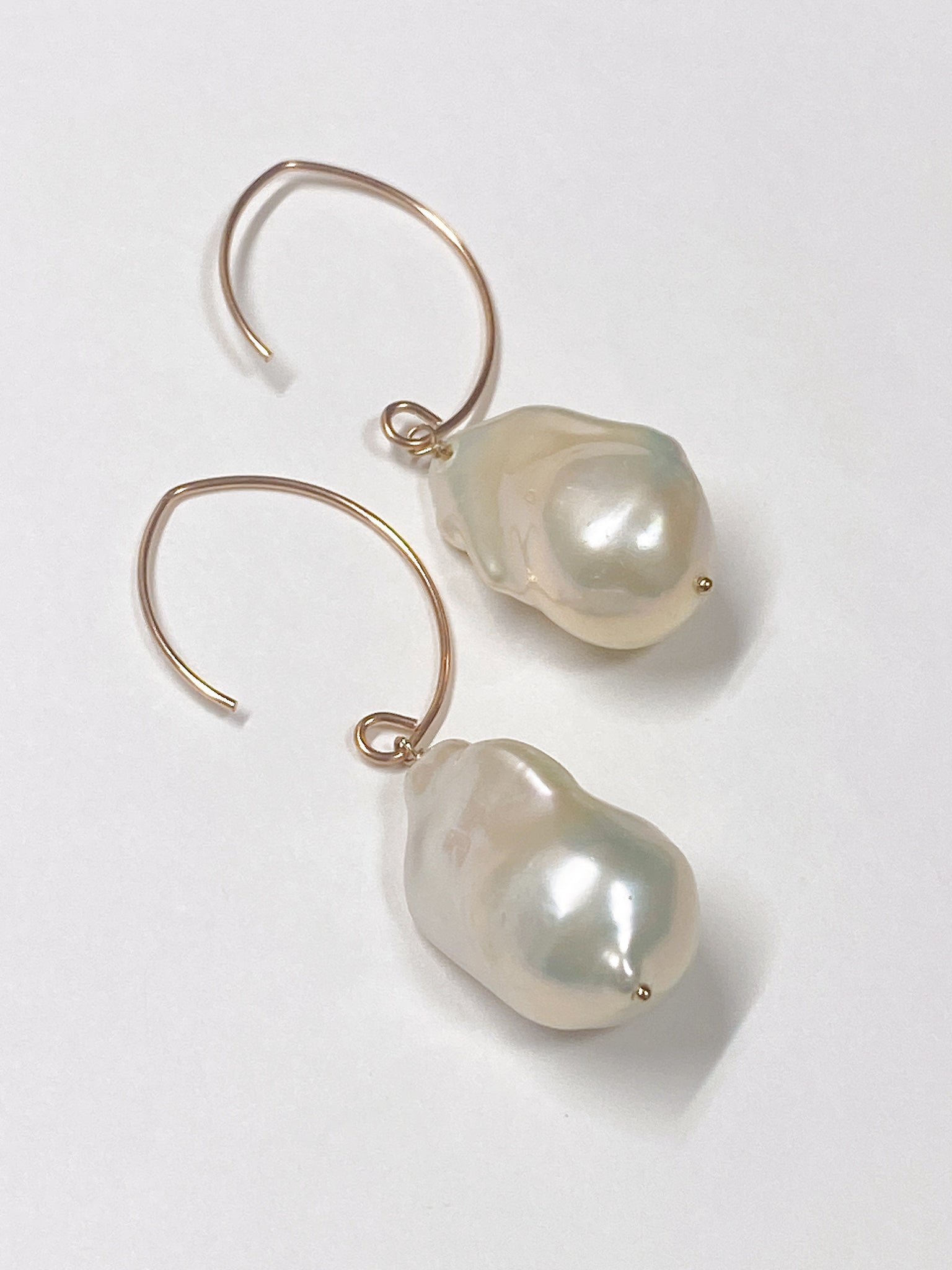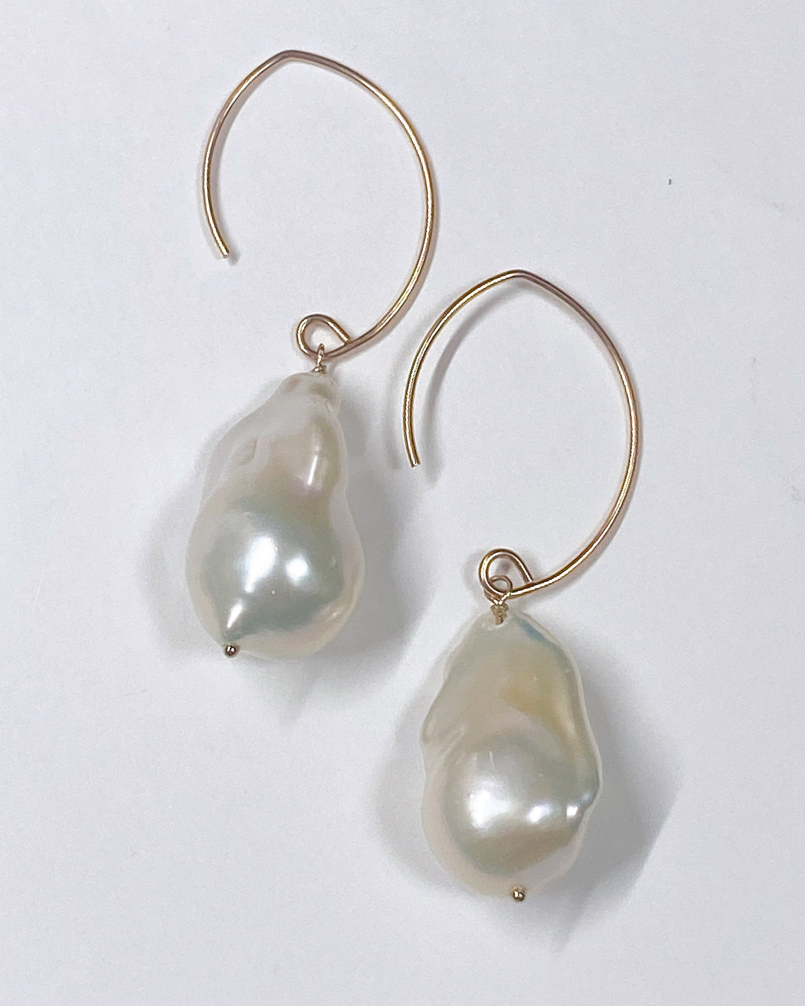 大粒のオイスターバロックパールを使ってデザインした耳飾りです。