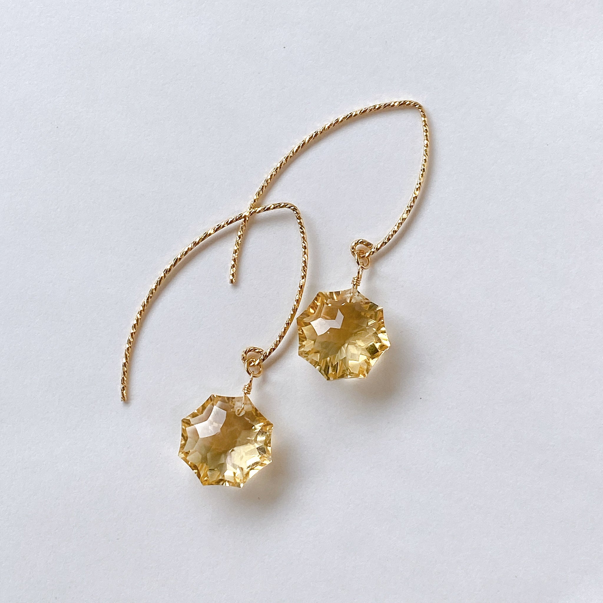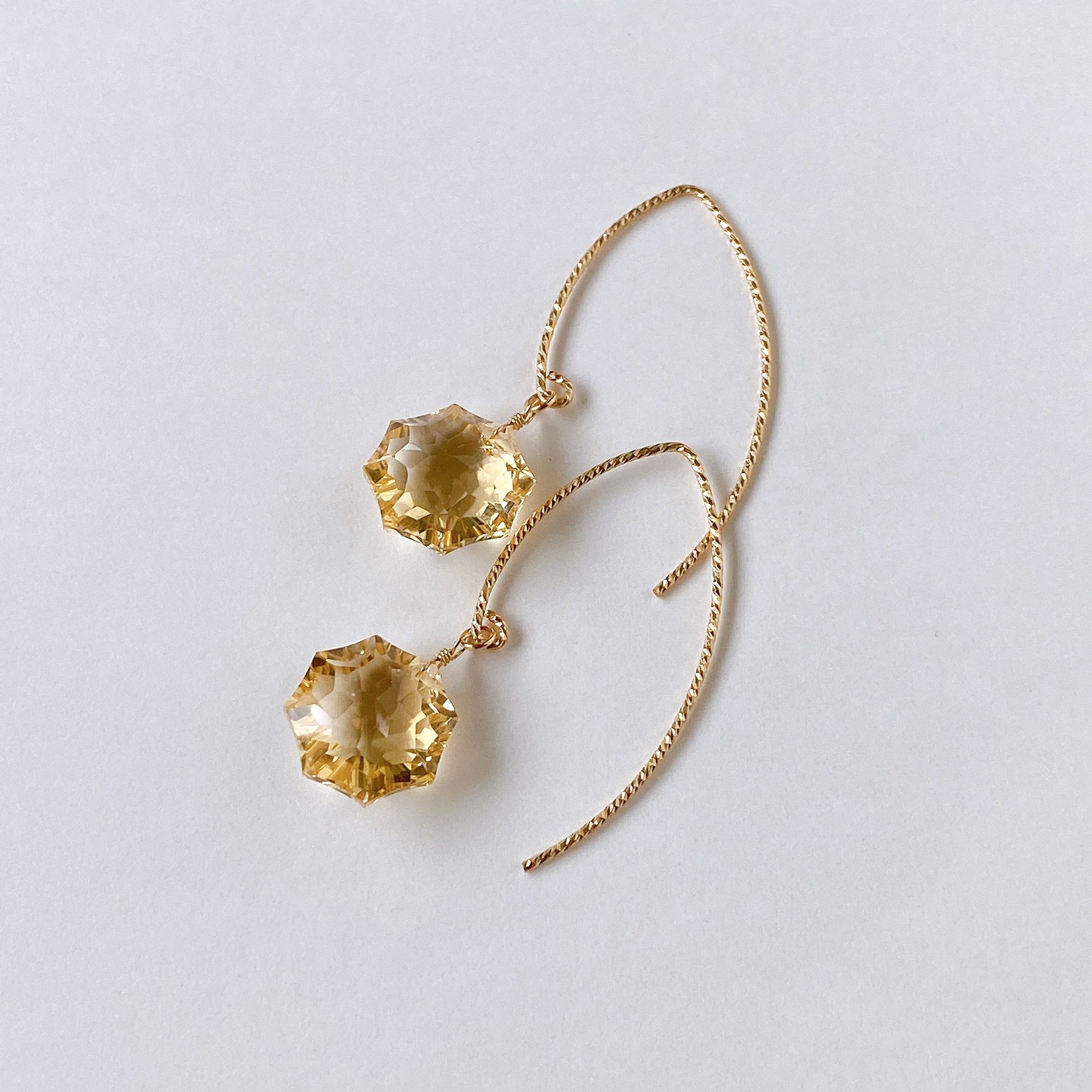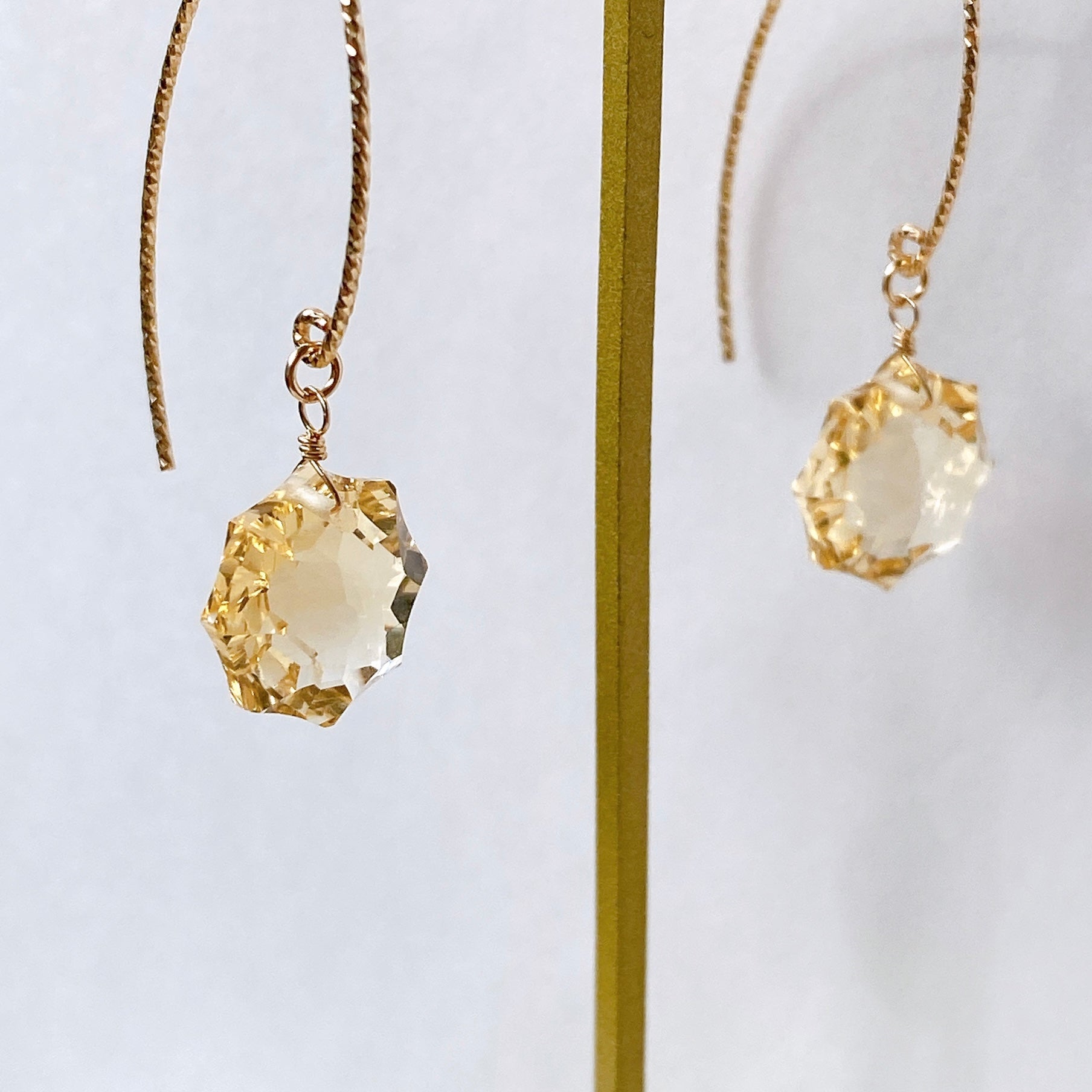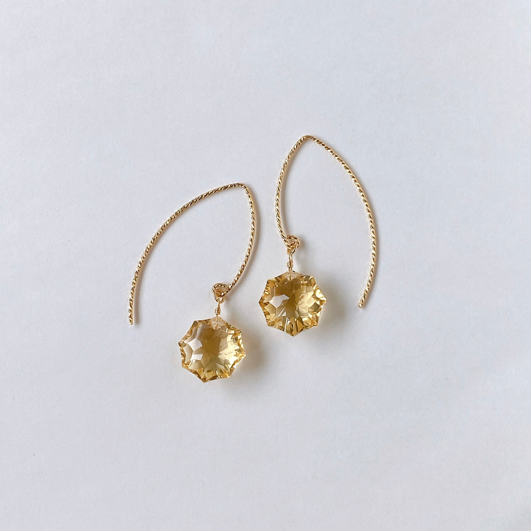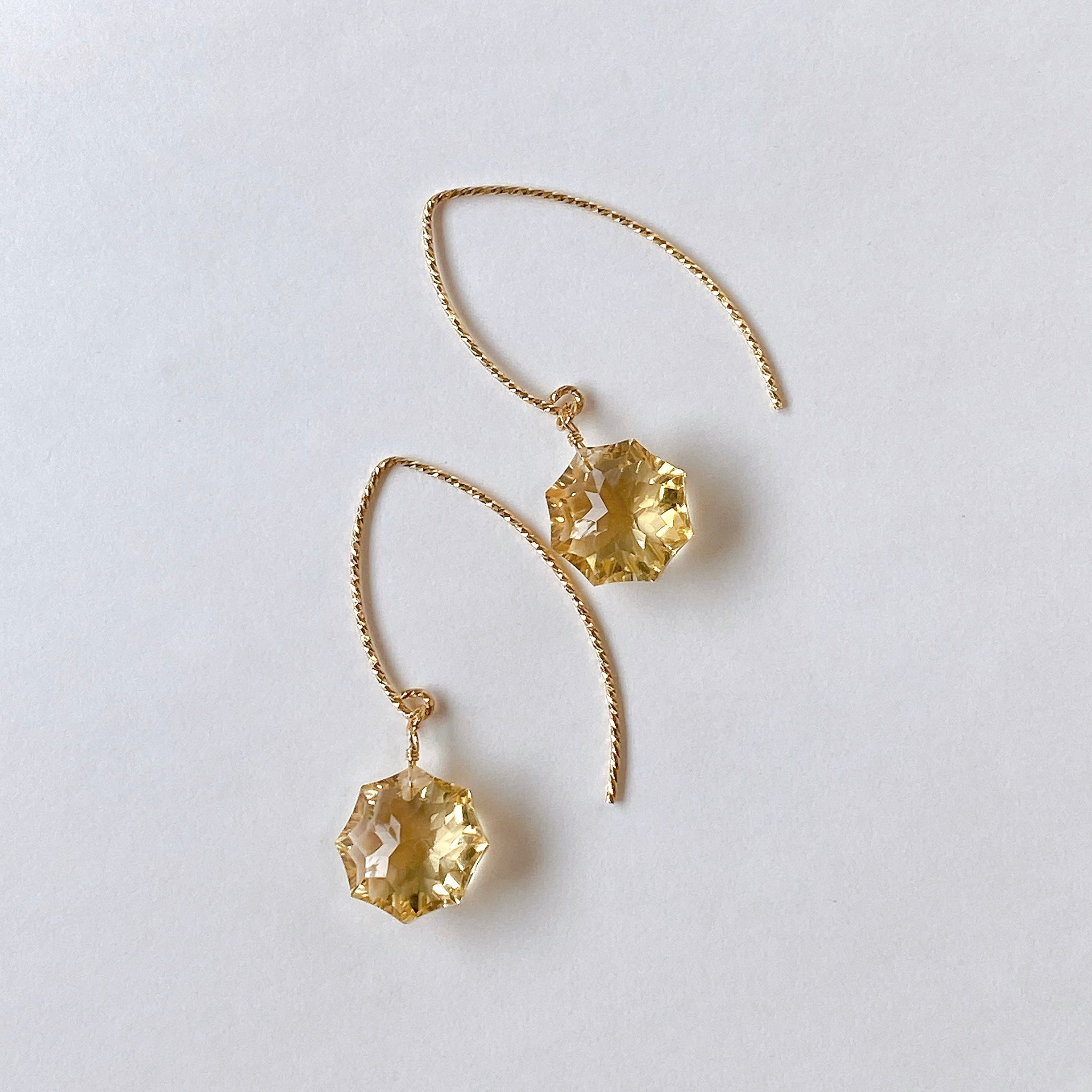 コンケーブオクタゴンカットのシトリンを使ってデザインした耳飾りです。
