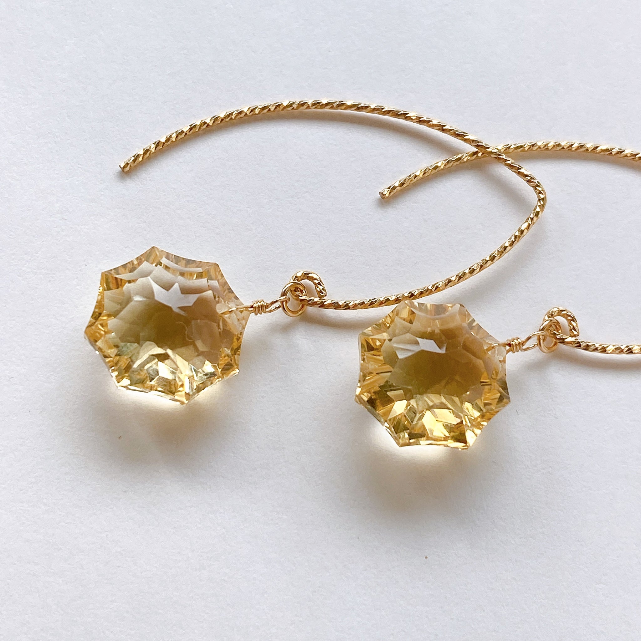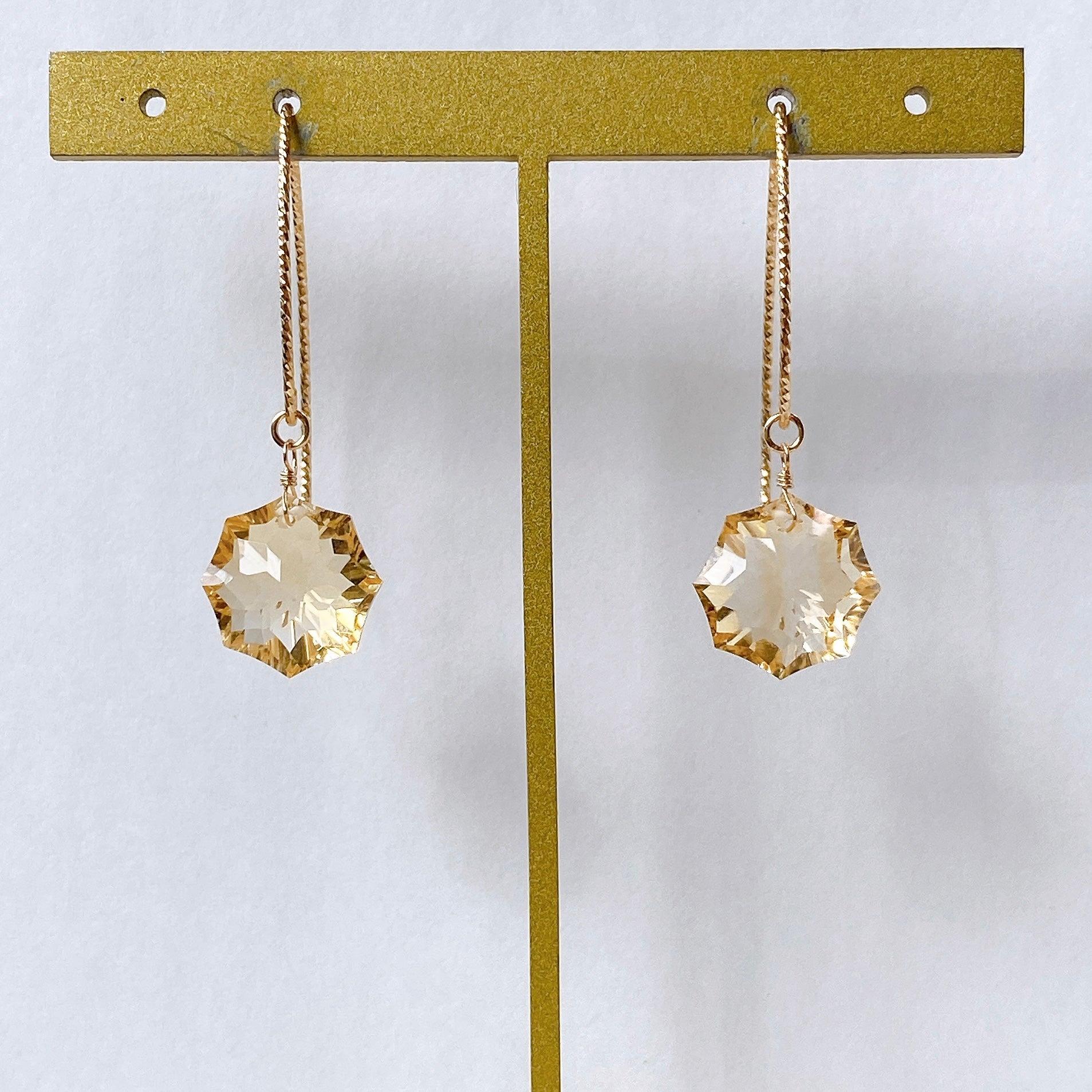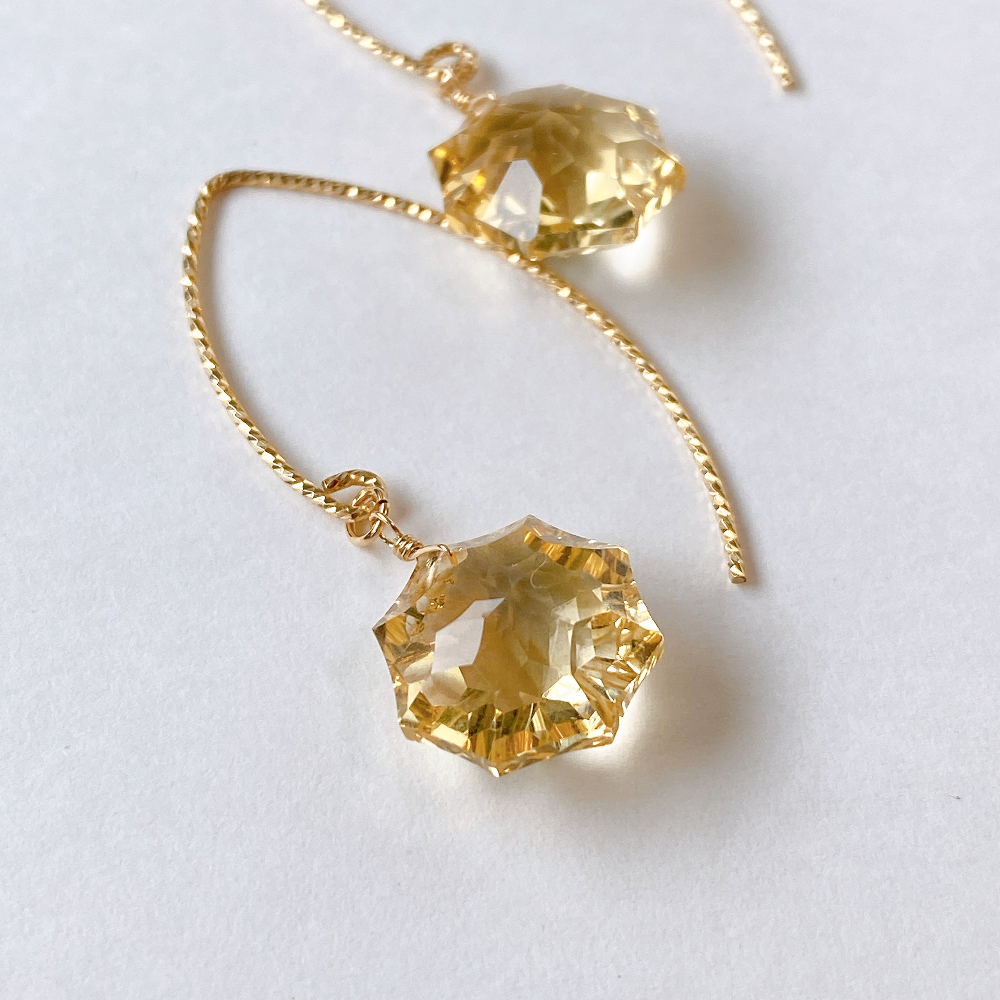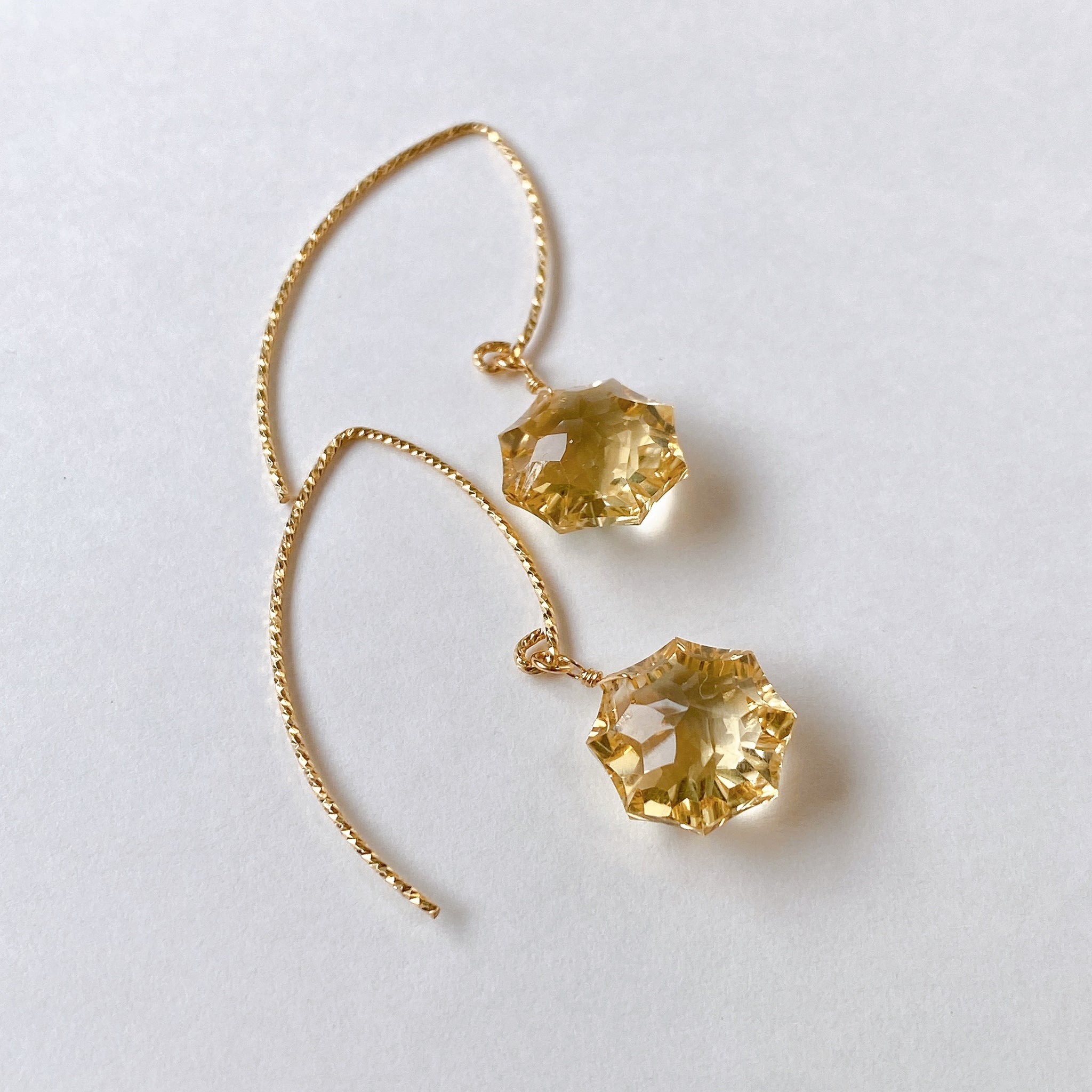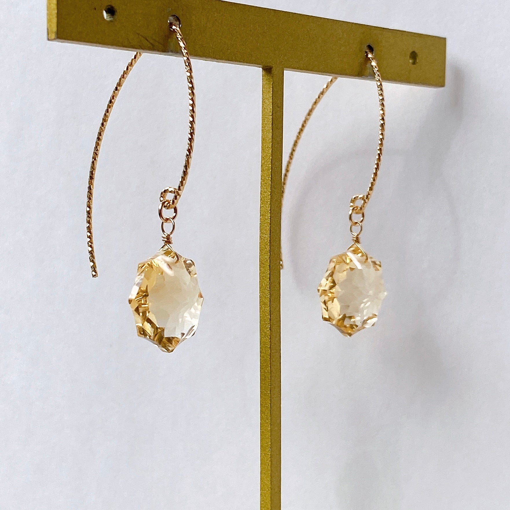 コンケーブオクタゴンカットのシトリンを使ってデザインした耳飾りです。