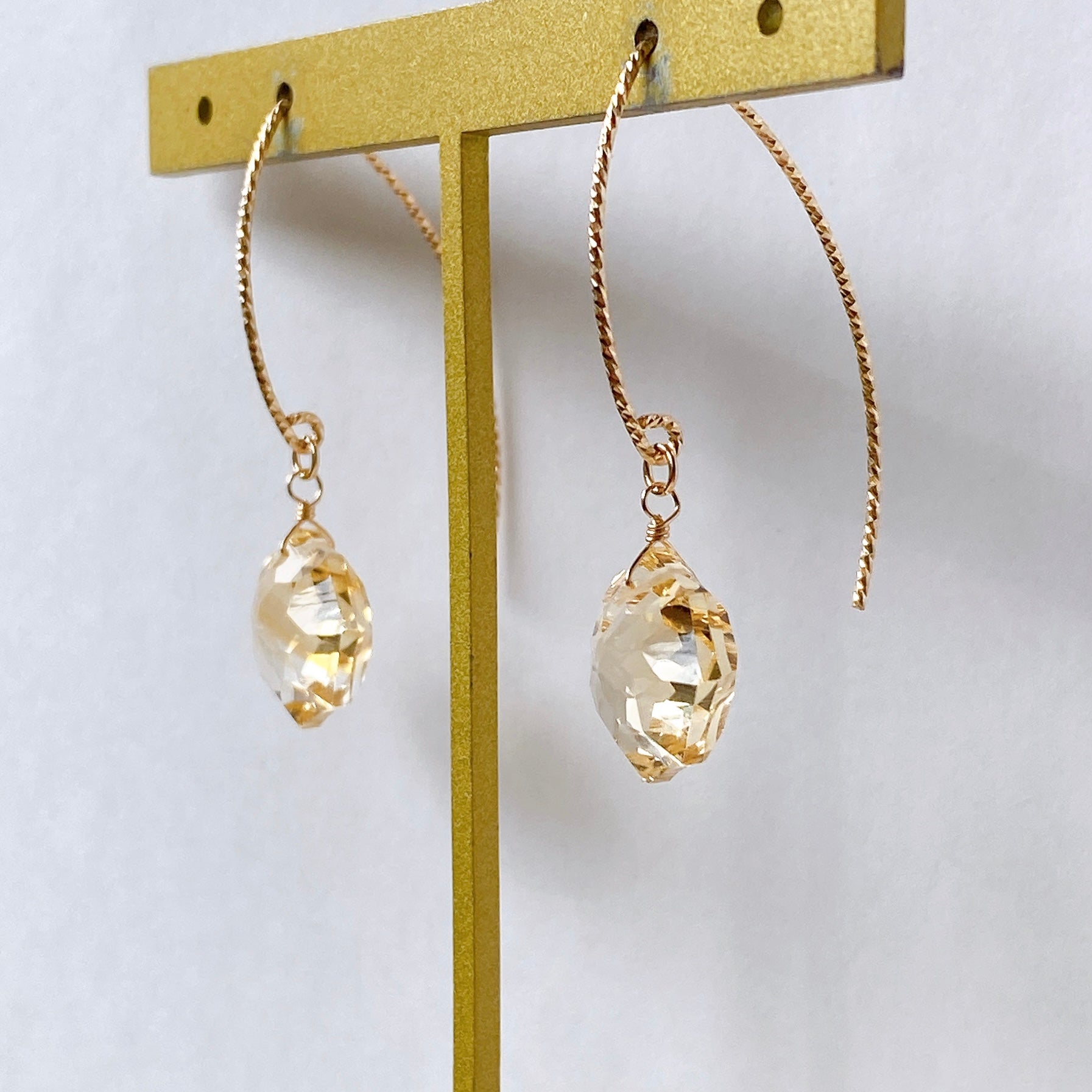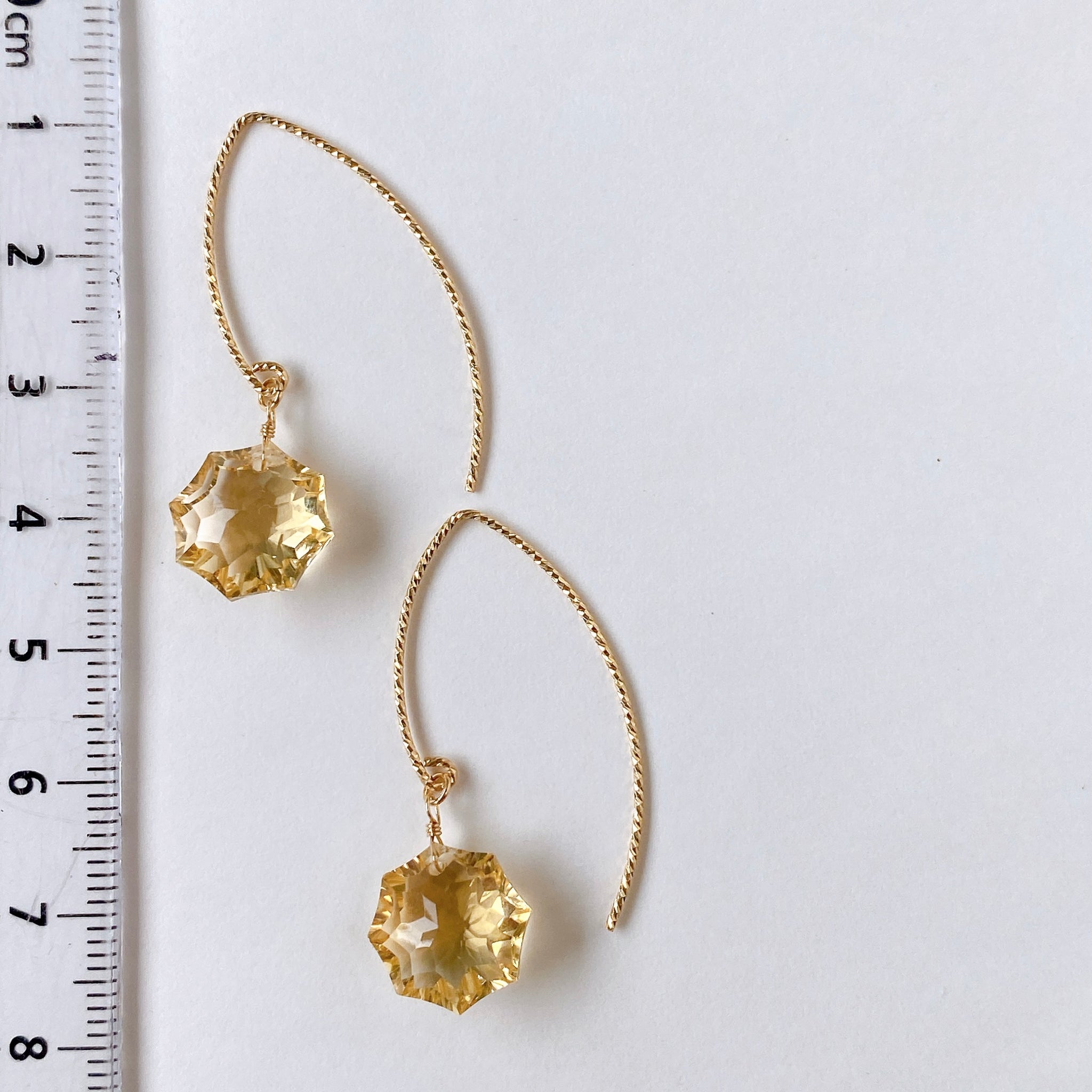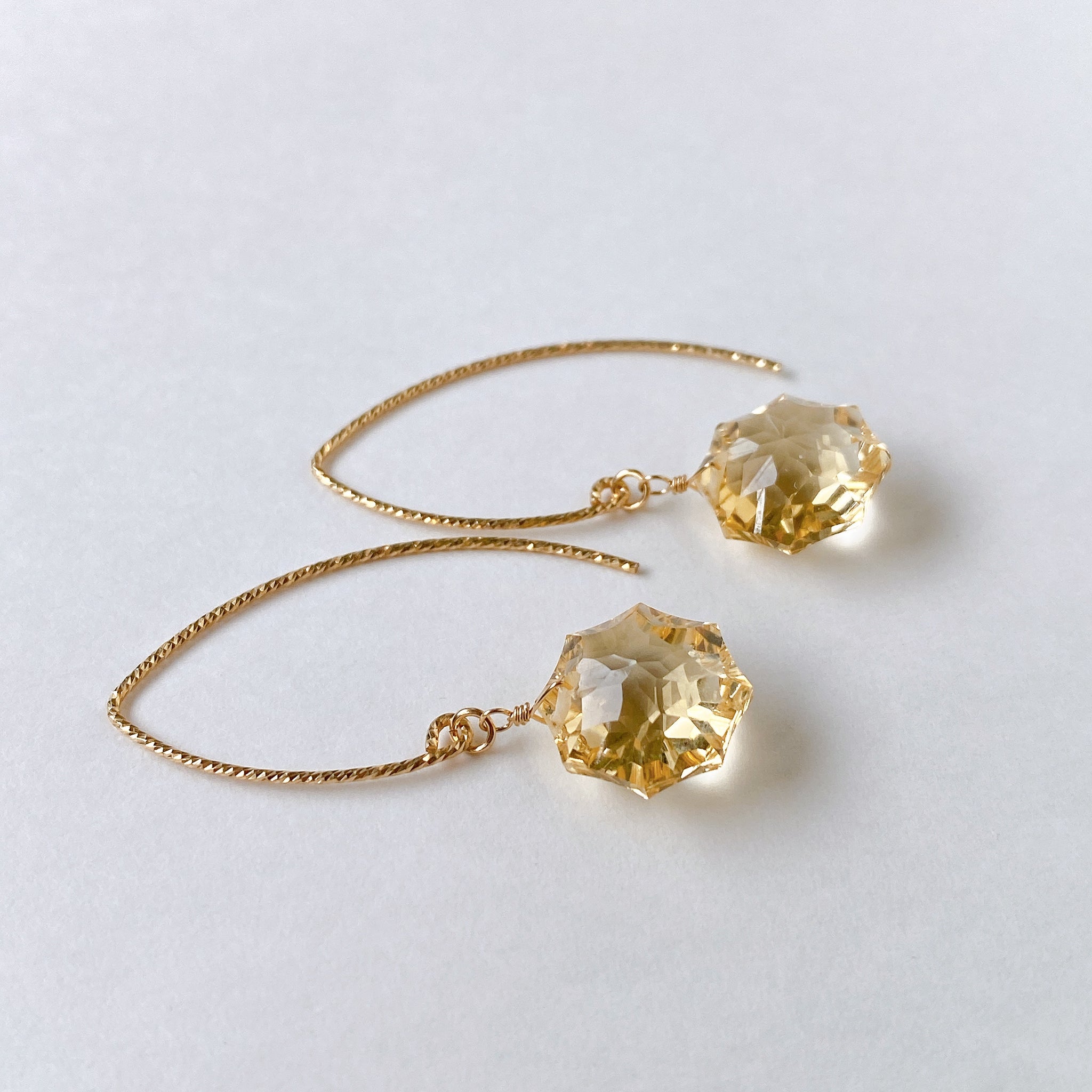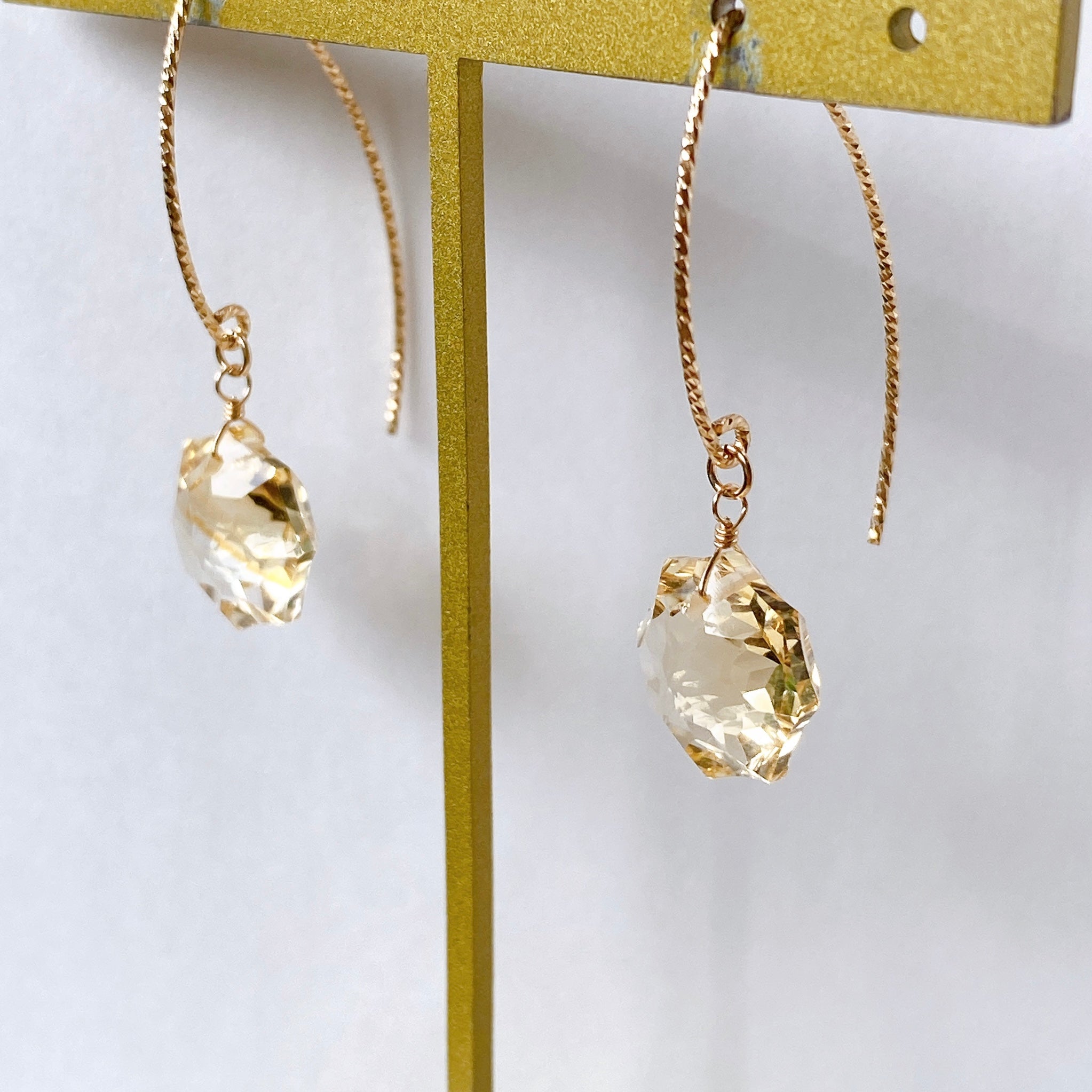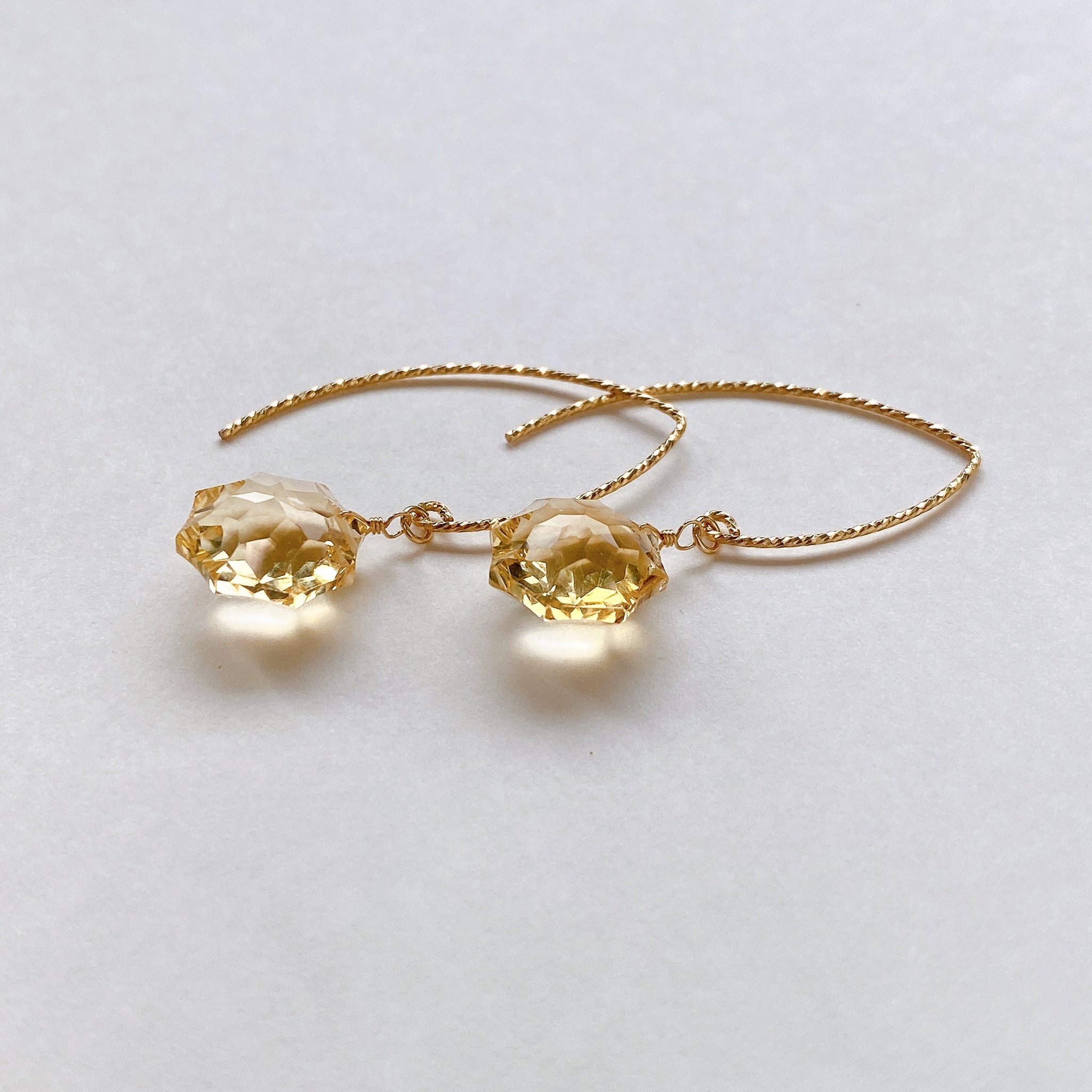 コンケーブオクタゴンカットのシトリンを使ってデザインした耳飾りです。