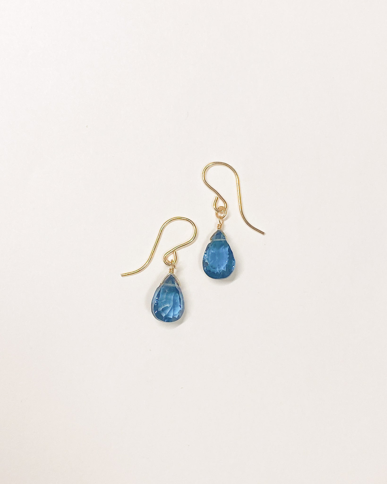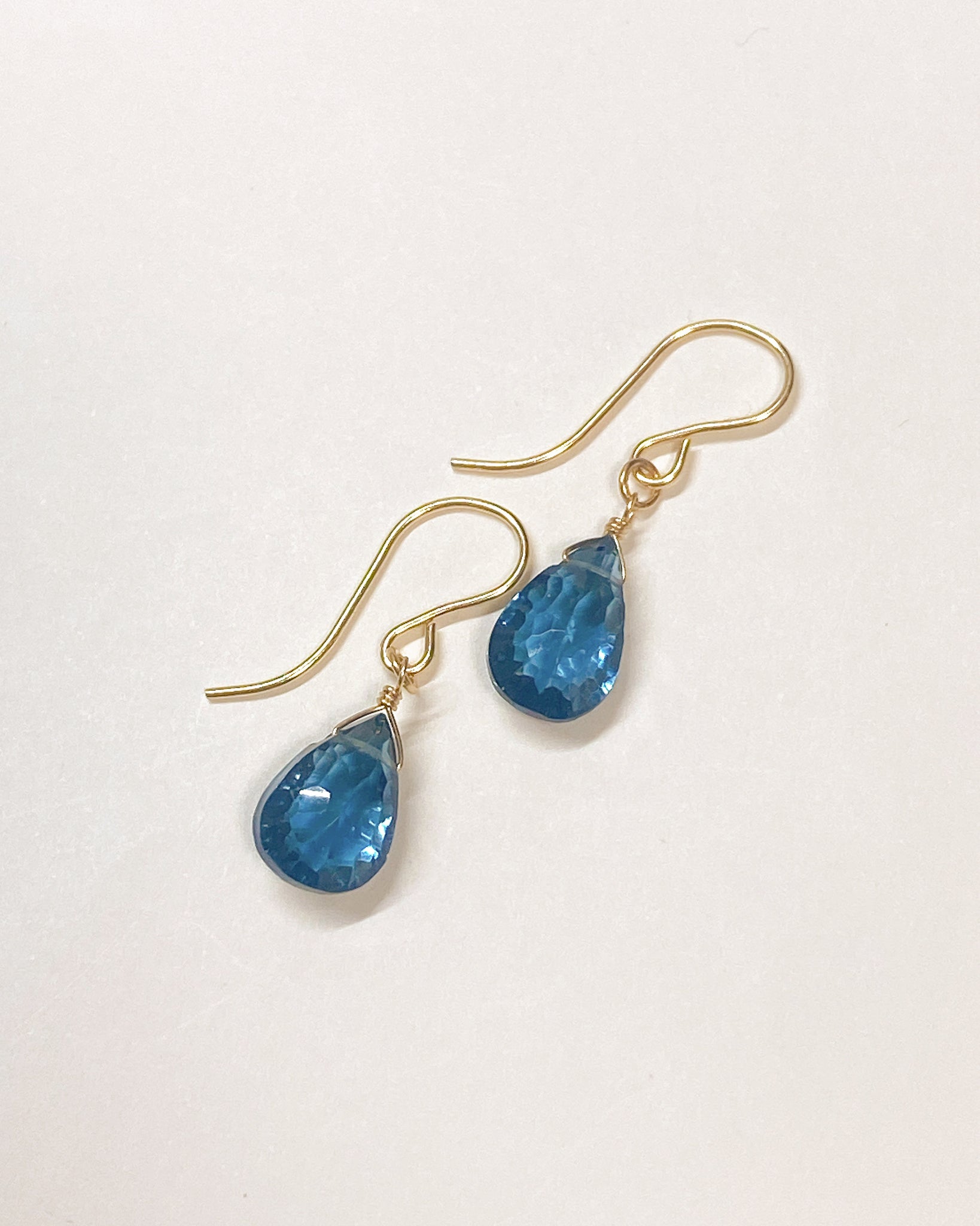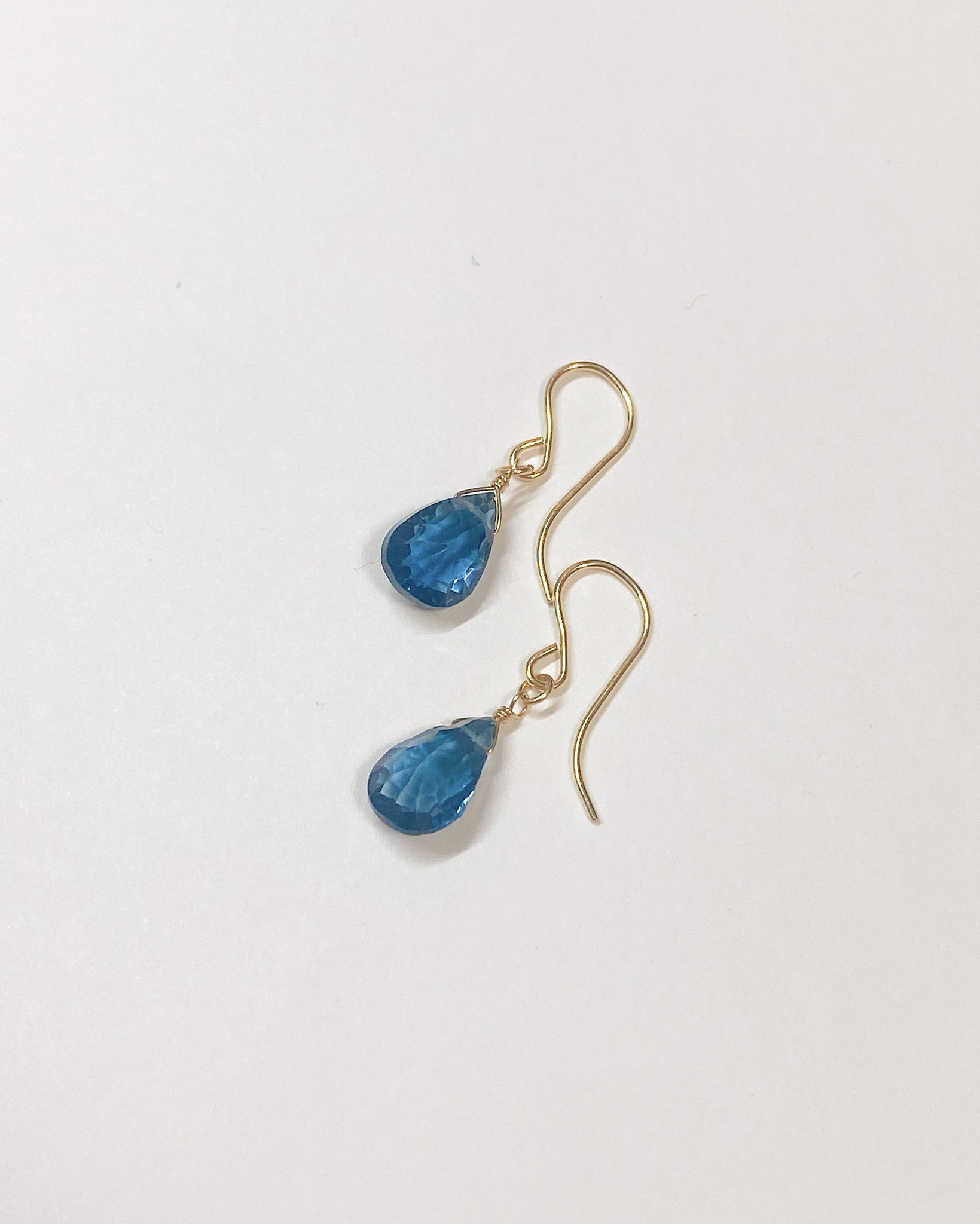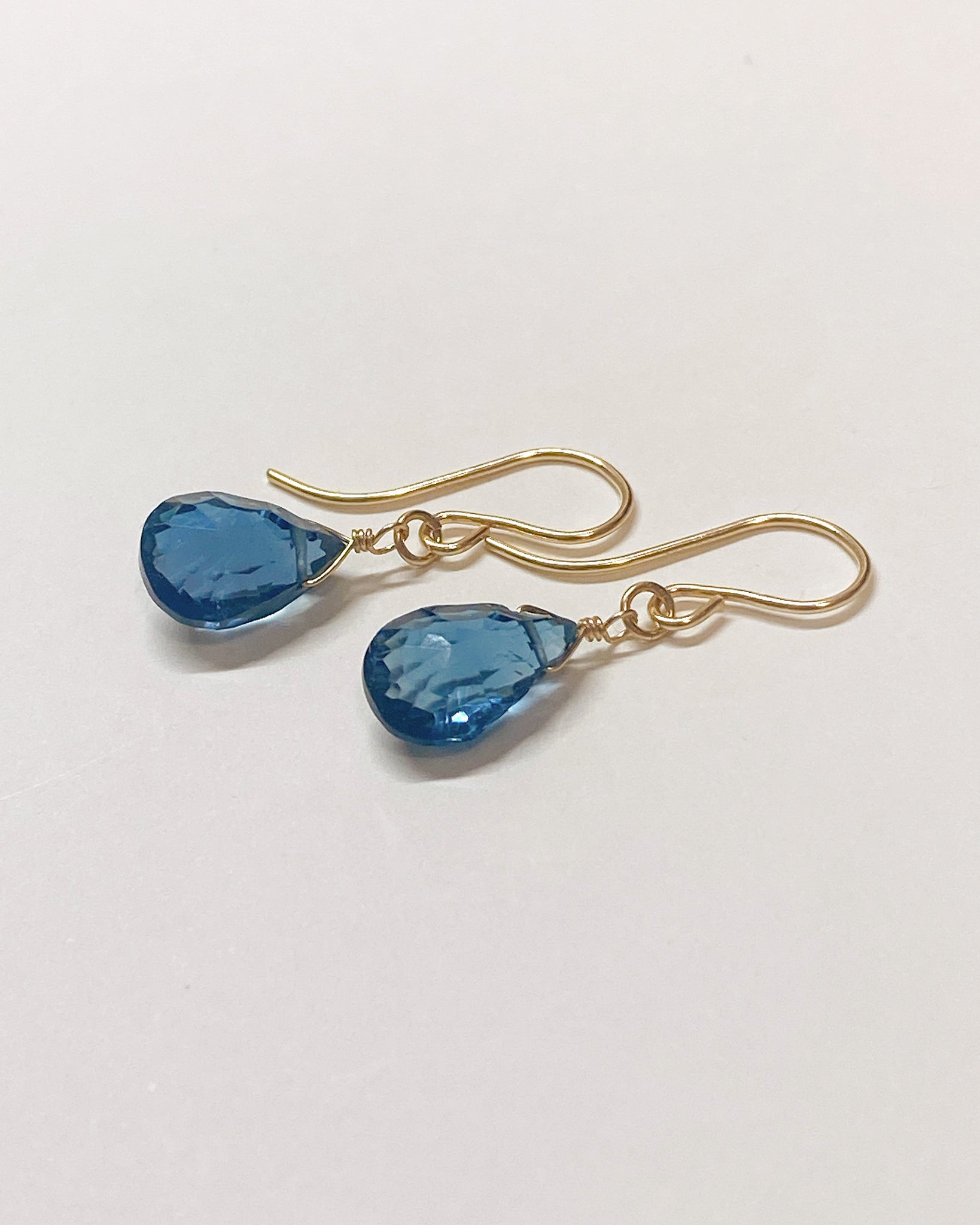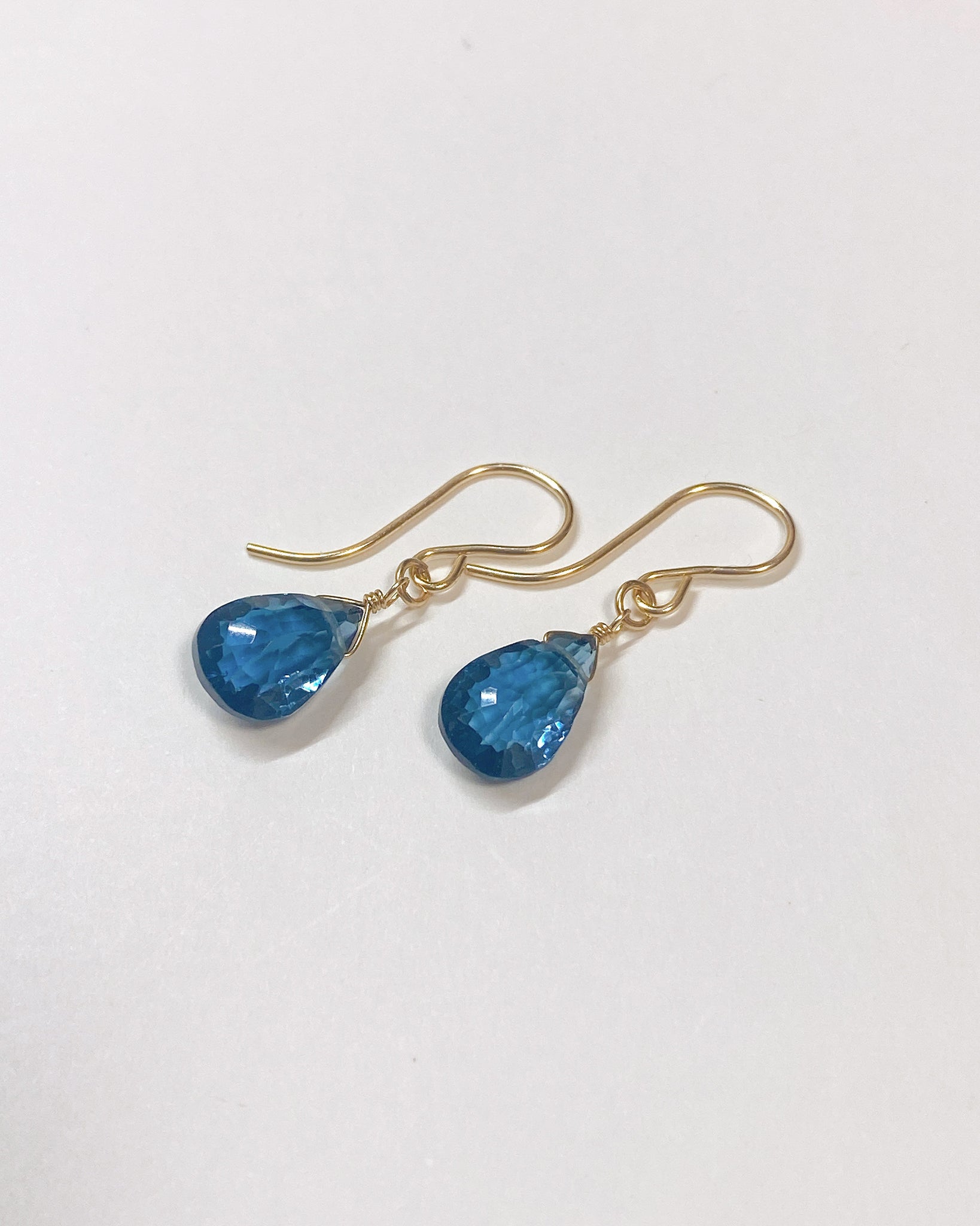 ロンドンブルートパーズには珍しいカットをシンプルにお楽しみいただける一粒ピアスにお仕立てしました。