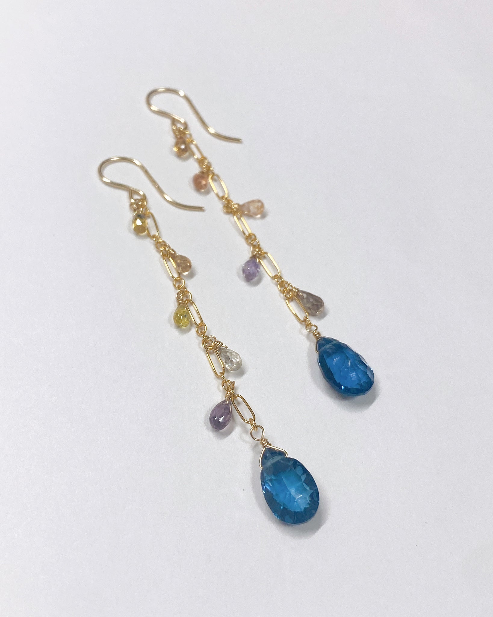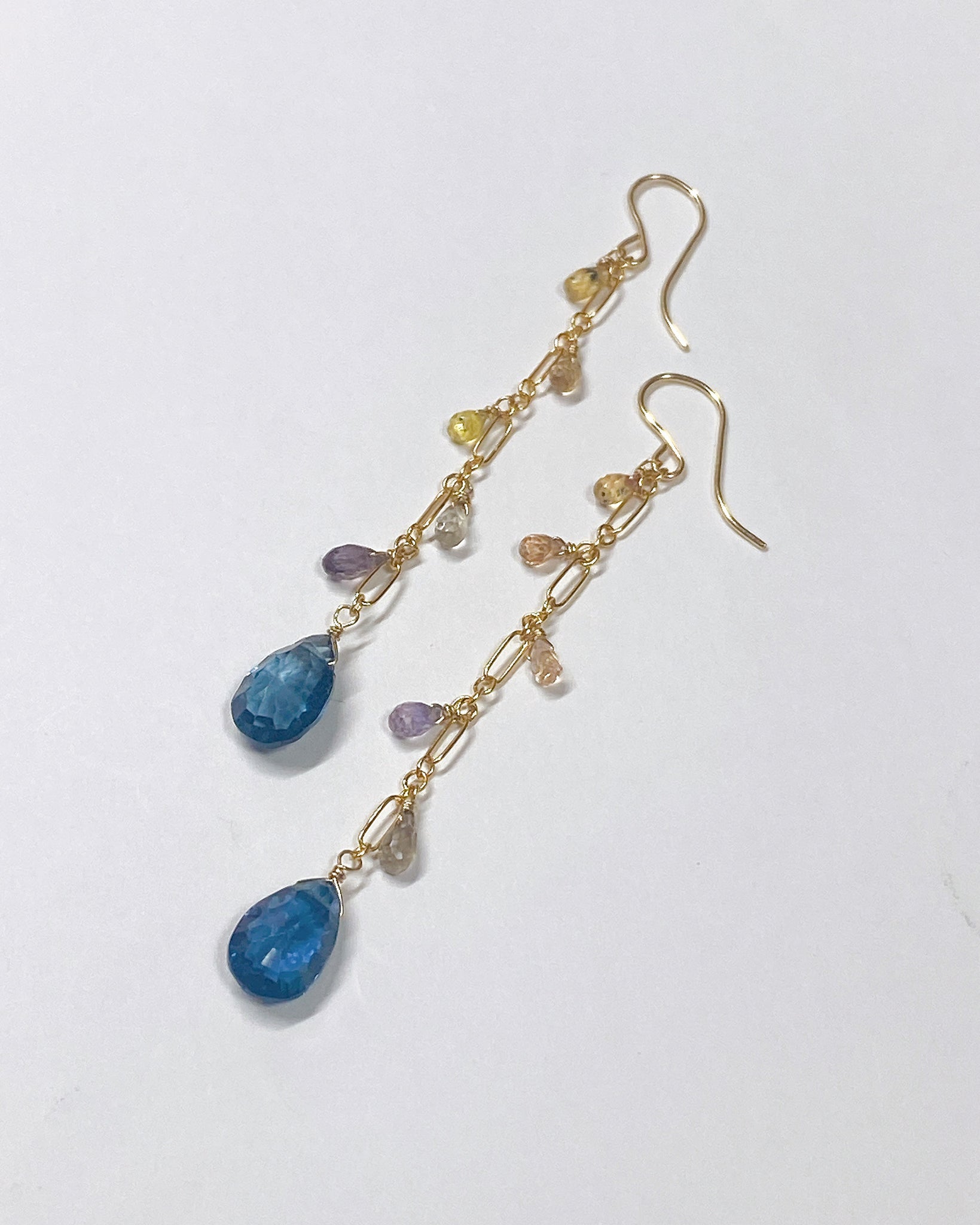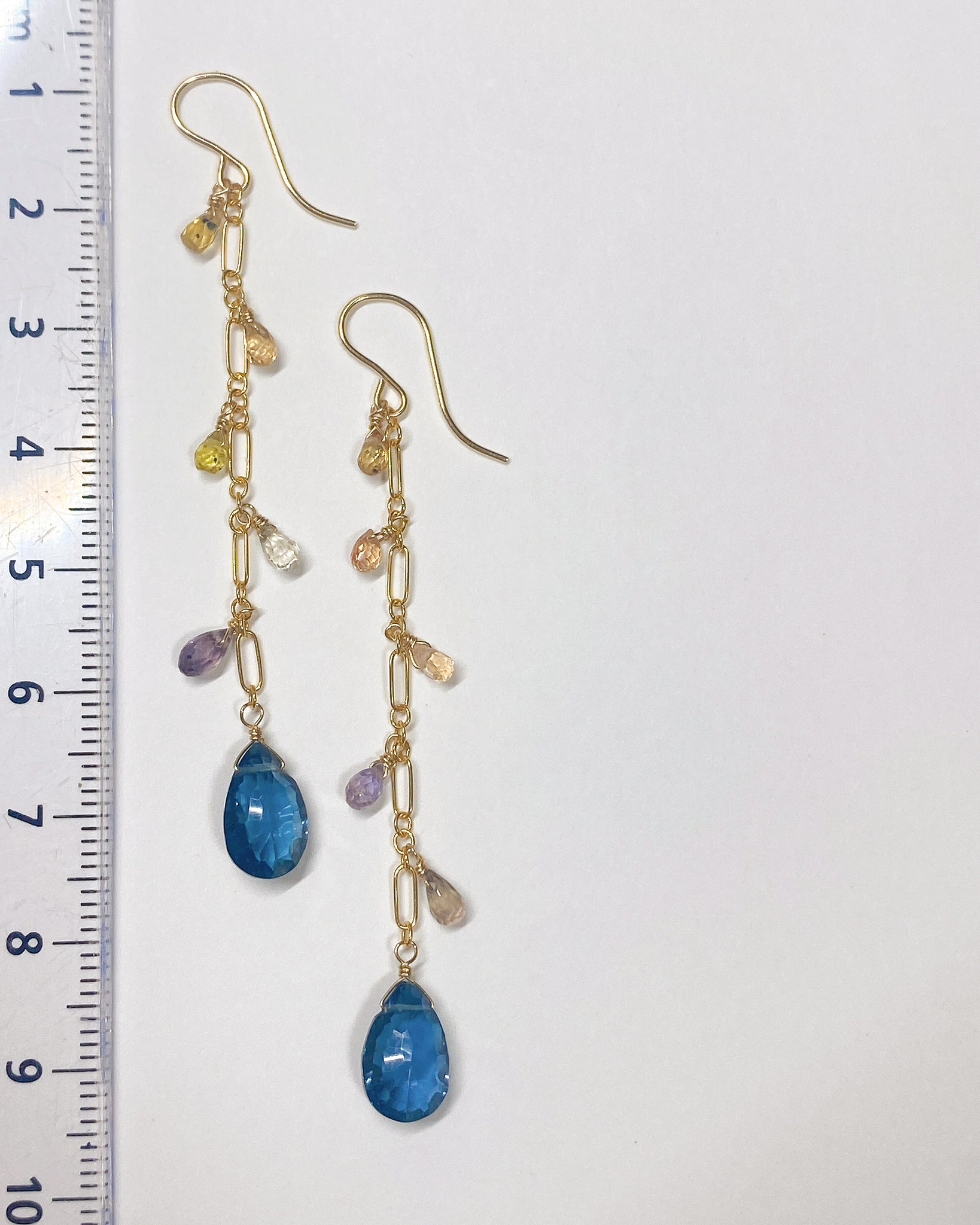 コンケーブカット ロンドンブルートパーズとサファイアのロングピアス