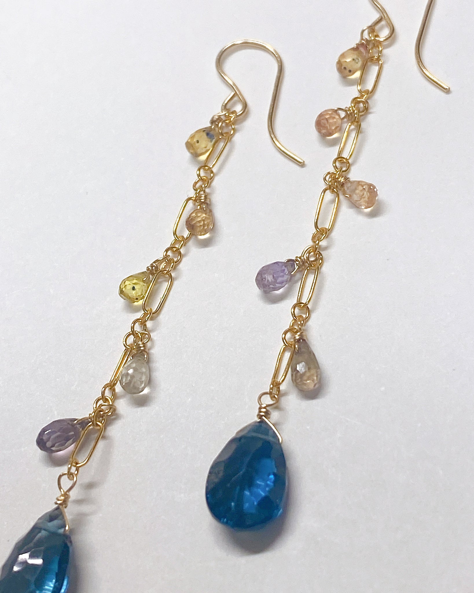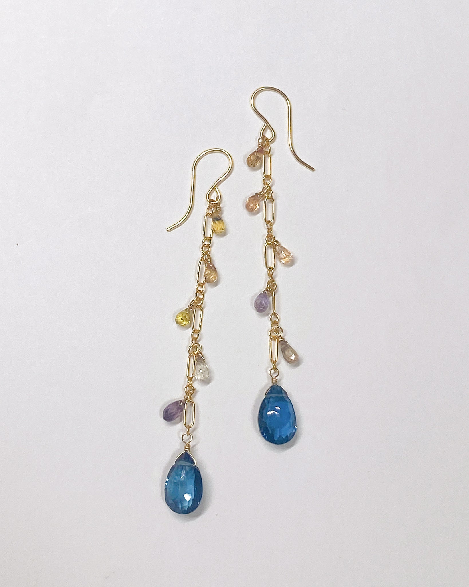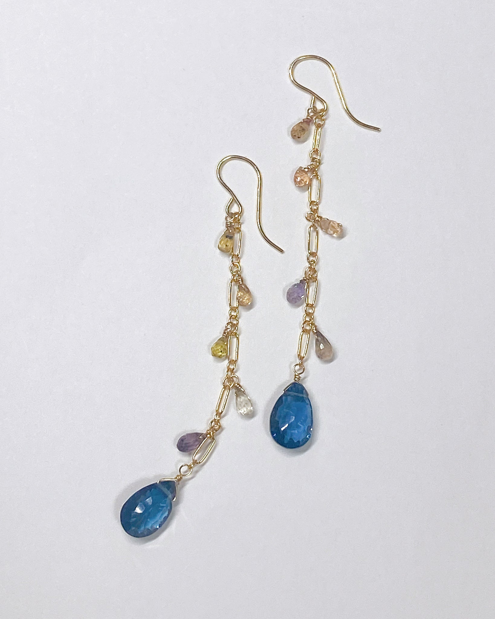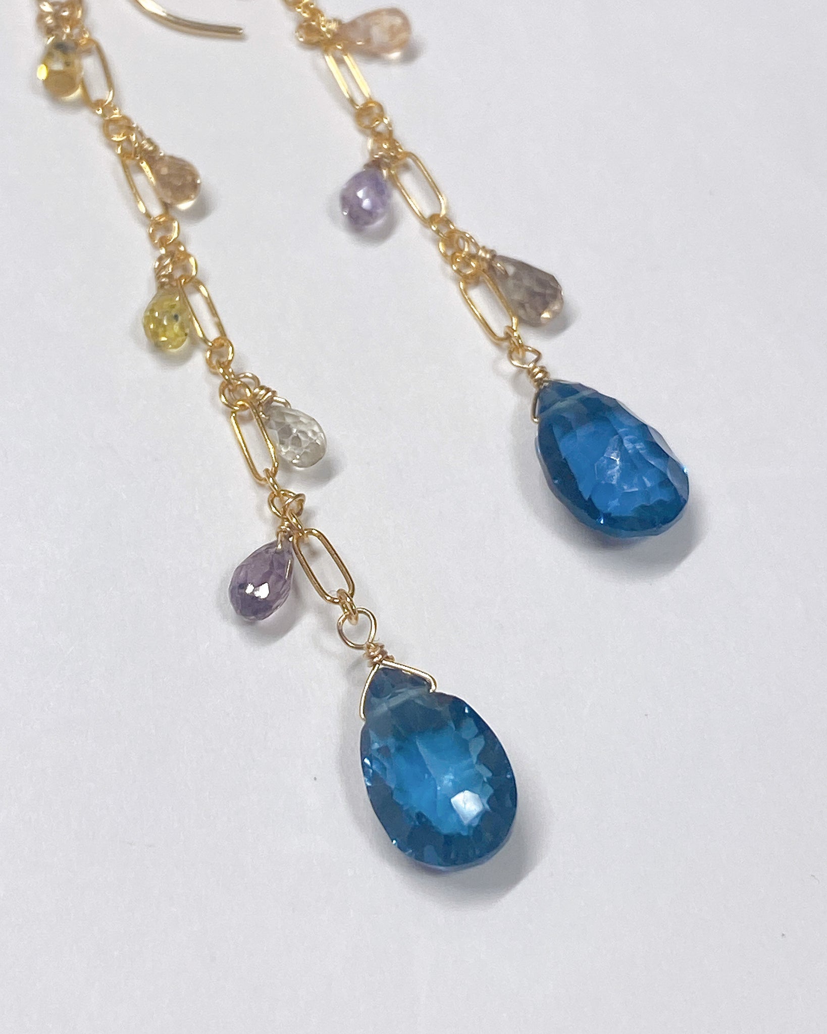 コンケーブカット ロンドンブルートパーズとサファイアのロングピアス