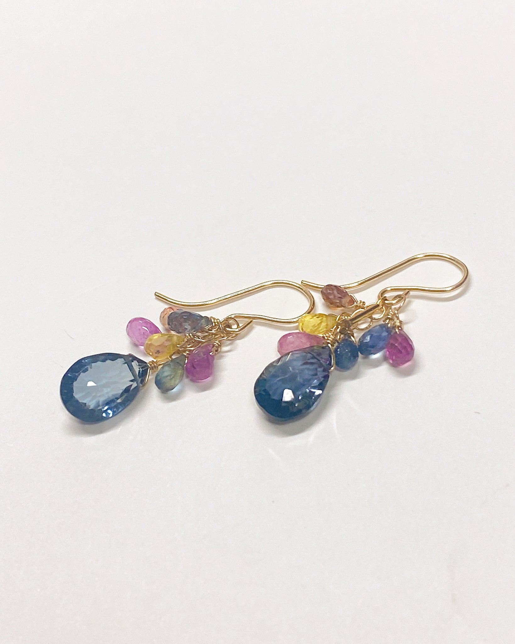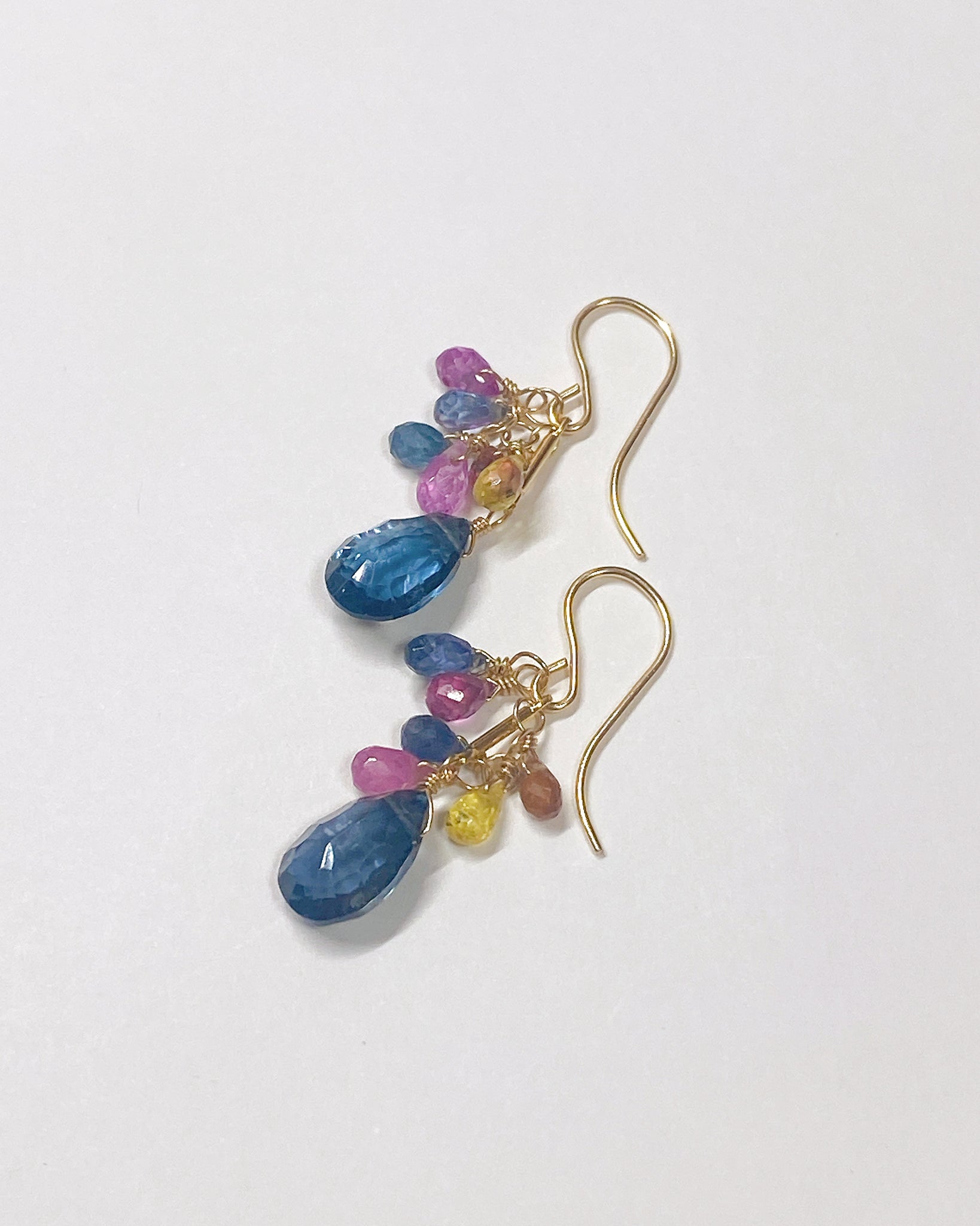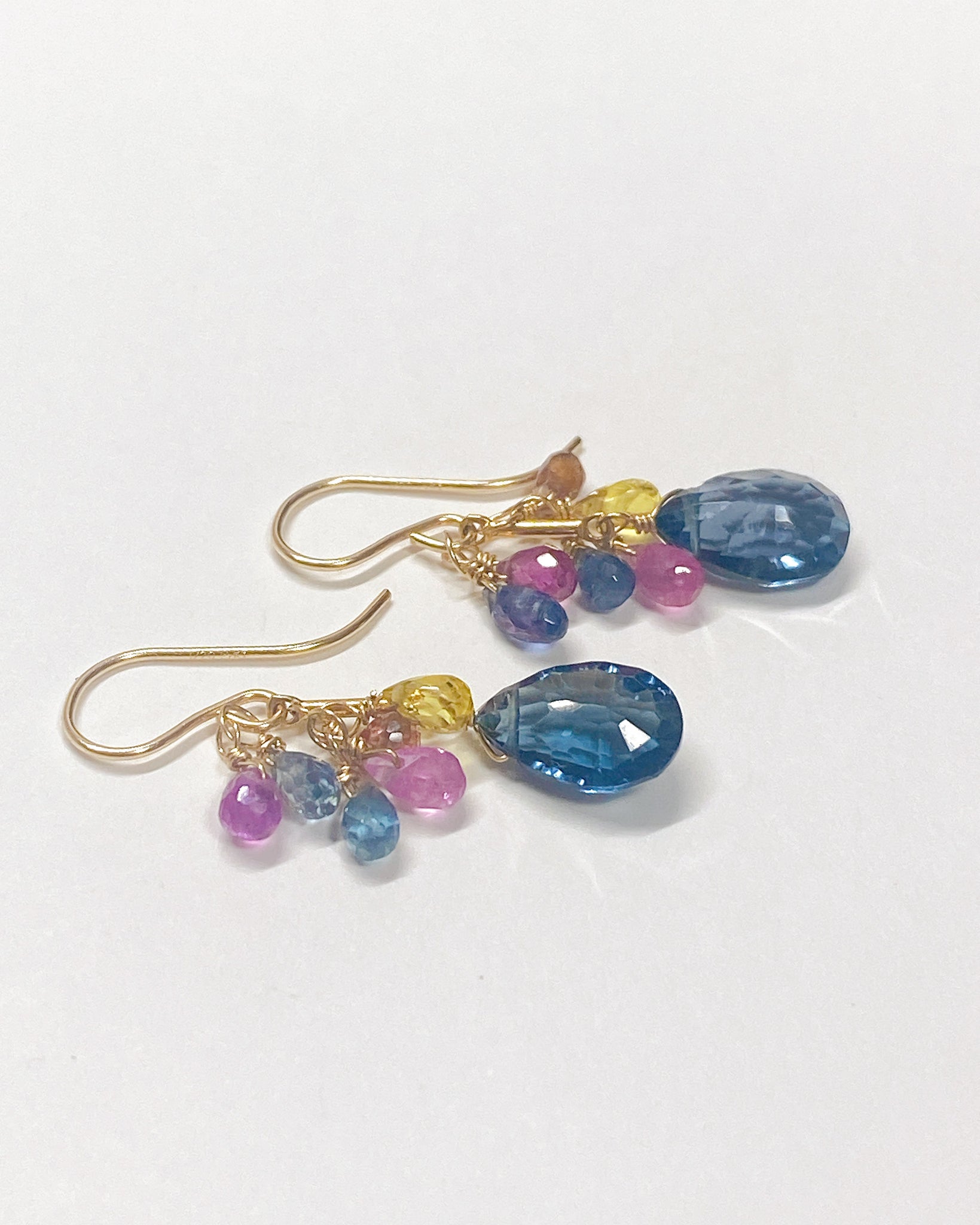 コンケーブカット ロンドンブルートパーズ とサファイアのブーケピアス