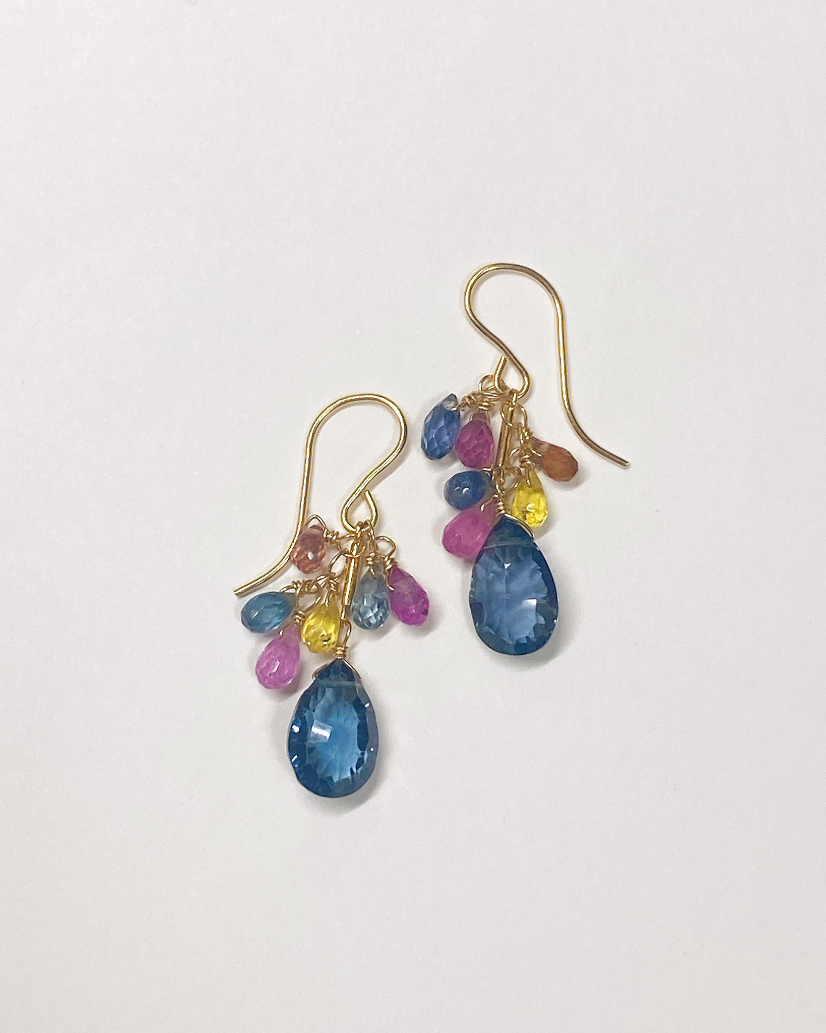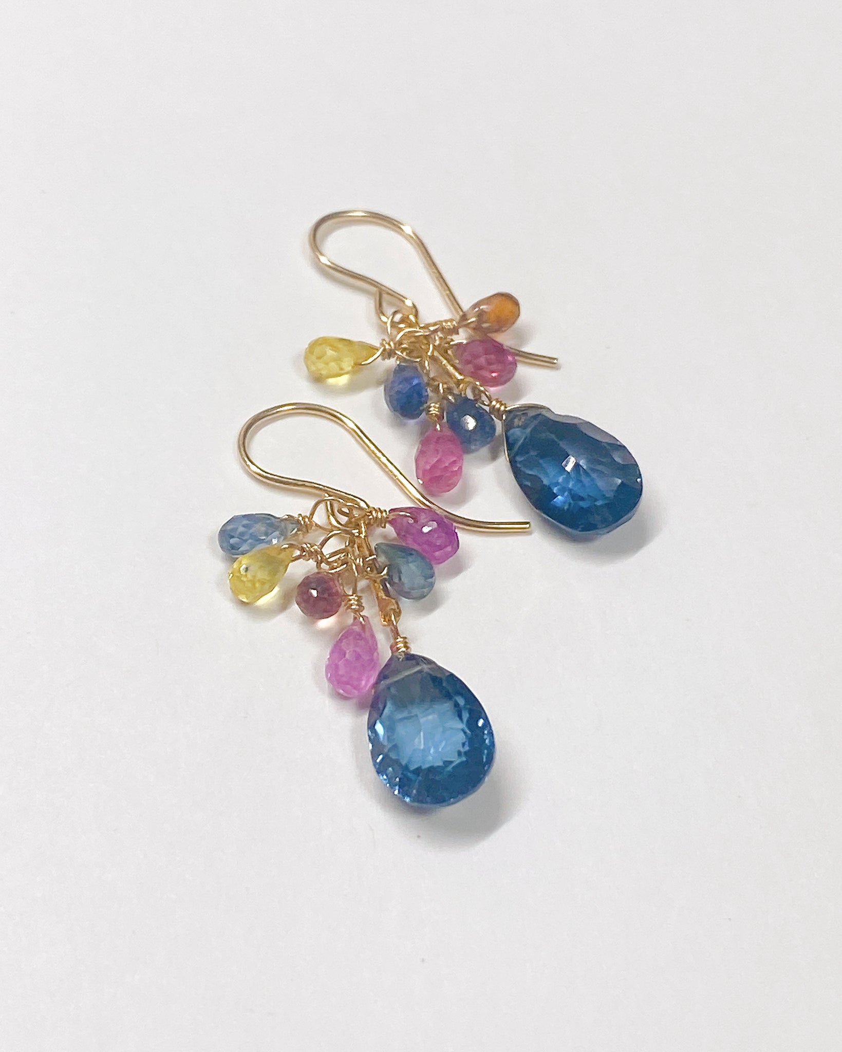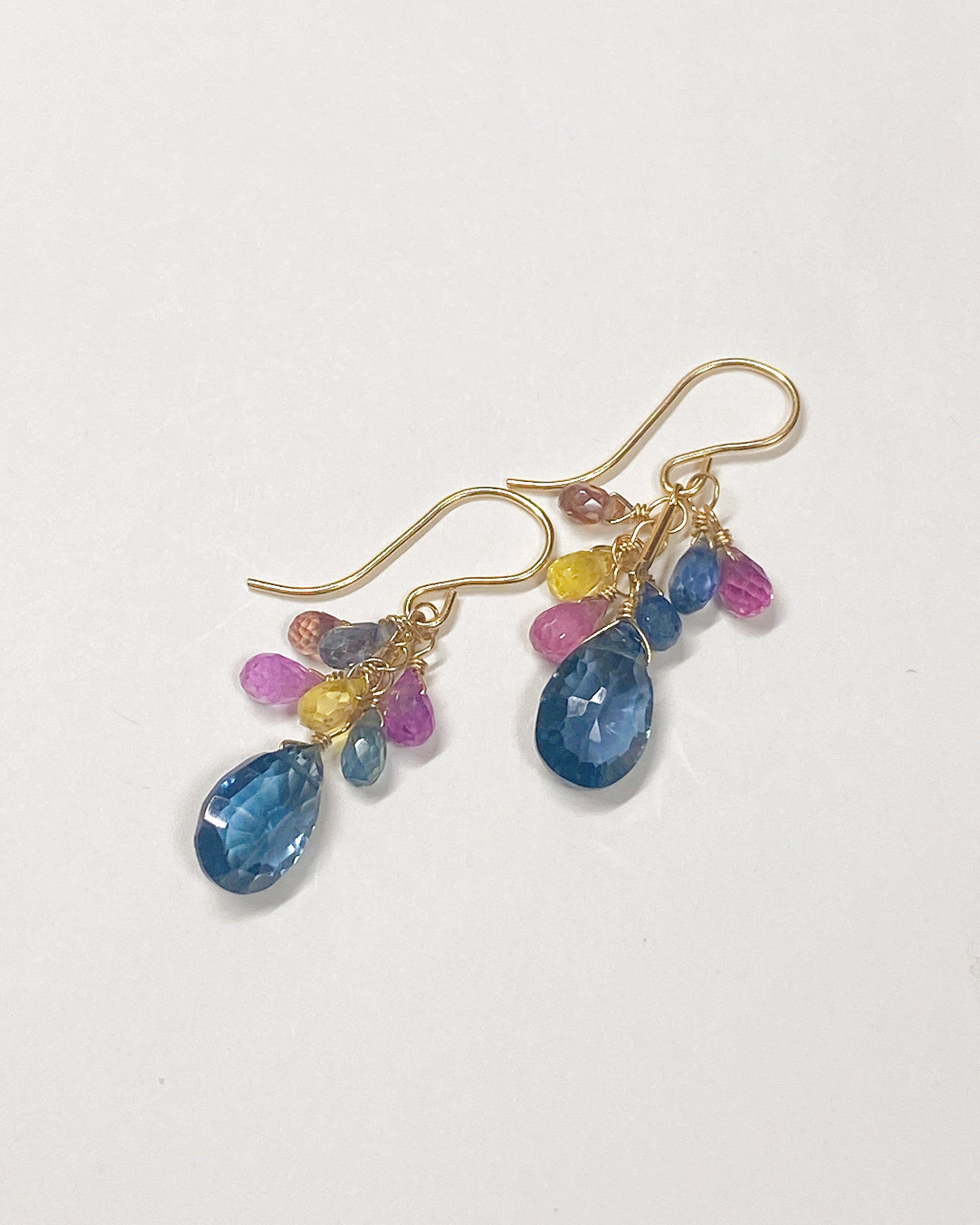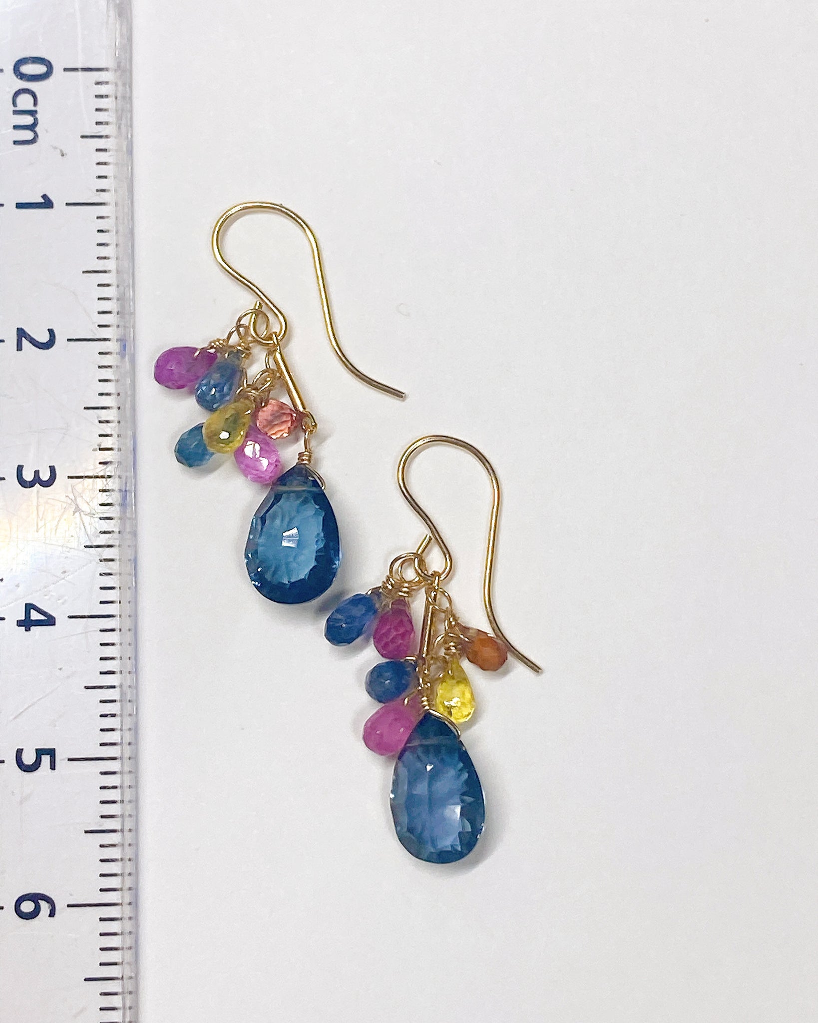 コンケーブカット ロンドンブルートパーズ とサファイアのブーケピアス