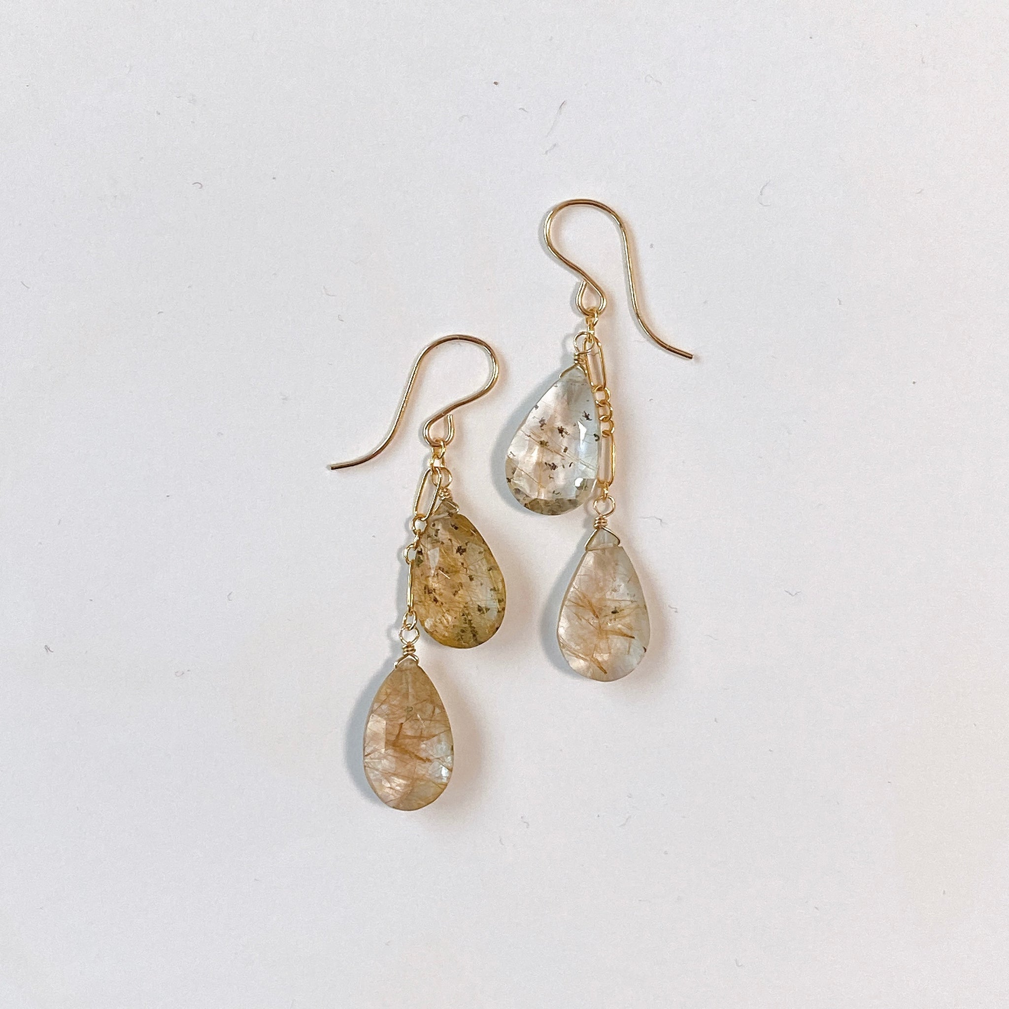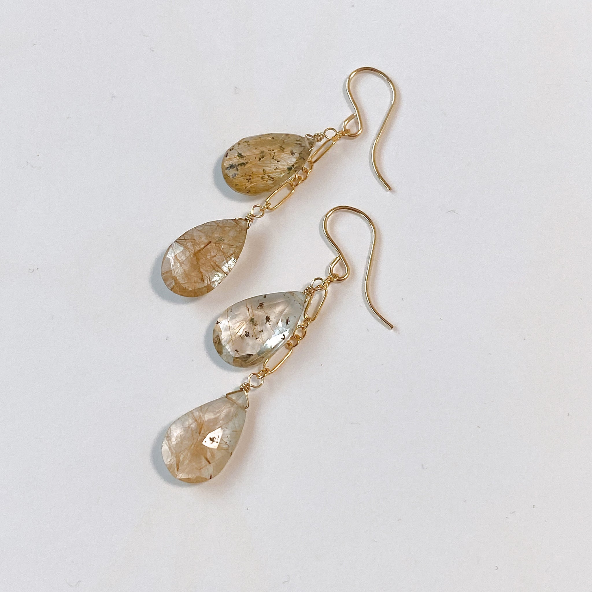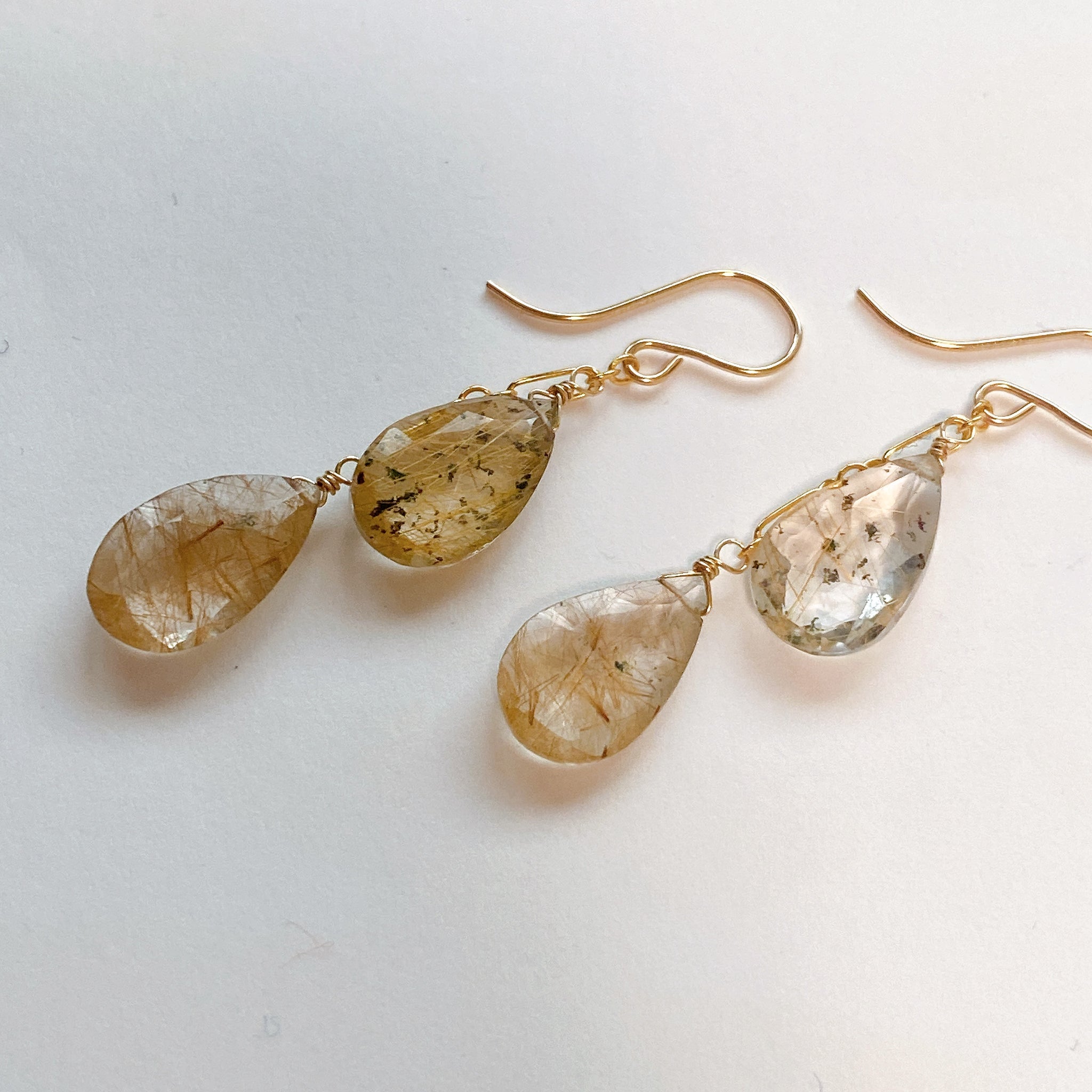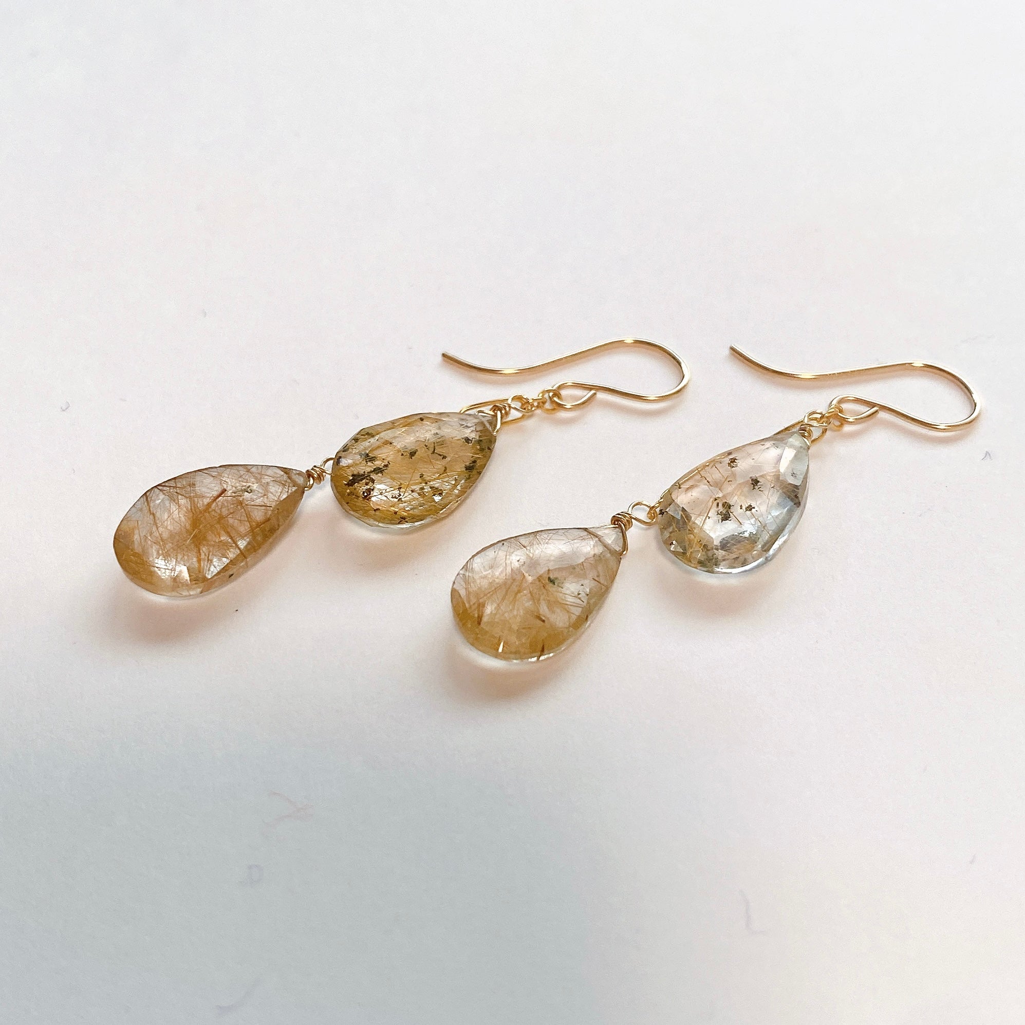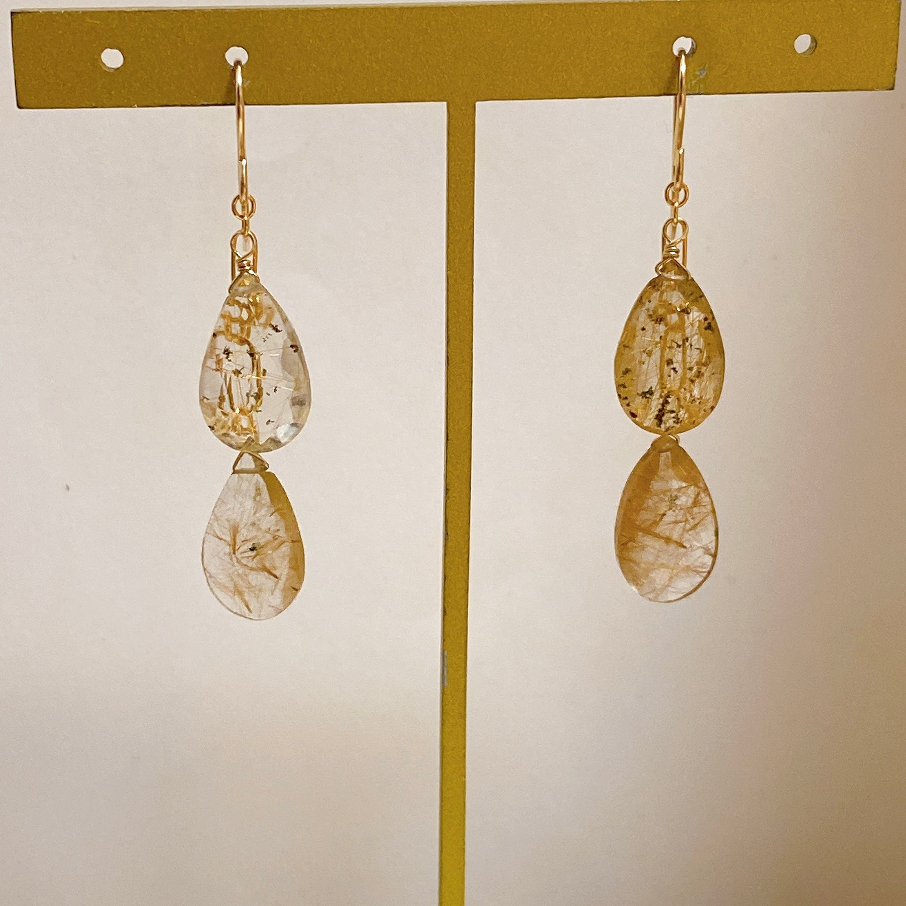 ゴールデンルチルクォーツのダブルピアス