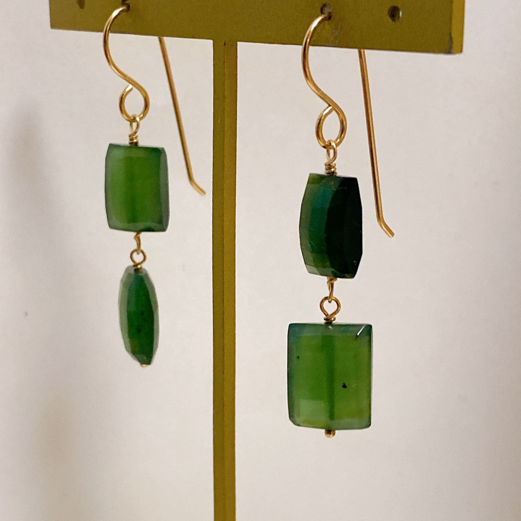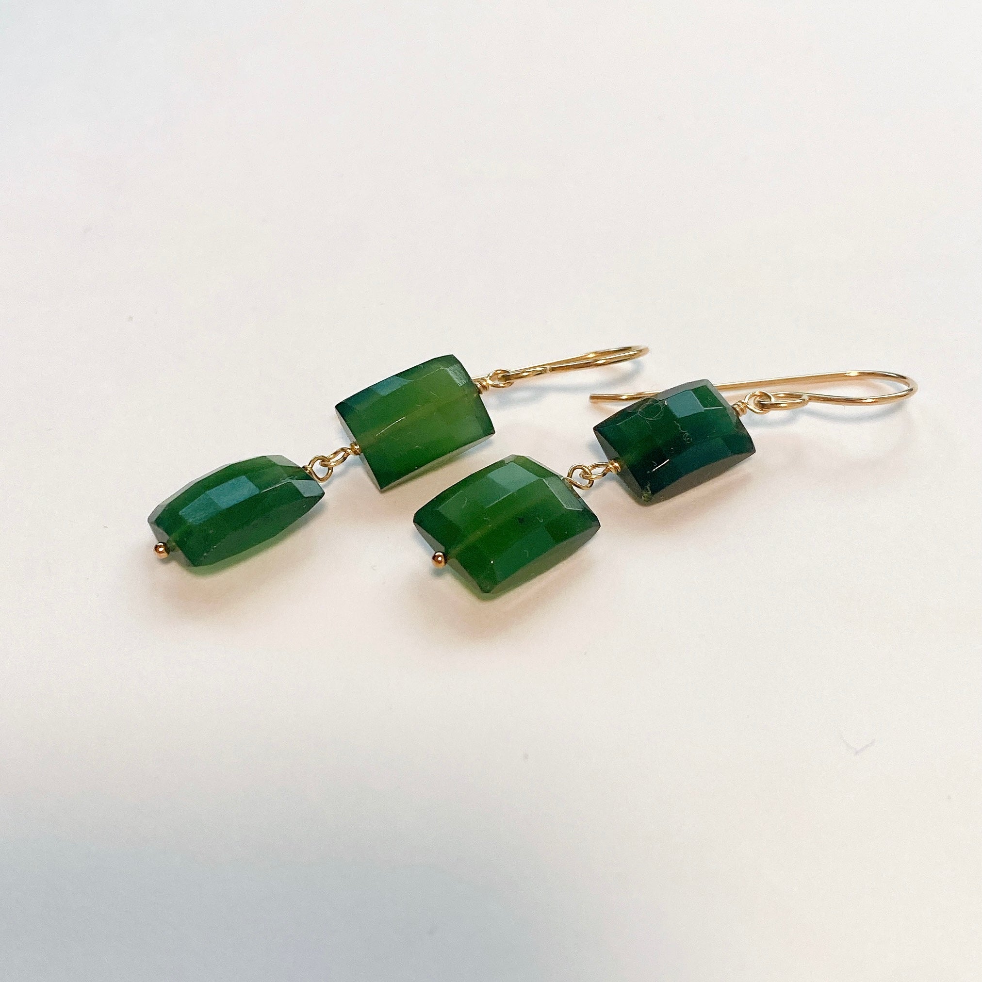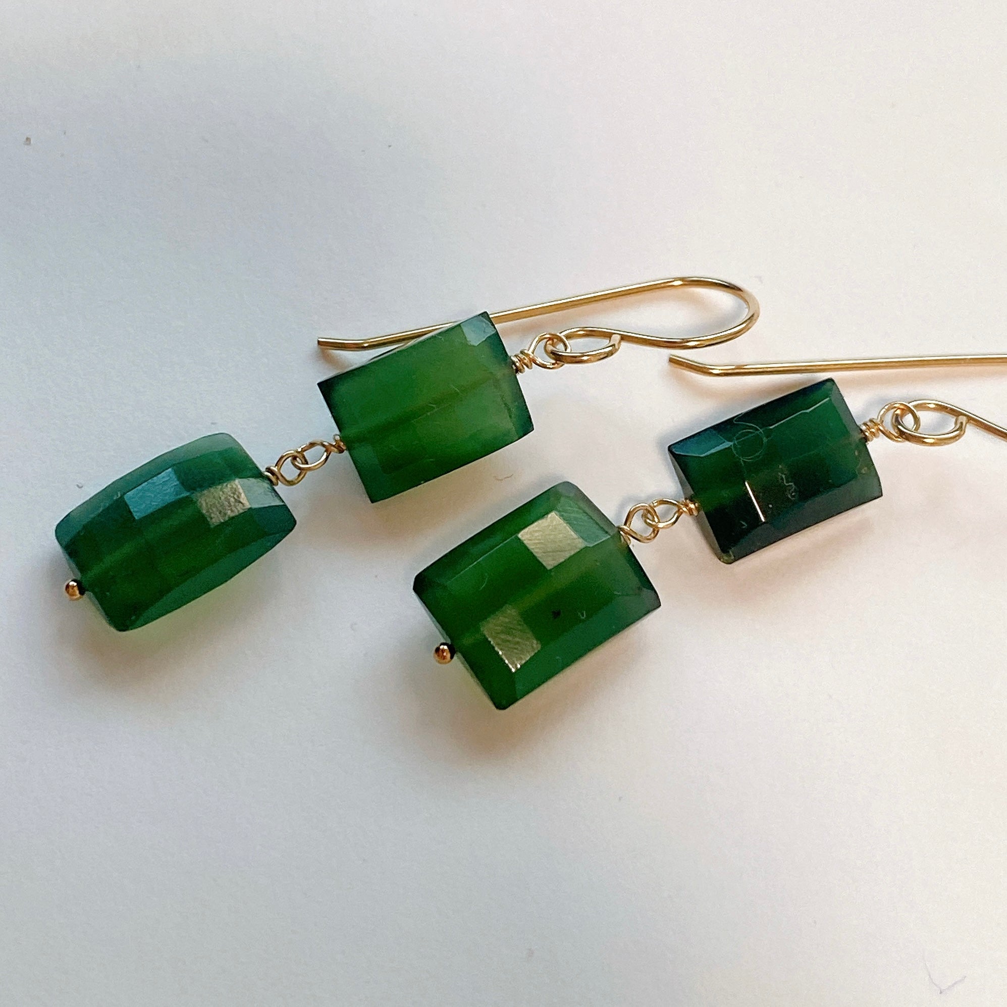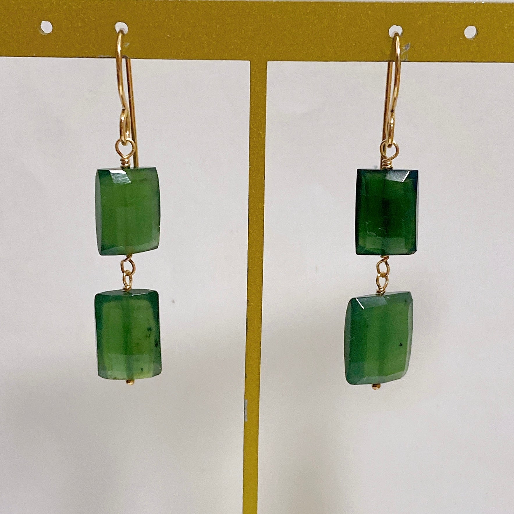 レクタングルカットのサーペンティンを使ってデザインした耳飾りです。