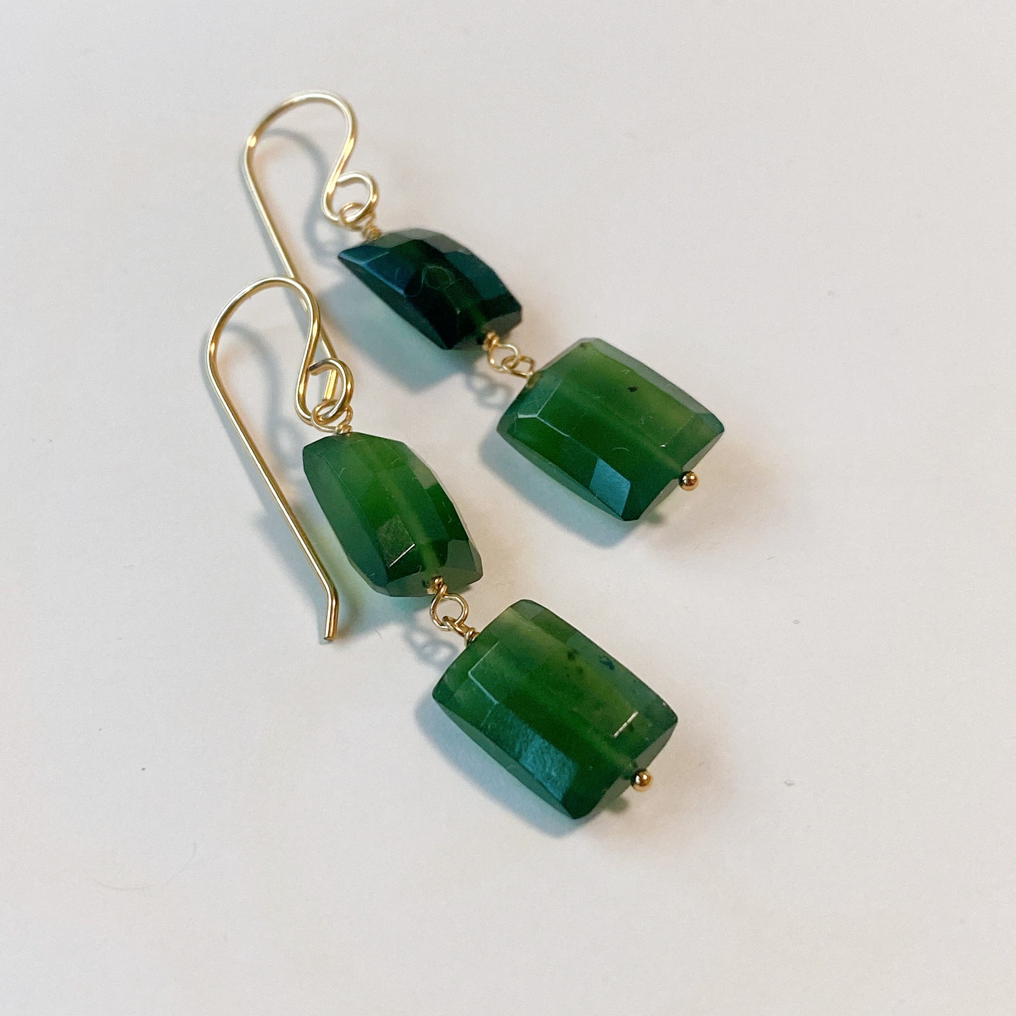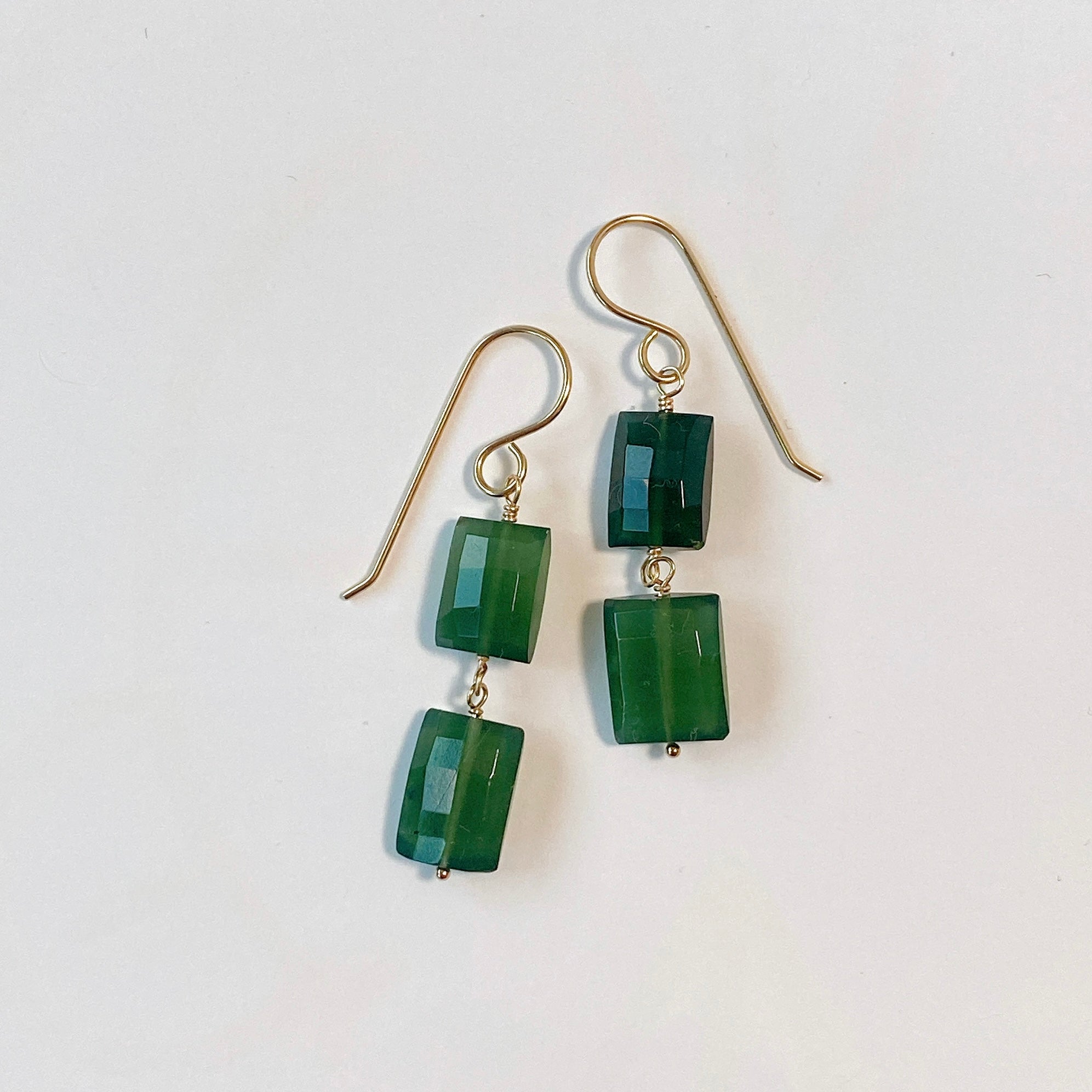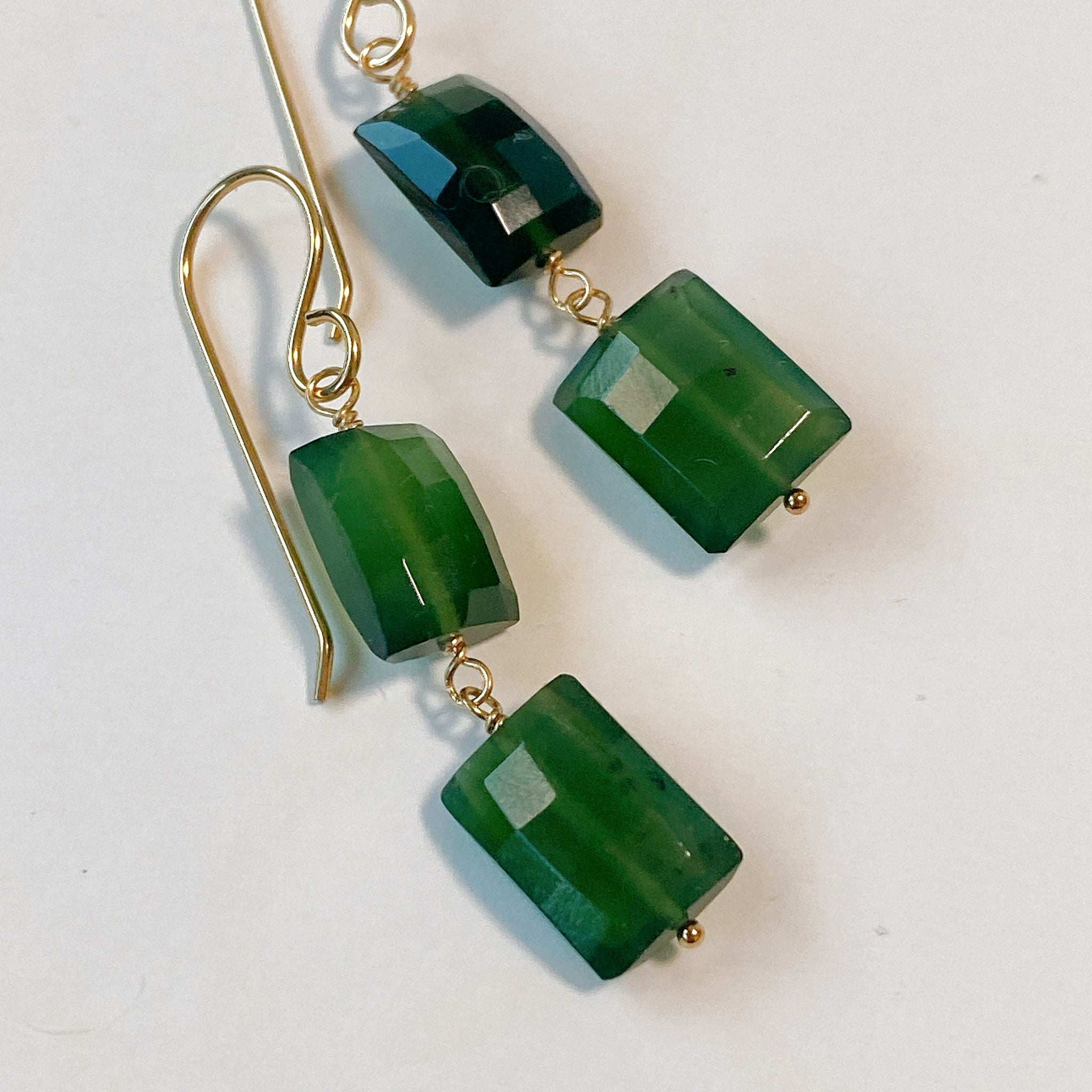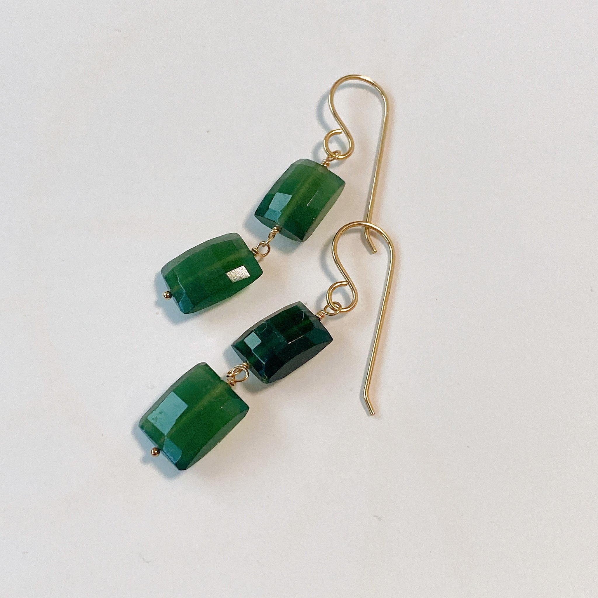 レクタングルカットのサーペンティンを使ってデザインした耳飾りです。