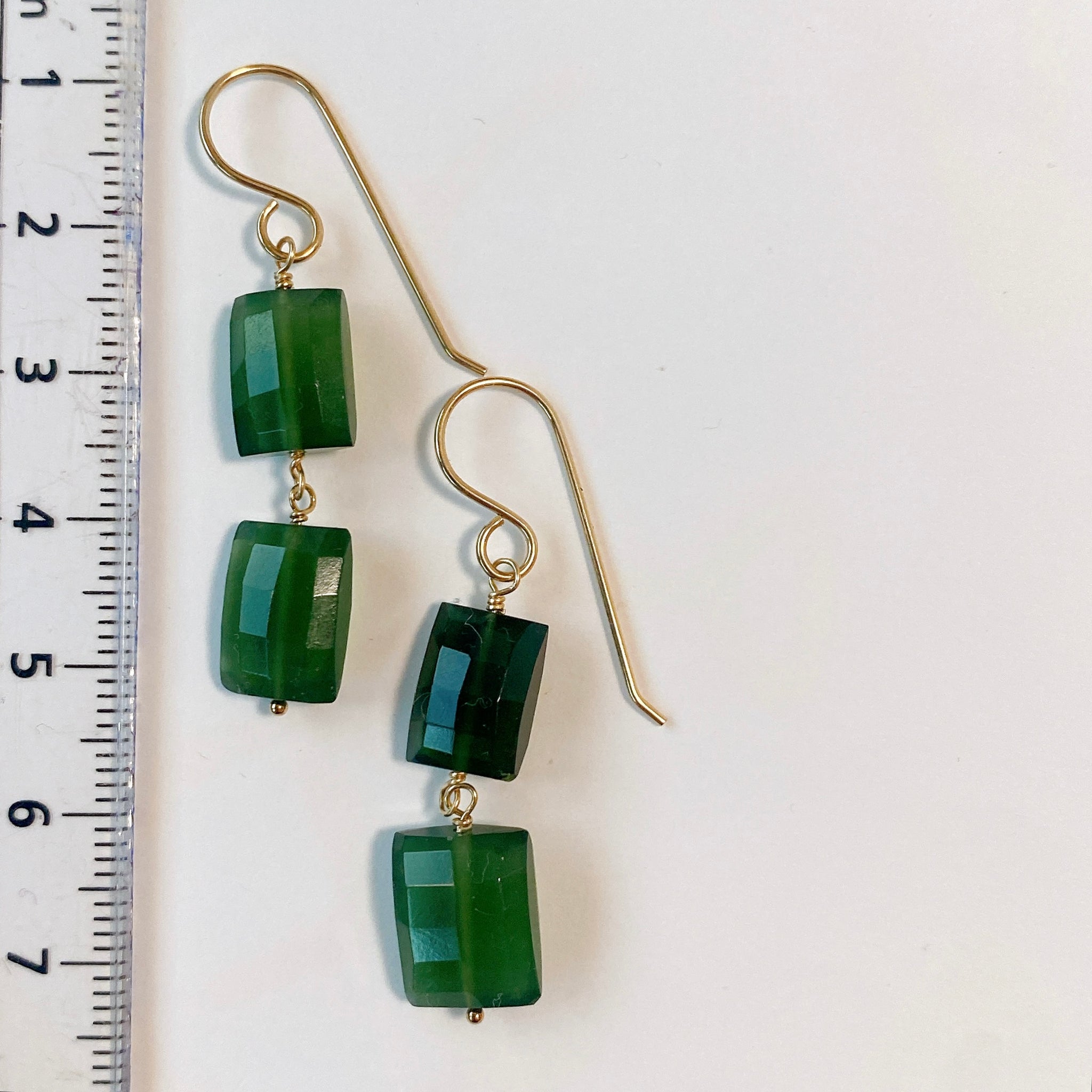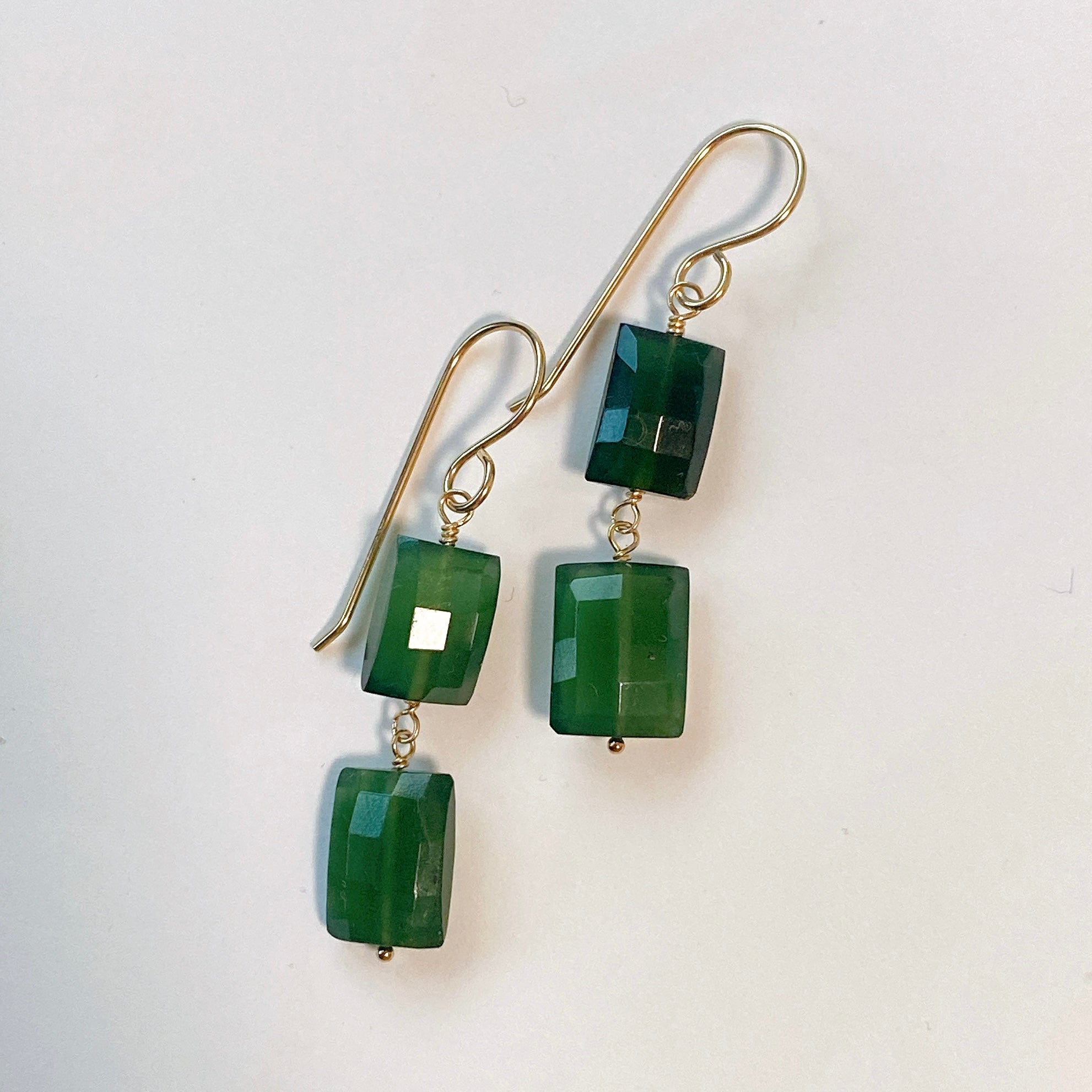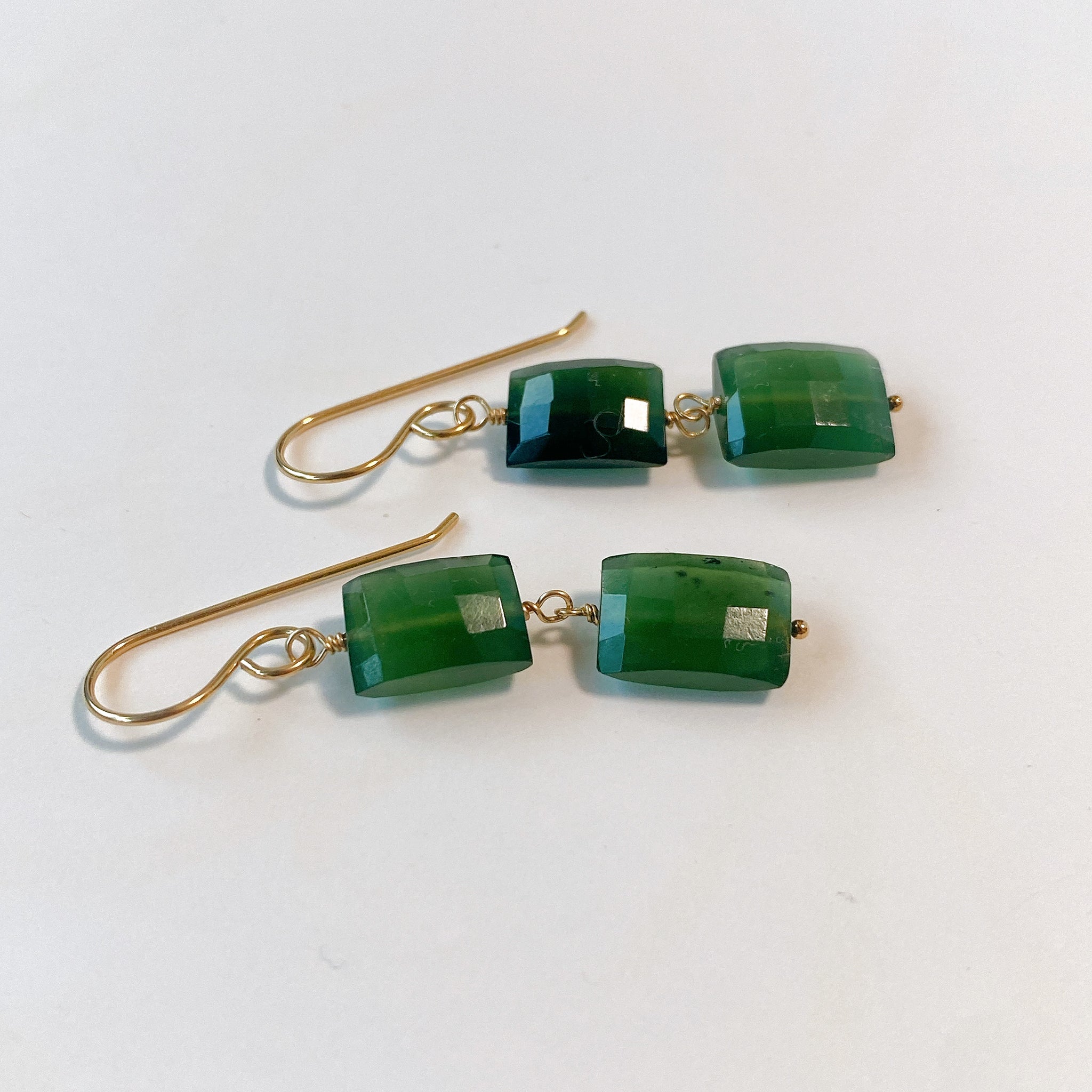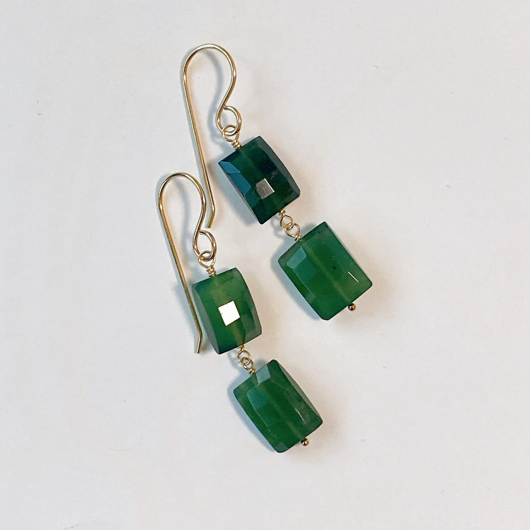 レクタングルカットのサーペンティンを使ってデザインした耳飾りです。