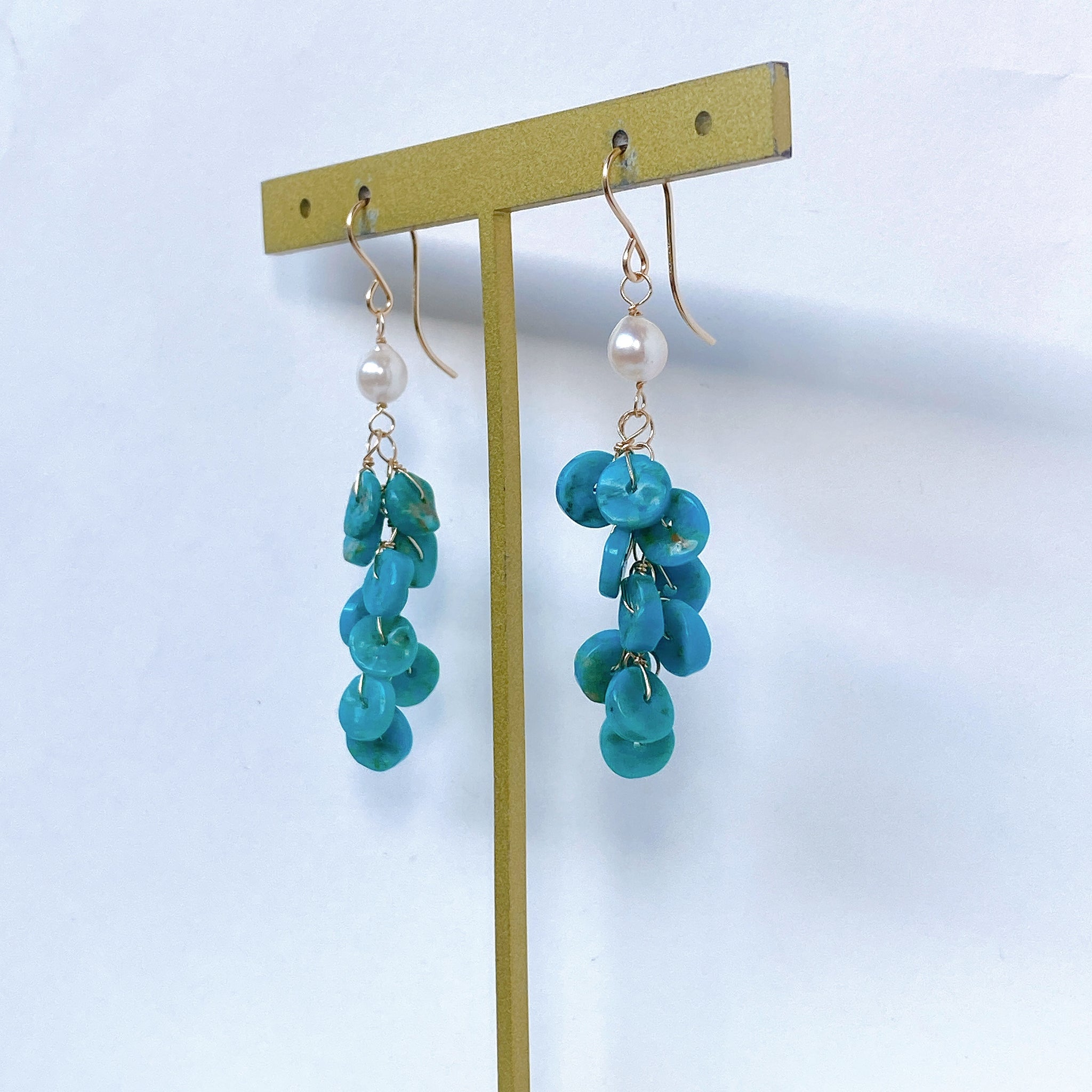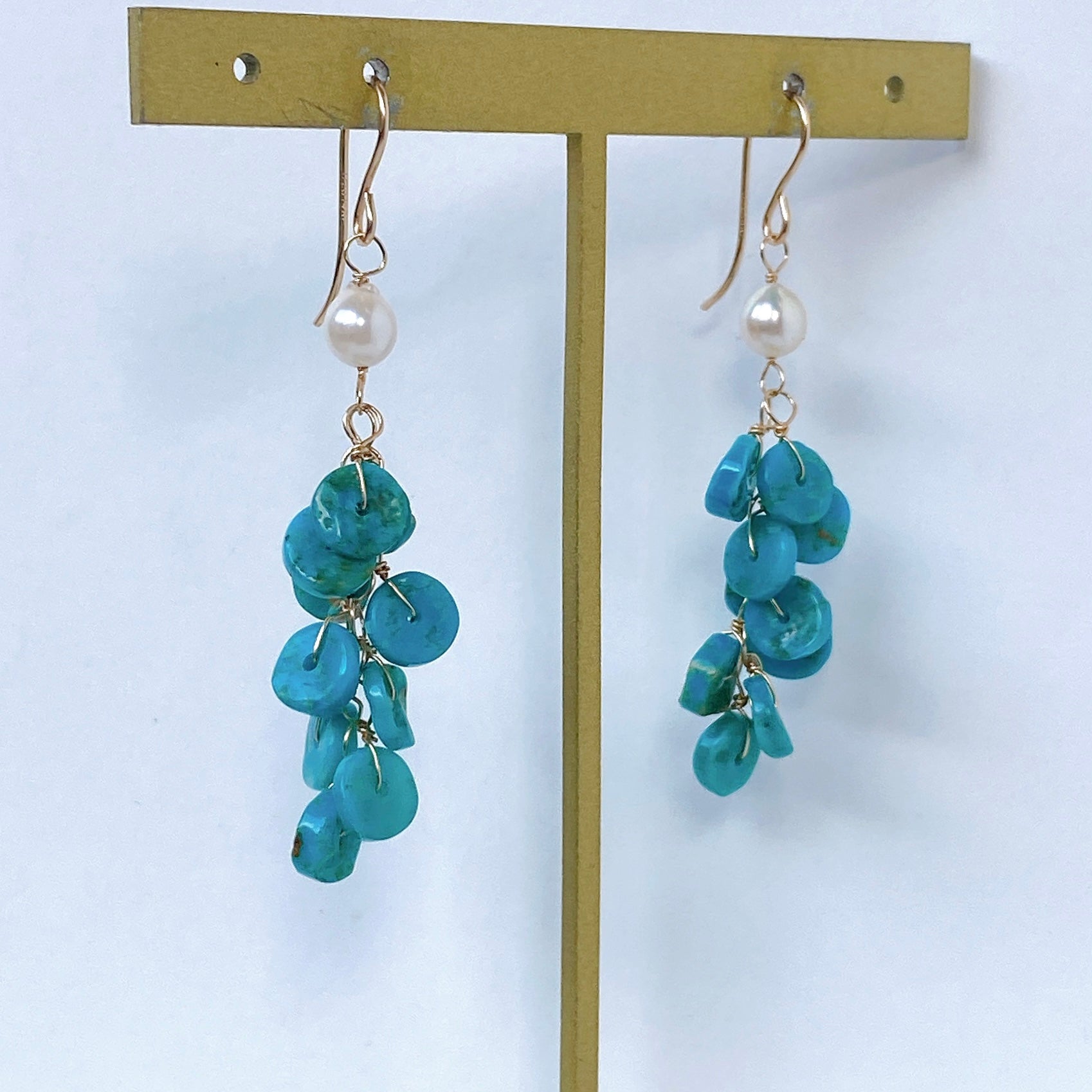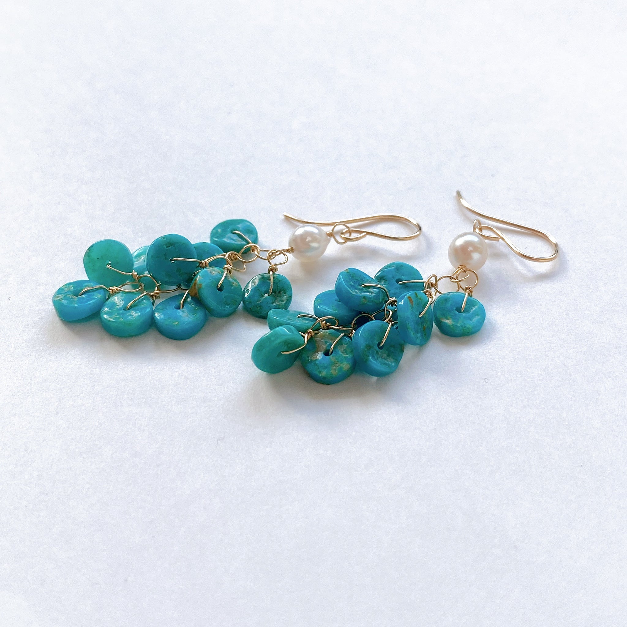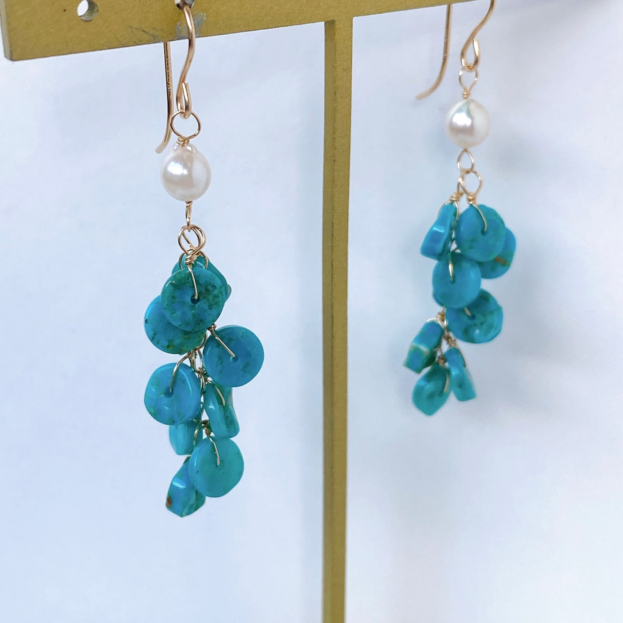 ソノランターコイズとアコヤベビーパールのしゃらしゃらピアス