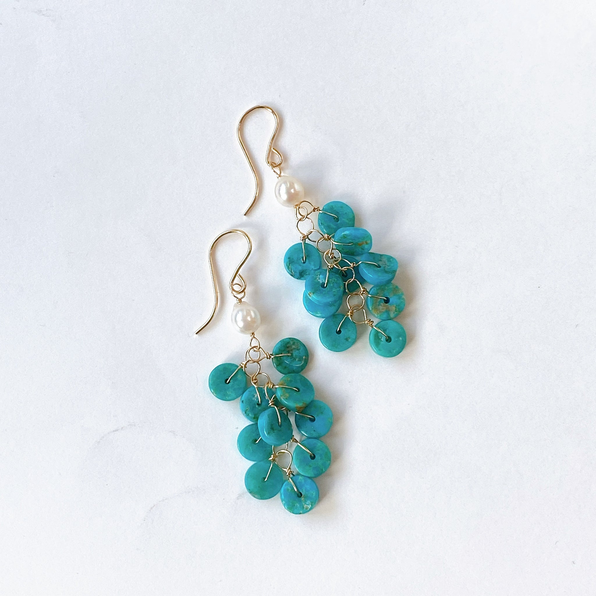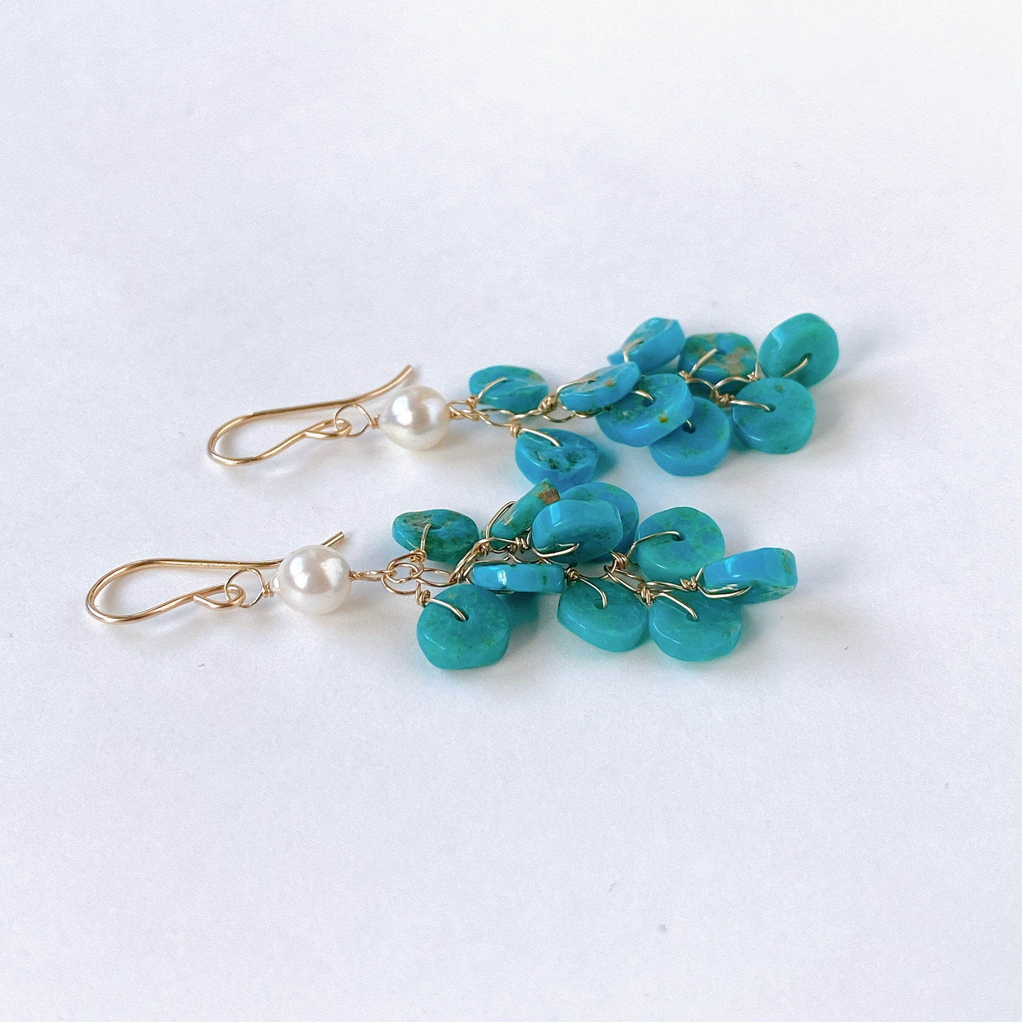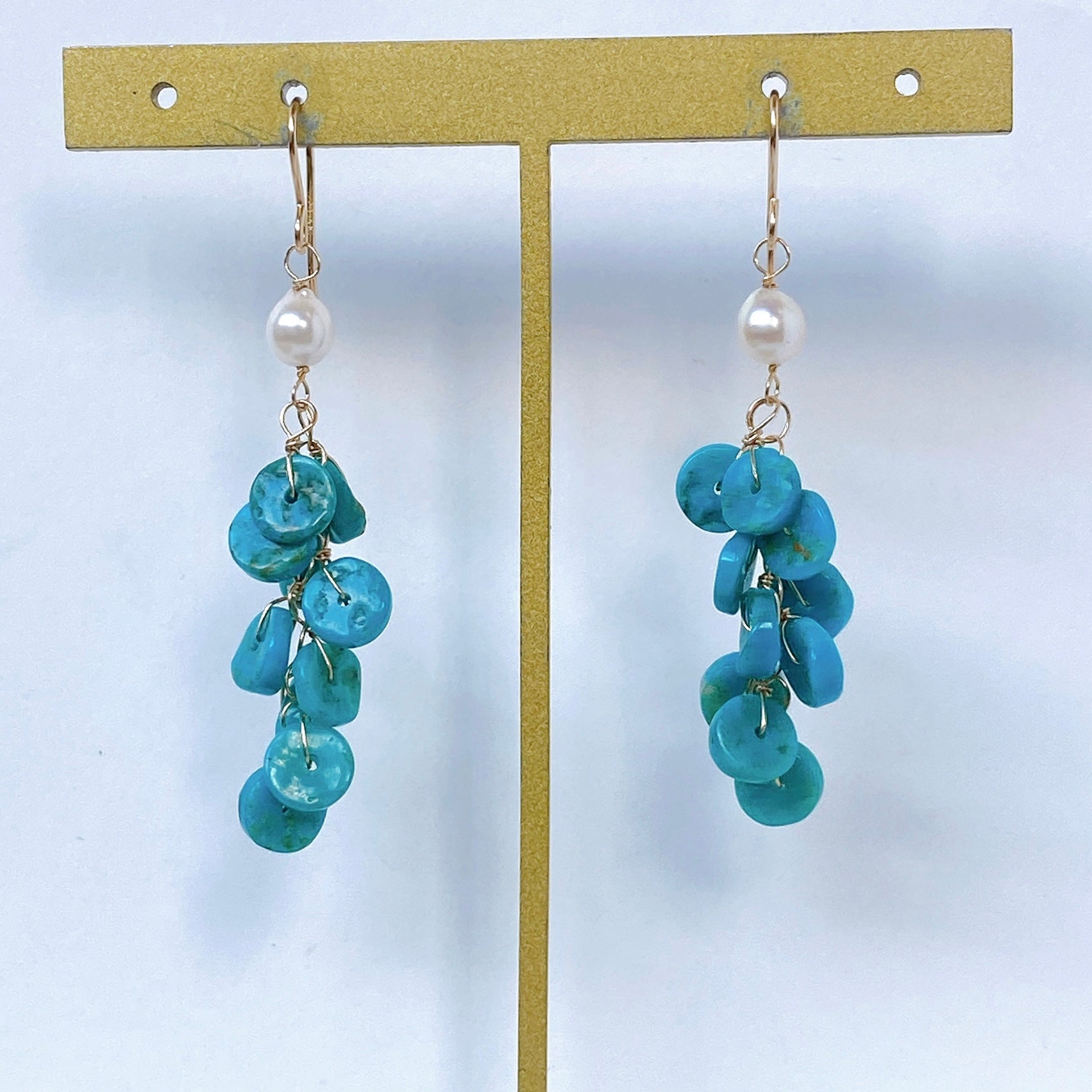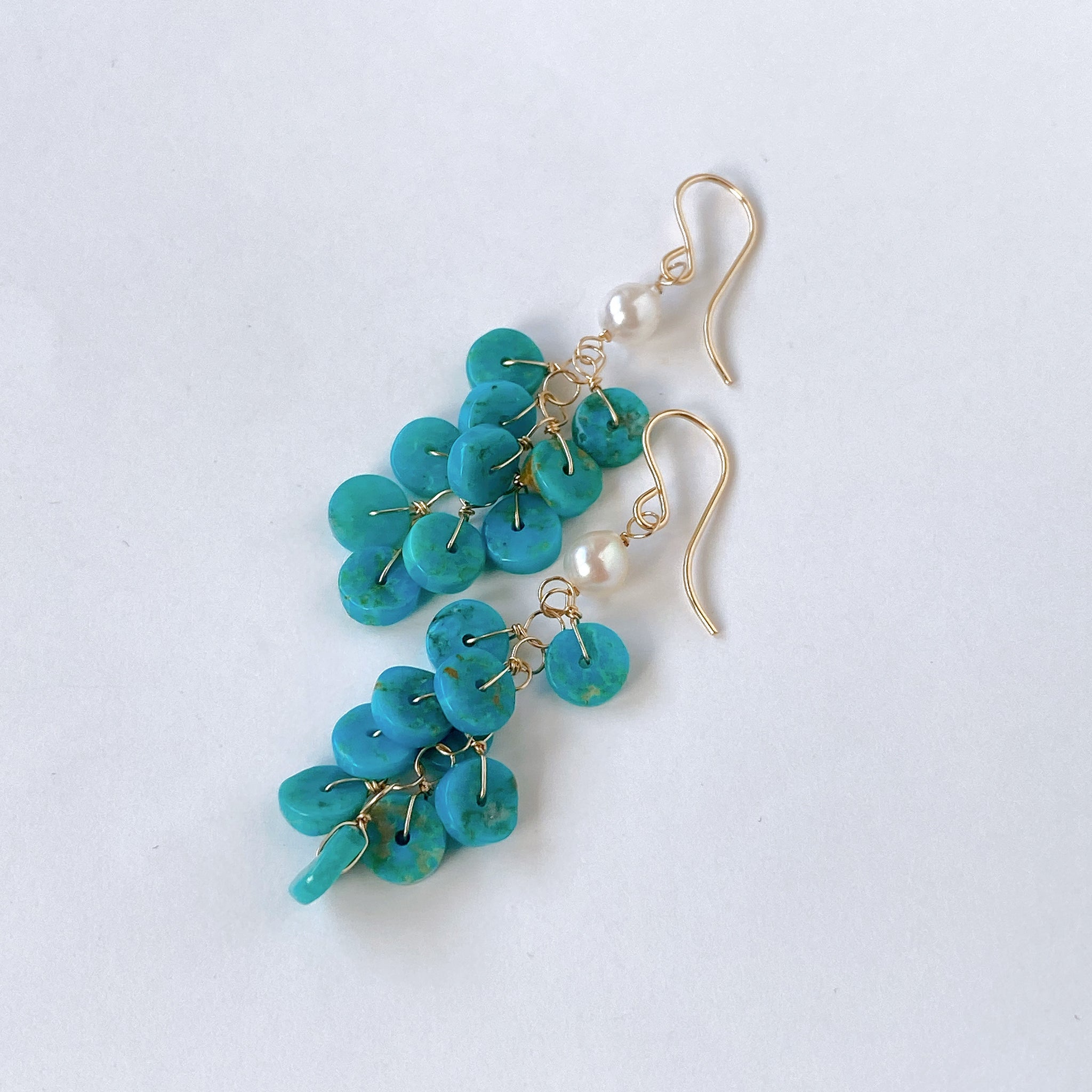 ソノランターコイズとアコヤベビーパールのしゃらしゃらピアス