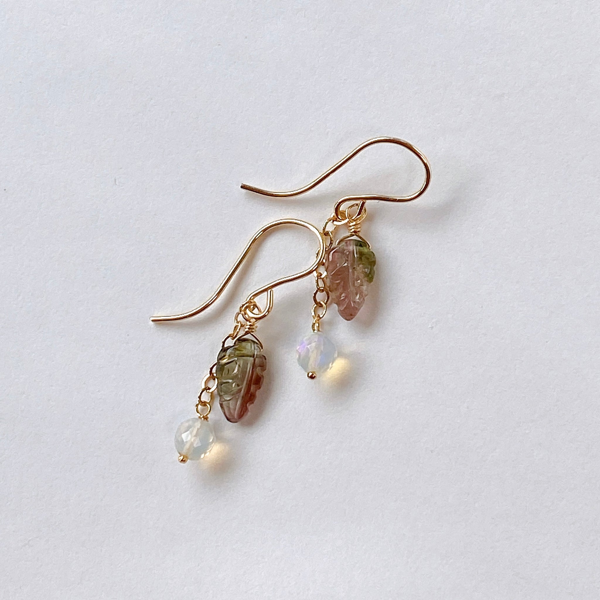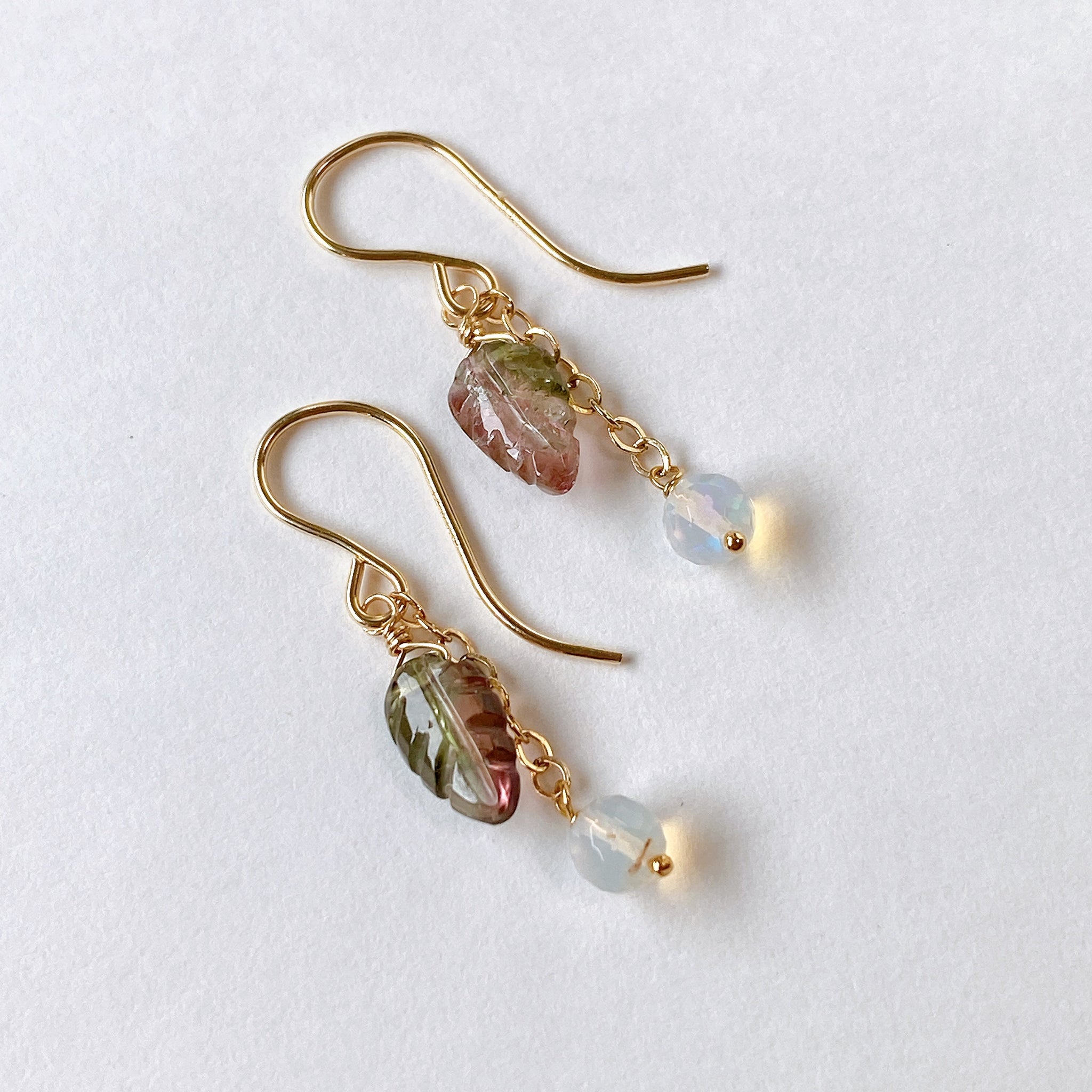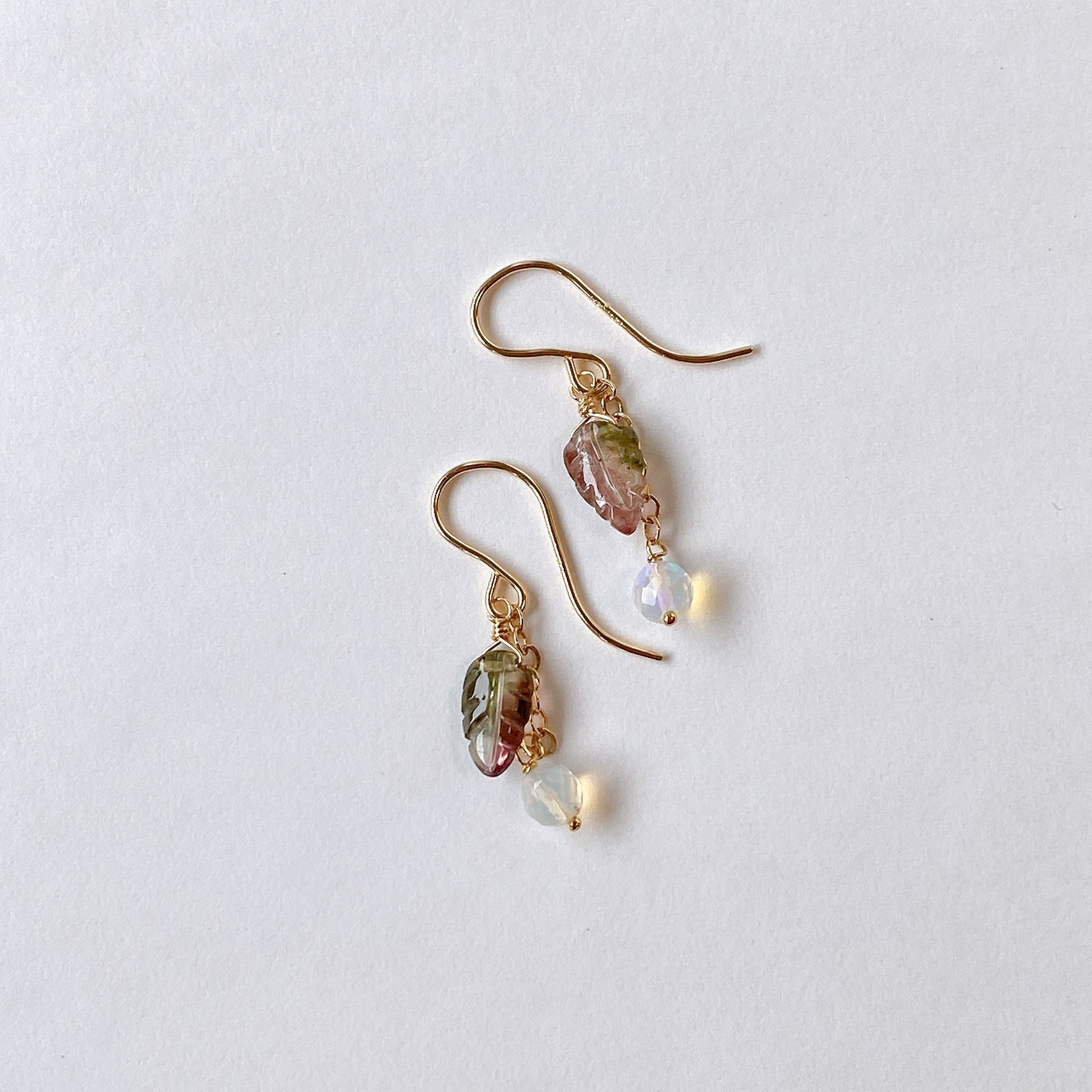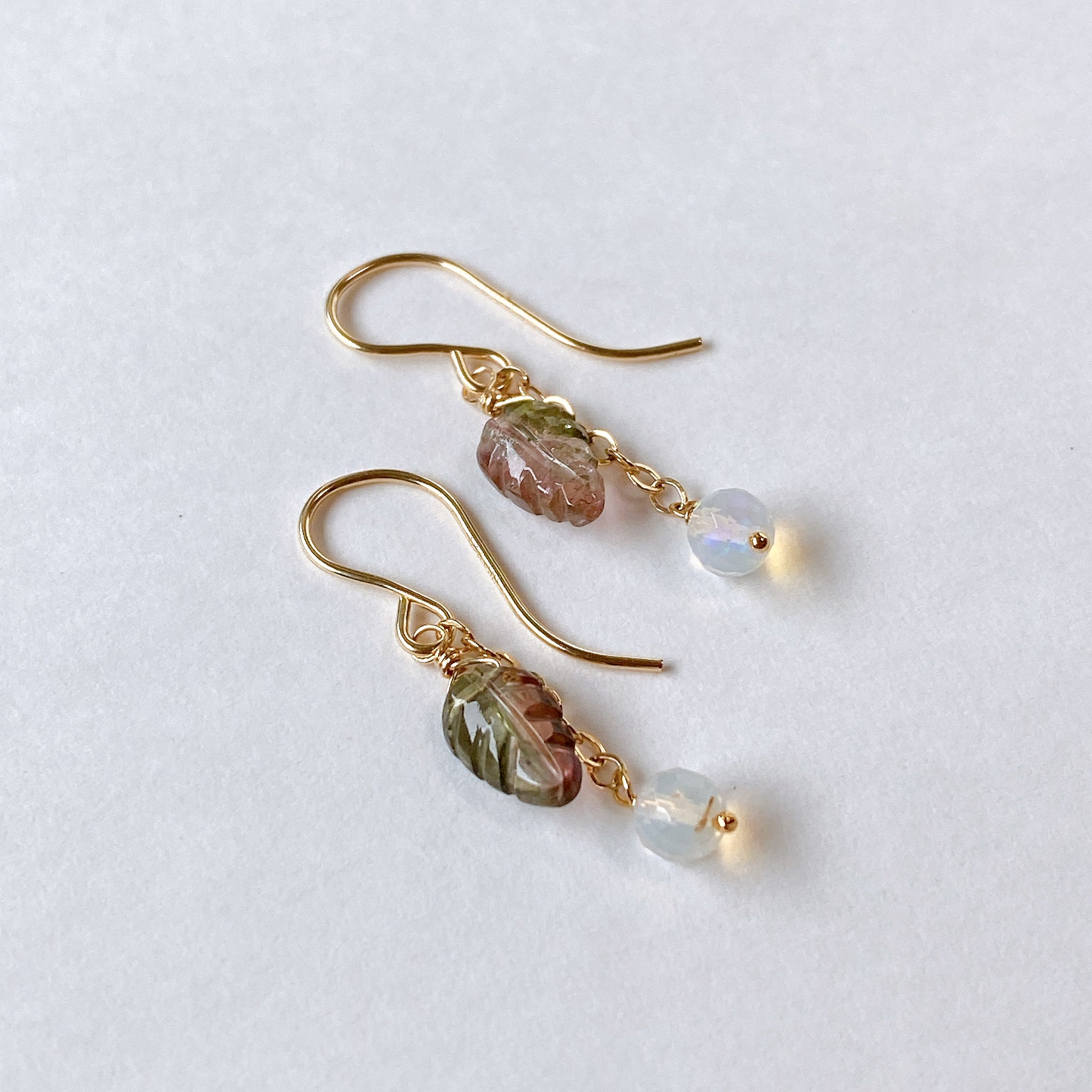 トルマリンリーフとオパールのコンパクトピアス
