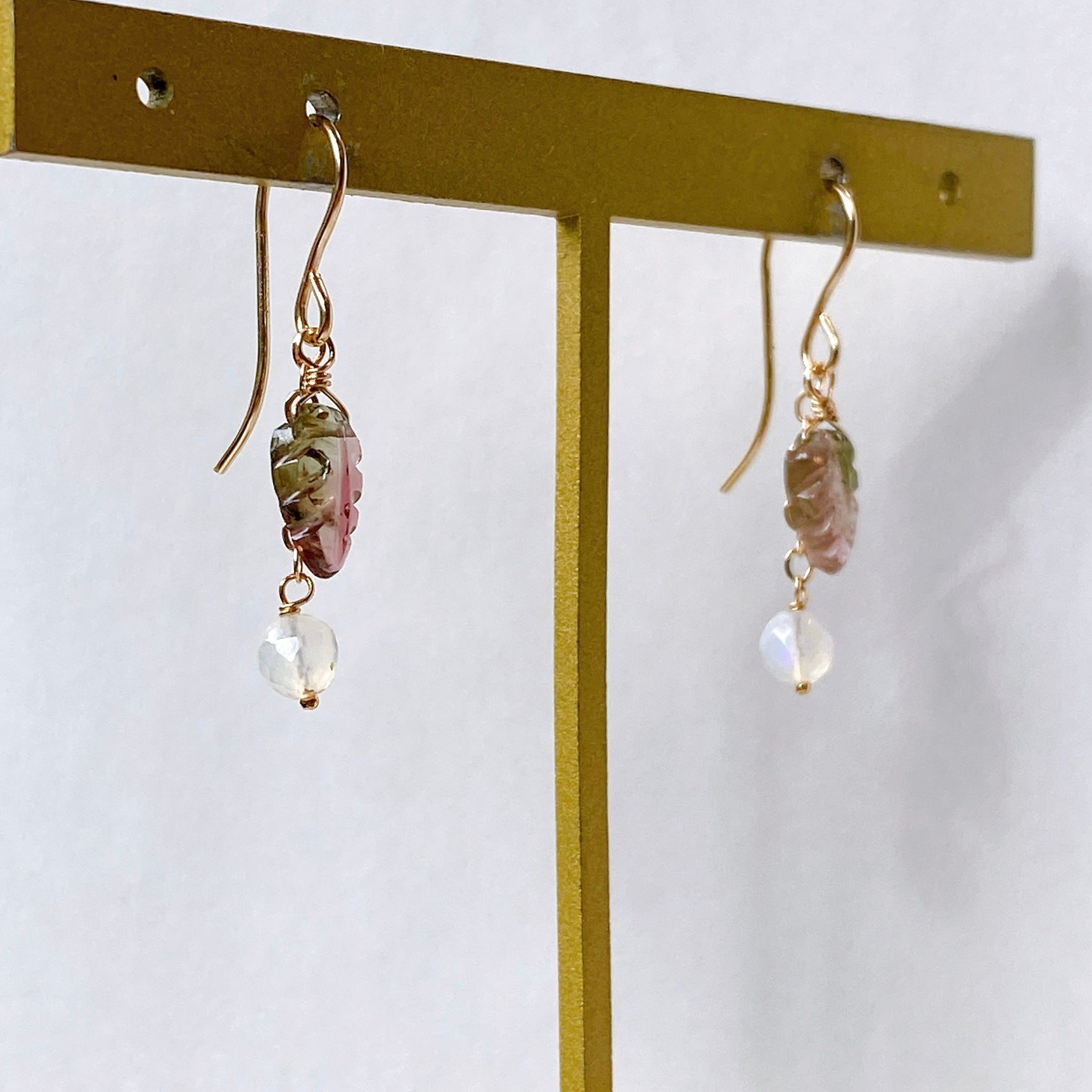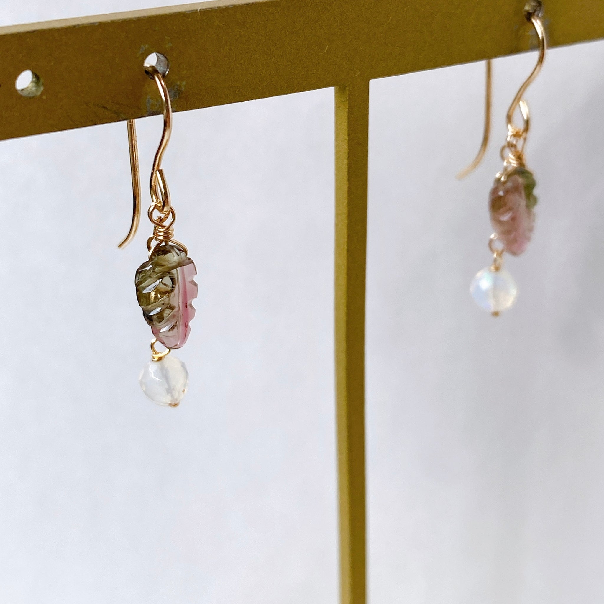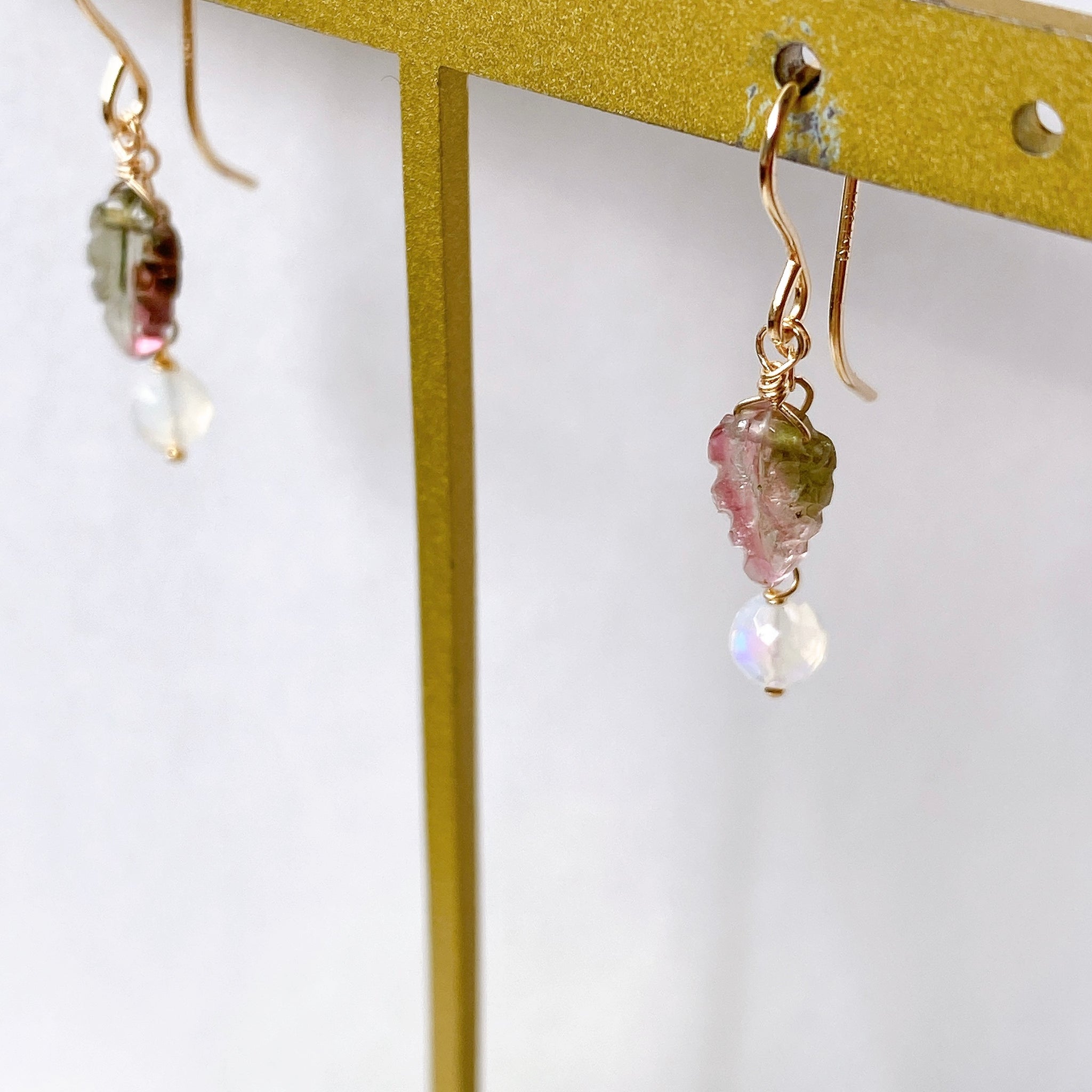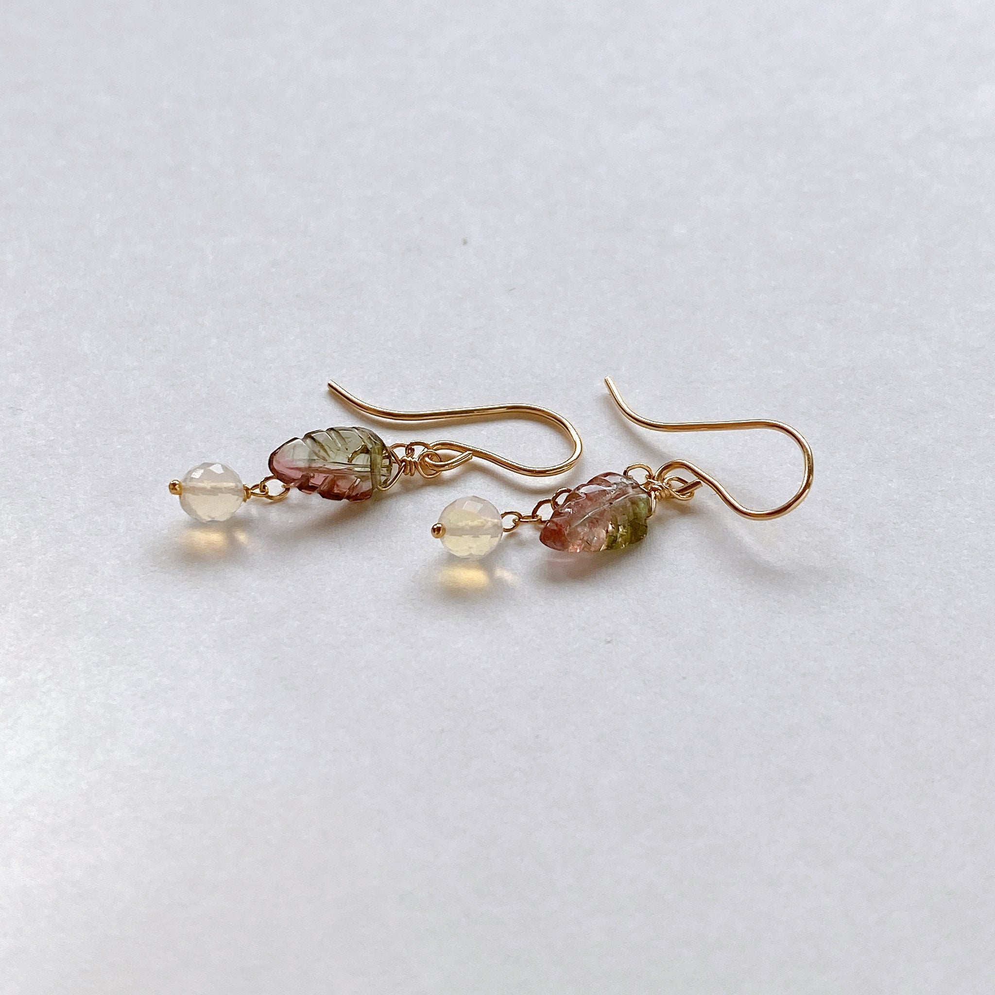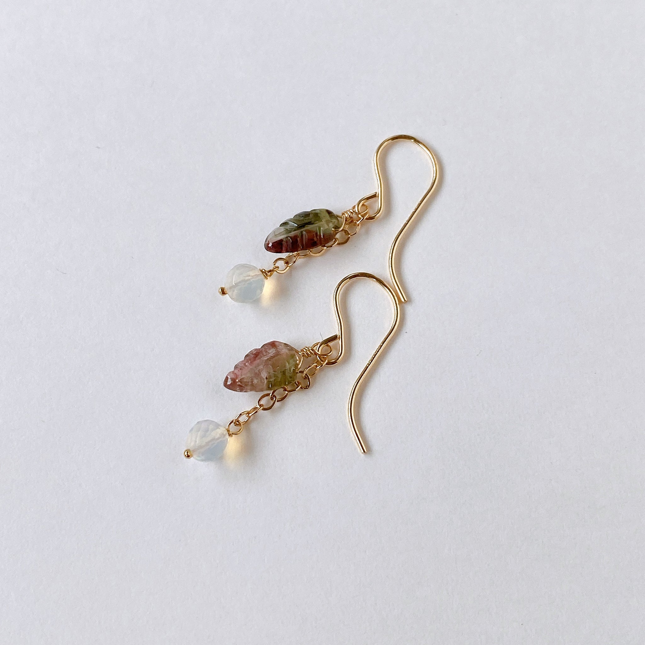 トルマリンリーフとオパールのコンパクトピアス