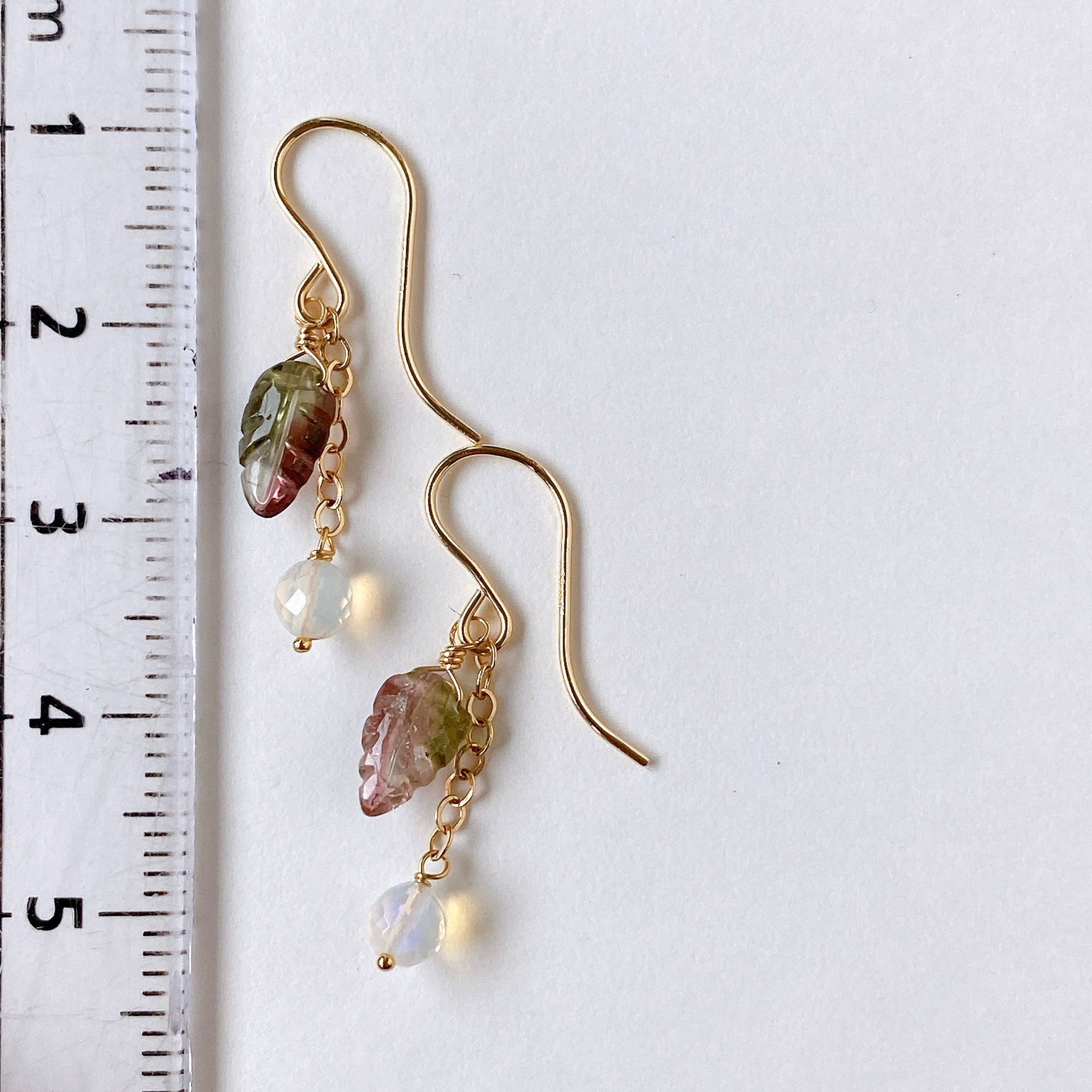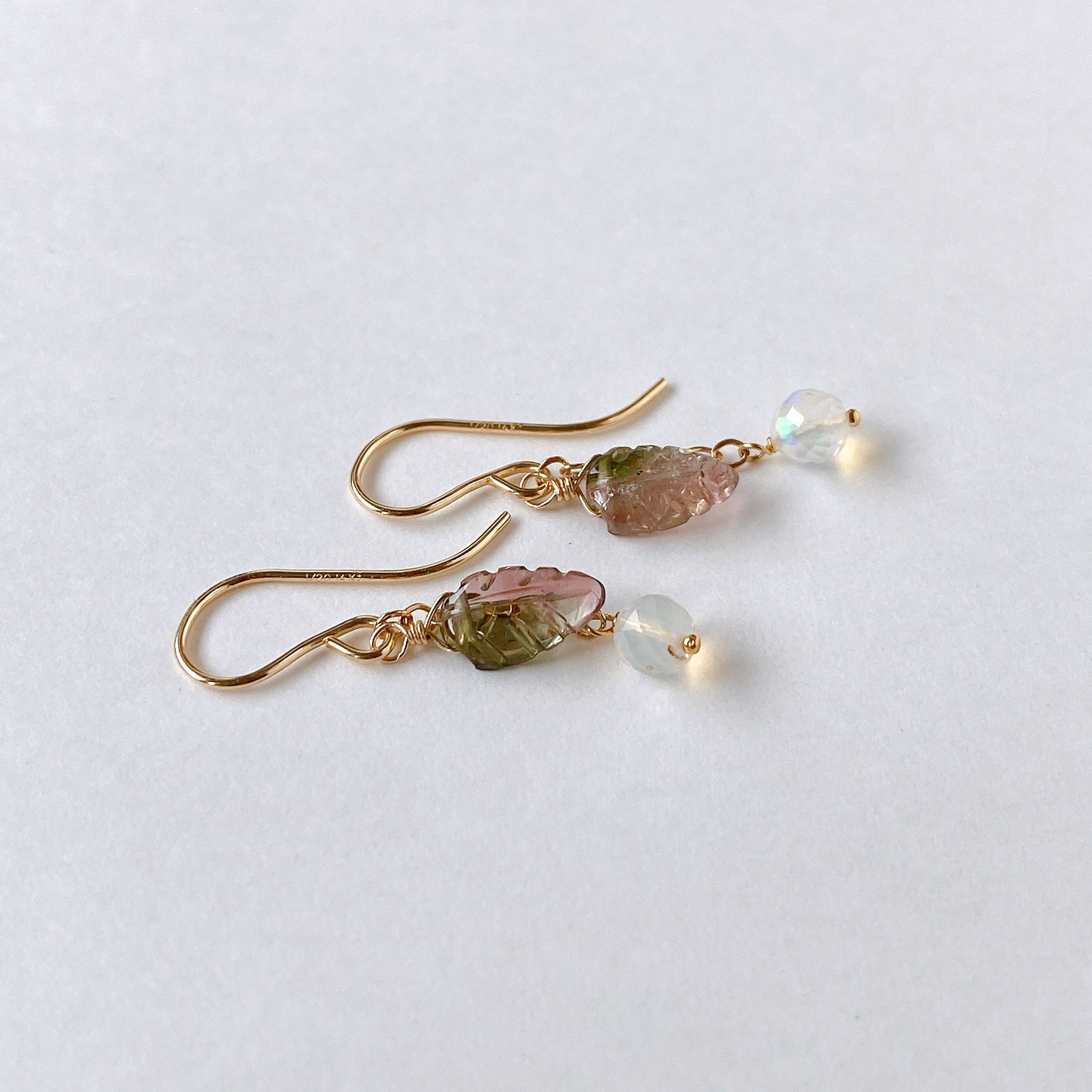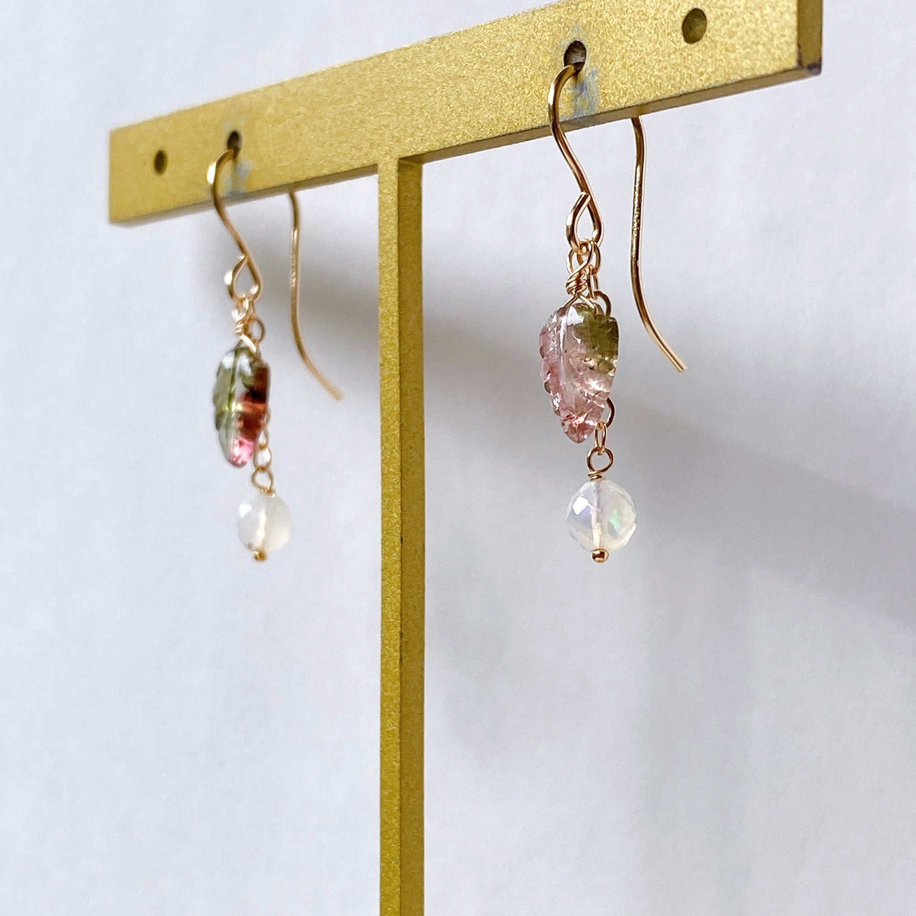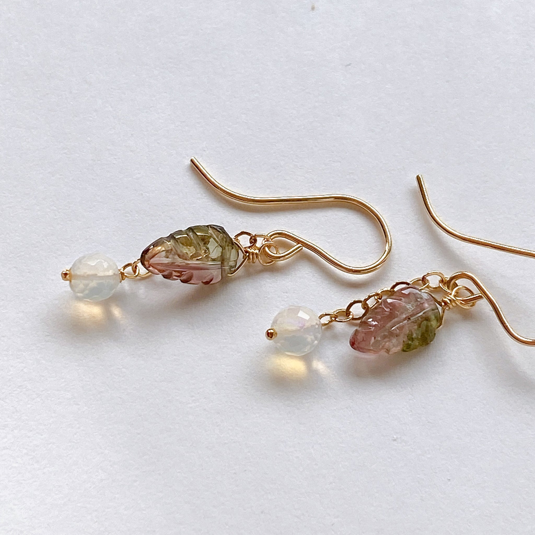 バイカラートルマリンとオパールを使ってデザインした耳飾りです。