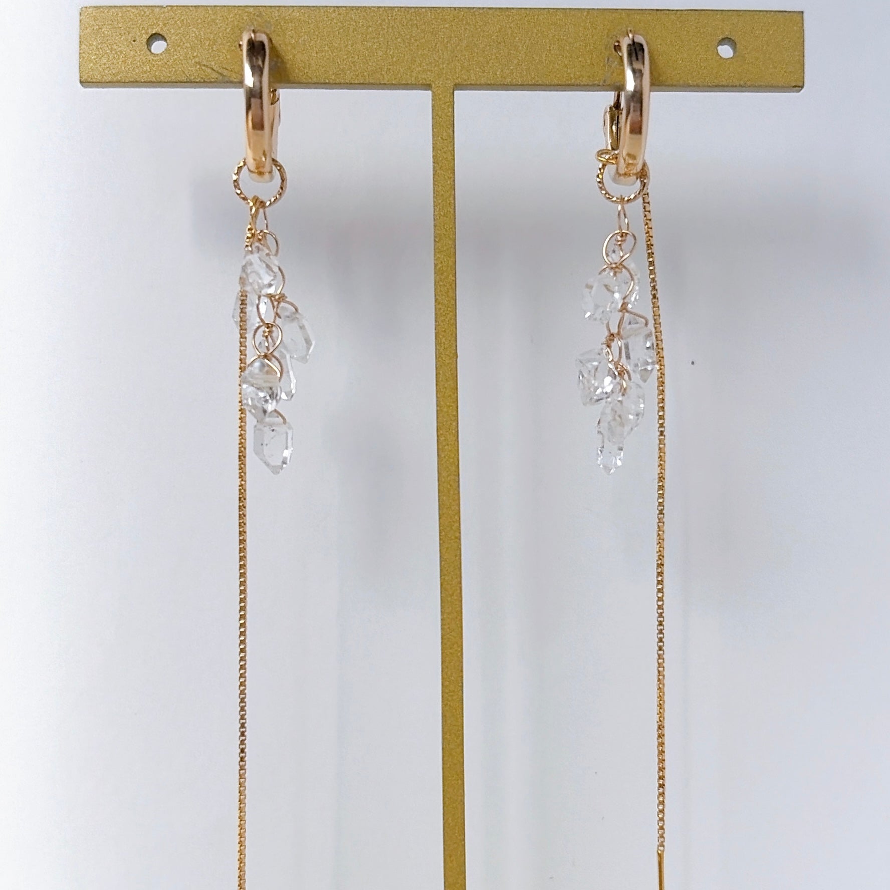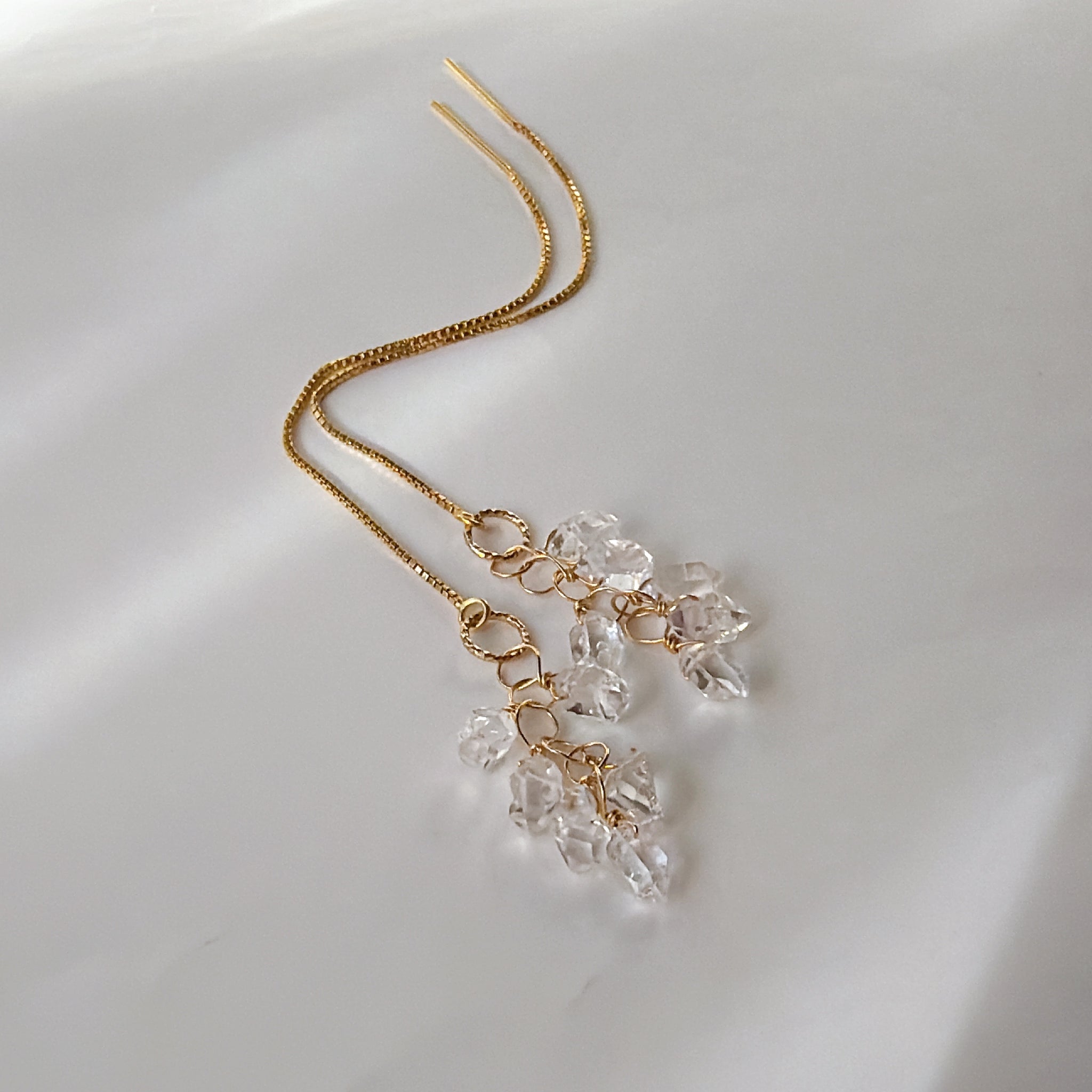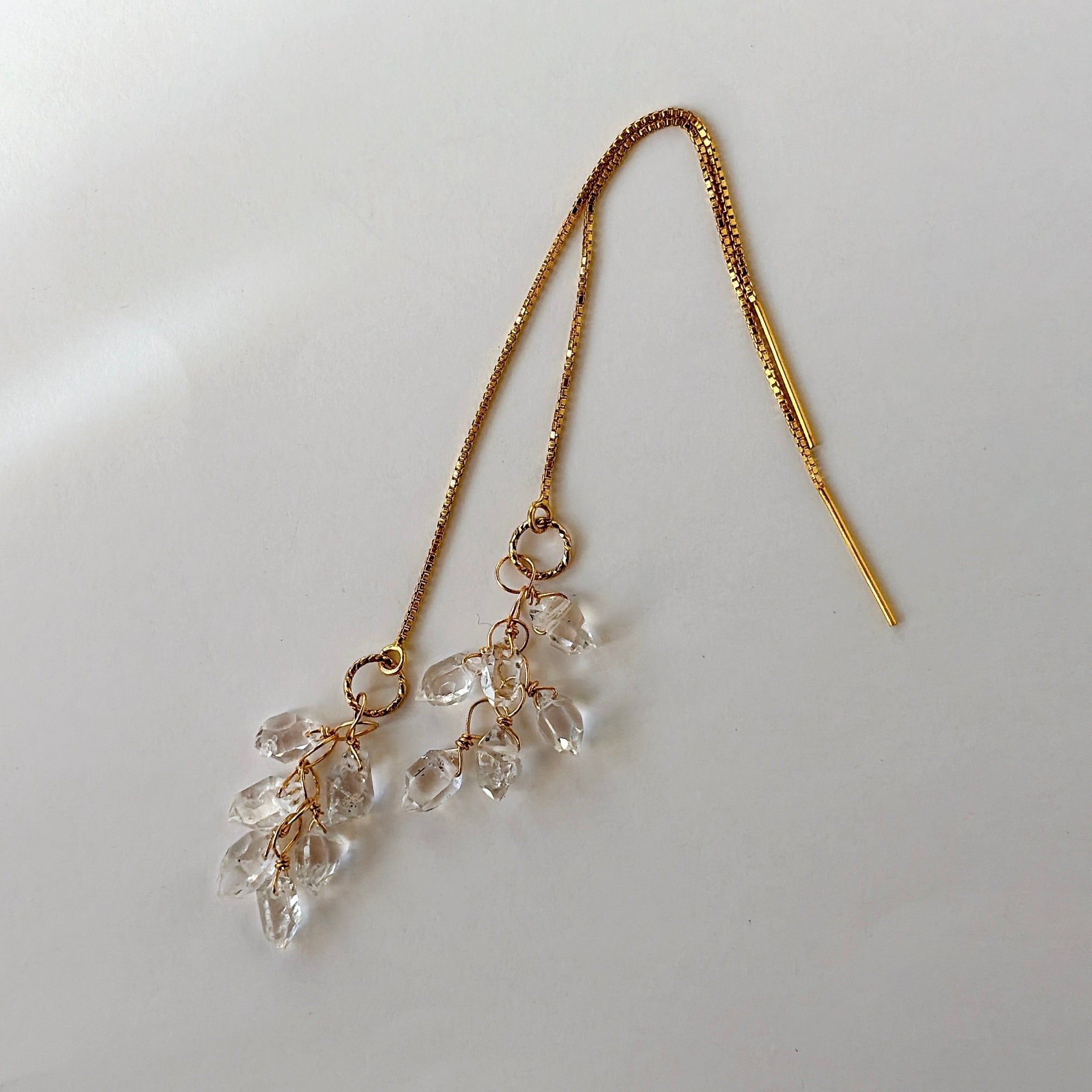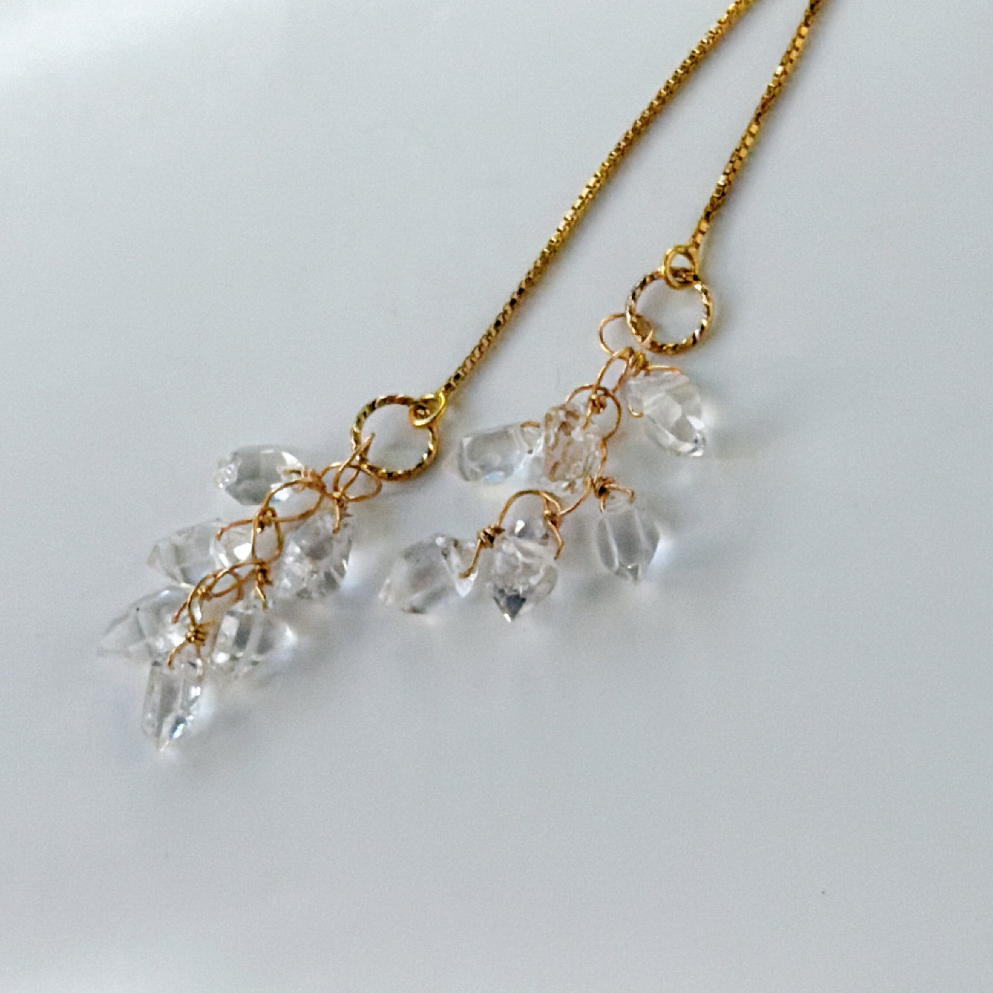 ハーキマークォーツを使ってデザインしたアメリカンピアス兼ピアスチャームです。