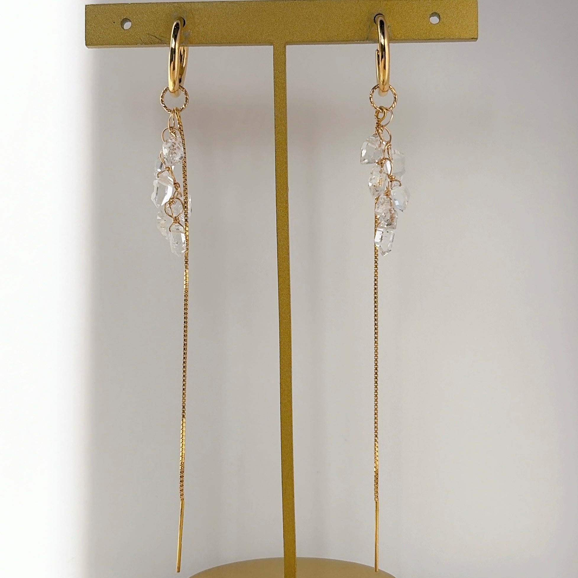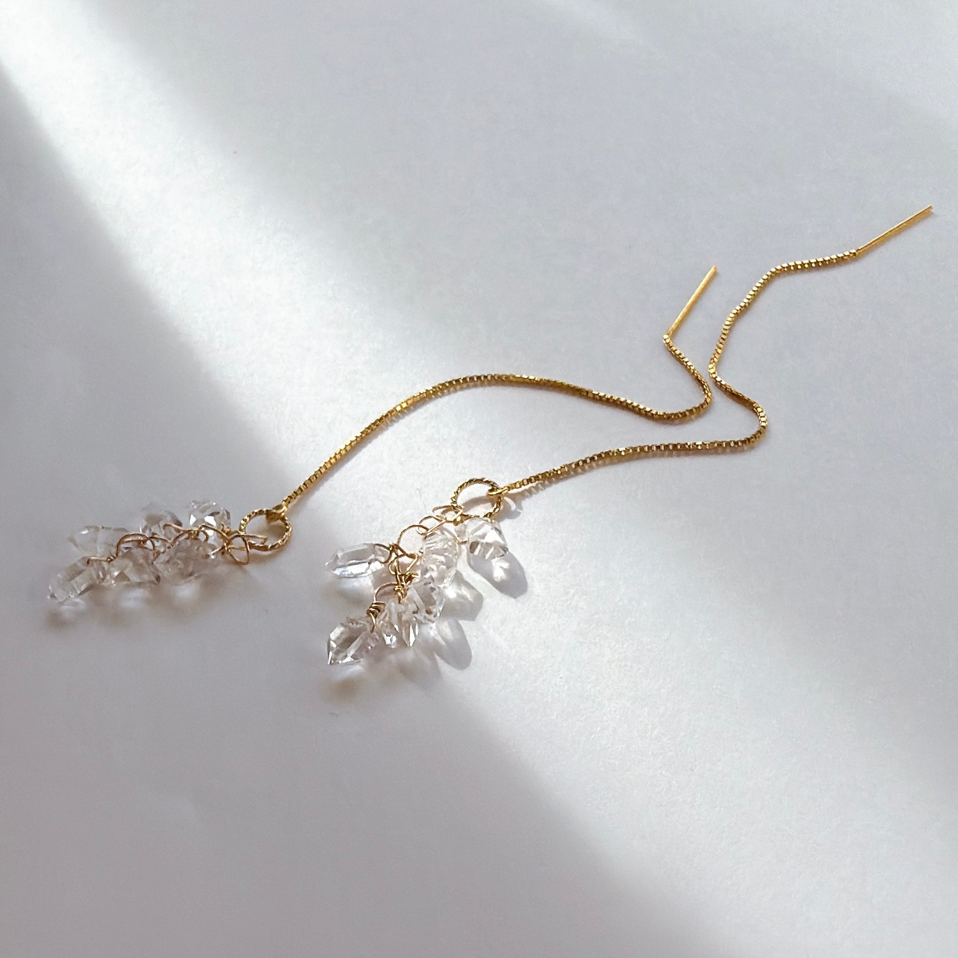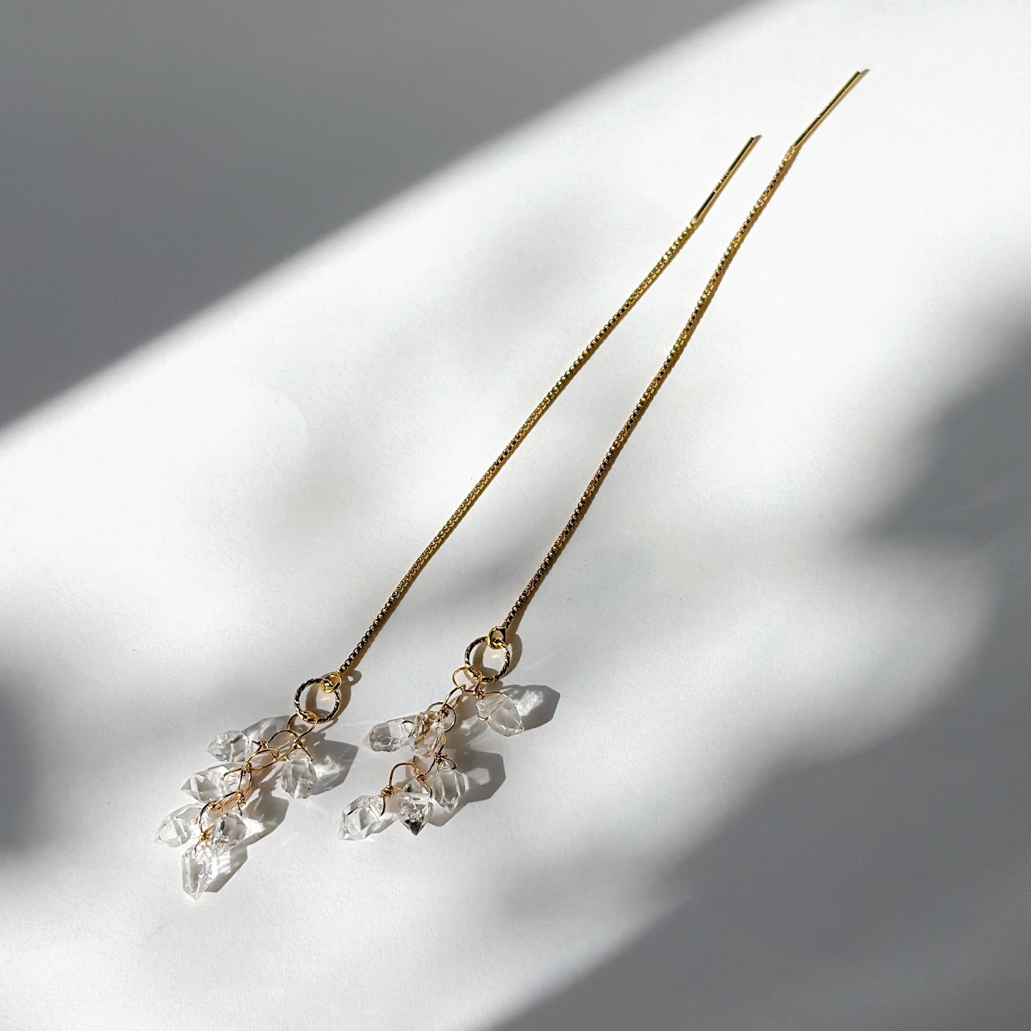 ハーキマークォーツを使ってデザインしたアメリカンピアス兼ピアスチャームです。