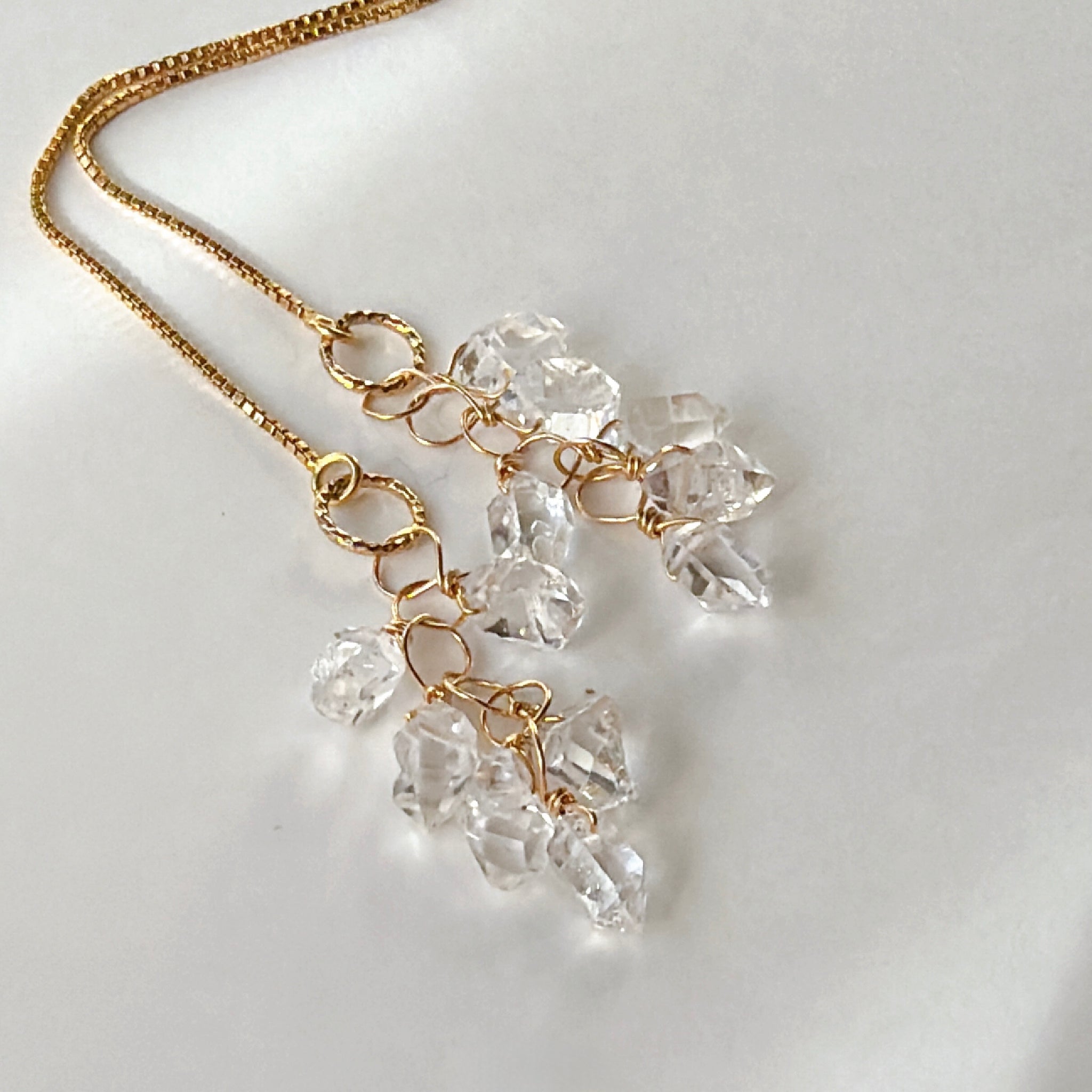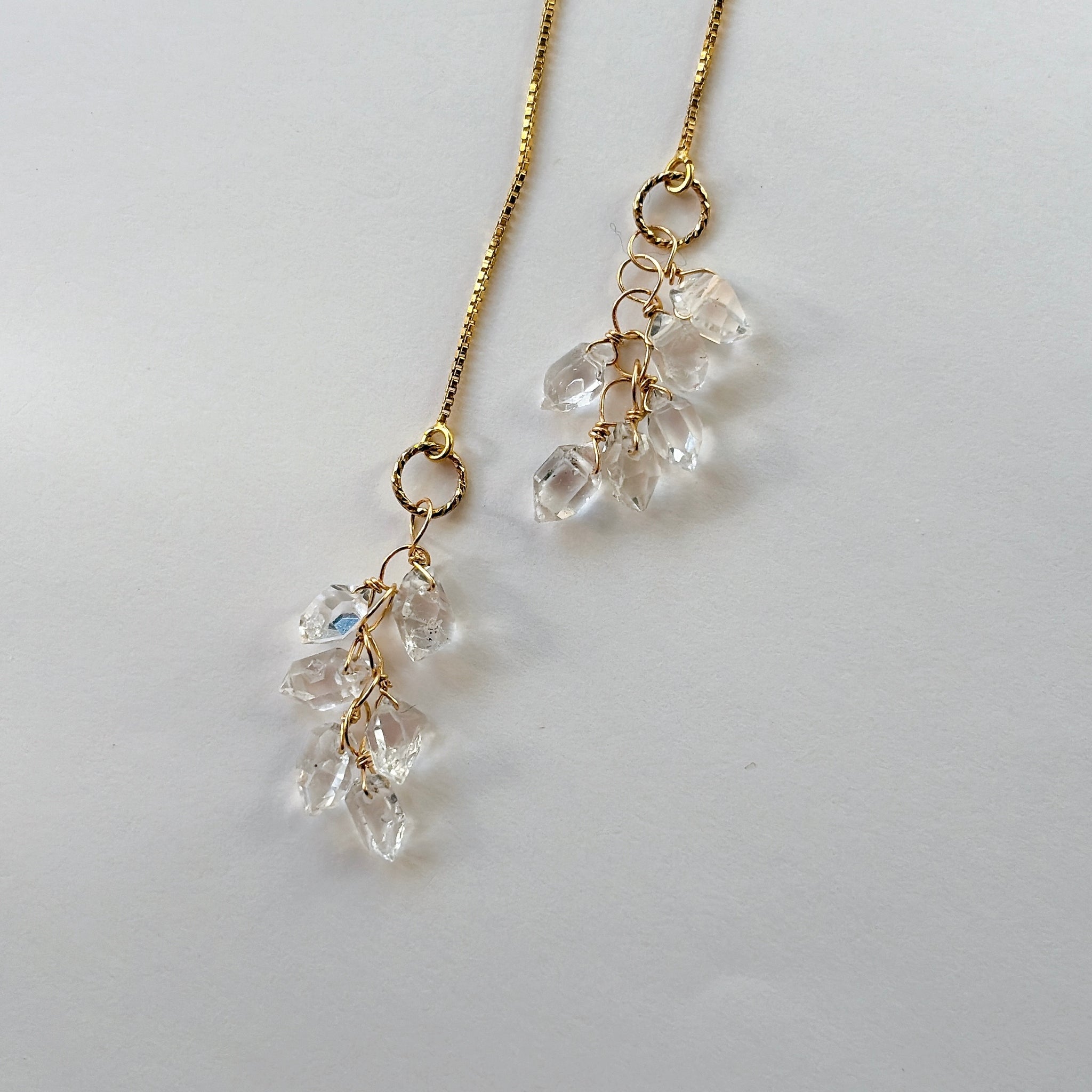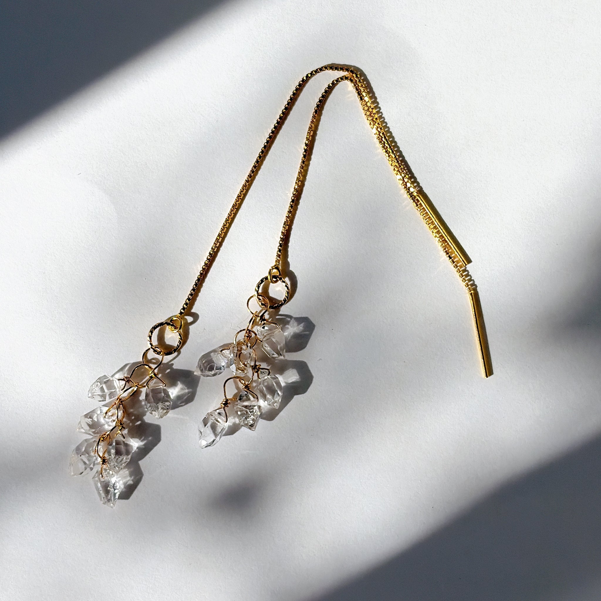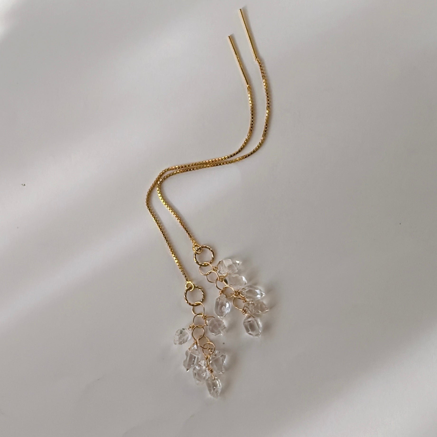 ハーキマークォーツを使ってデザインしたアメリカンピアス兼ピアスチャームです。