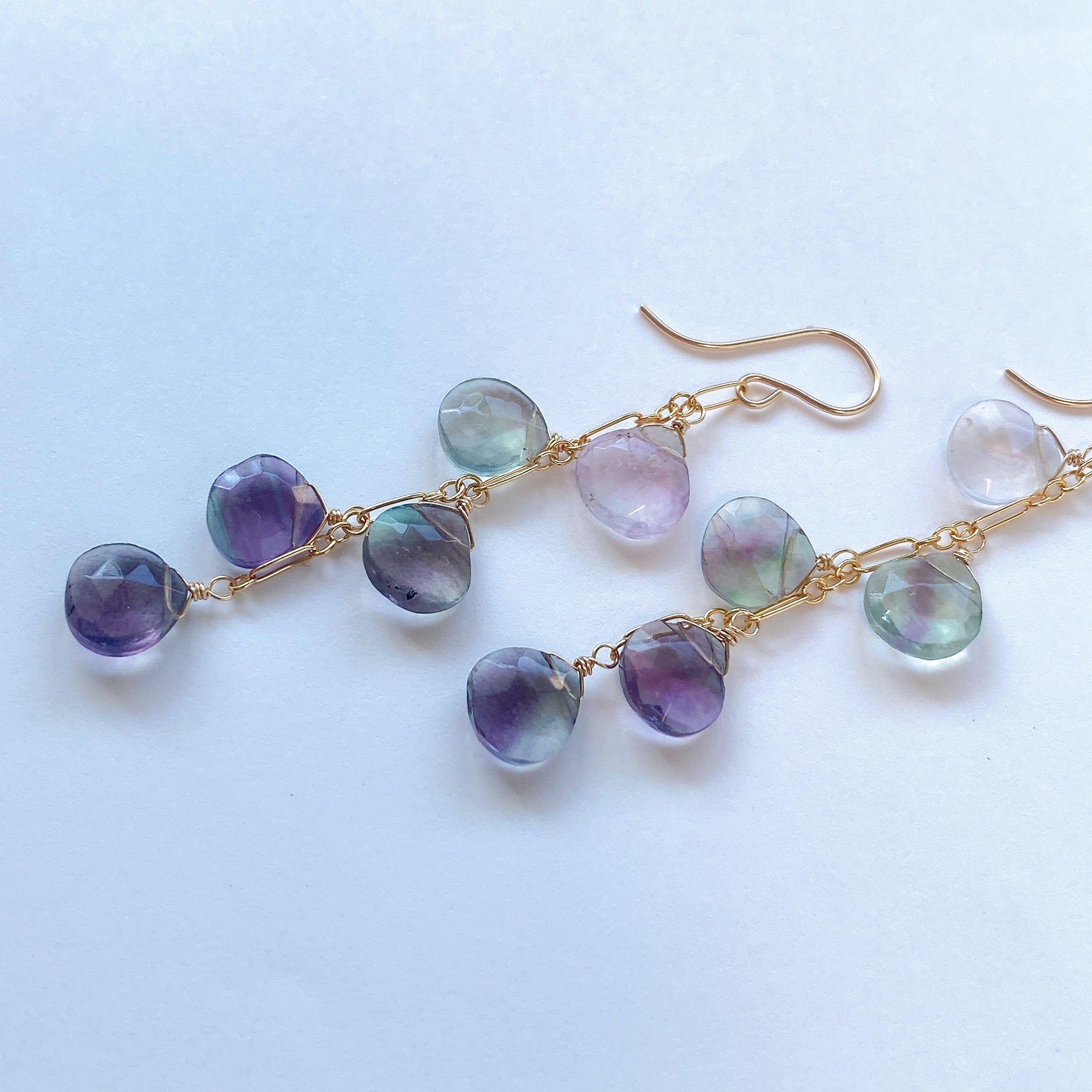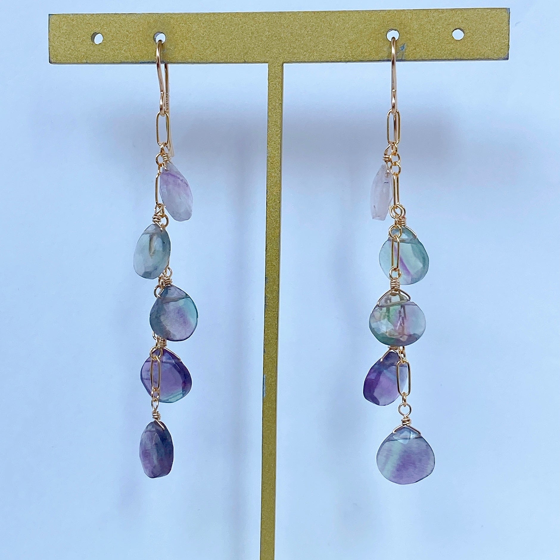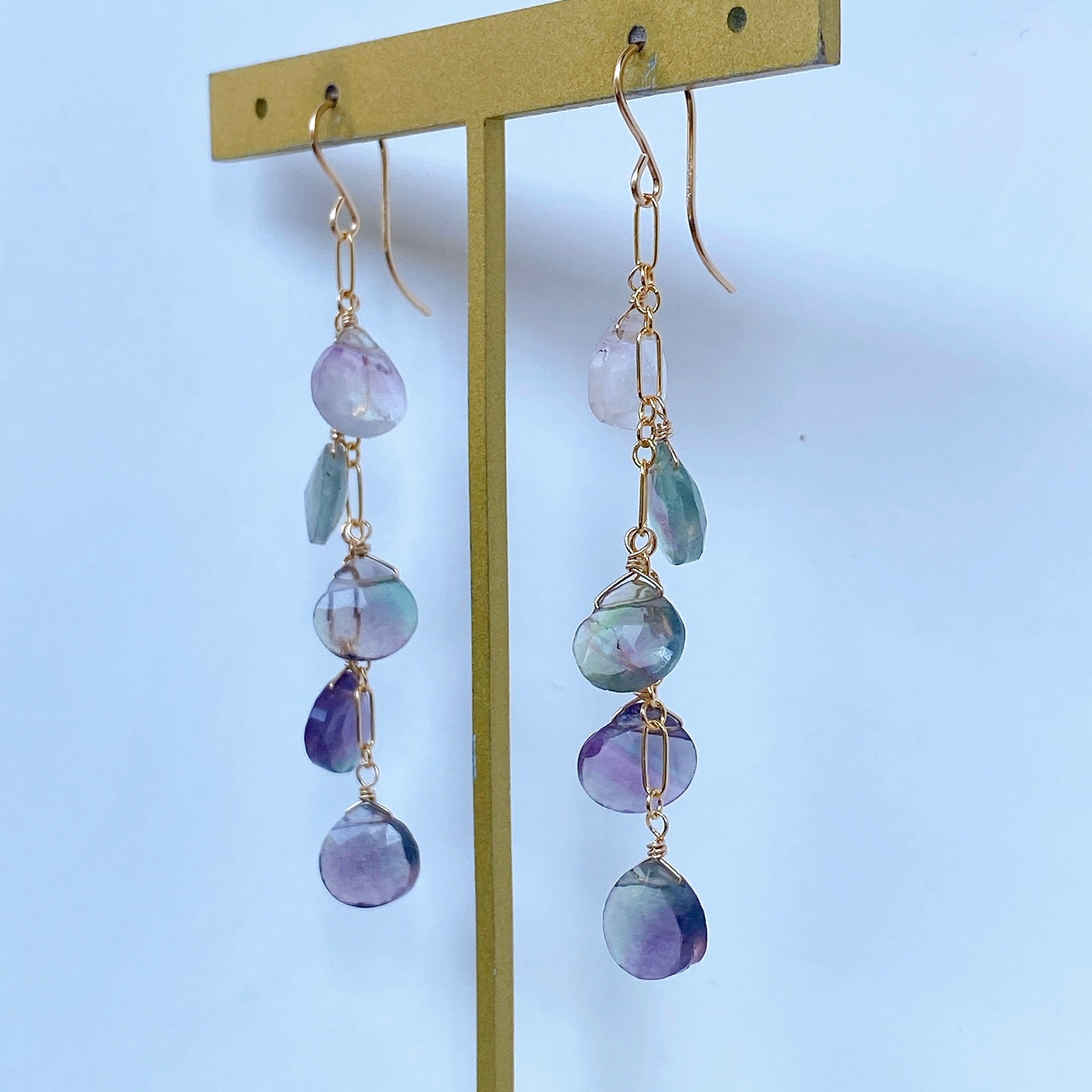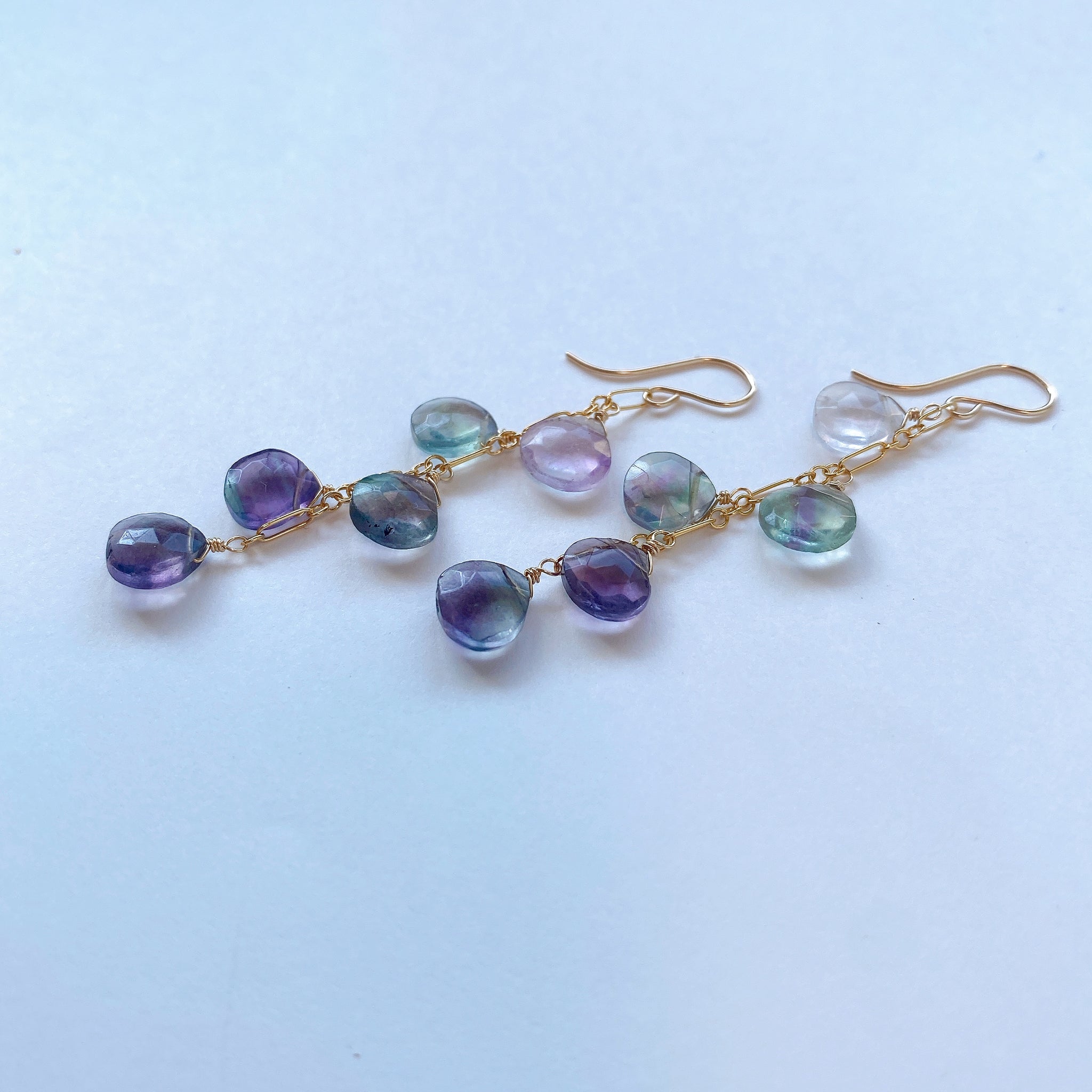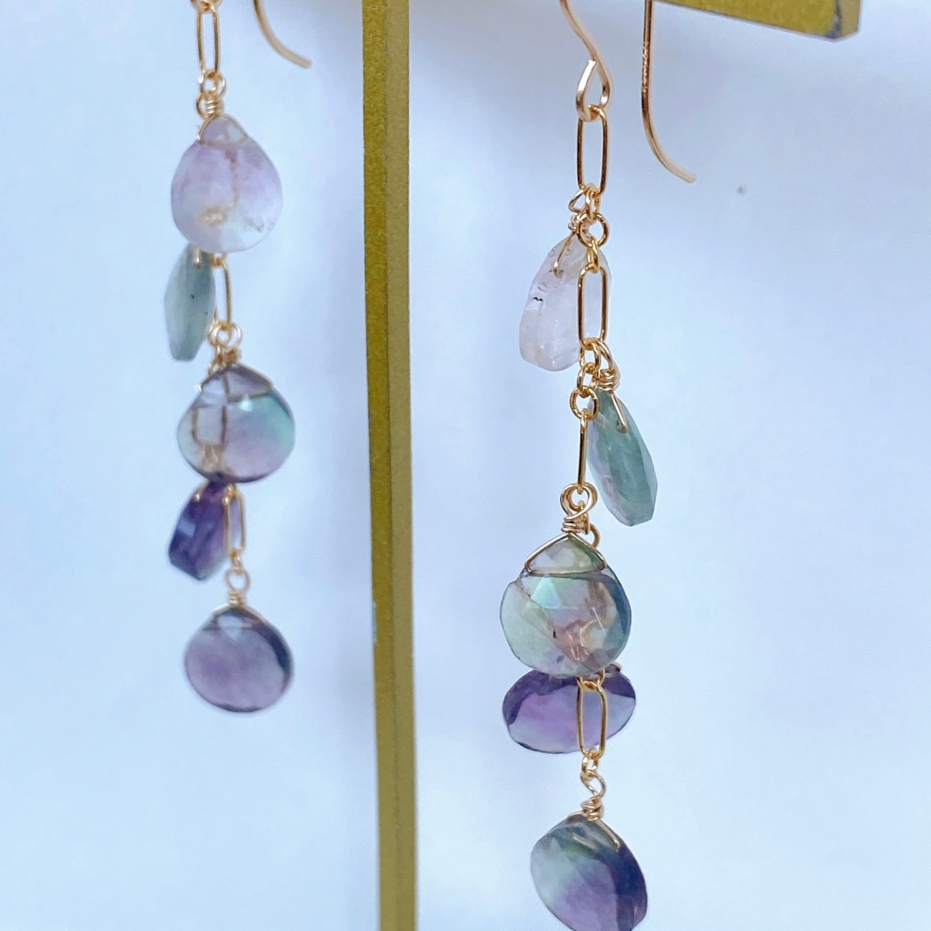 マロンカットのフローライトを使ってデザインした耳飾りです。