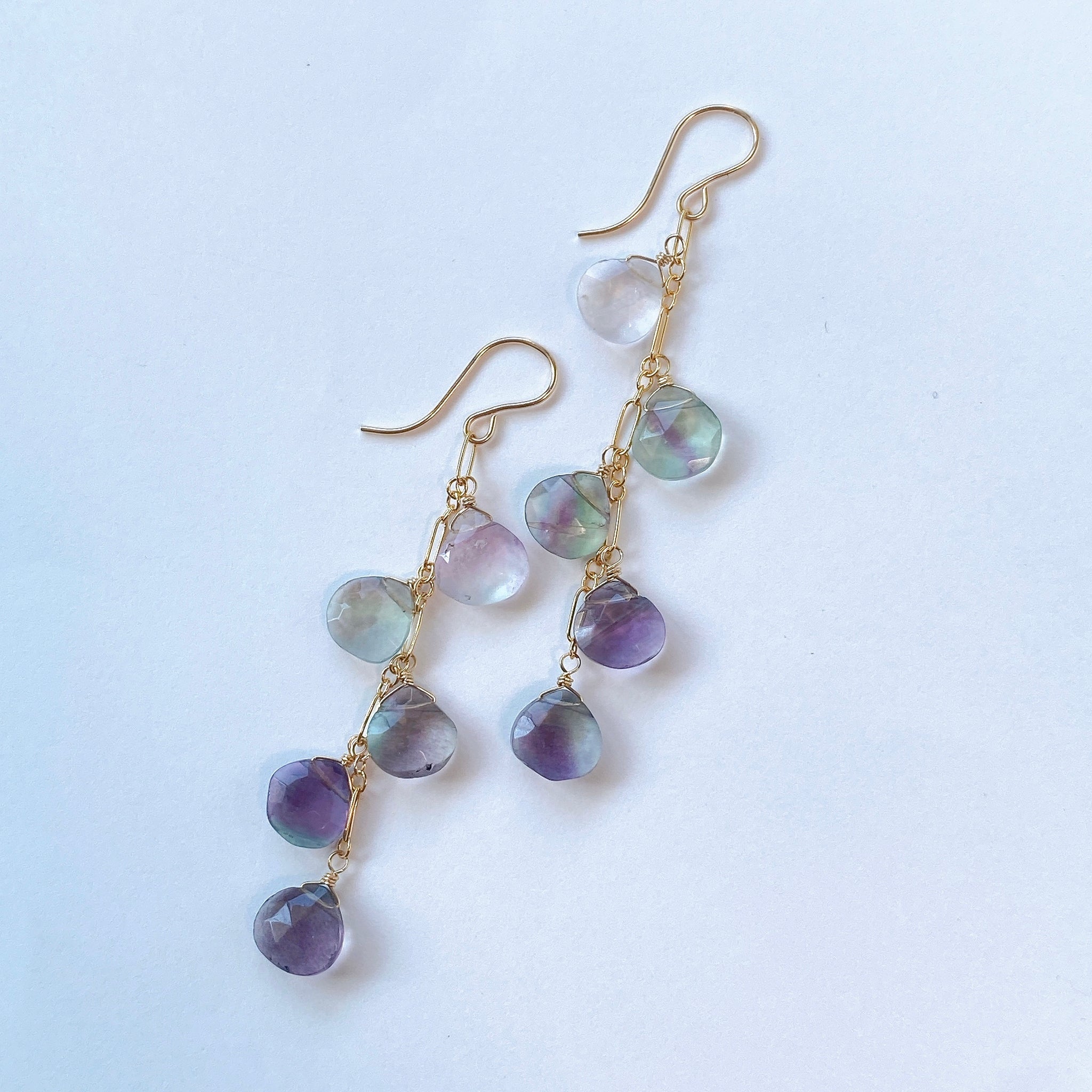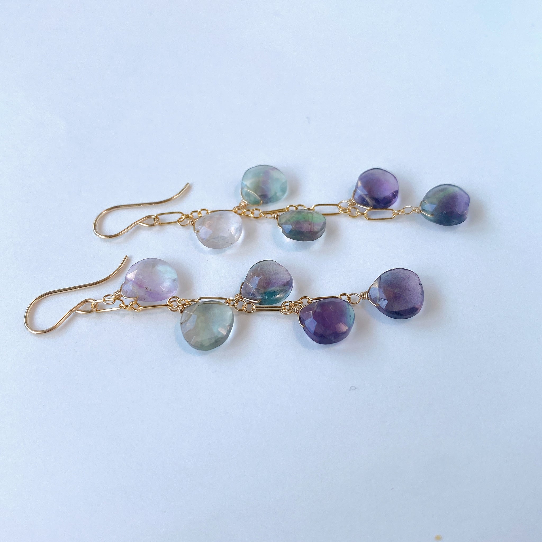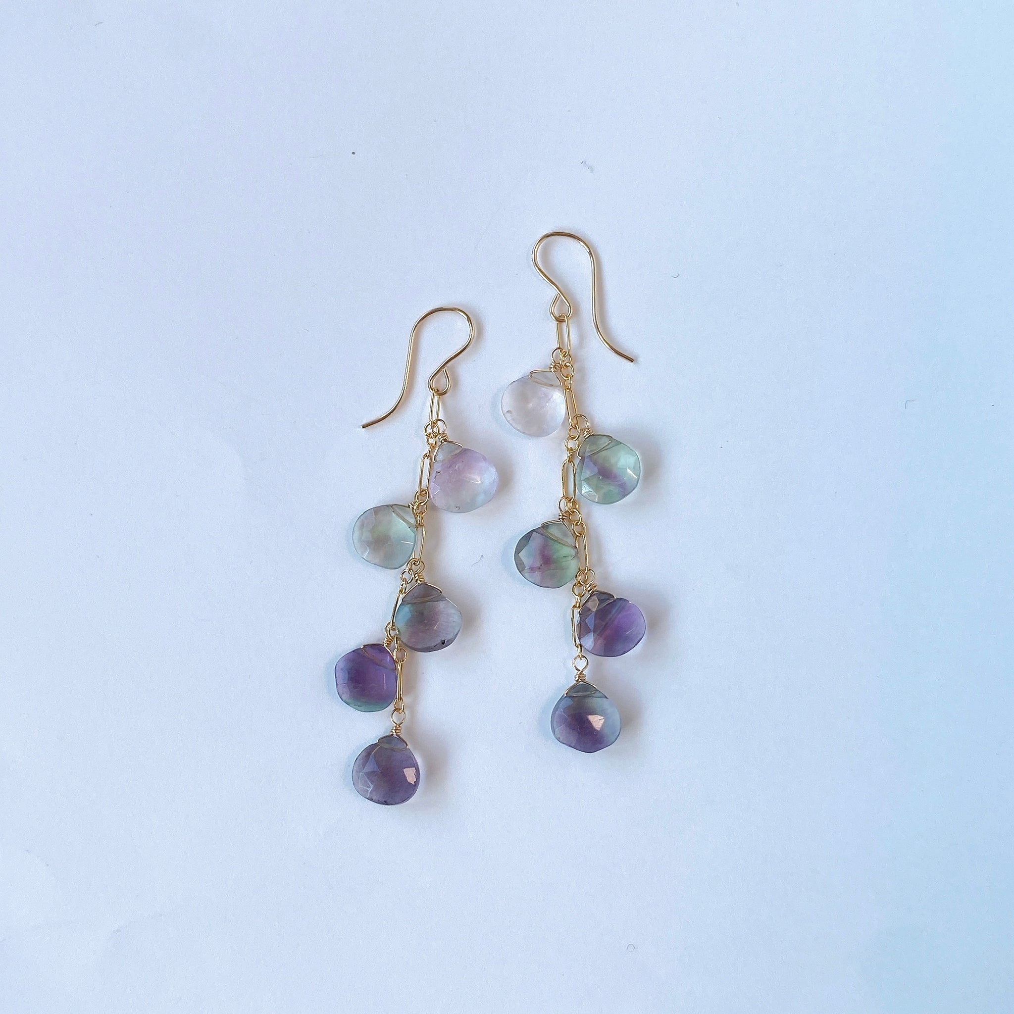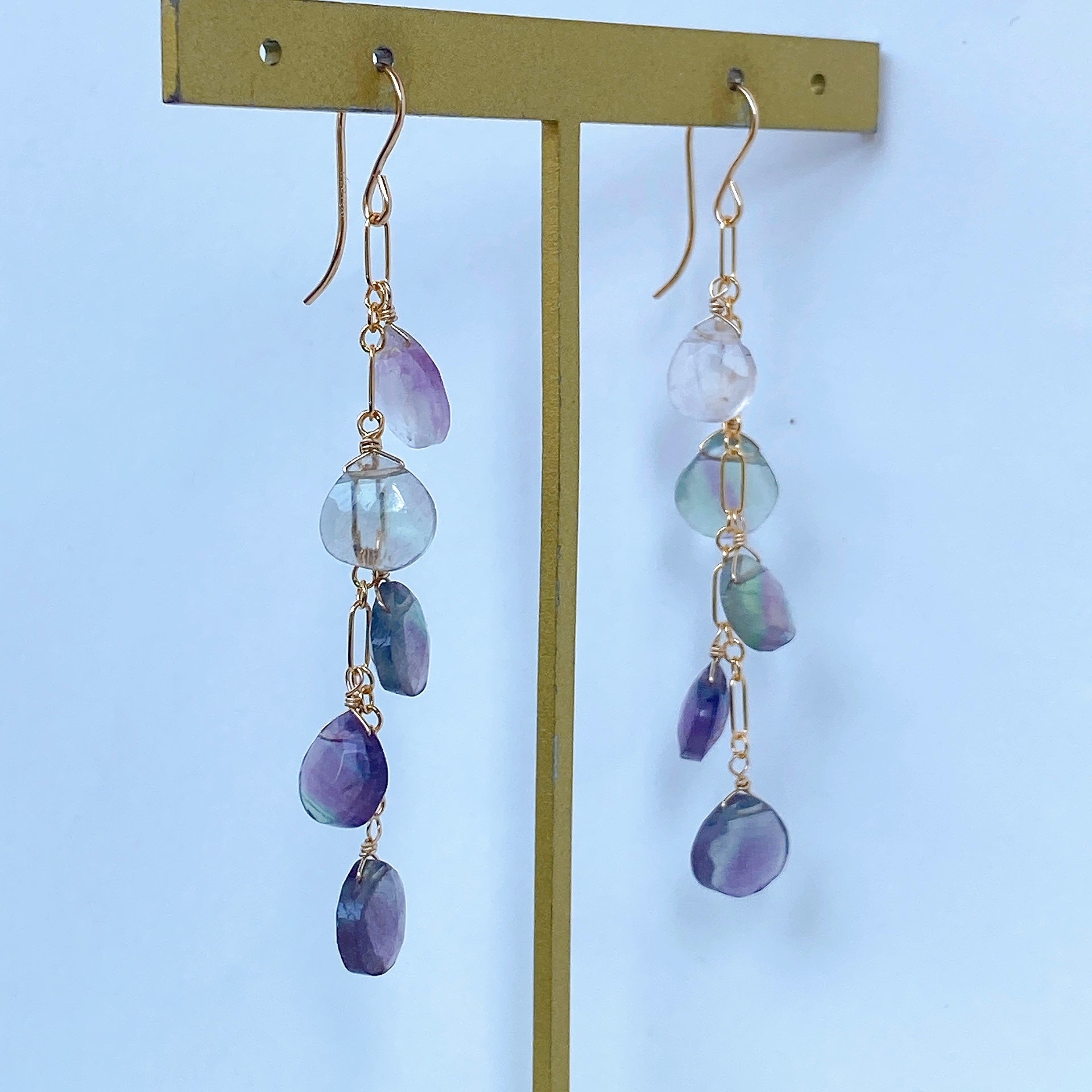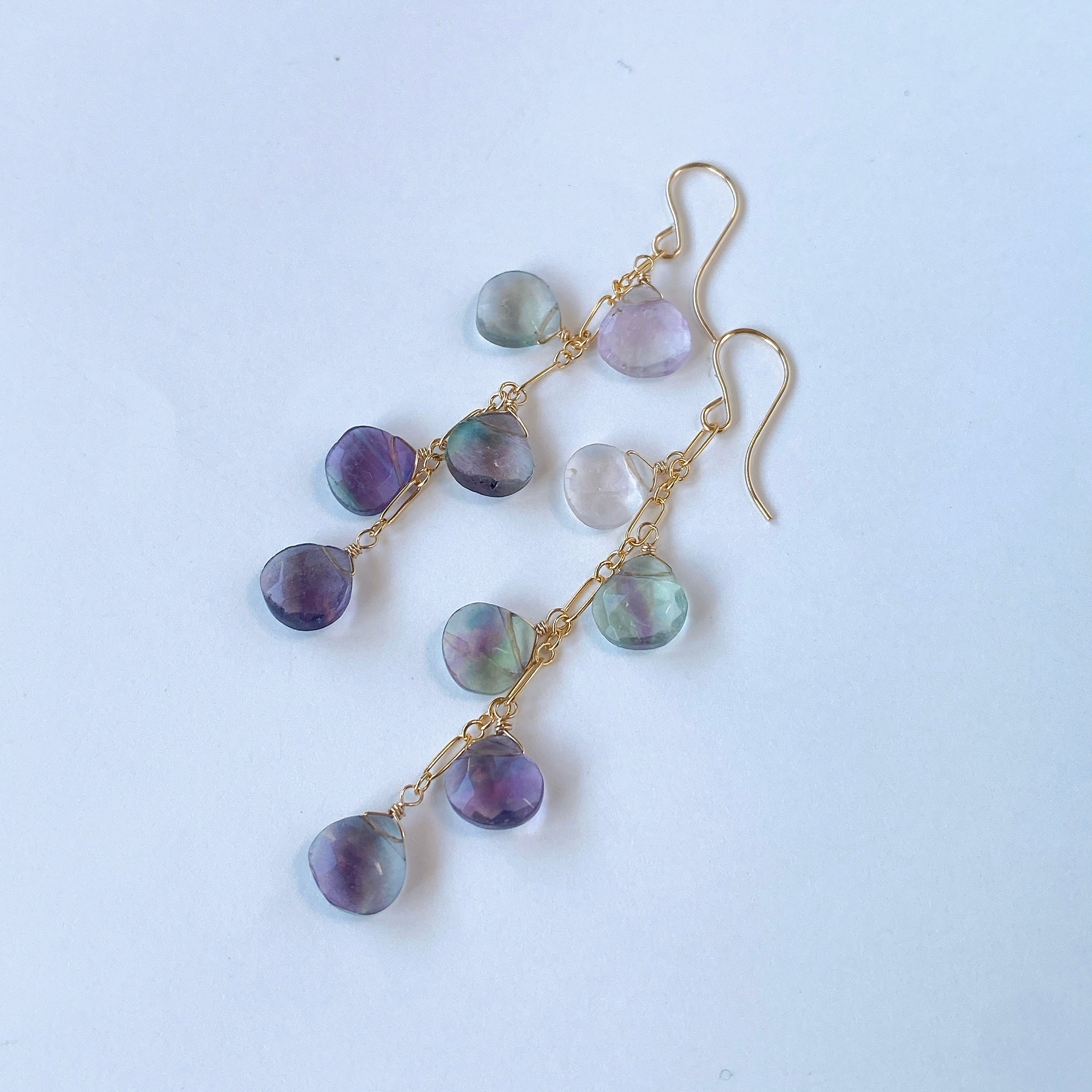 マロンカットのフローライトを使ってデザインした耳飾りです。
