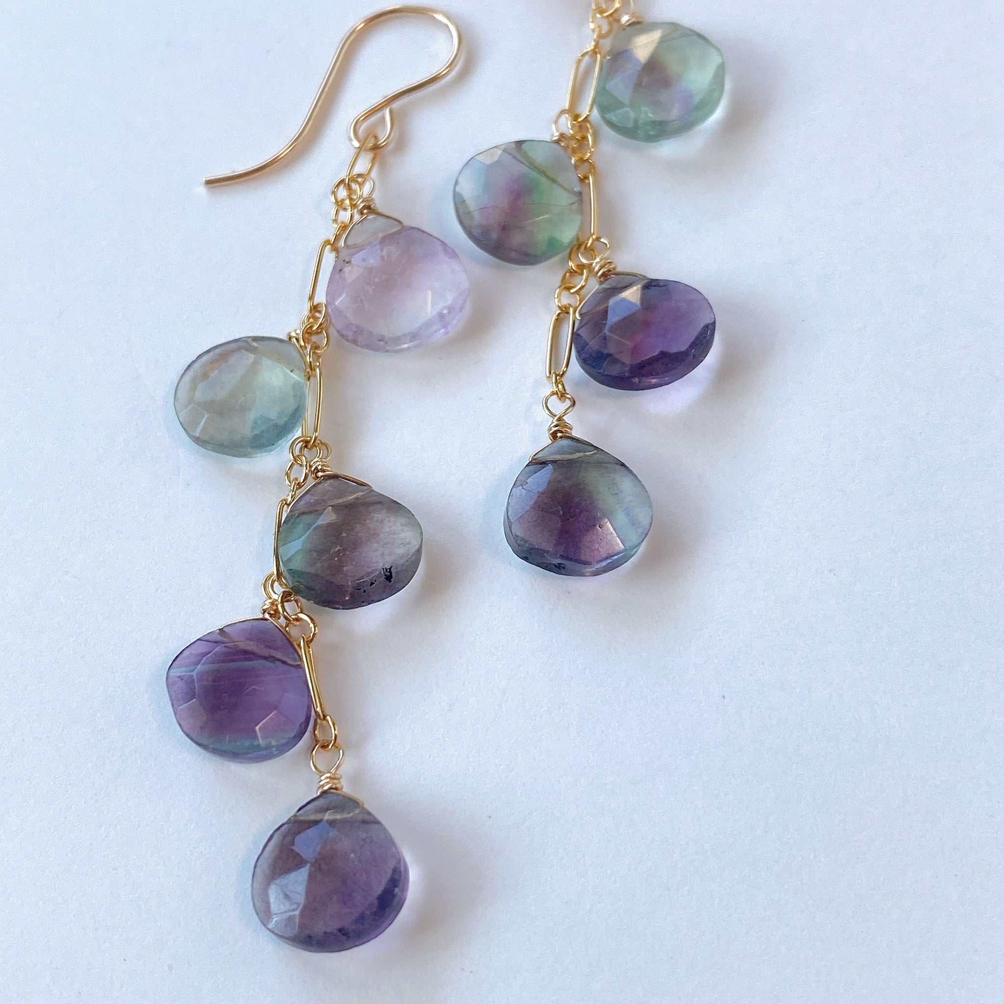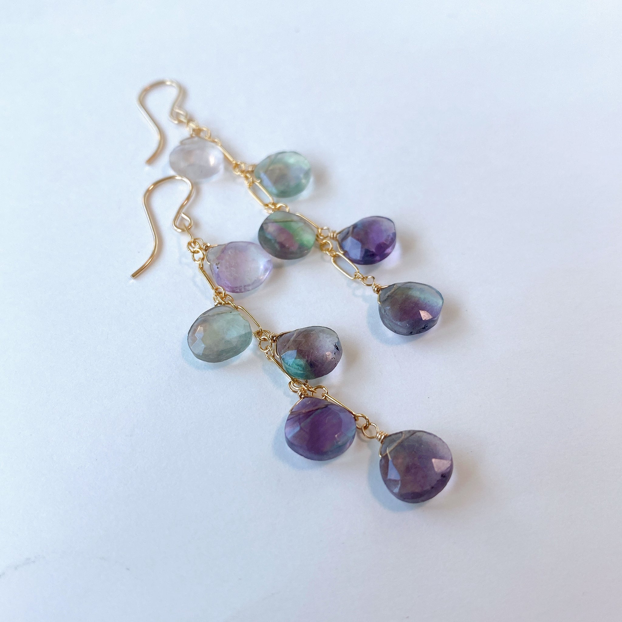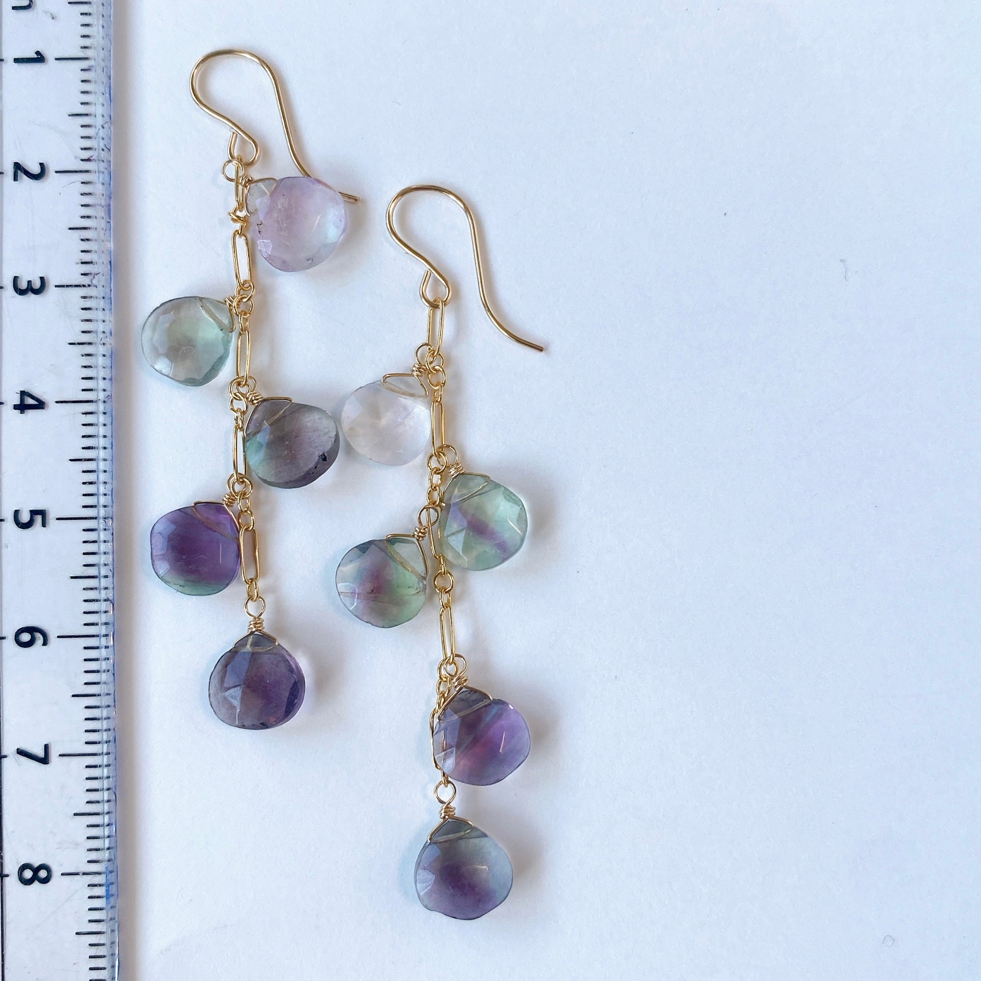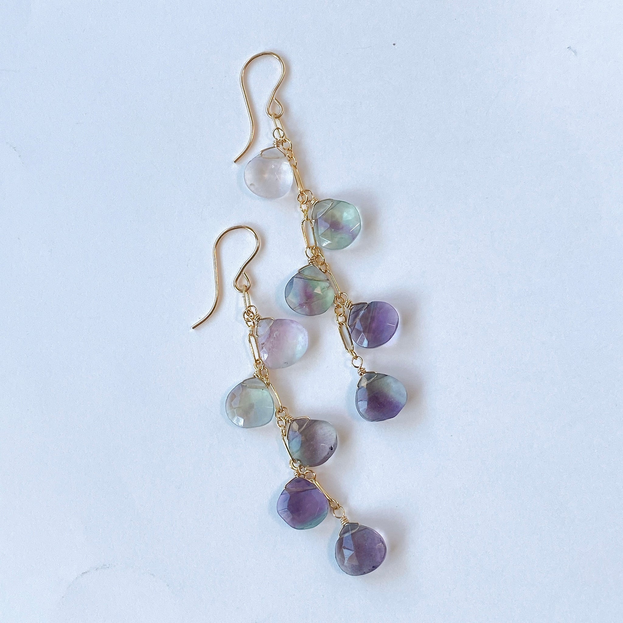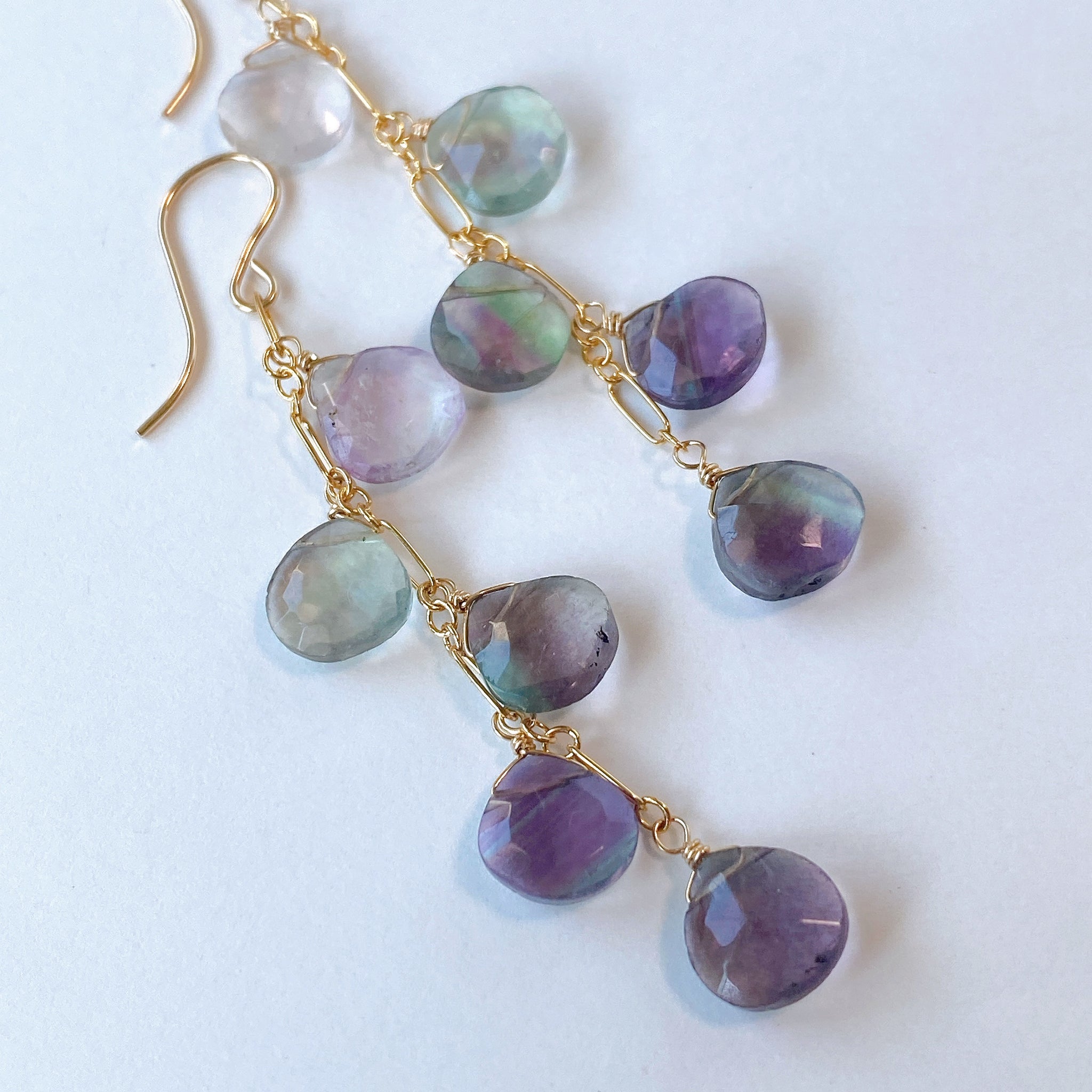 マロンカットのフローライトを使ってデザインした耳飾りです。