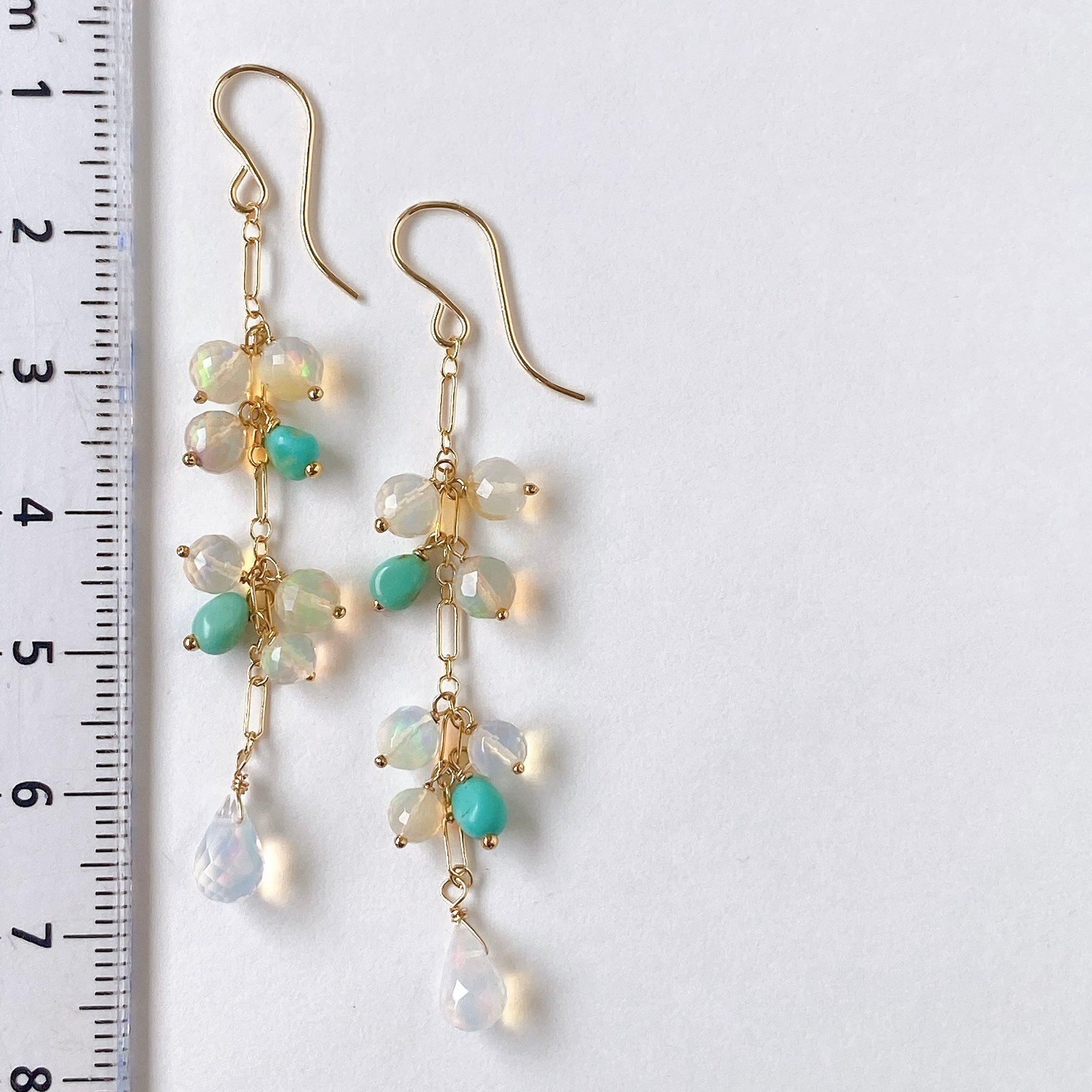 ラウンドカットオパールとソノランターコイズのロングピアス