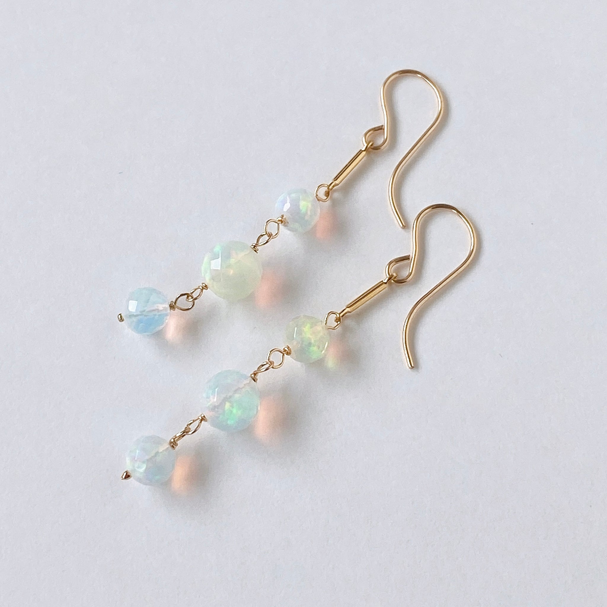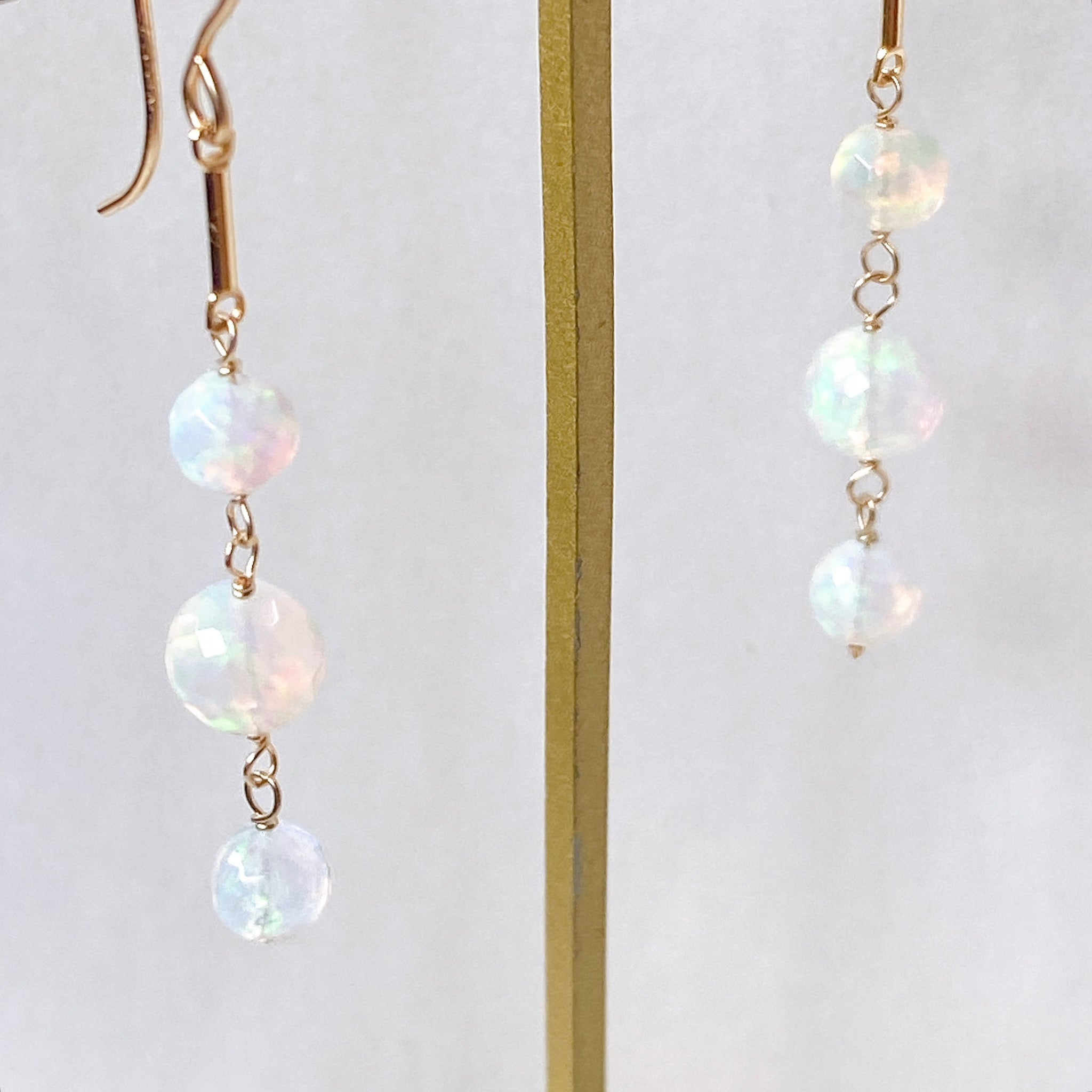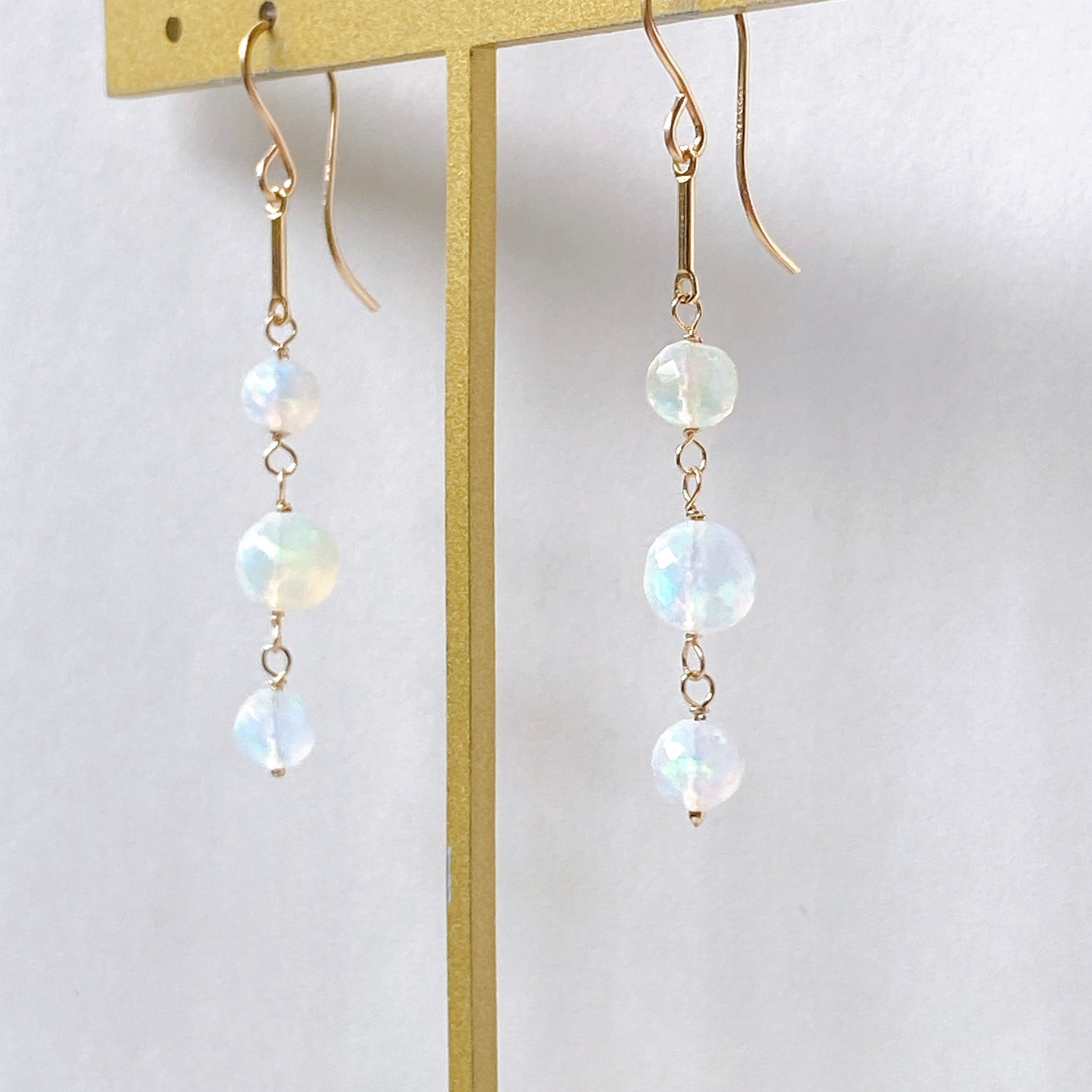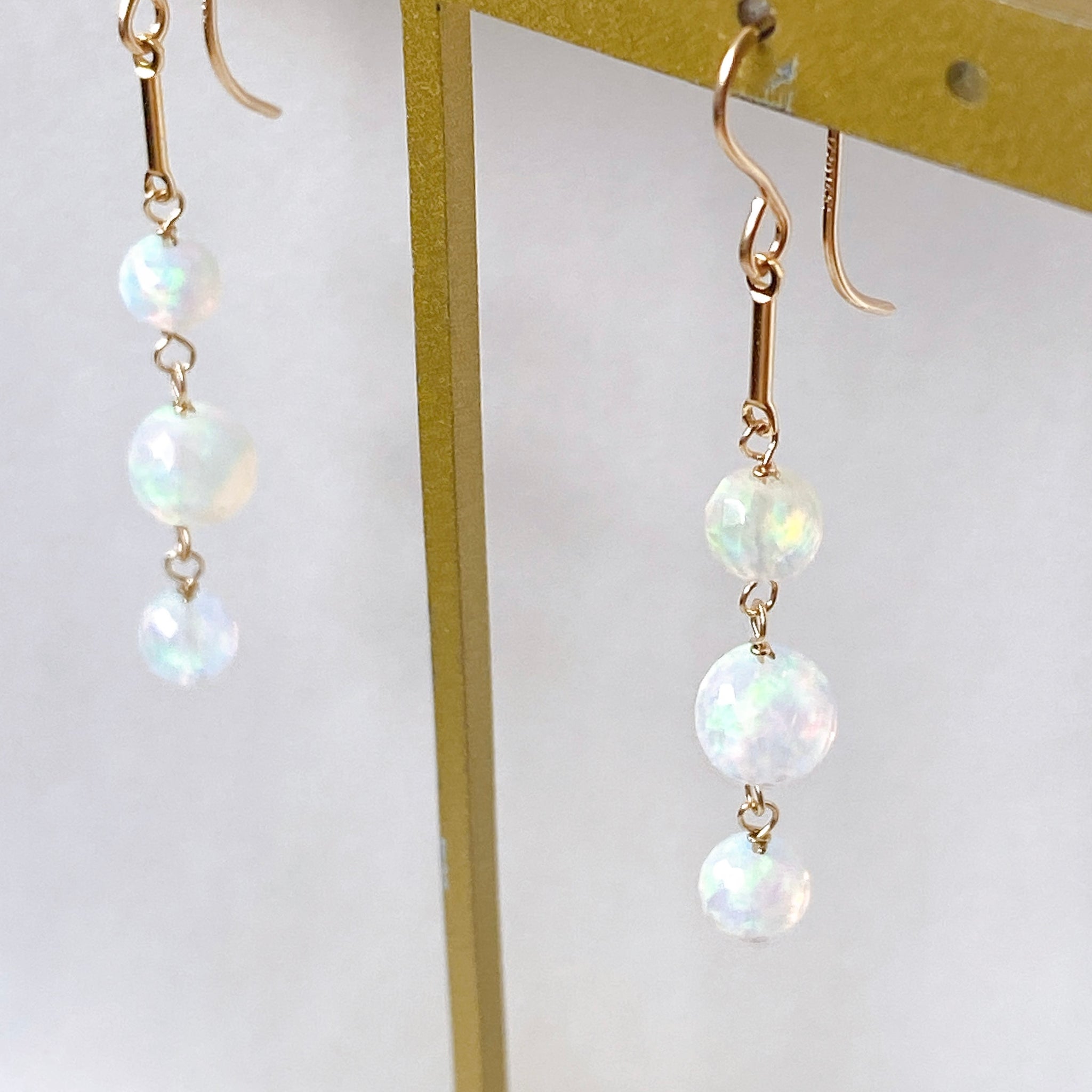 ラウンドカットのオパールを使ってデザインした耳飾りです。