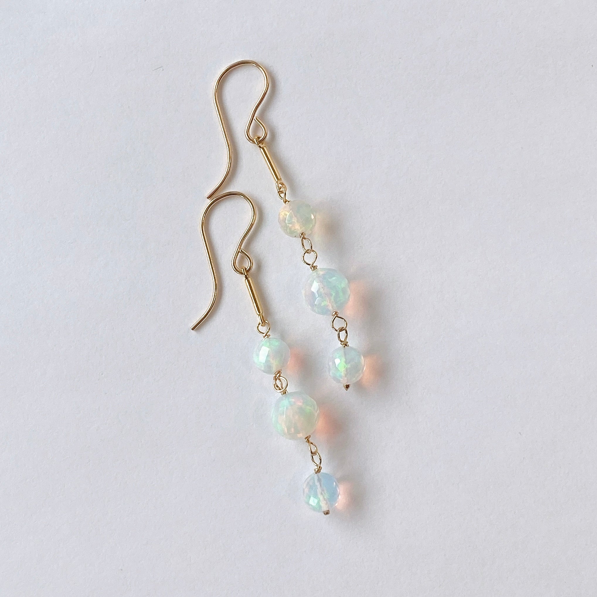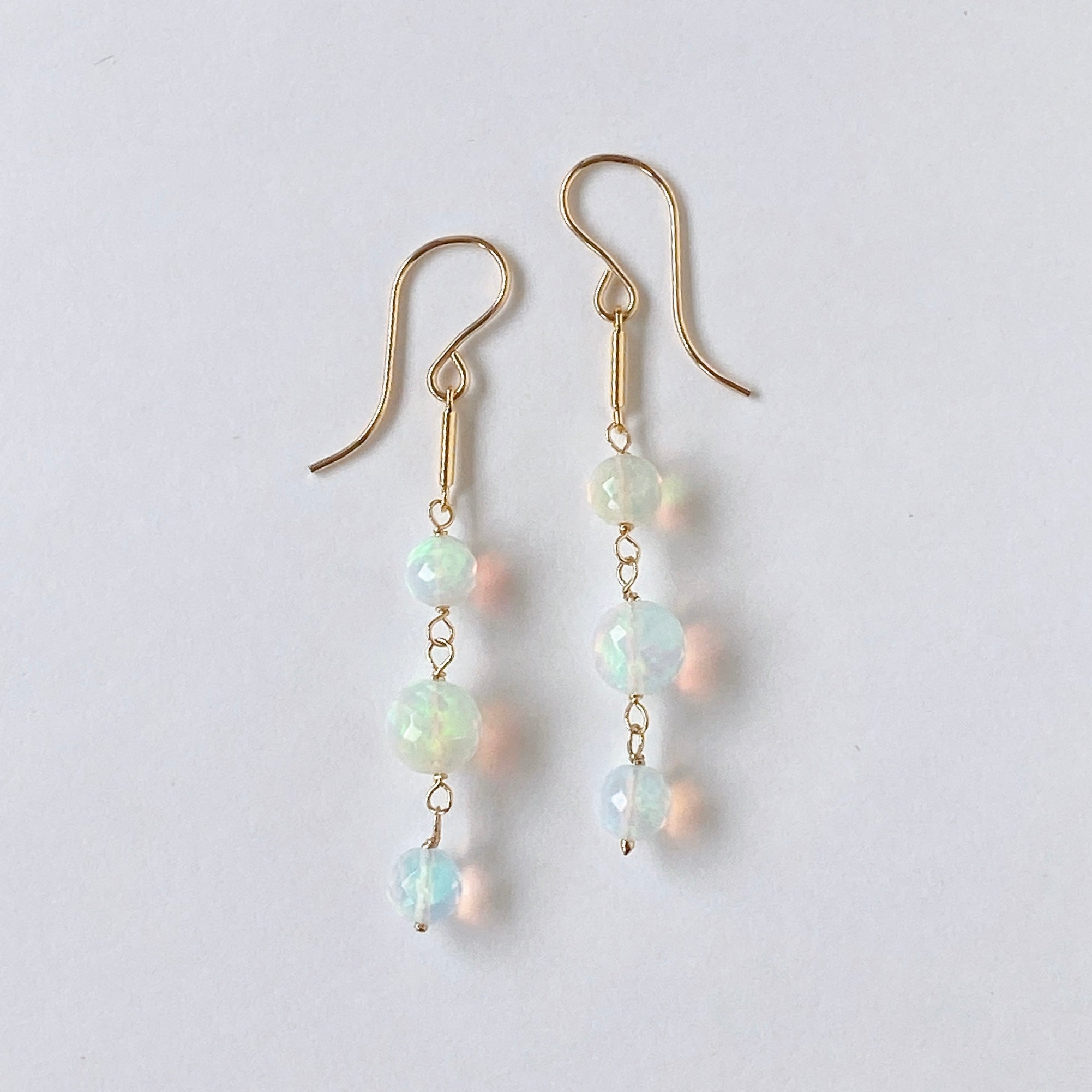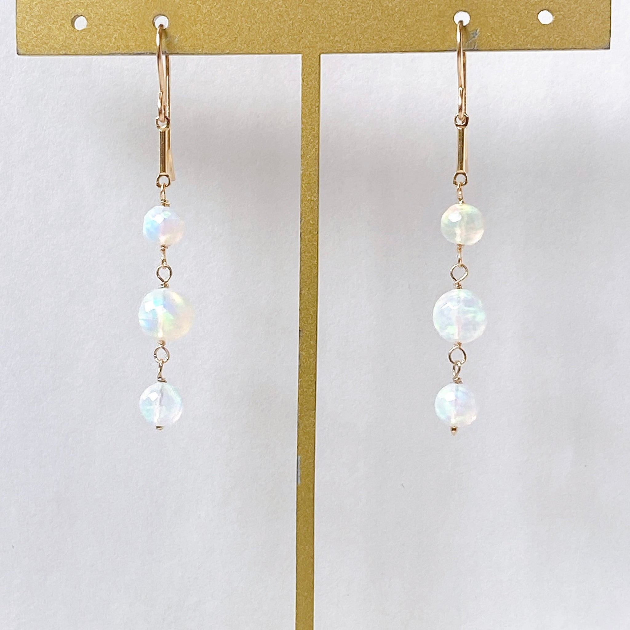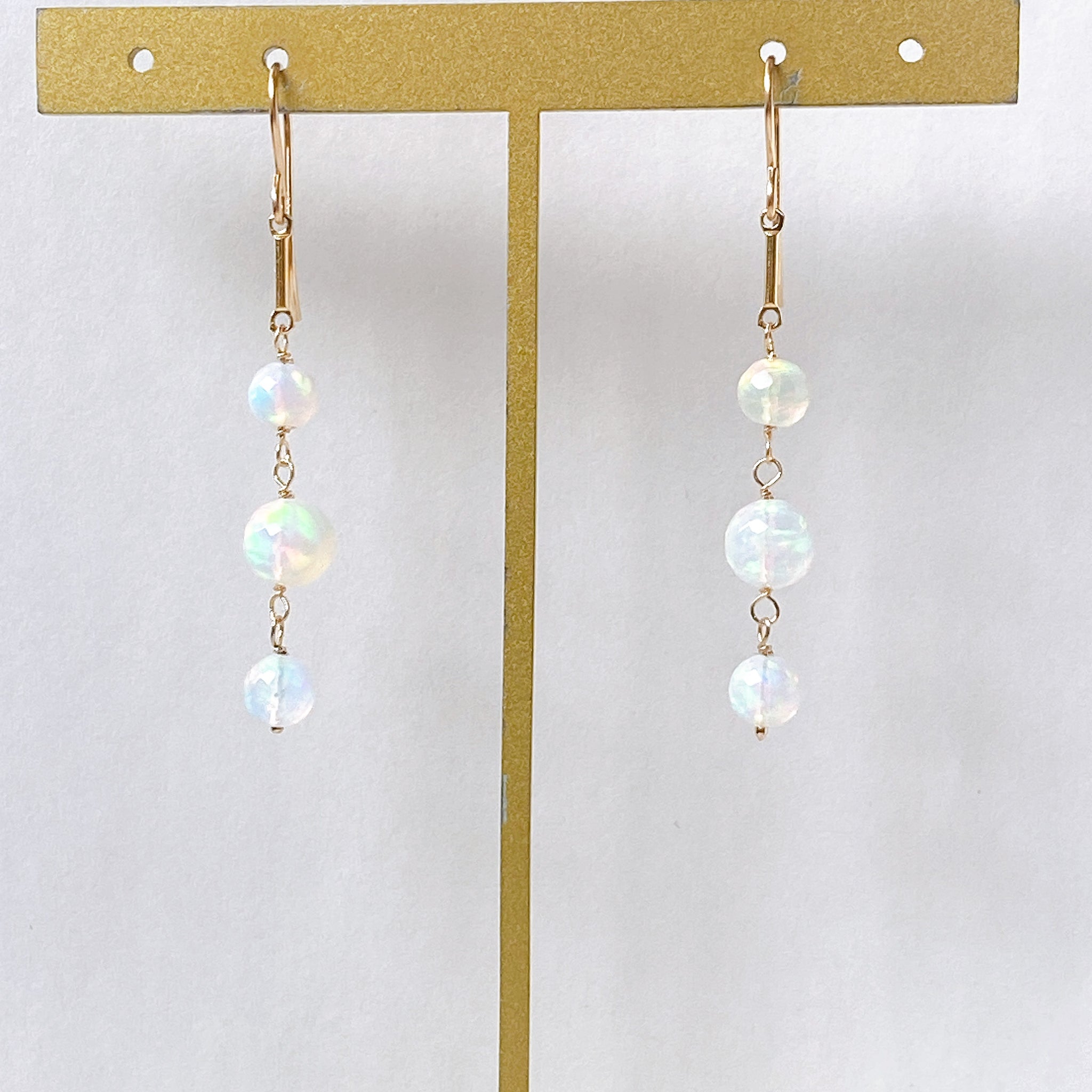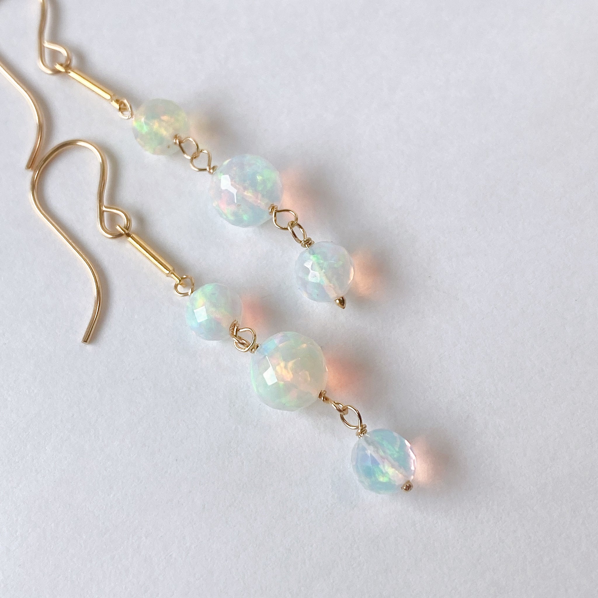 ラウンドカットのオパールを使ってデザインした耳飾りです。