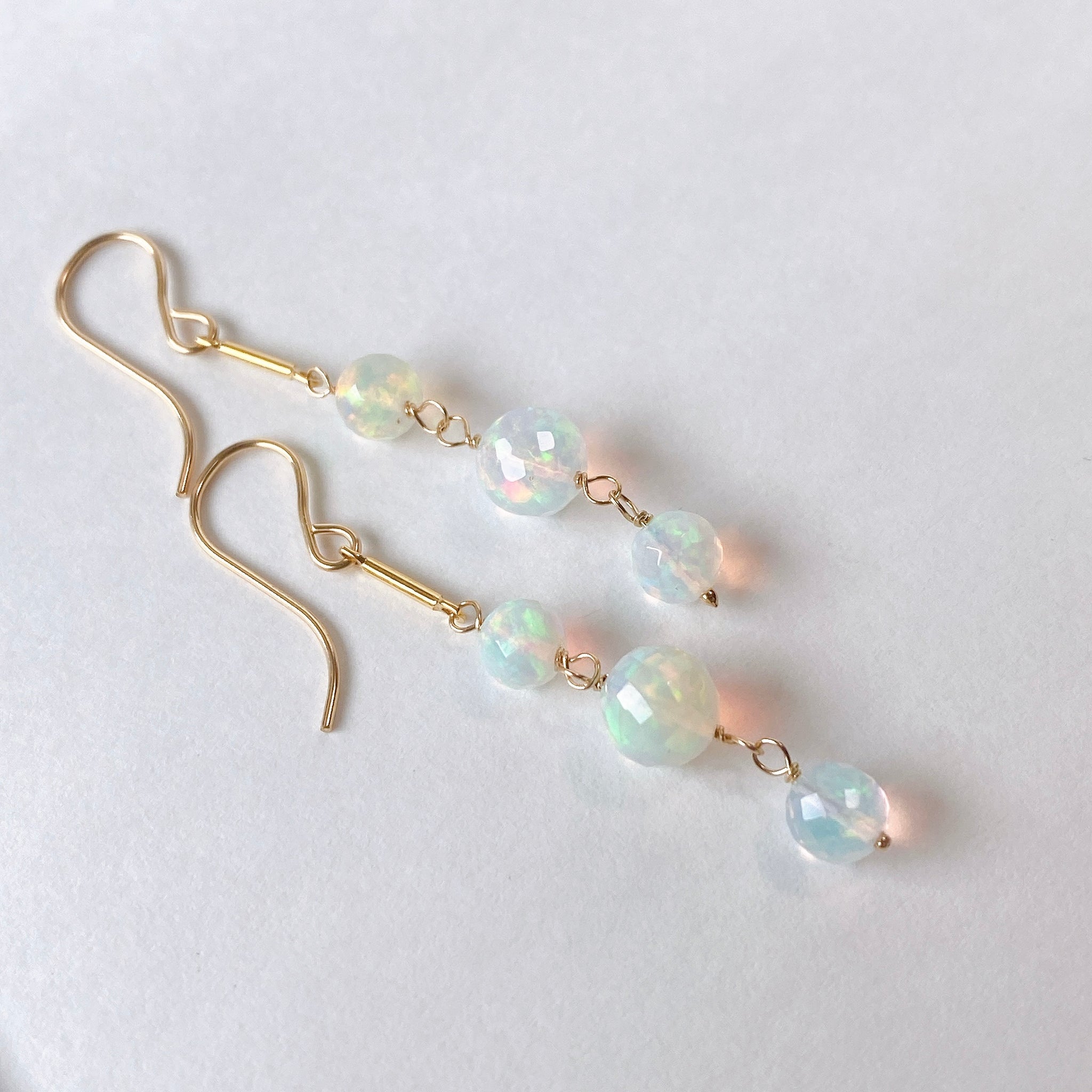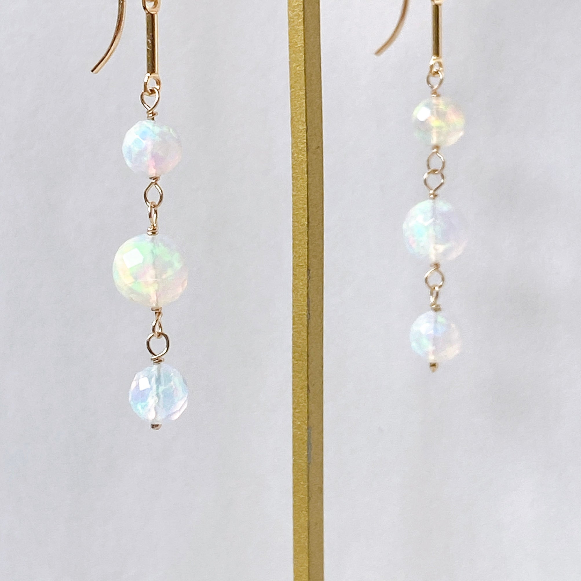 表面にカットの入ったミラーボールのようなオパールの大小異なるサイズを合わせたデザインです。