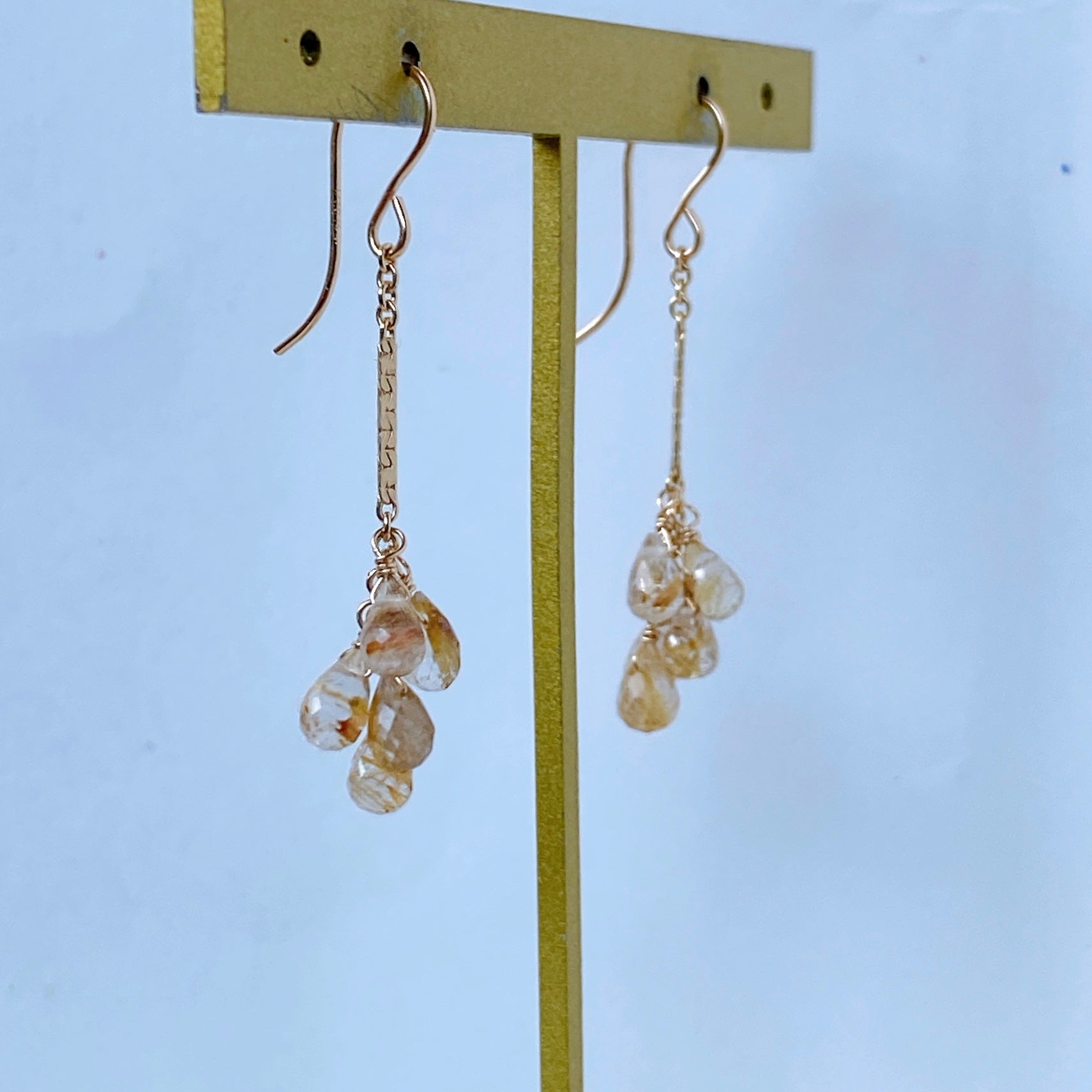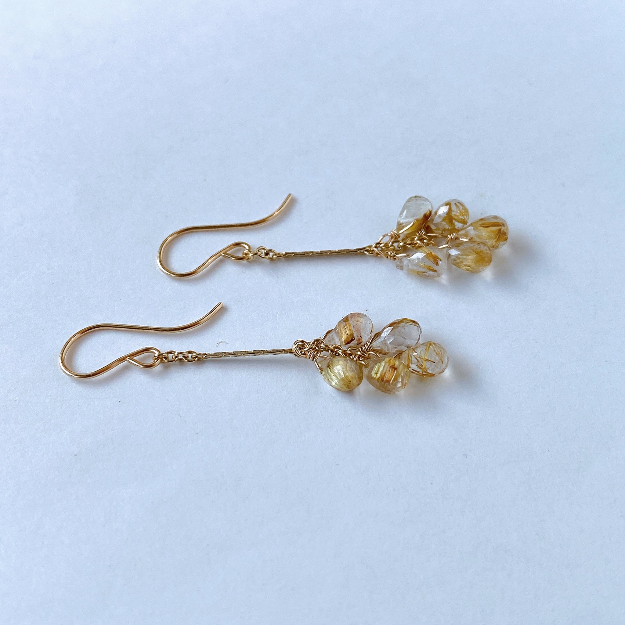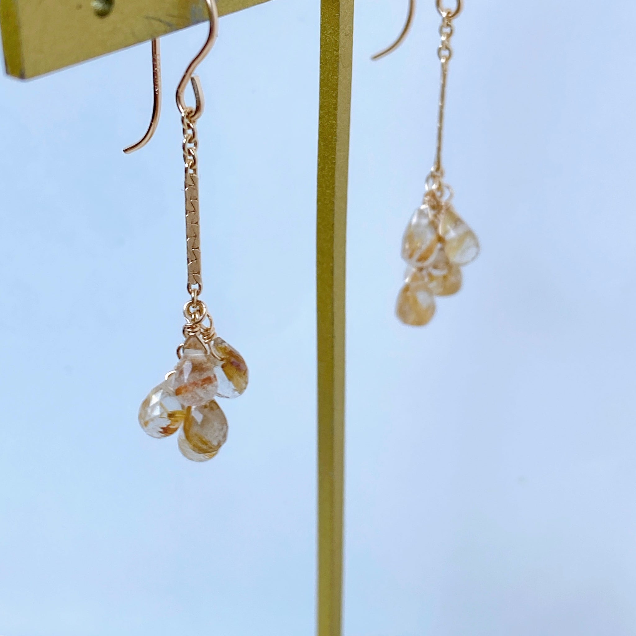 ドロップカットのルチルクォーツを使ってデザインした耳飾りです。