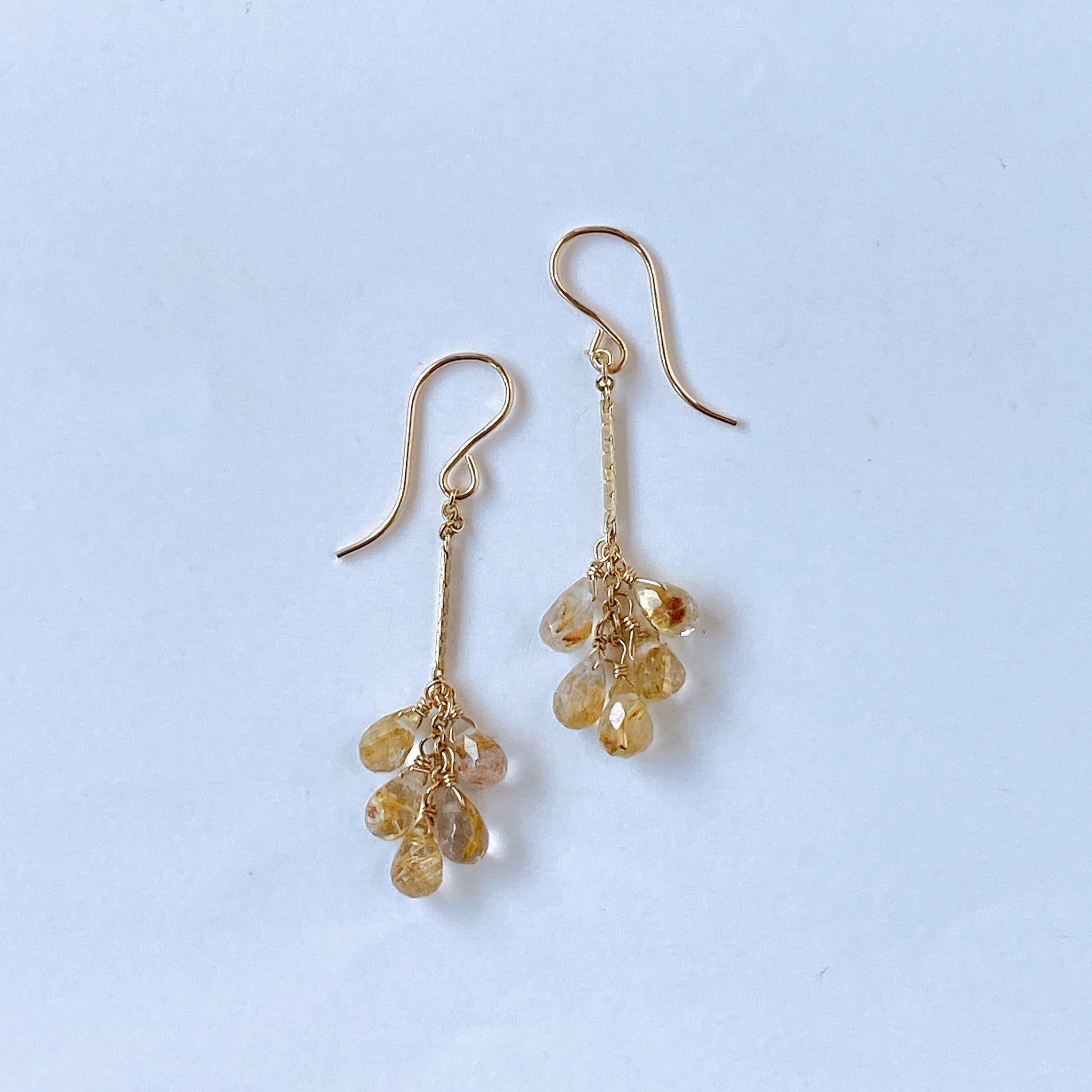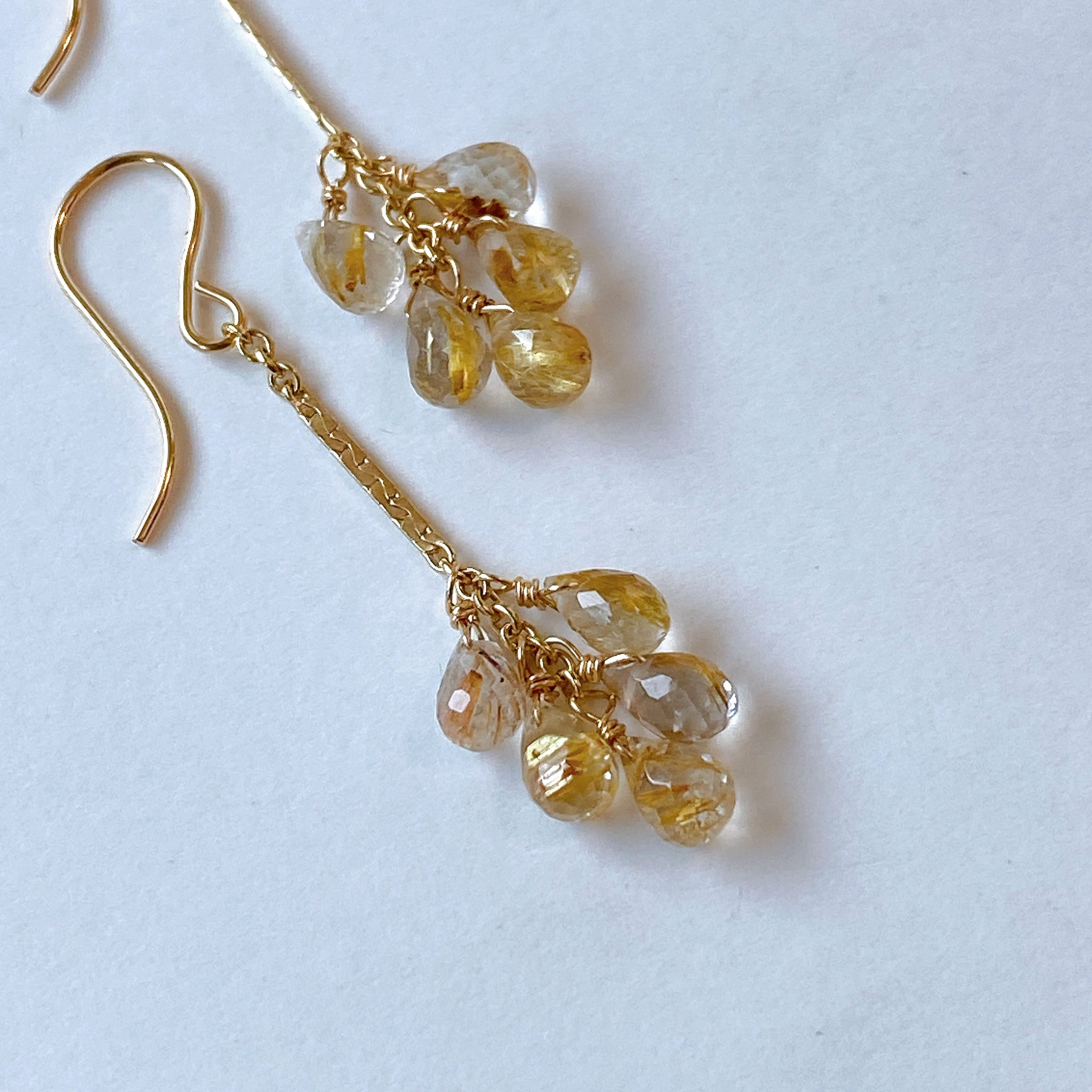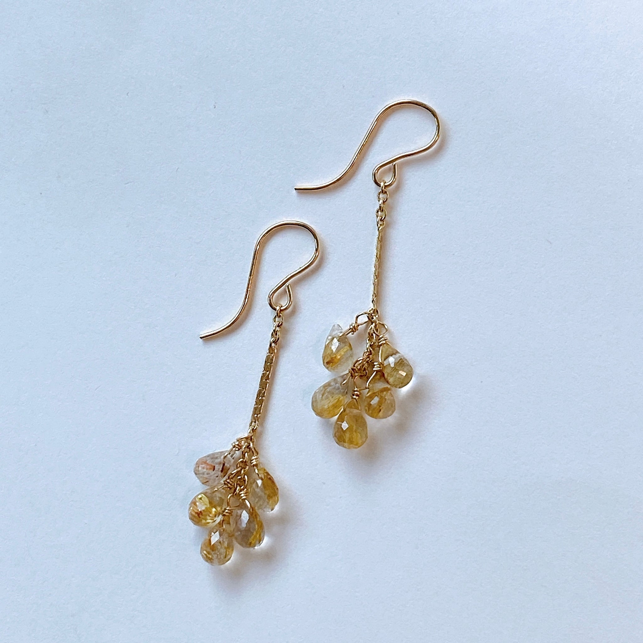 ドロップカットのルチルクォーツを使ってデザインした耳飾りです。