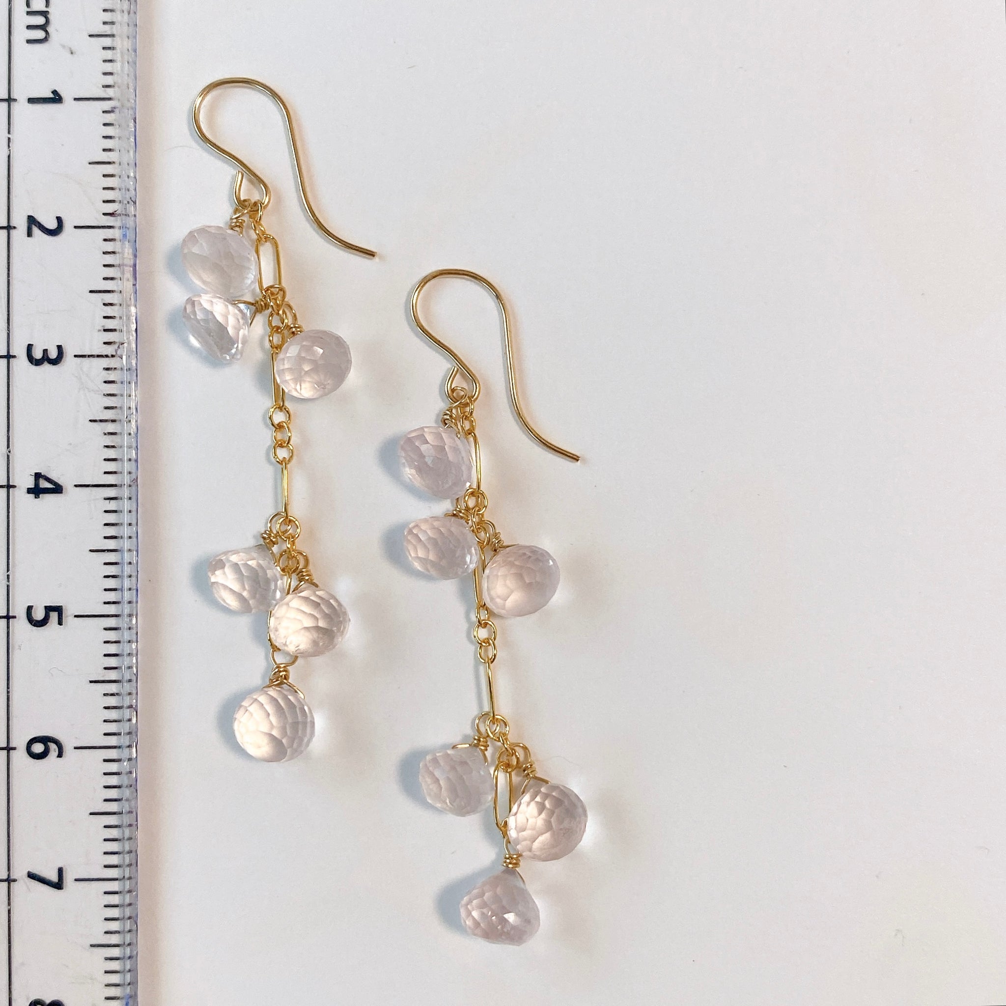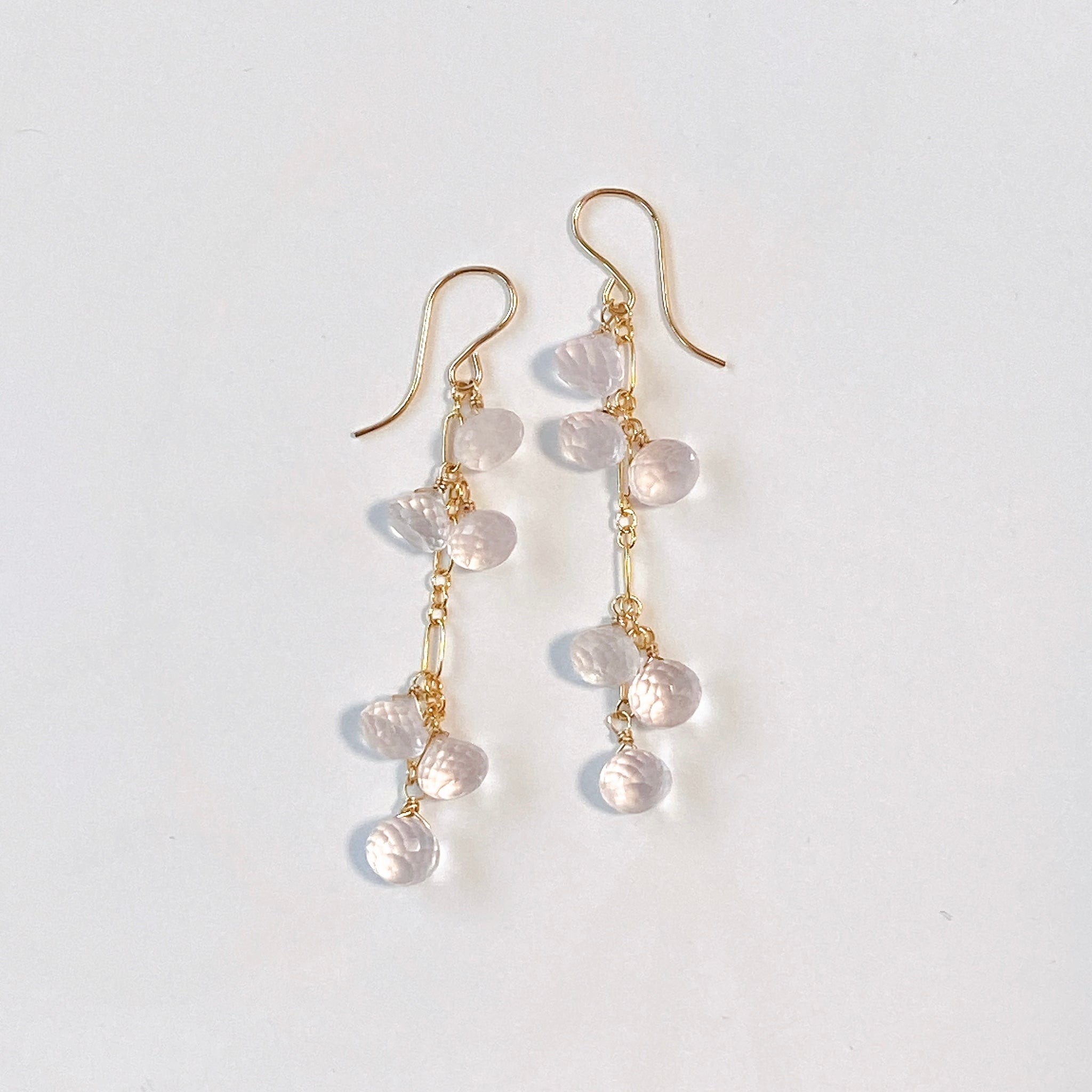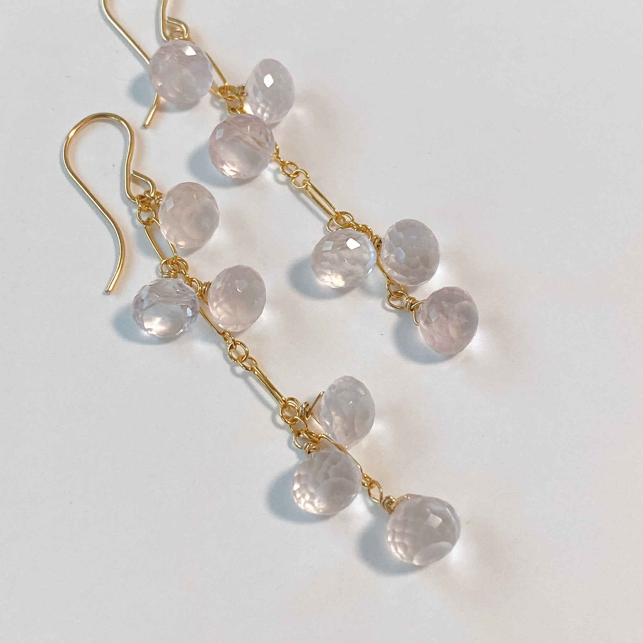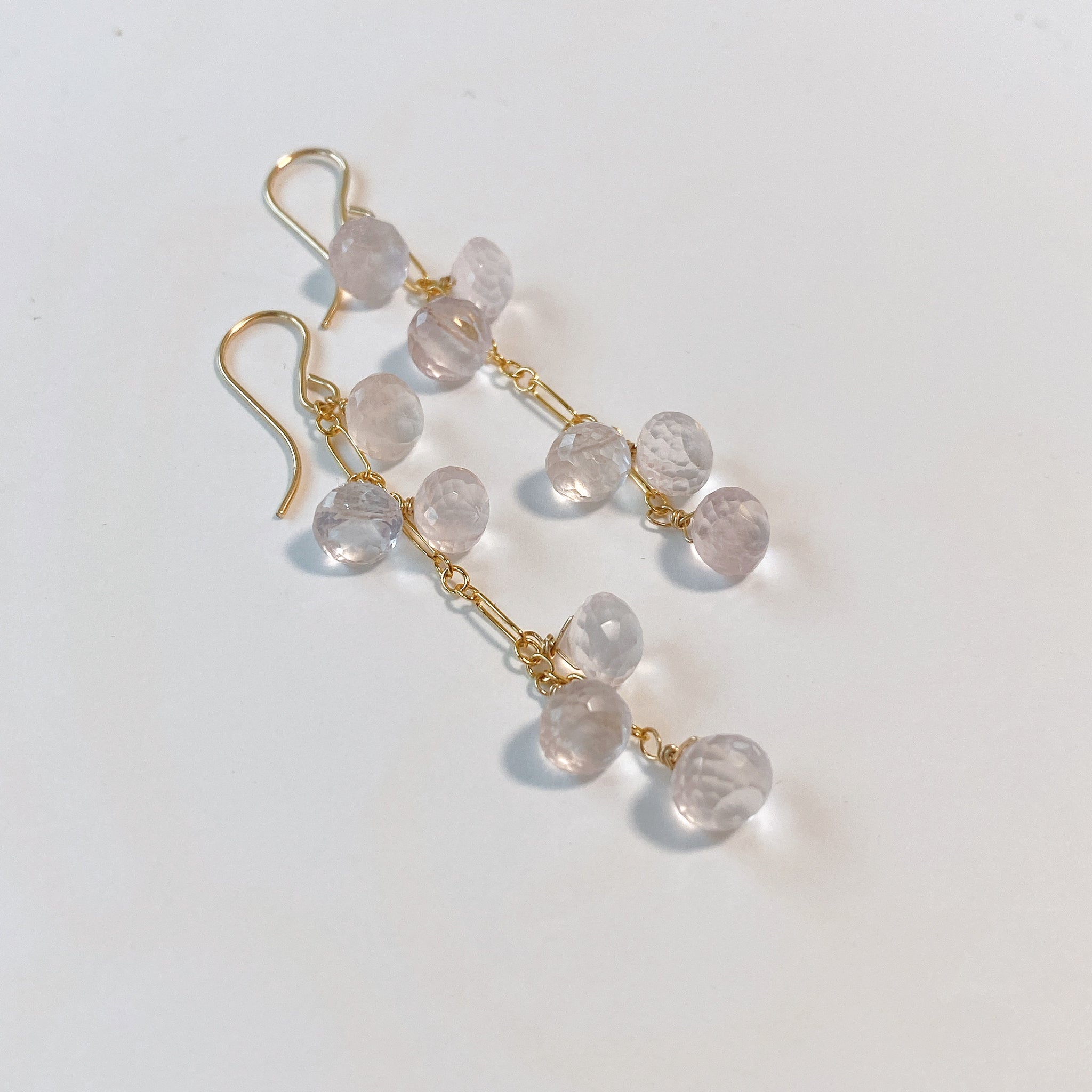 オニオンカットのローズクォーツを使ってデザインした耳飾りです。